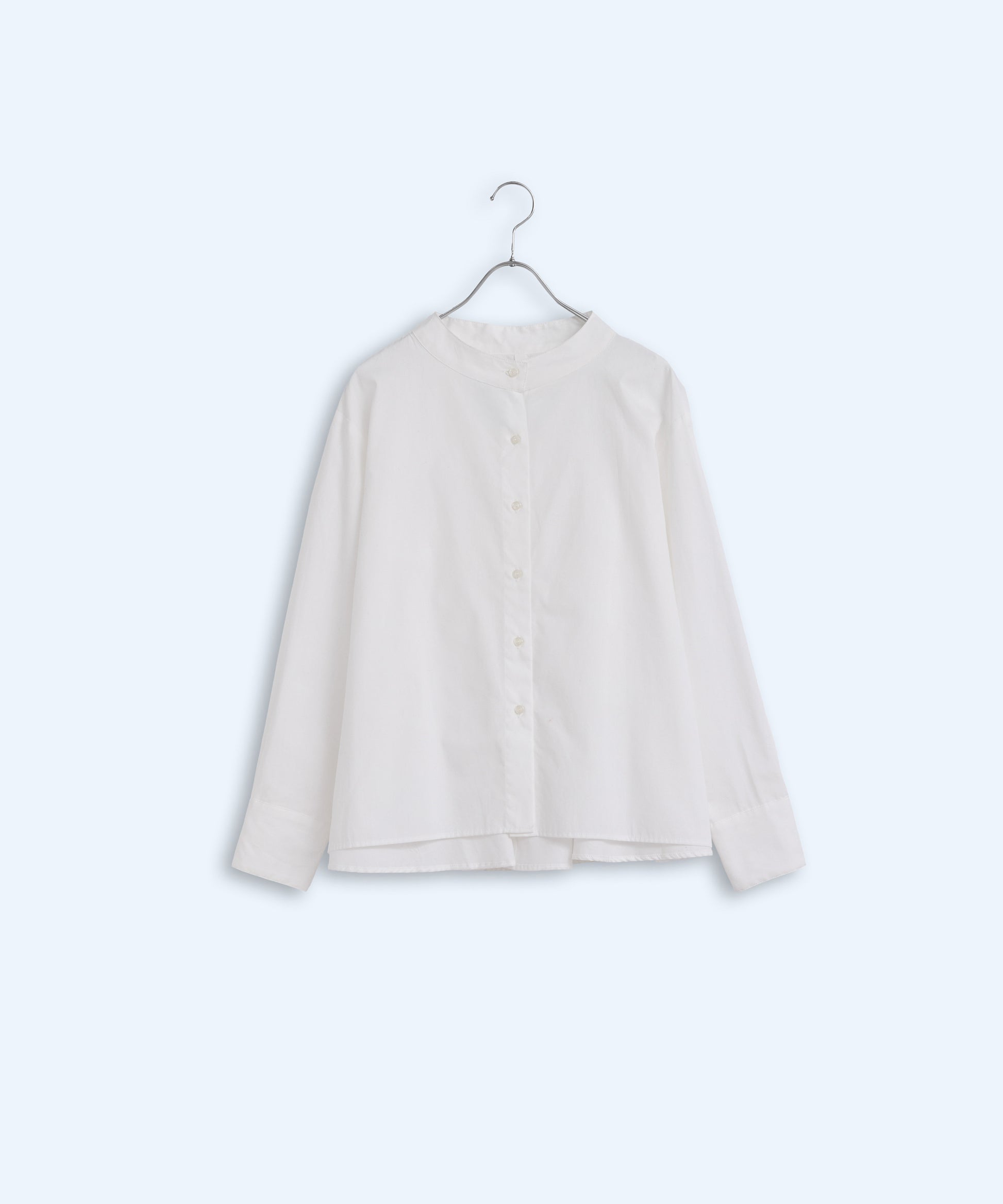 高さのあるスタンドカラーで、上品な印象のシャツブラウス。