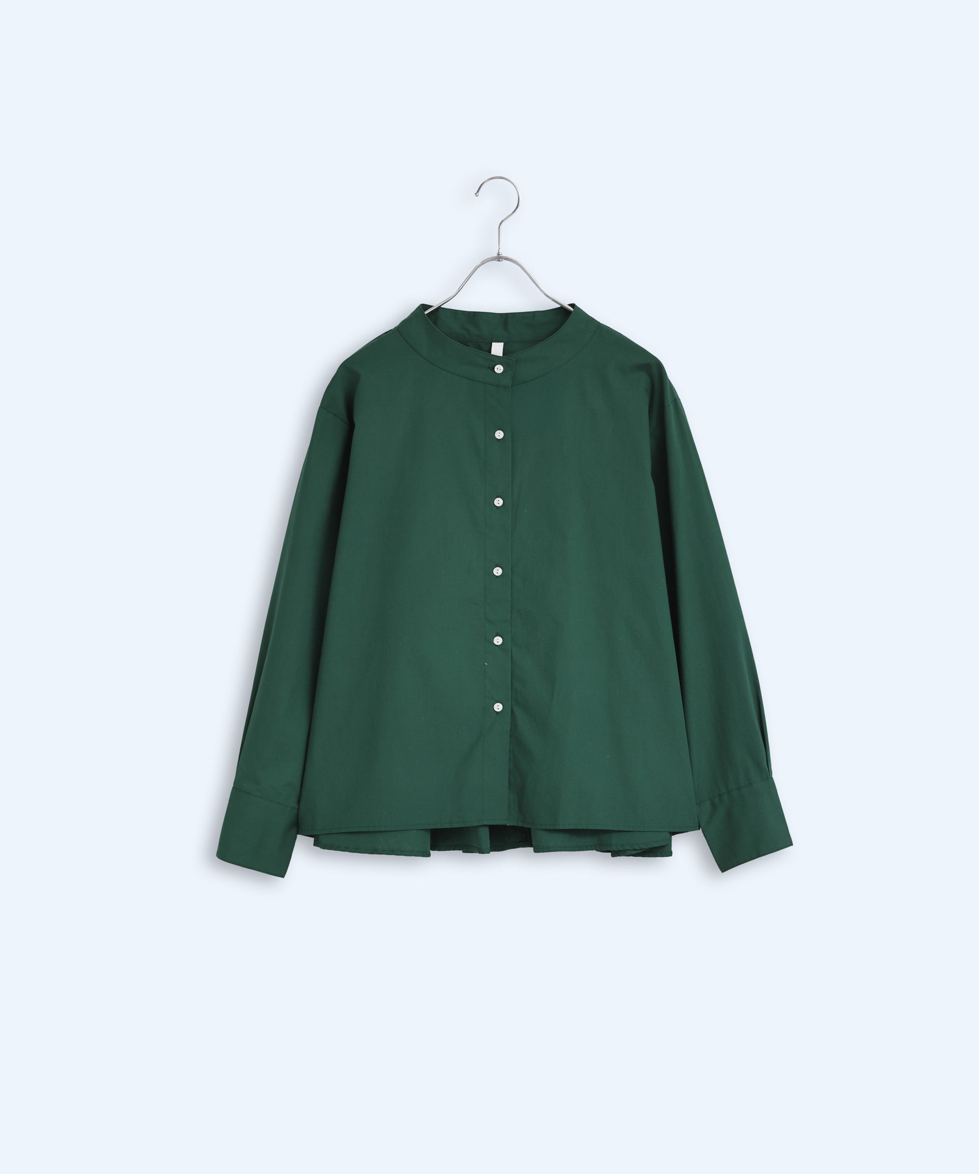 高さのあるスタンドカラーで、上品な印象のシャツブラウス。