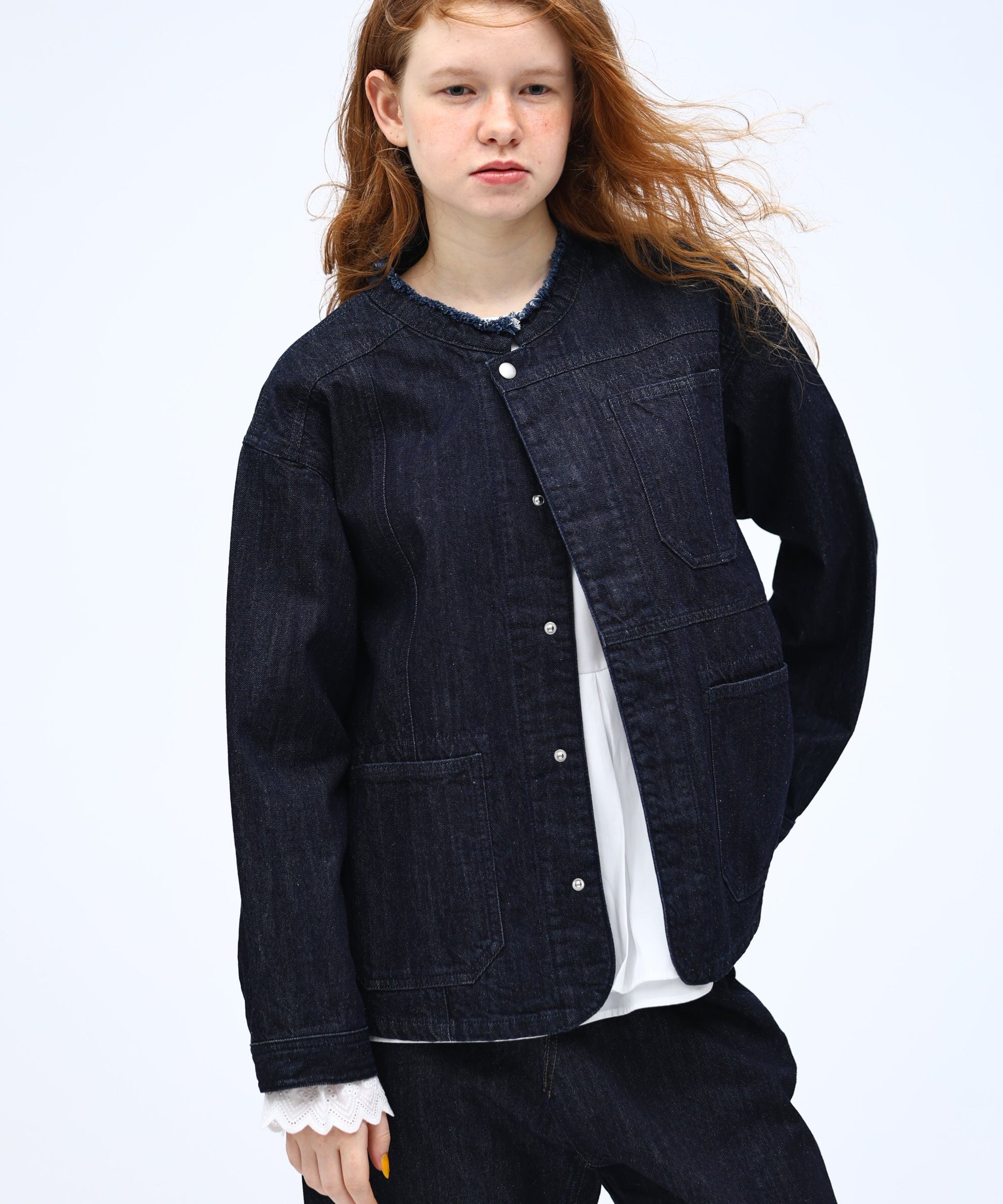 ワンピースやカットソーの上に着るだけで、様になるデニムジャケットです。