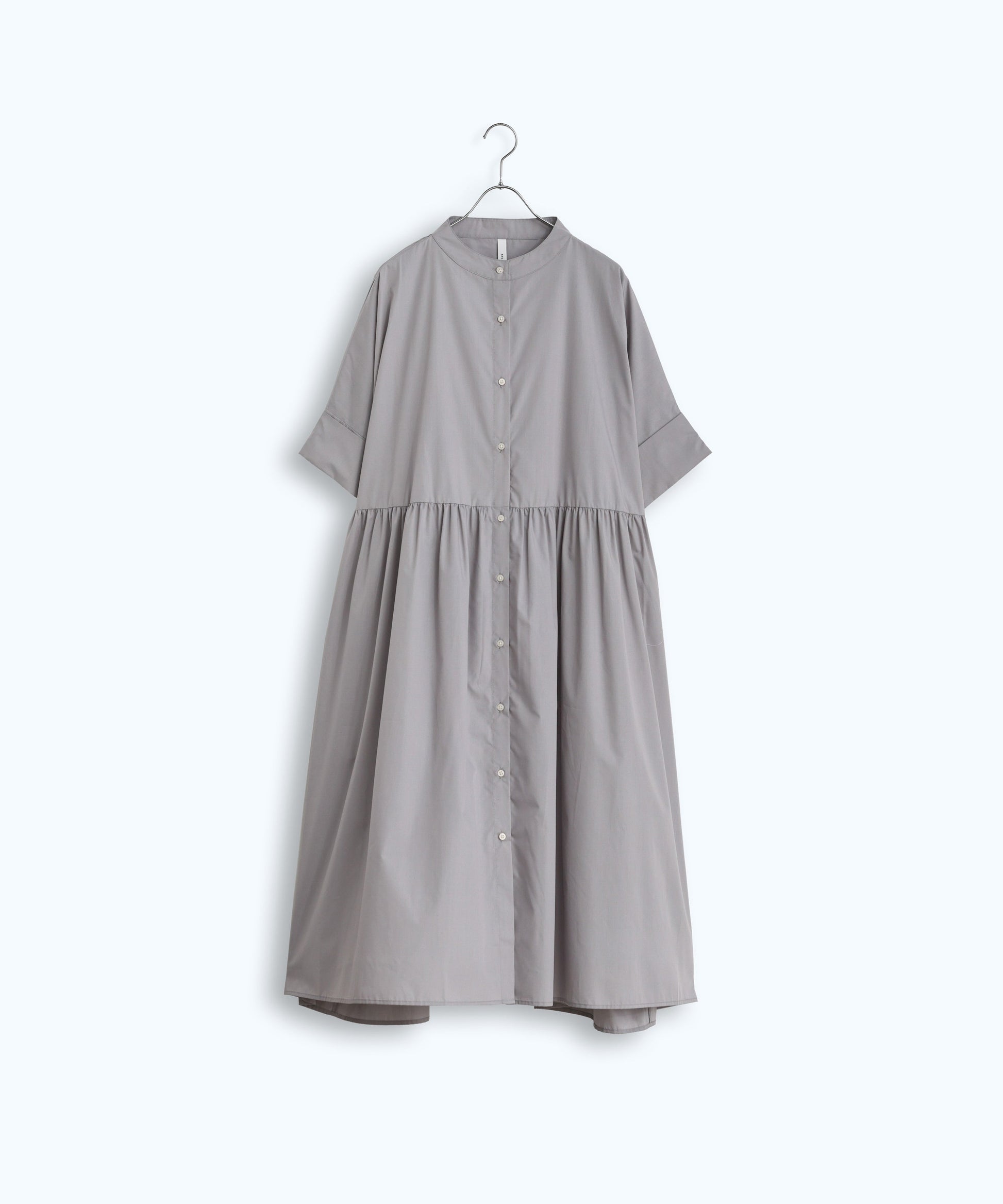 脇の落ち感が特徴的なシルエットで、襟は程よく高めのスタンドカラーで上品な印象。
