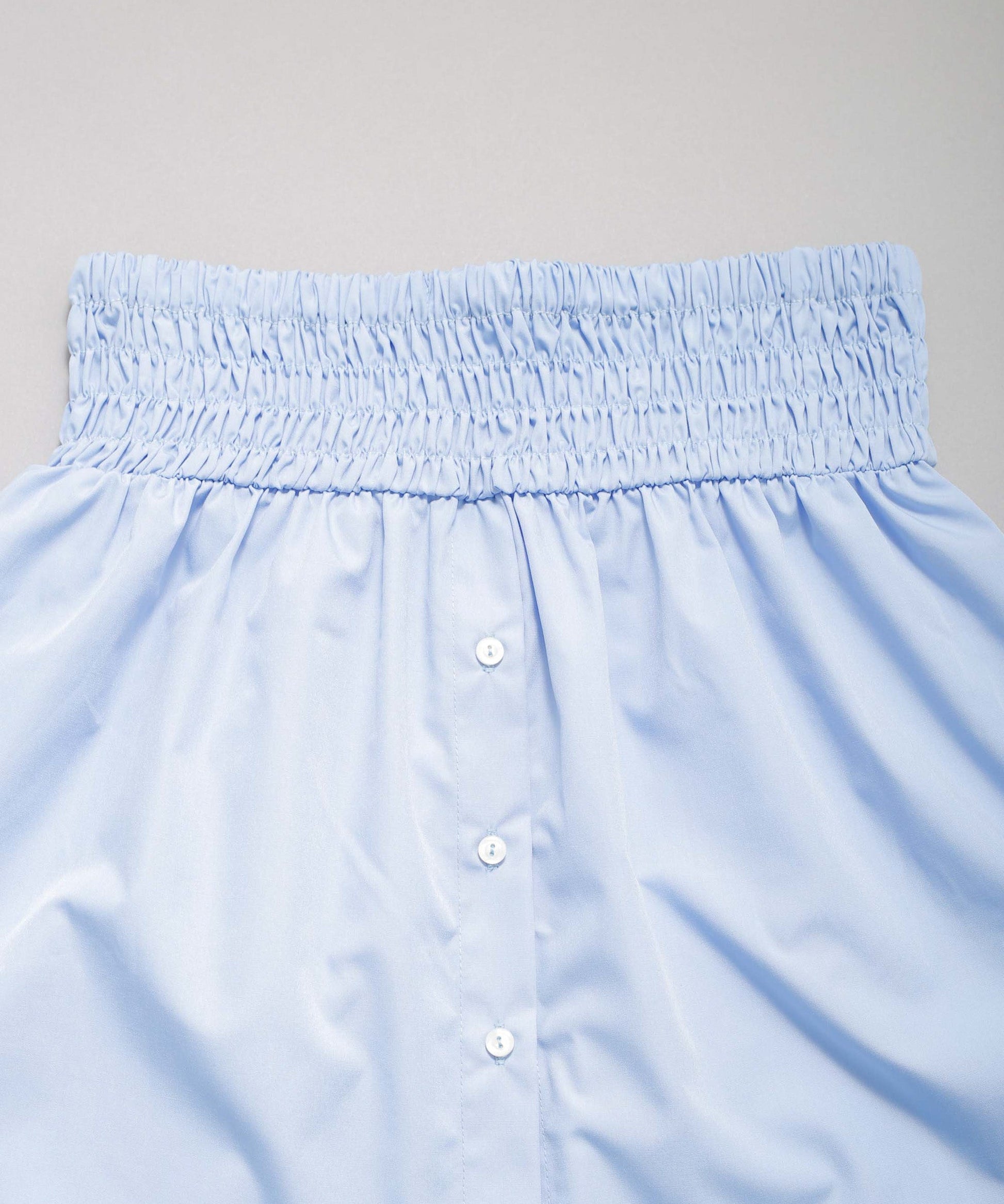 好きな位置に着用出来るシャーリングウエストで、楽にレイヤードが完成します。