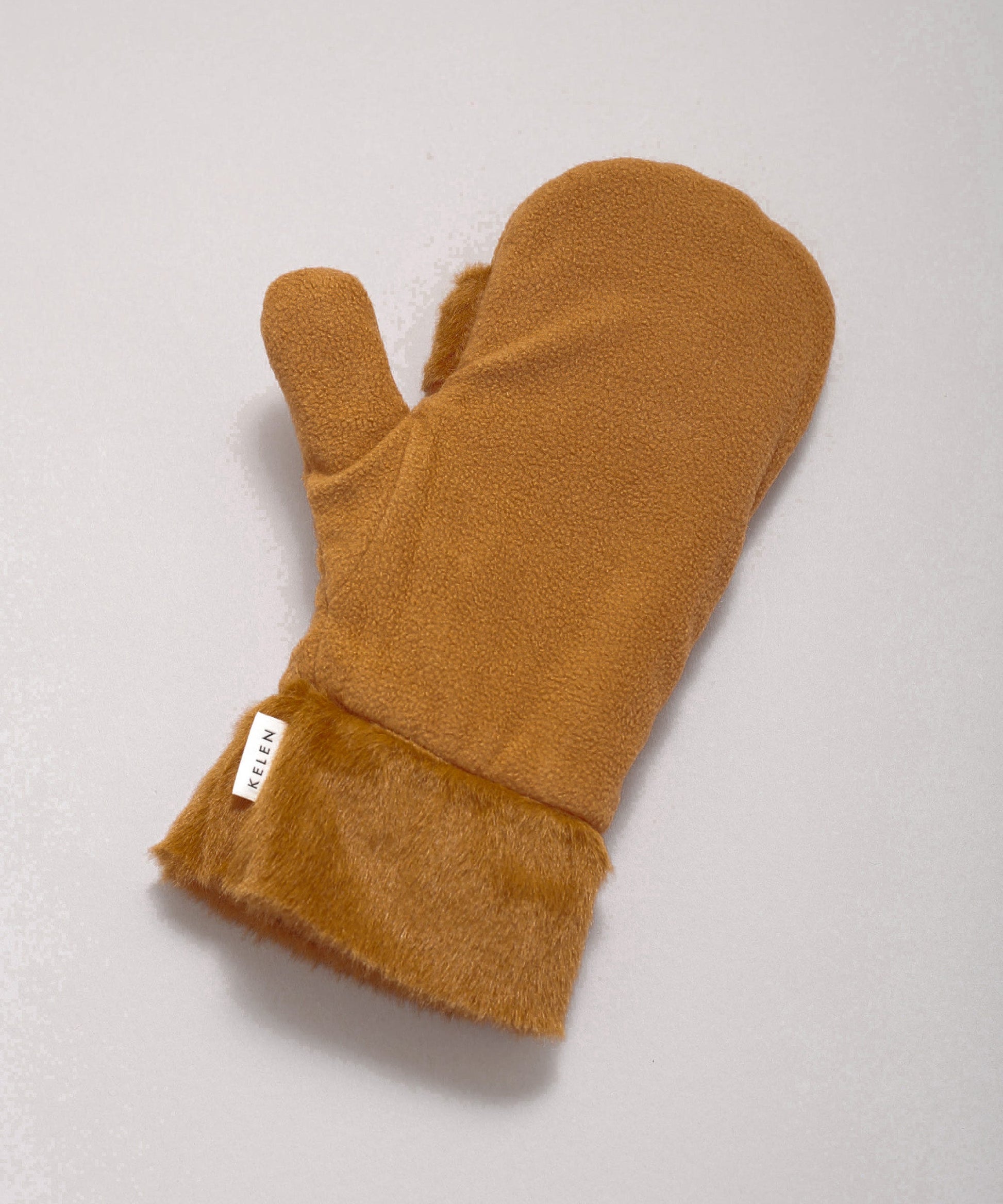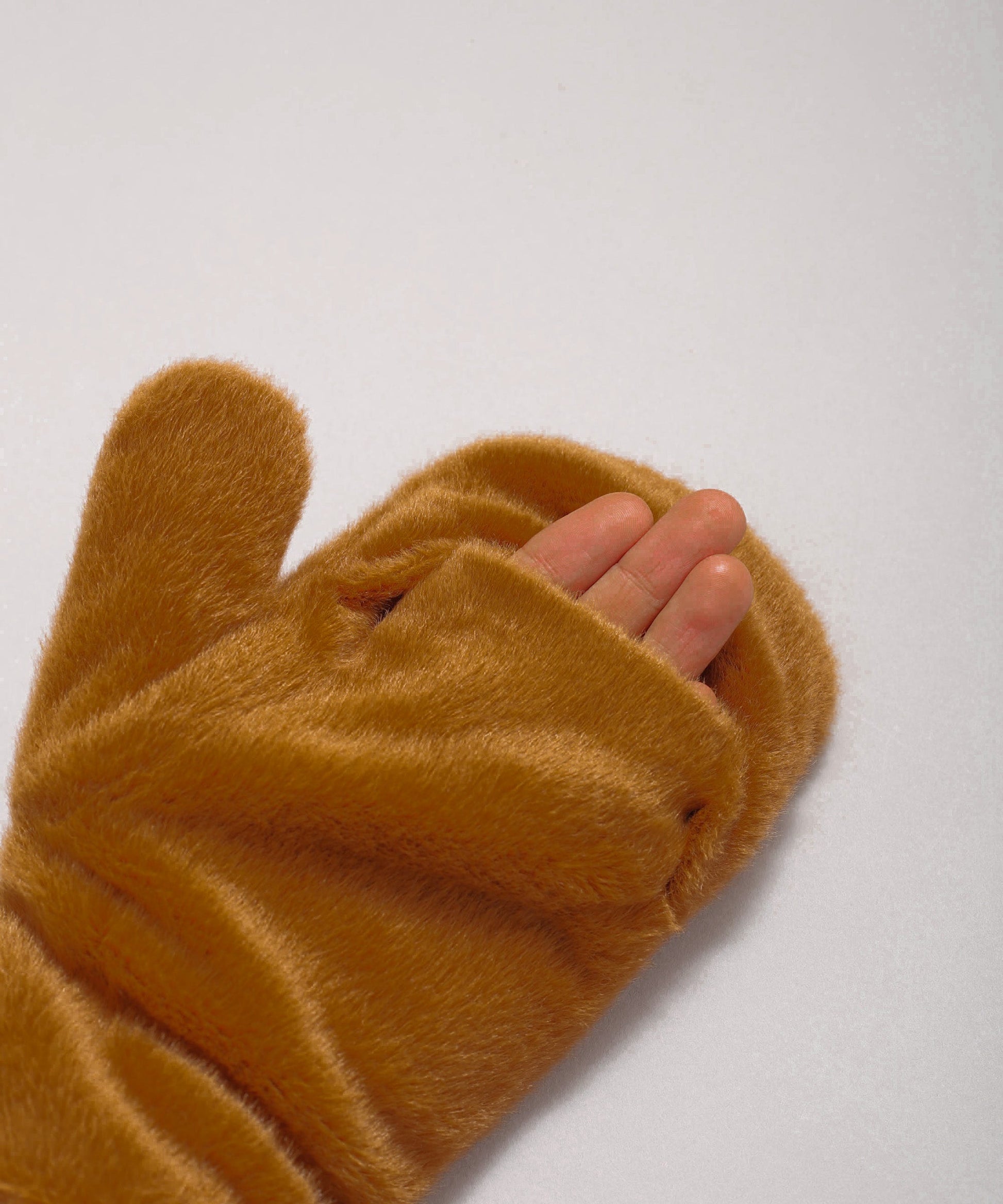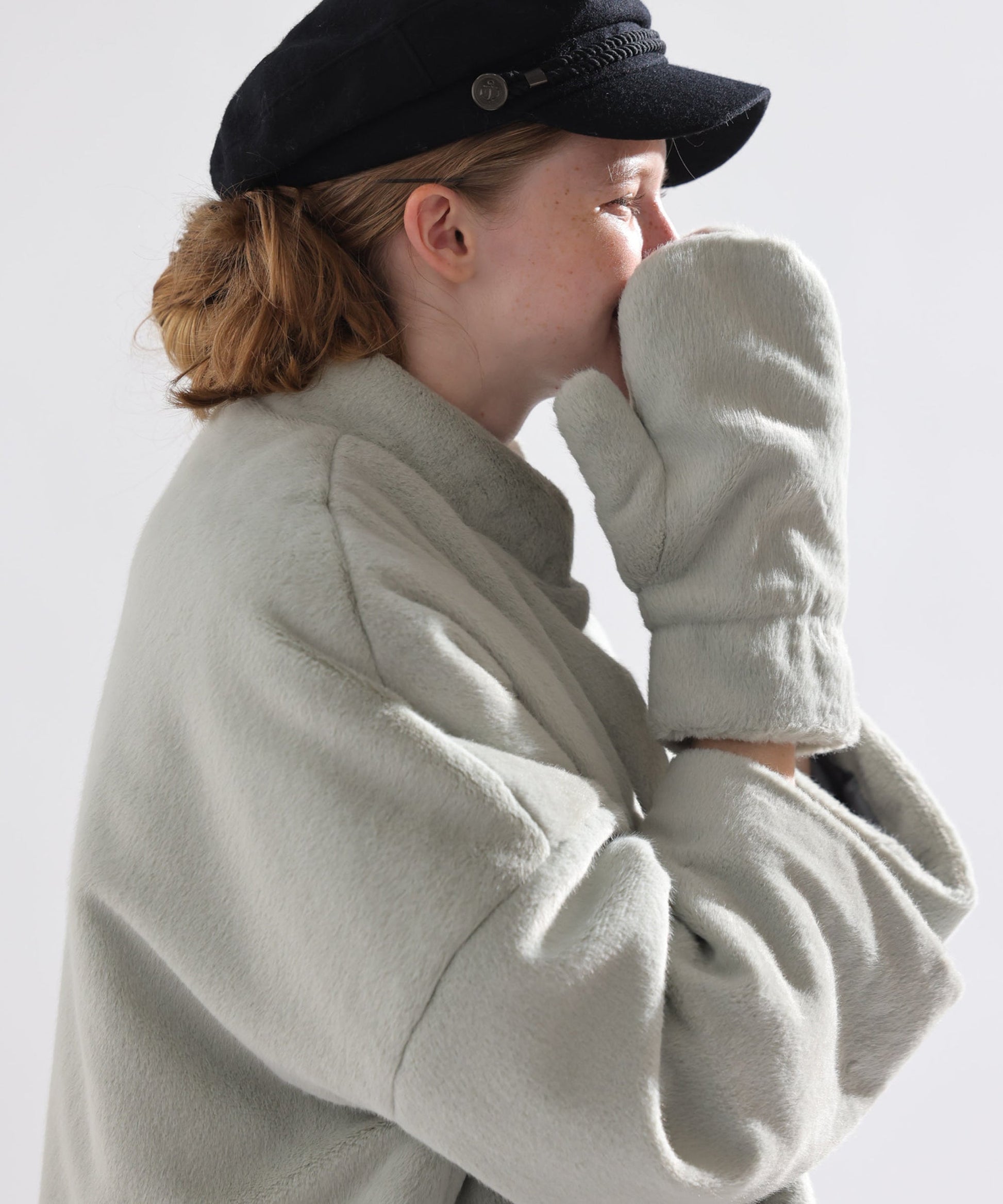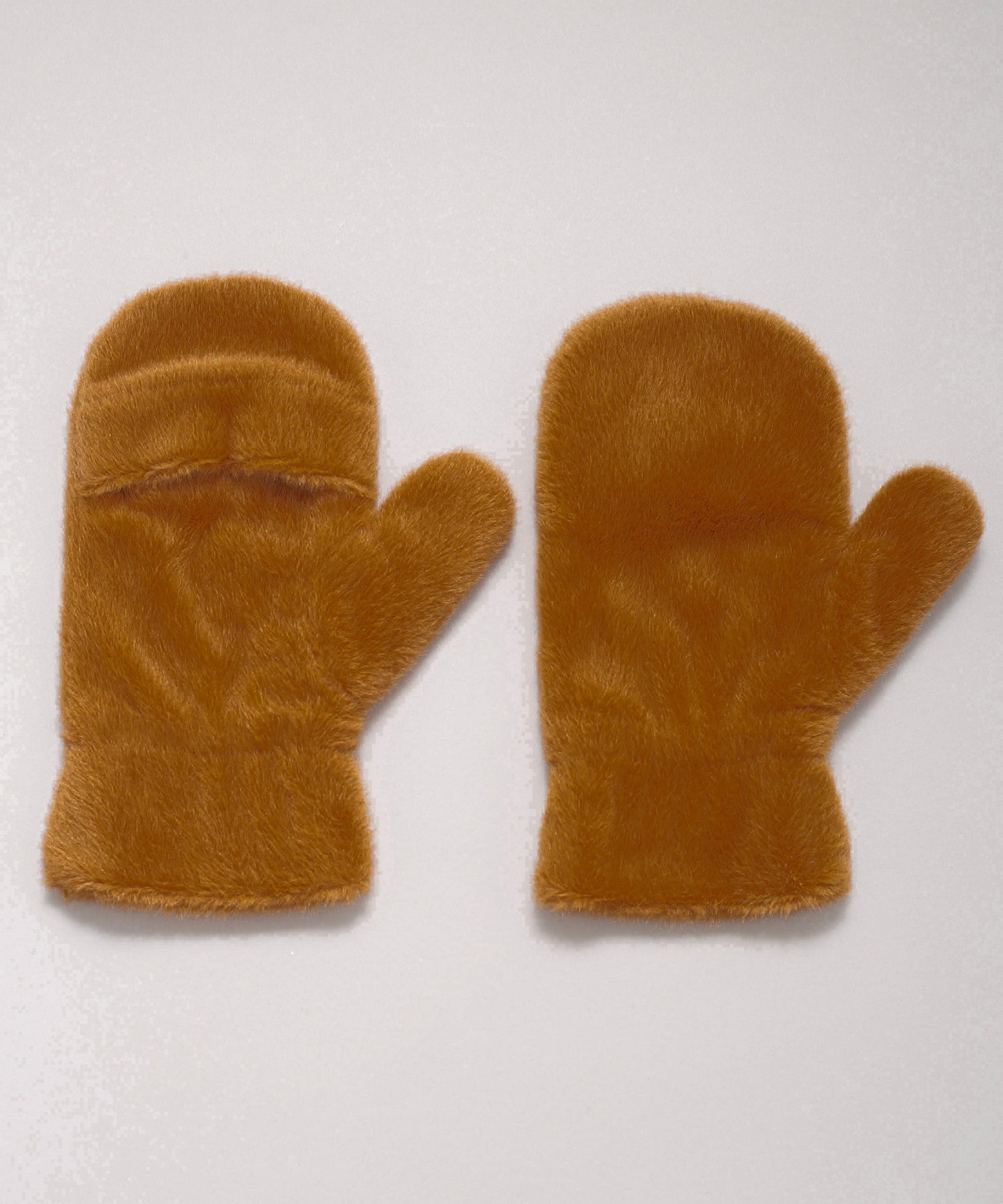 思わず触っていたくなるようなふんわり柔らかエコファーミトン。裏地はフリース素材を使用。