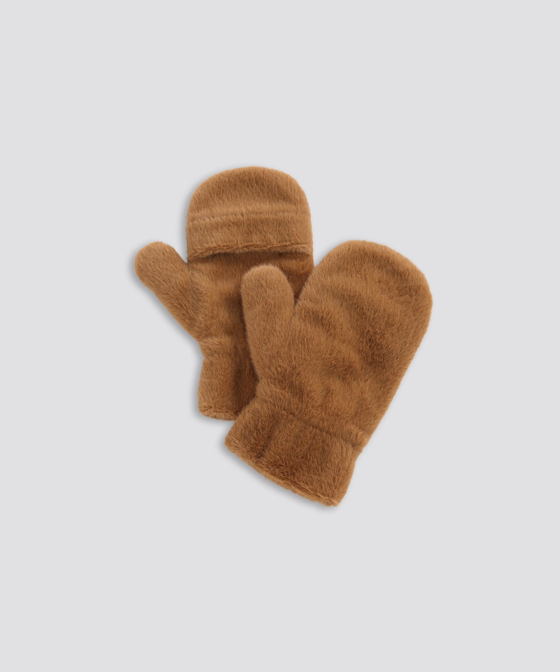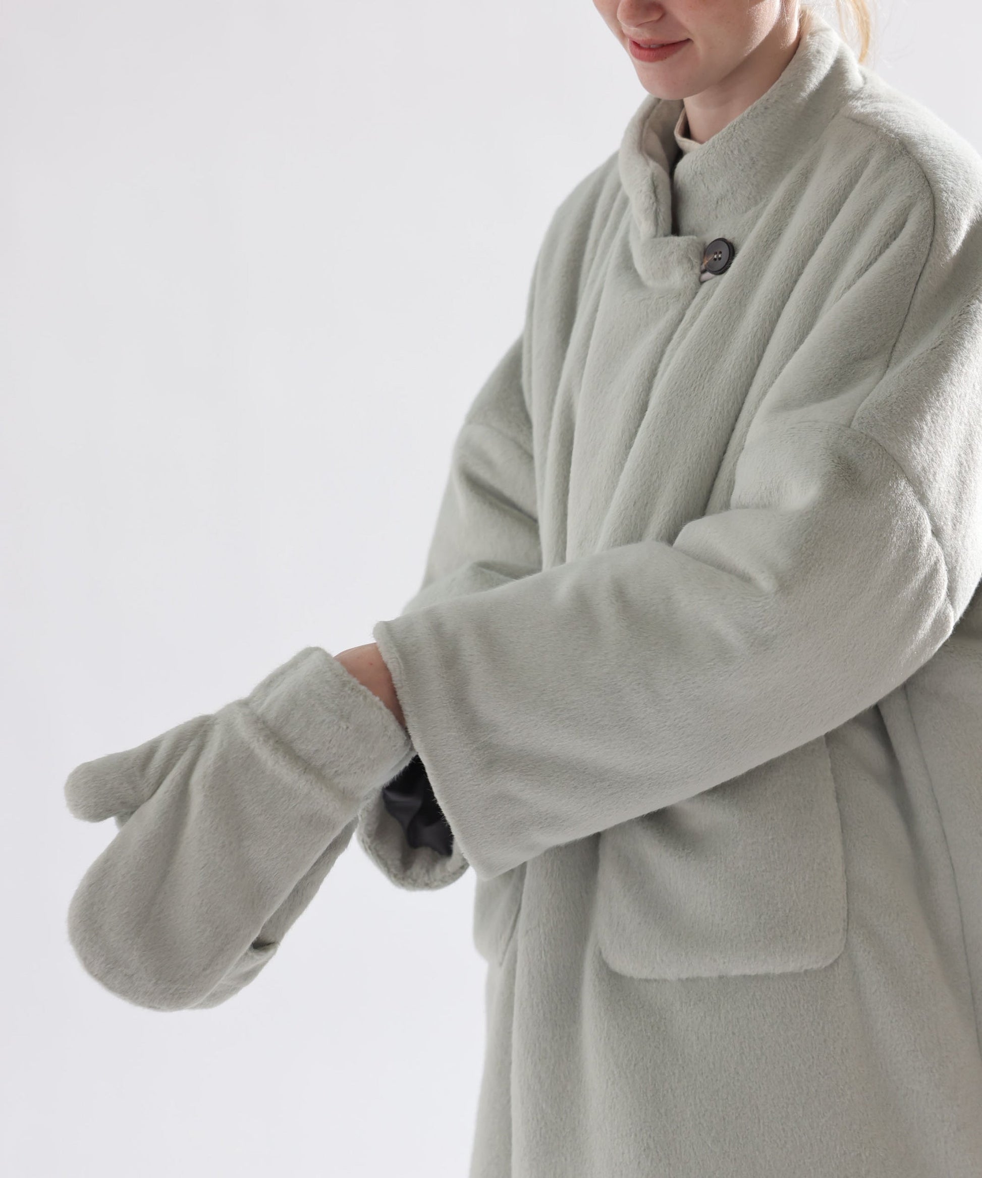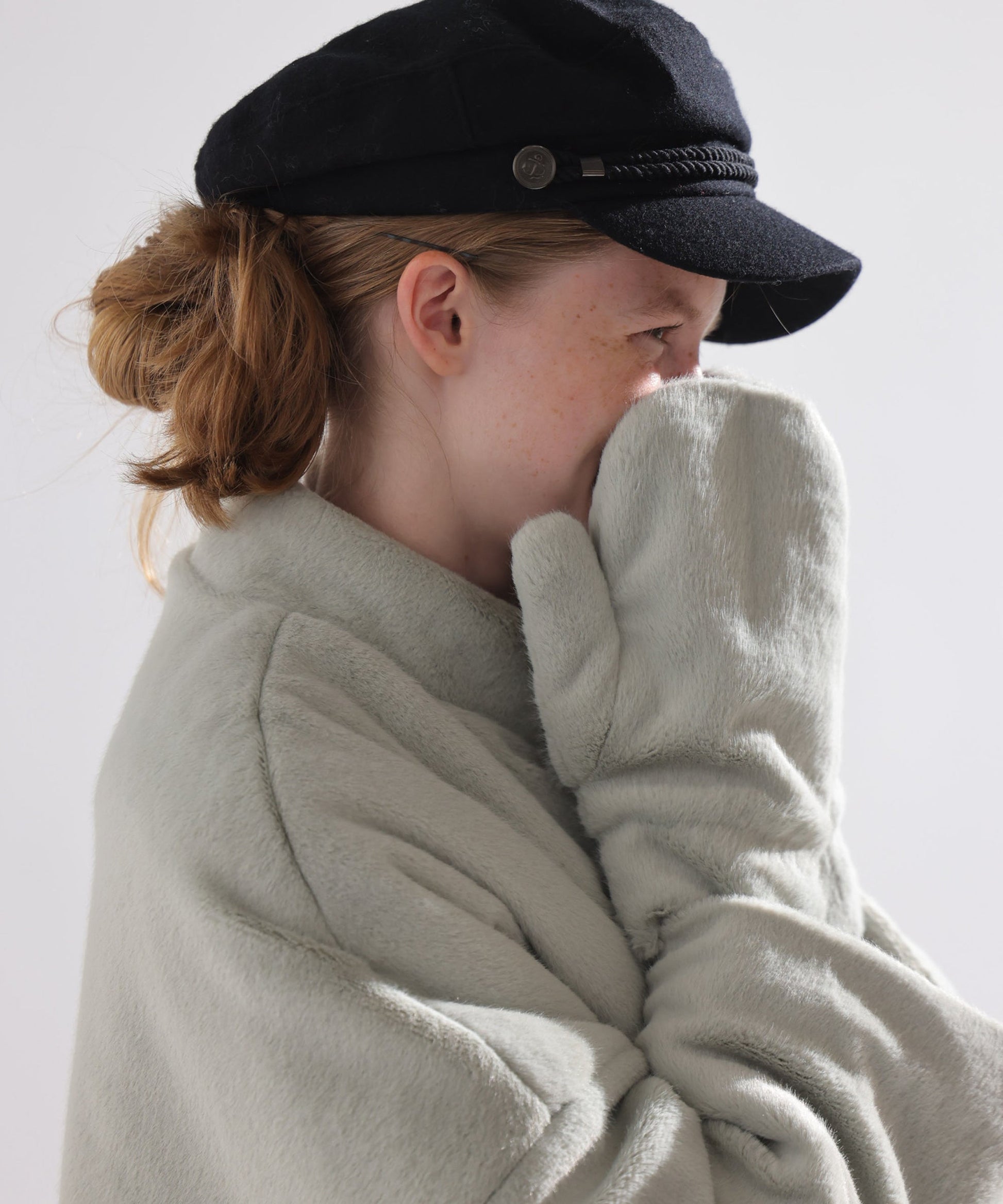 思わず触っていたくなるようなふんわり柔らかエコファーミトン。裏地はフリース素材を使用。
