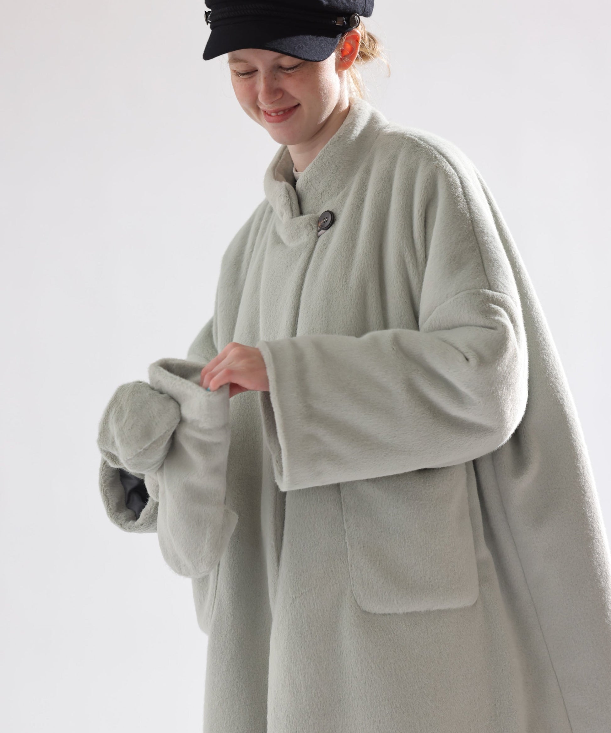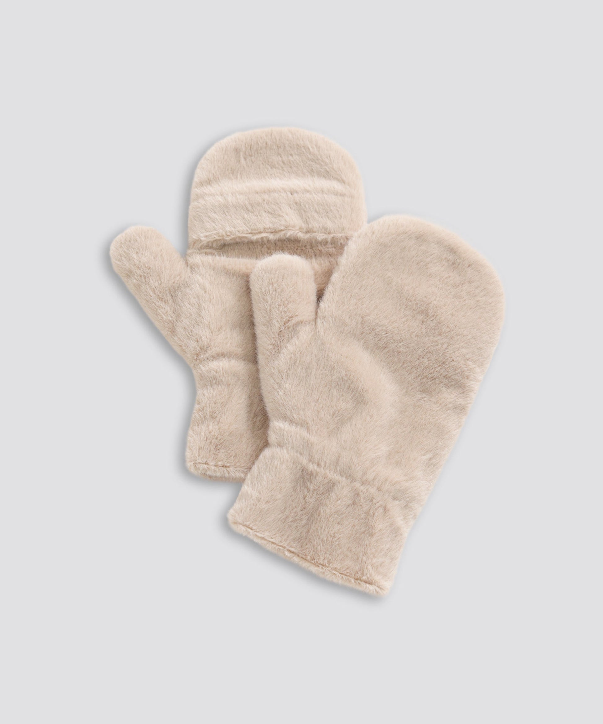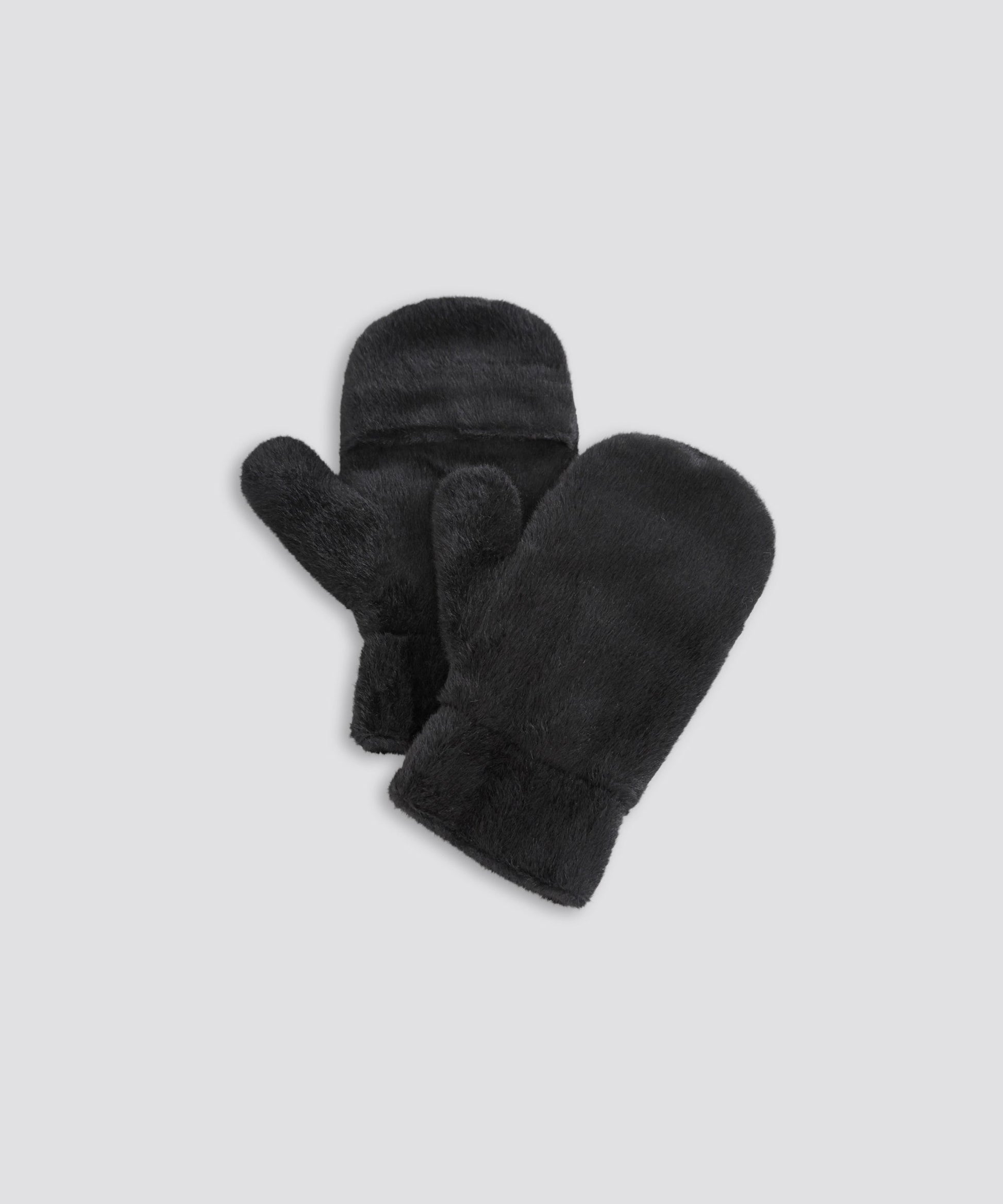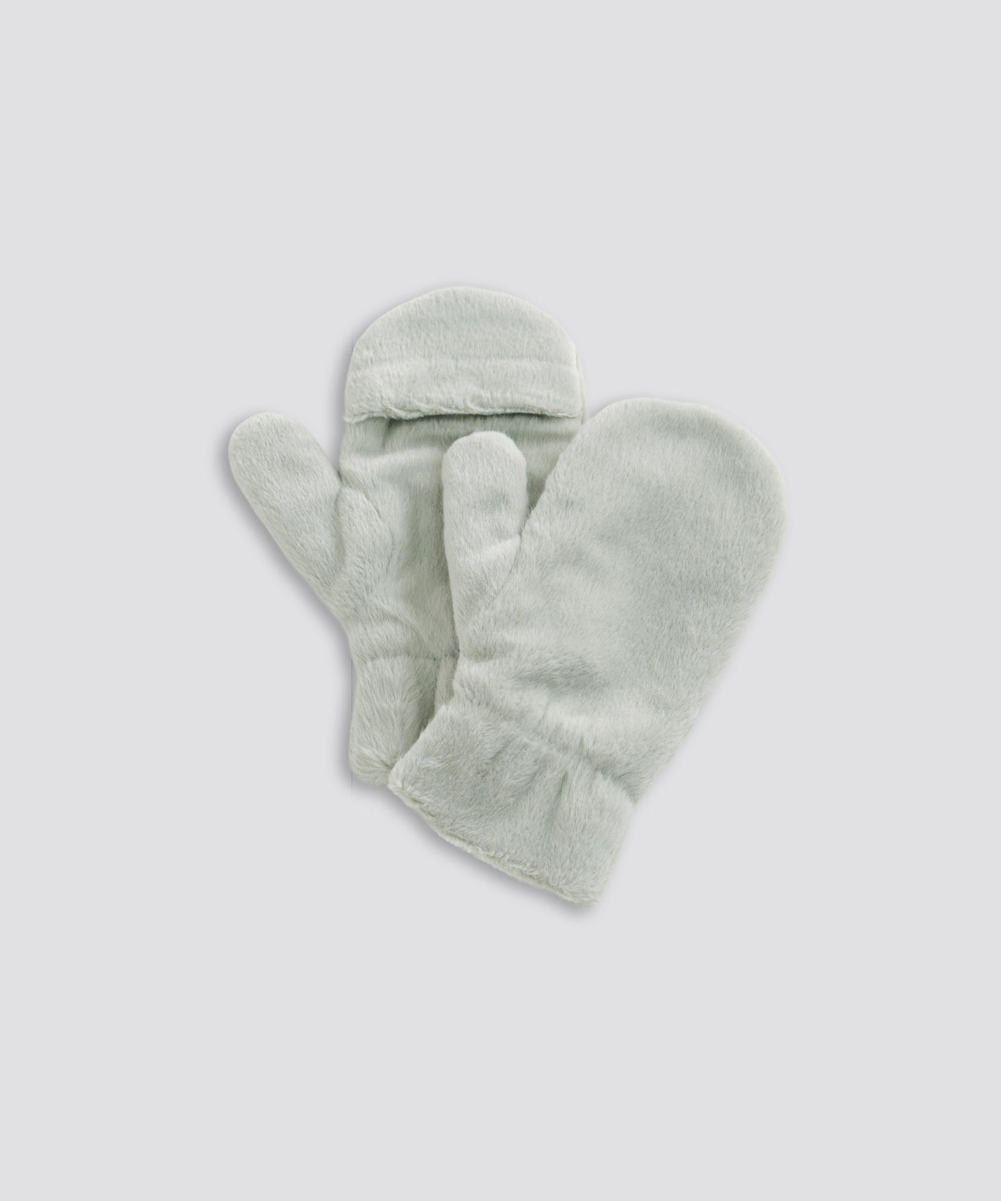 思わず触っていたくなるようなふんわり柔らかエコファーミトン。裏地はフリース素材を使用。