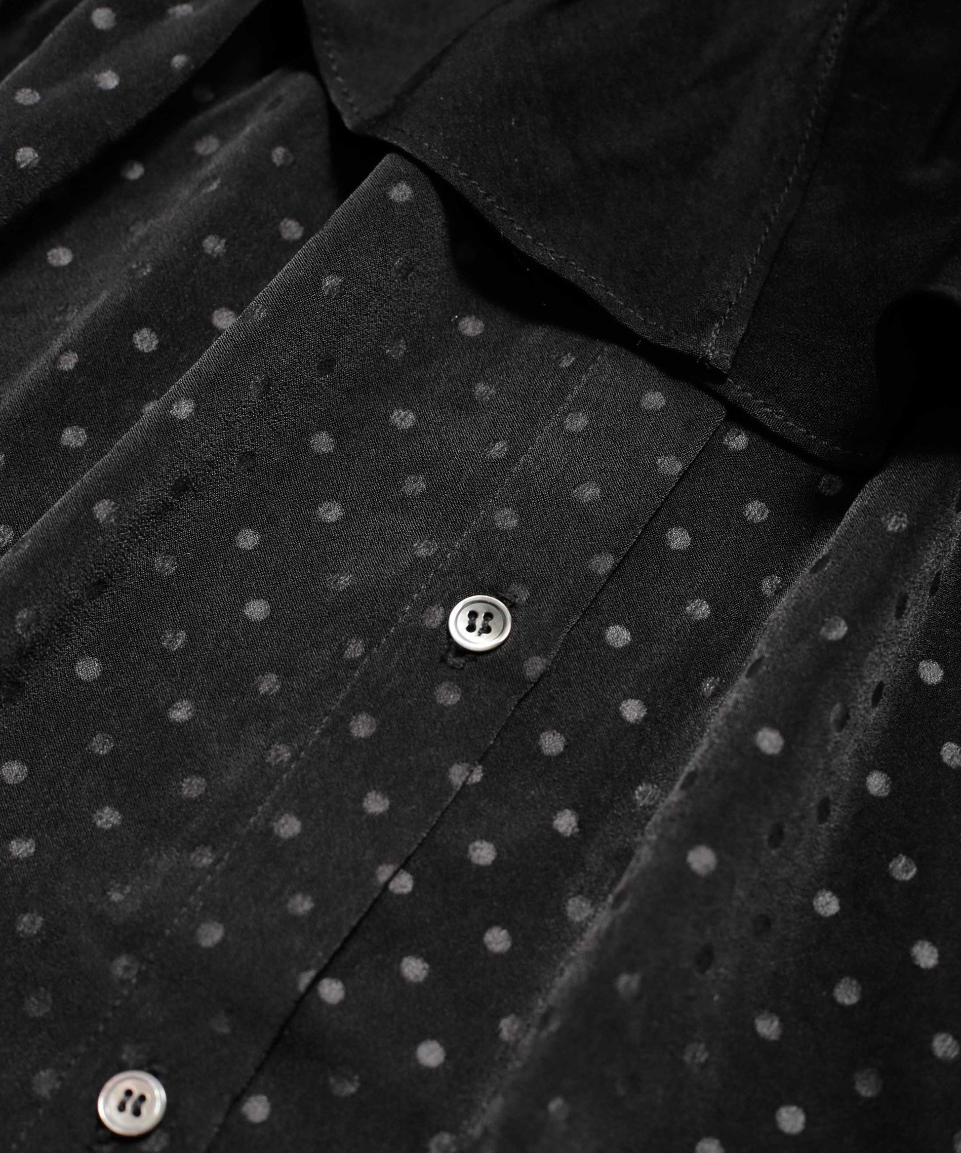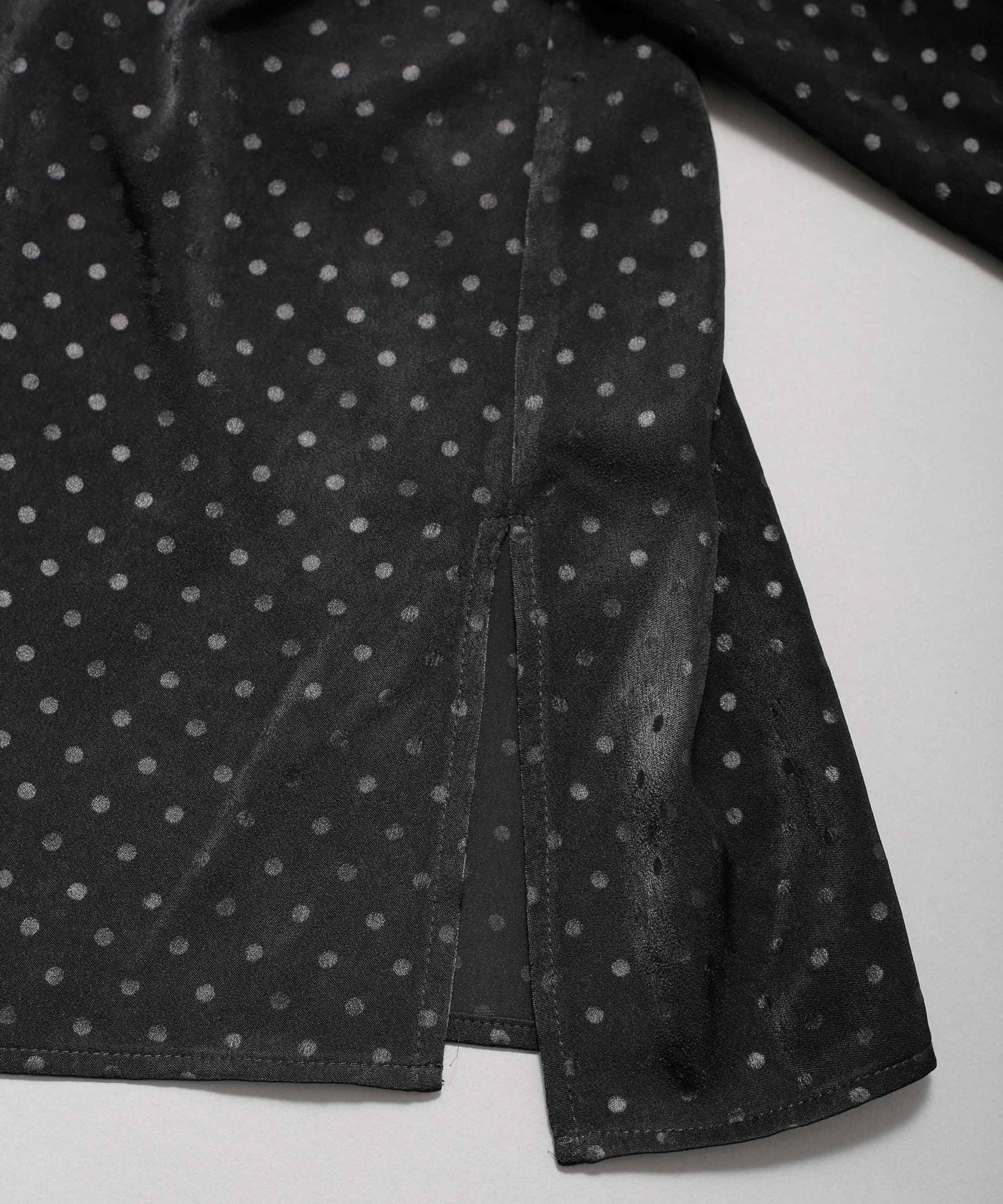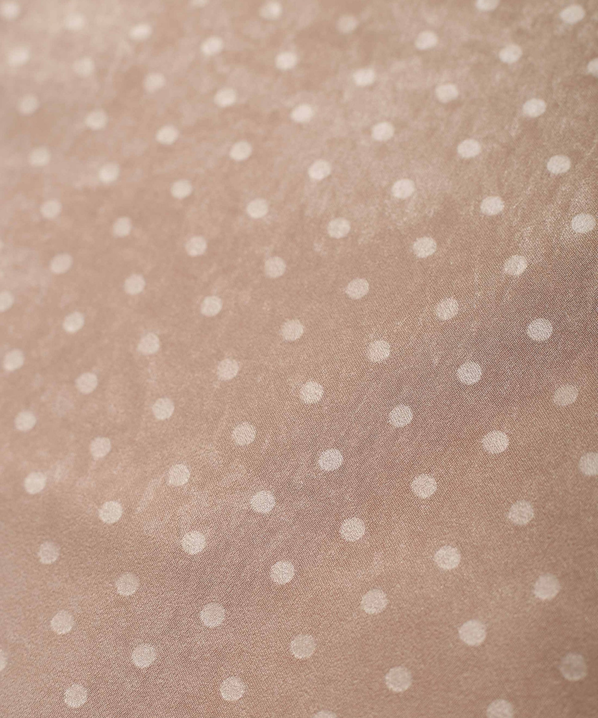 スエード調のサテン素材で、身頃、袖にはエンボス加工されたドット柄を使用し、