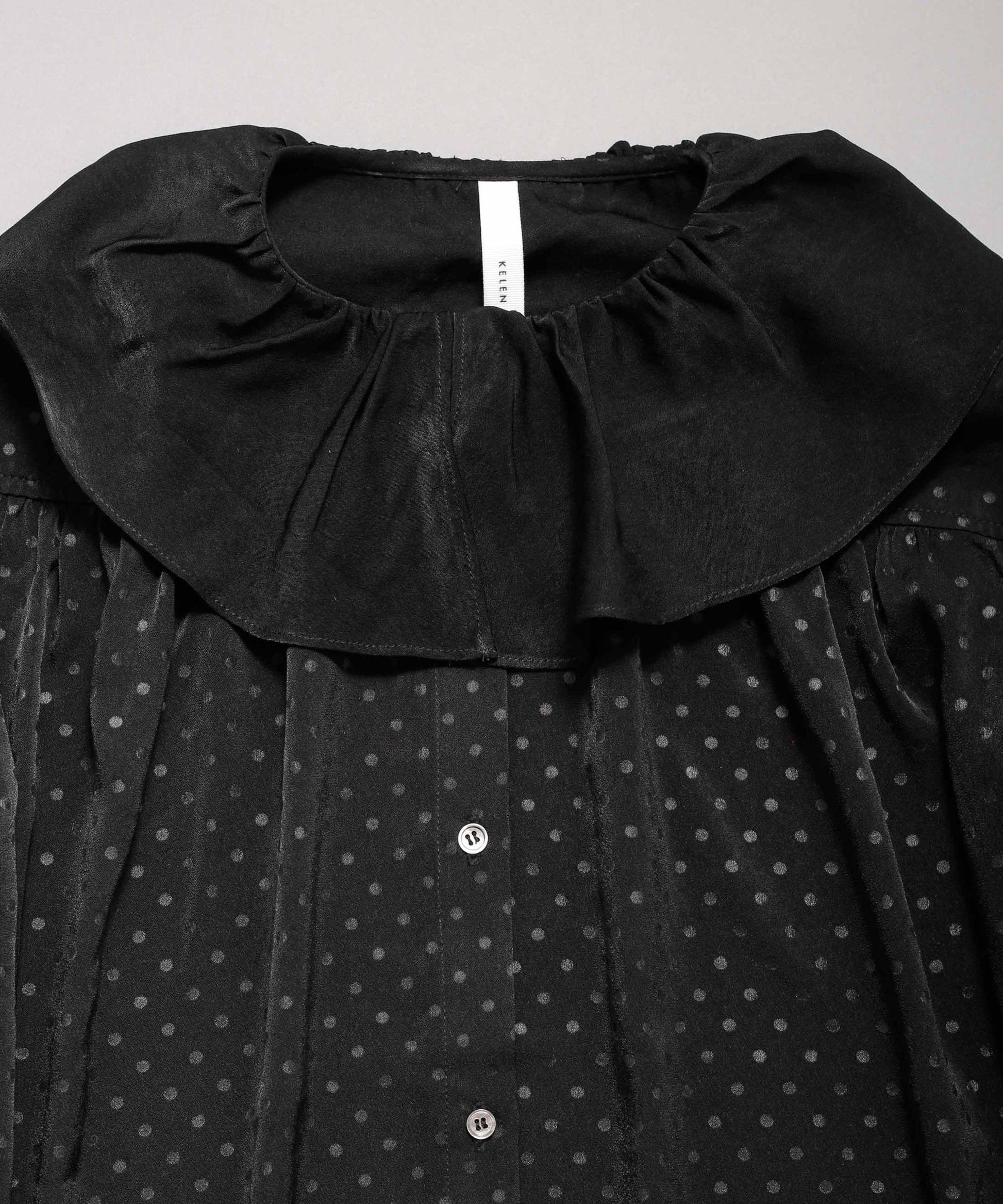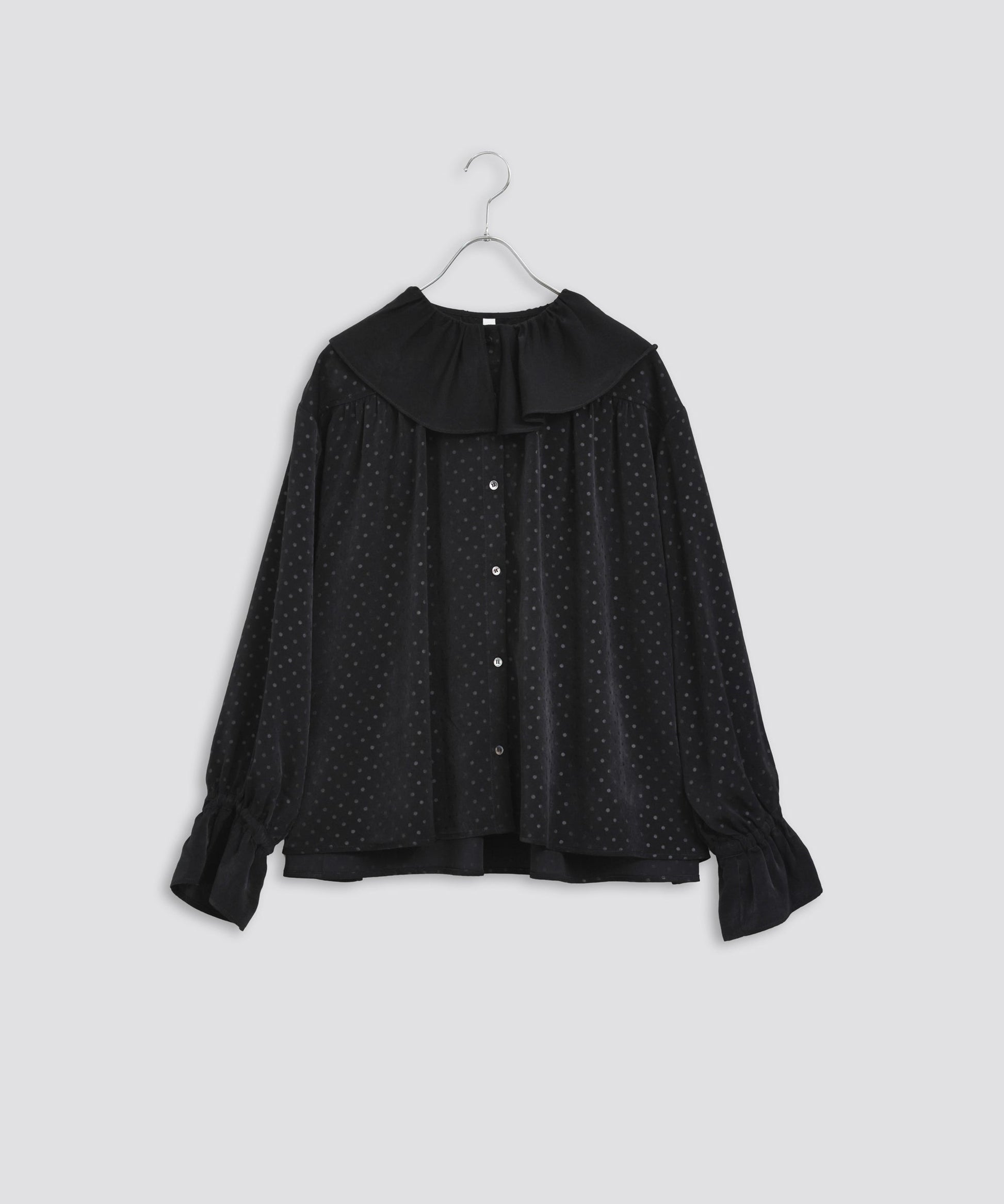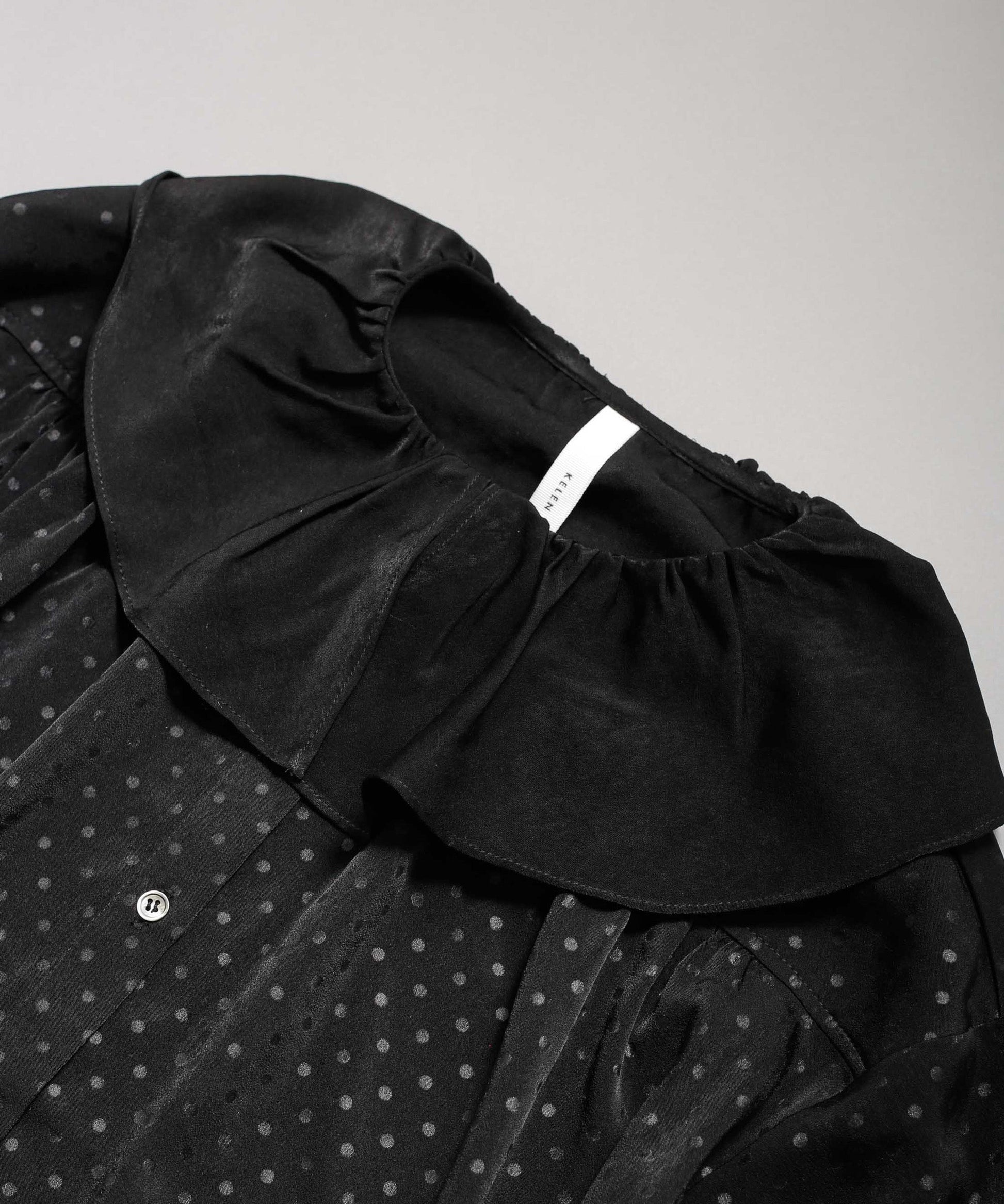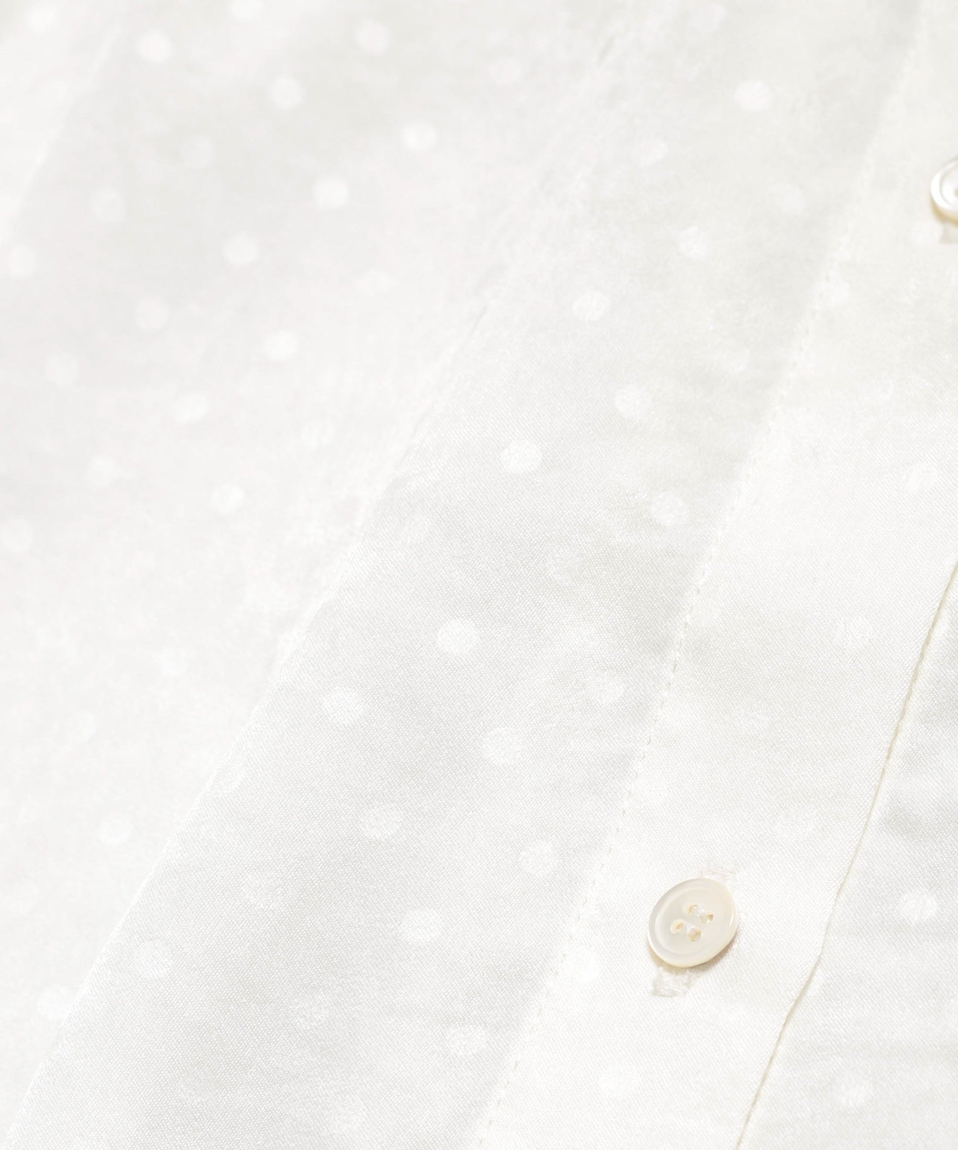 スエード調のサテン素材で、身頃、袖にはエンボス加工されたドット柄を使用し、