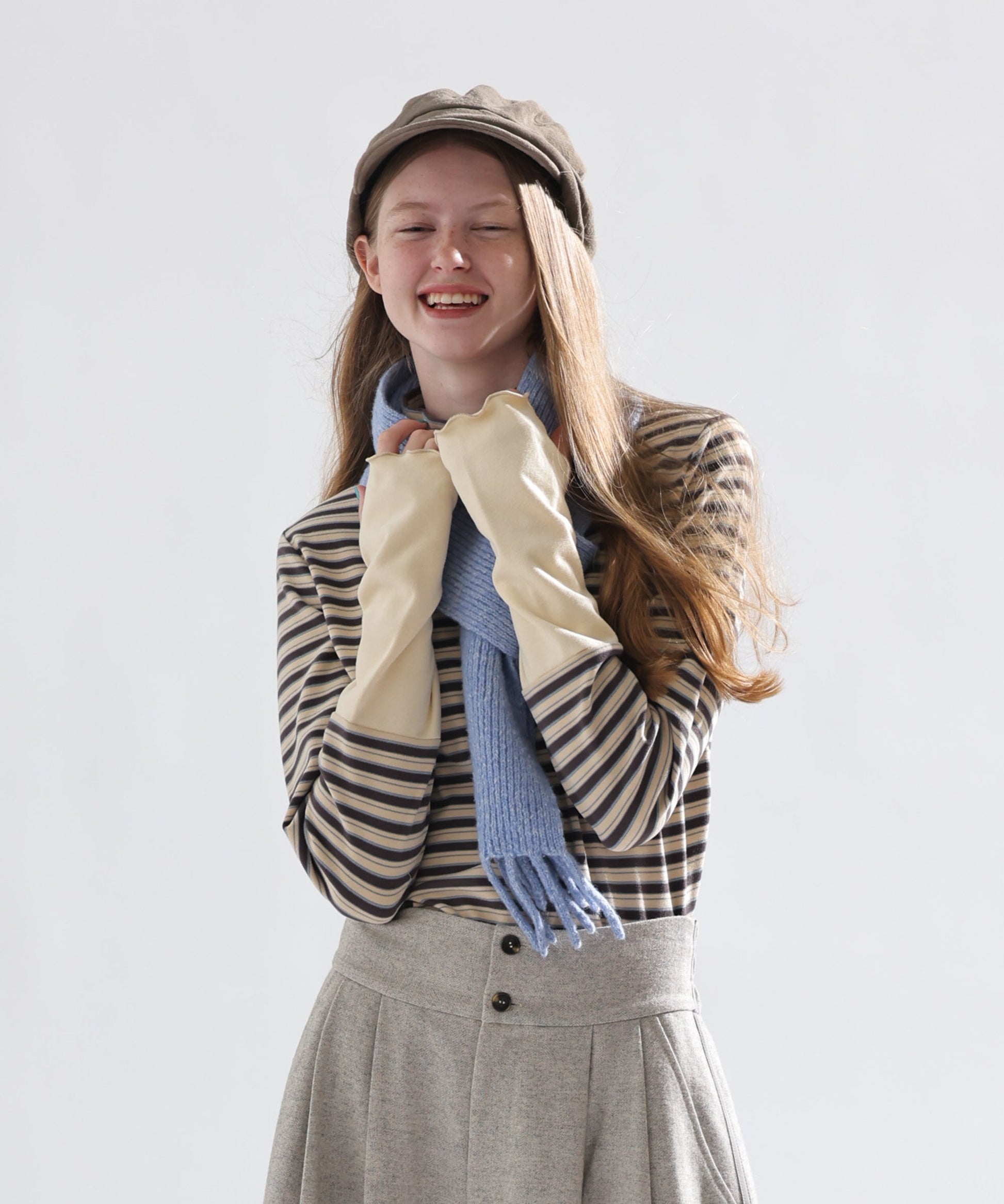 袖丈を長めに設定し、指ぬき付きなので、自然とくしゃっとなる袖口がポイント。