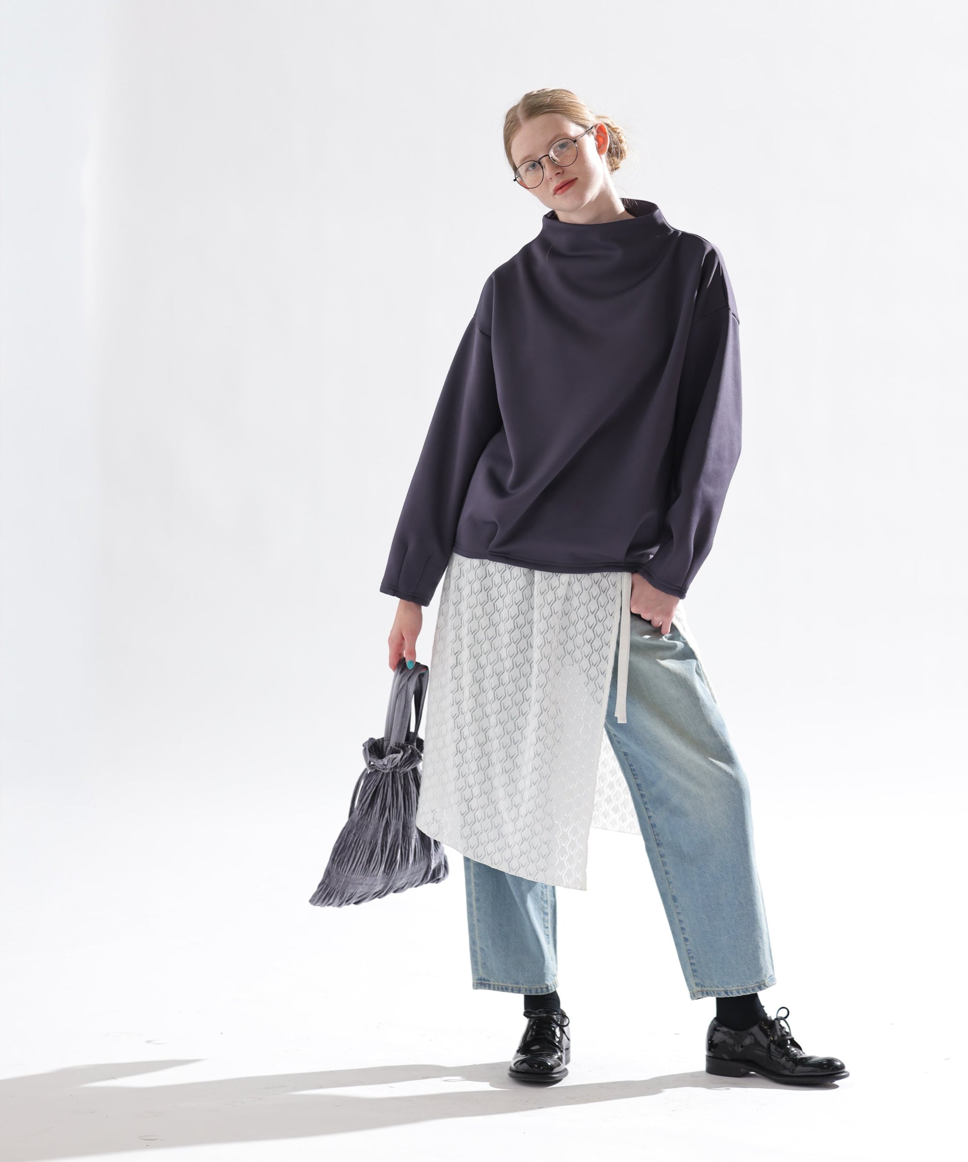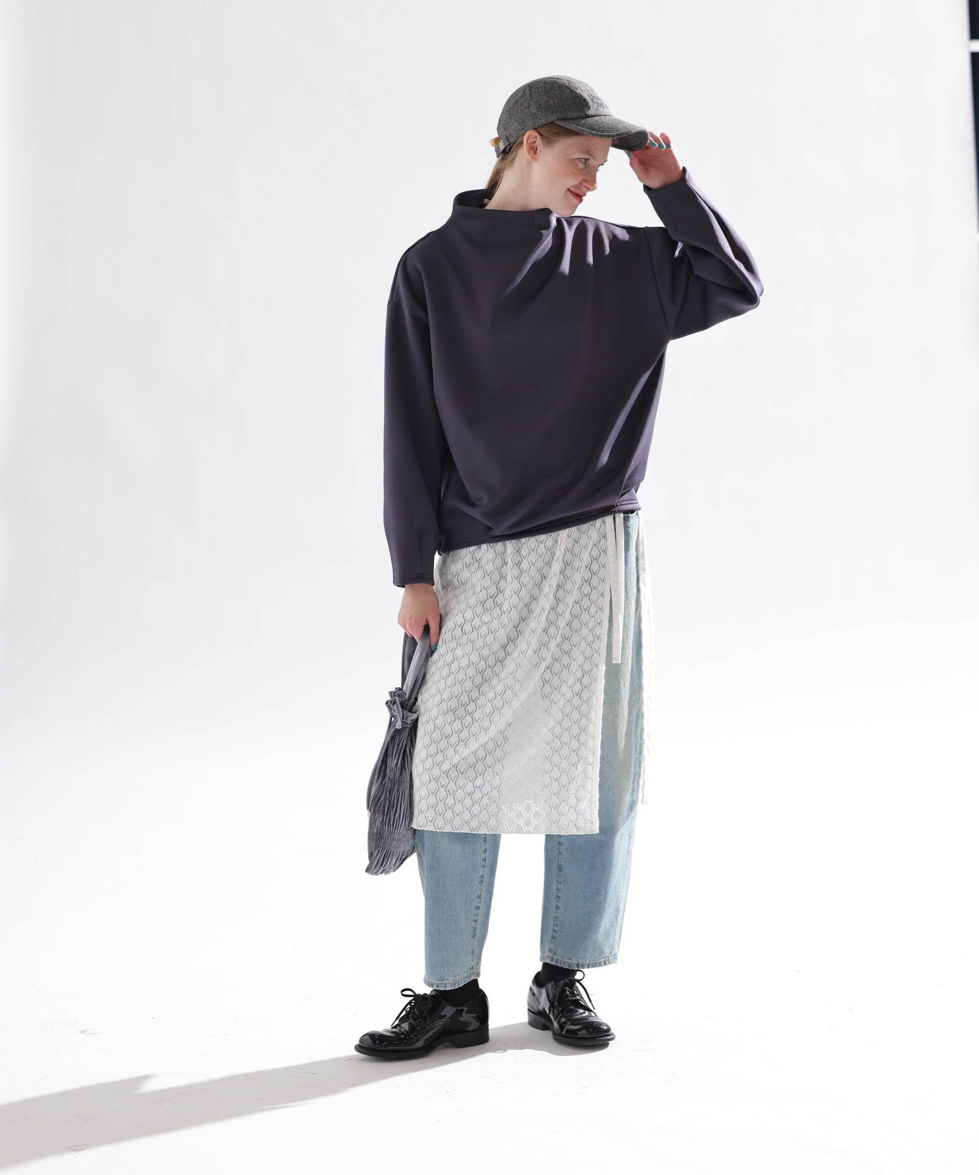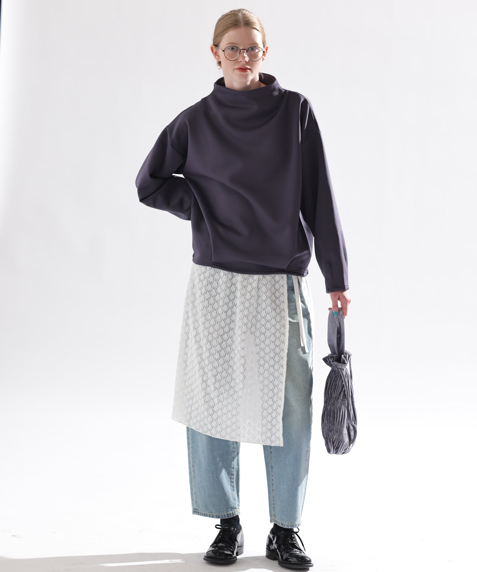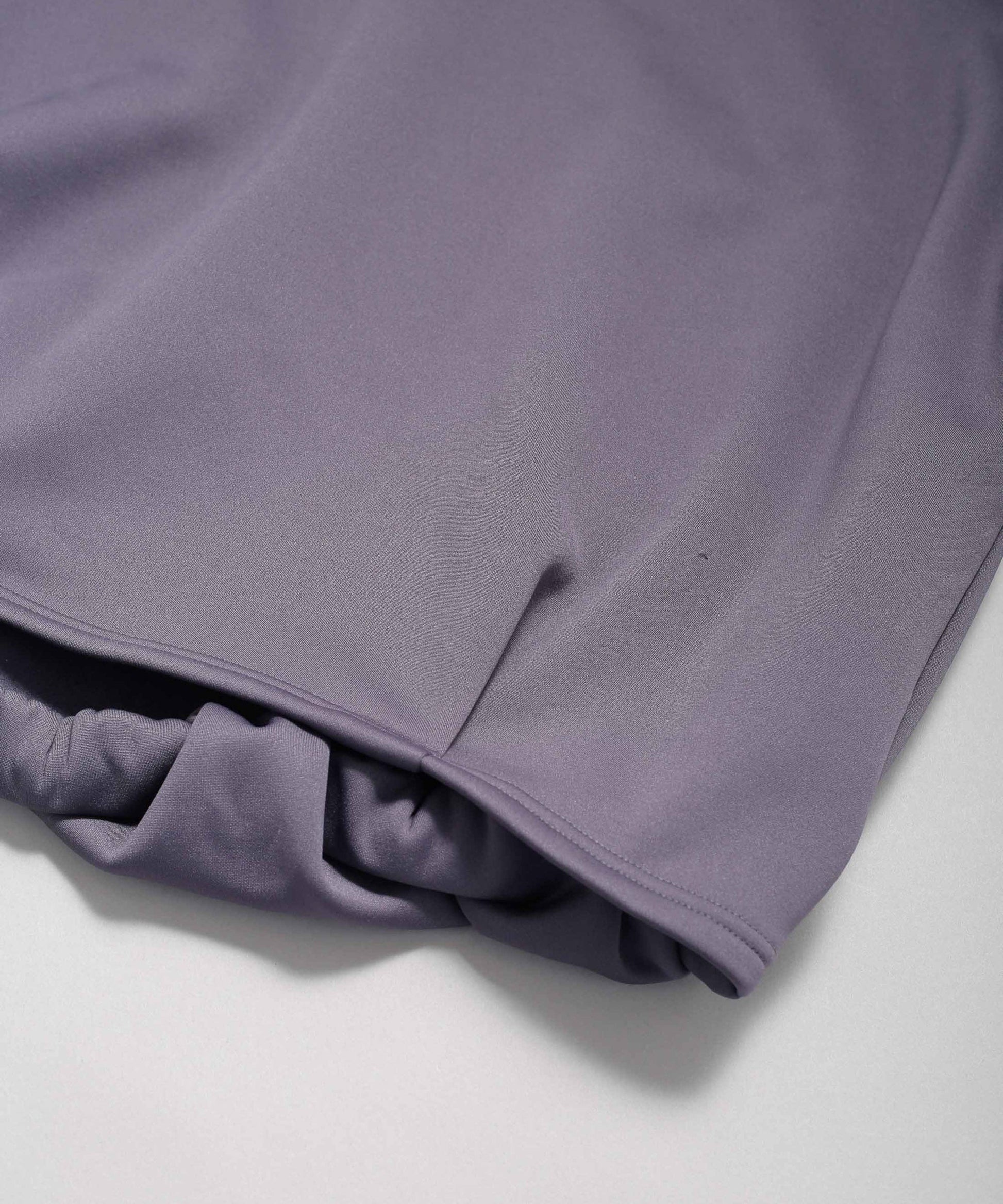 前裾にタック、後裾にはギャザーを入れ立体的なシルエットが完成。
