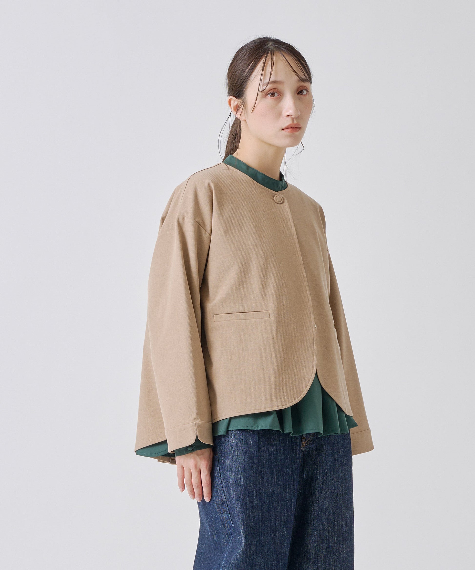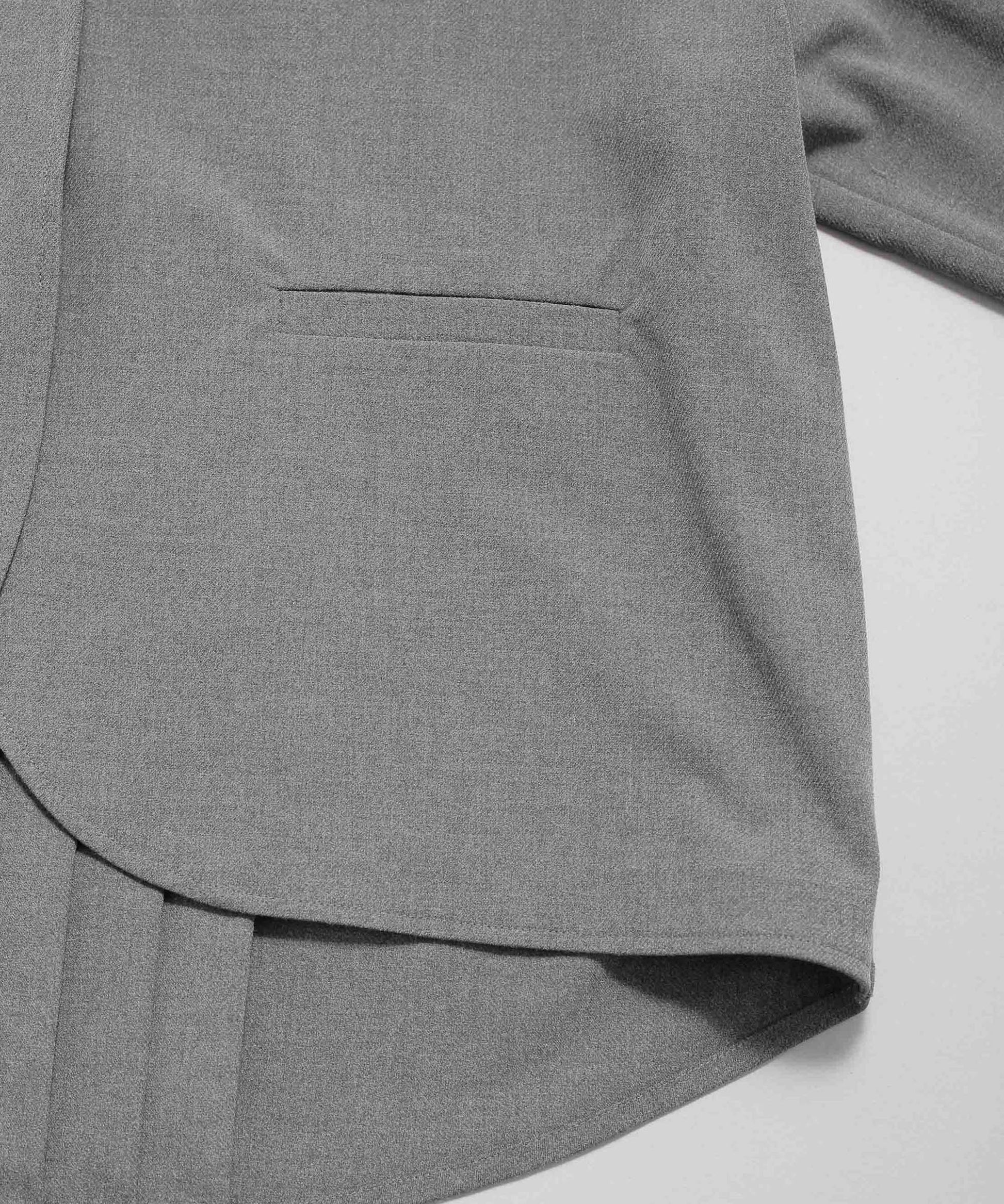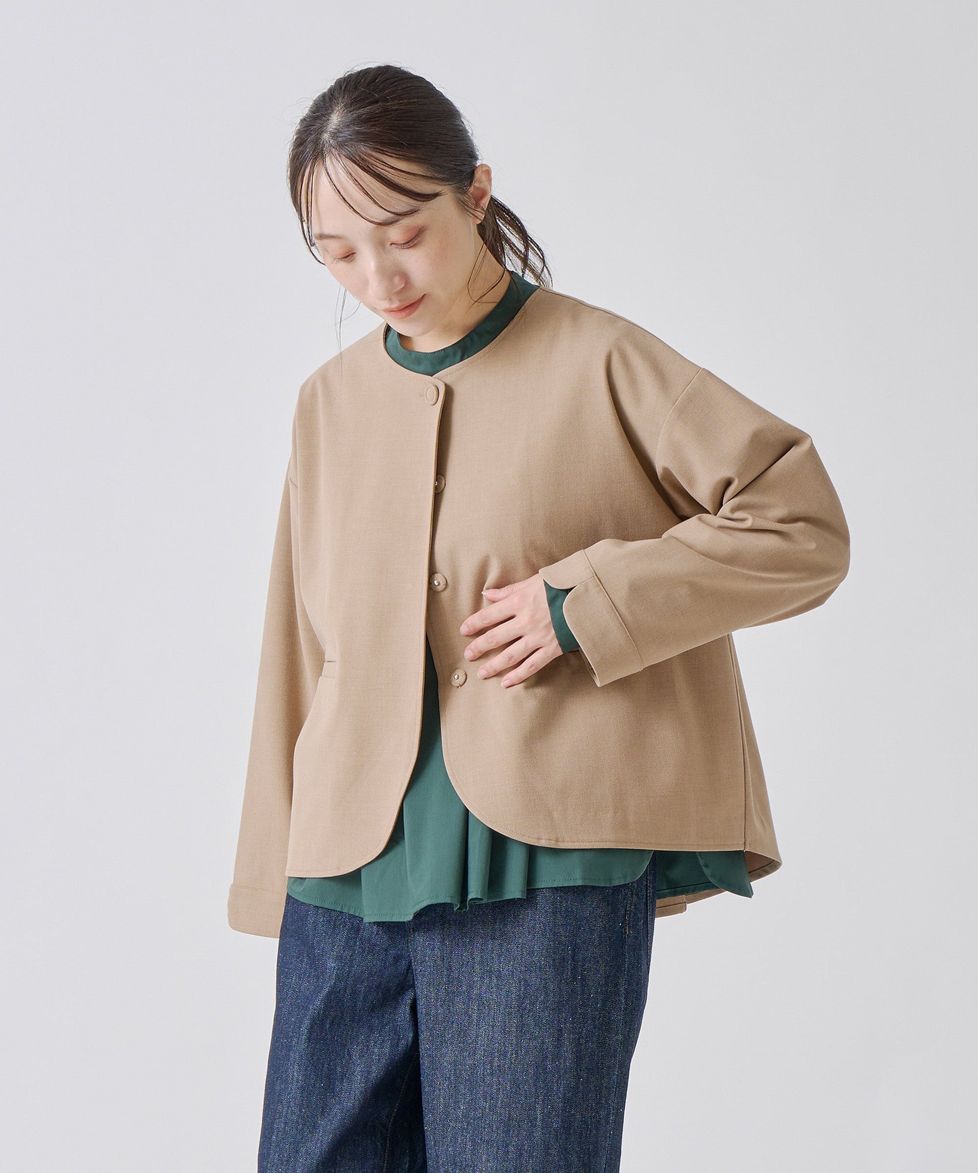 前から後ろにかけて着丈の長さを出し、後ろ姿はヒップが隠れる安心の丈感に仕上げました。