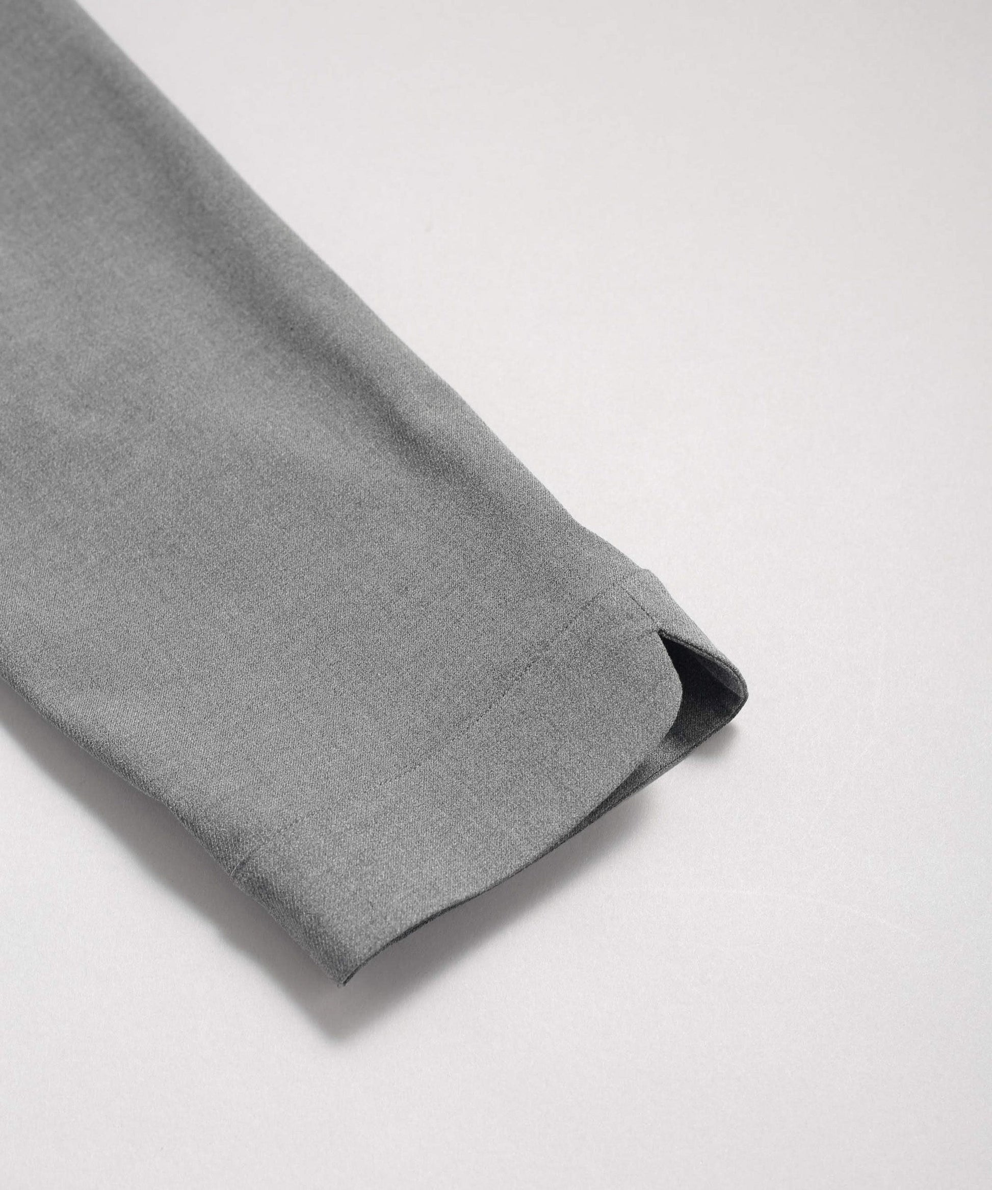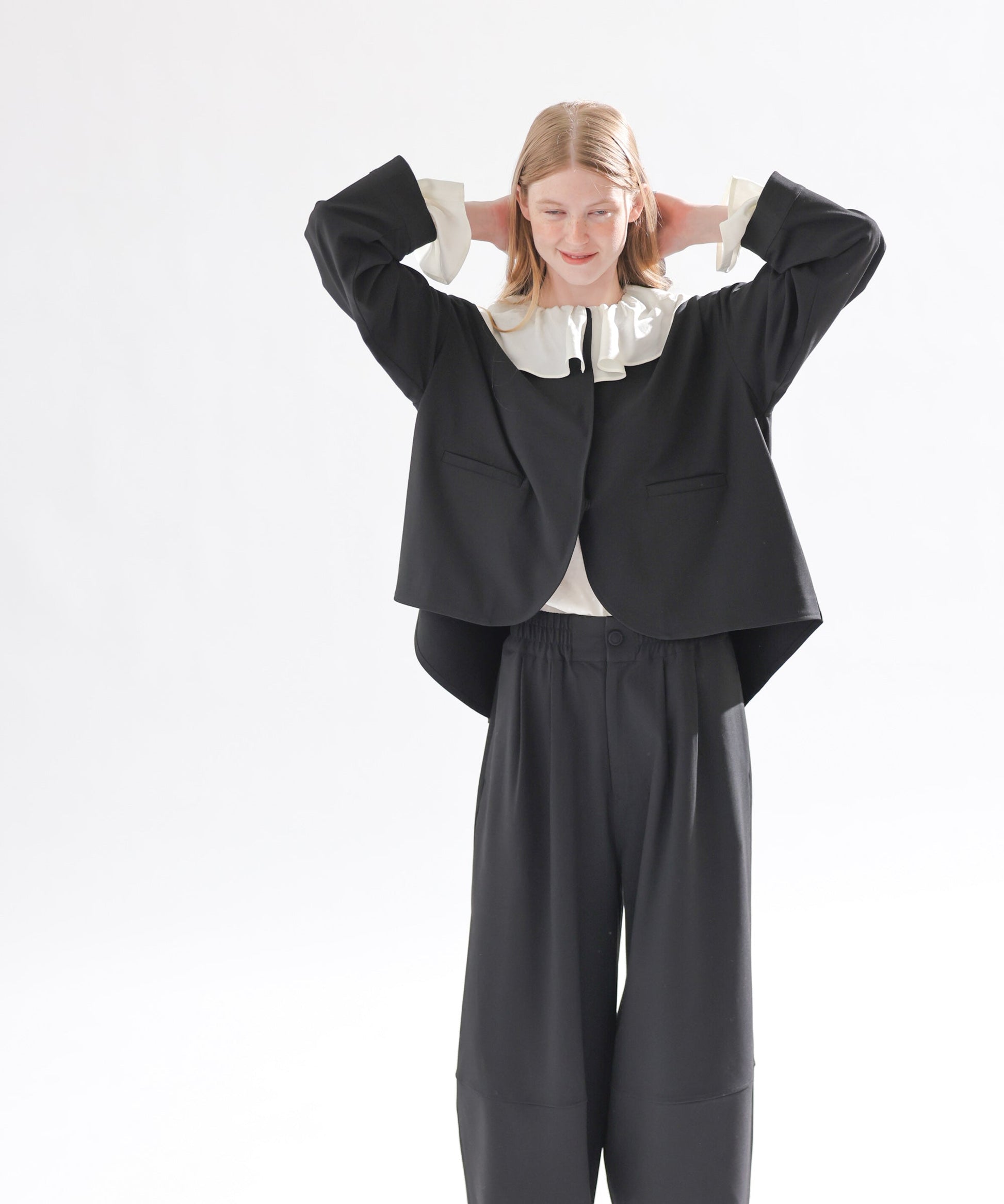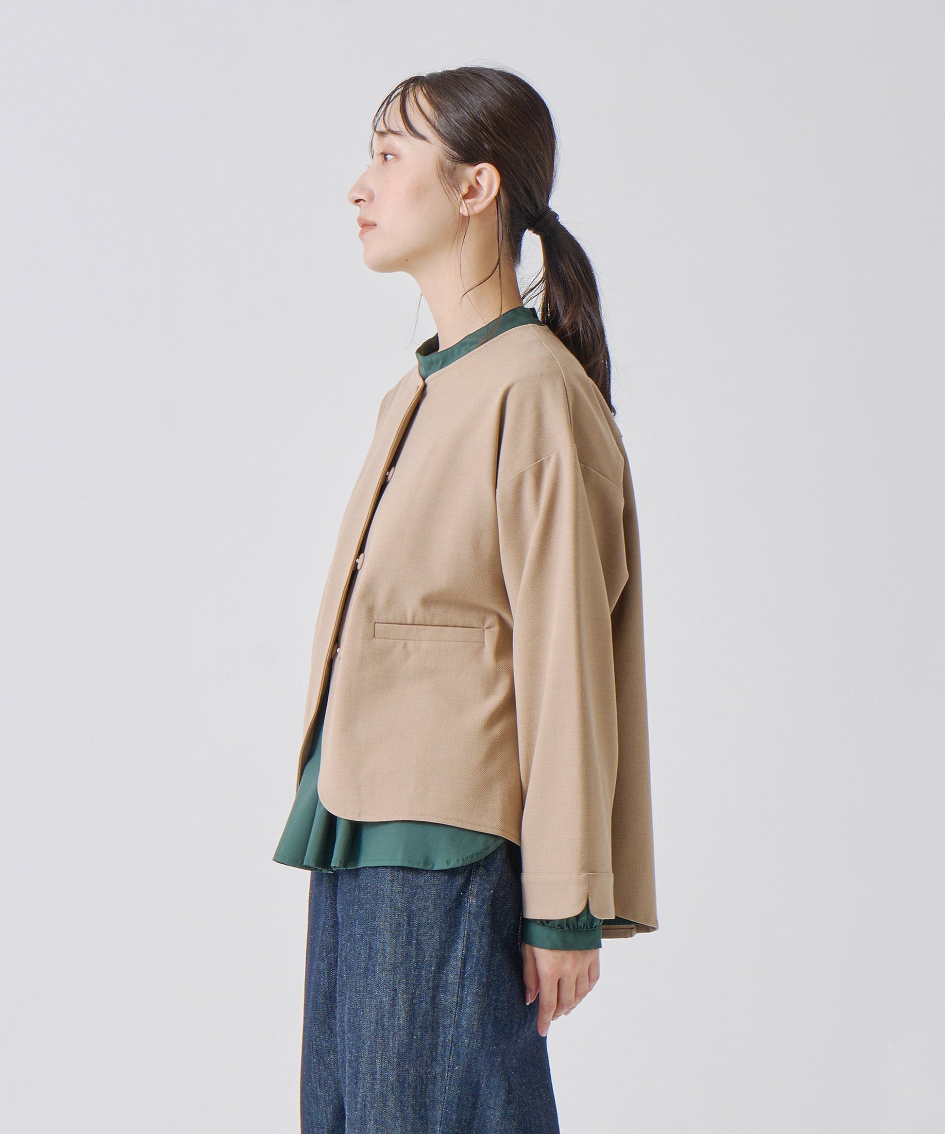 前から後ろにかけて着丈の長さを出し、後ろ姿はヒップが隠れる安心の丈感に仕上げました。