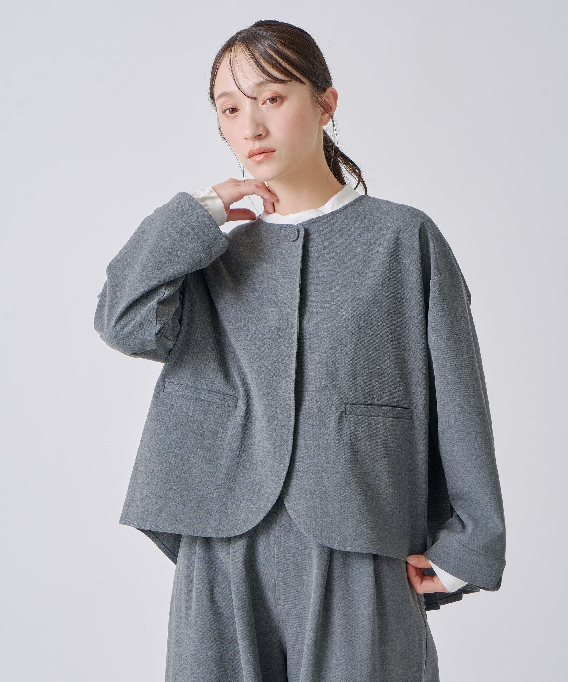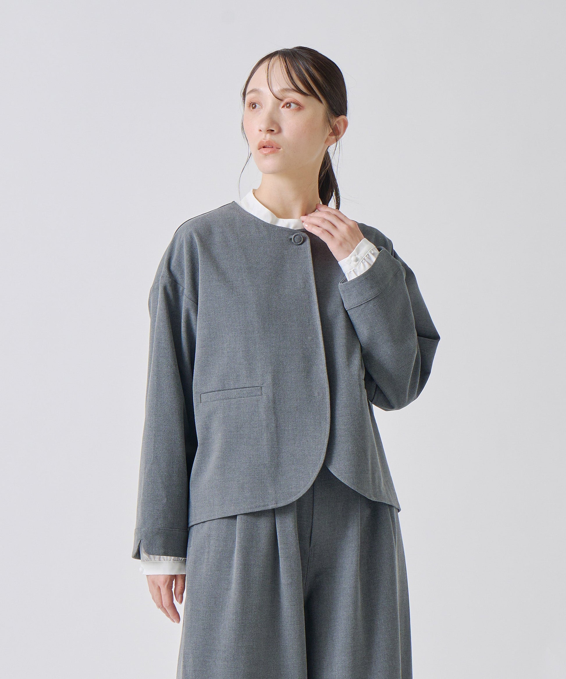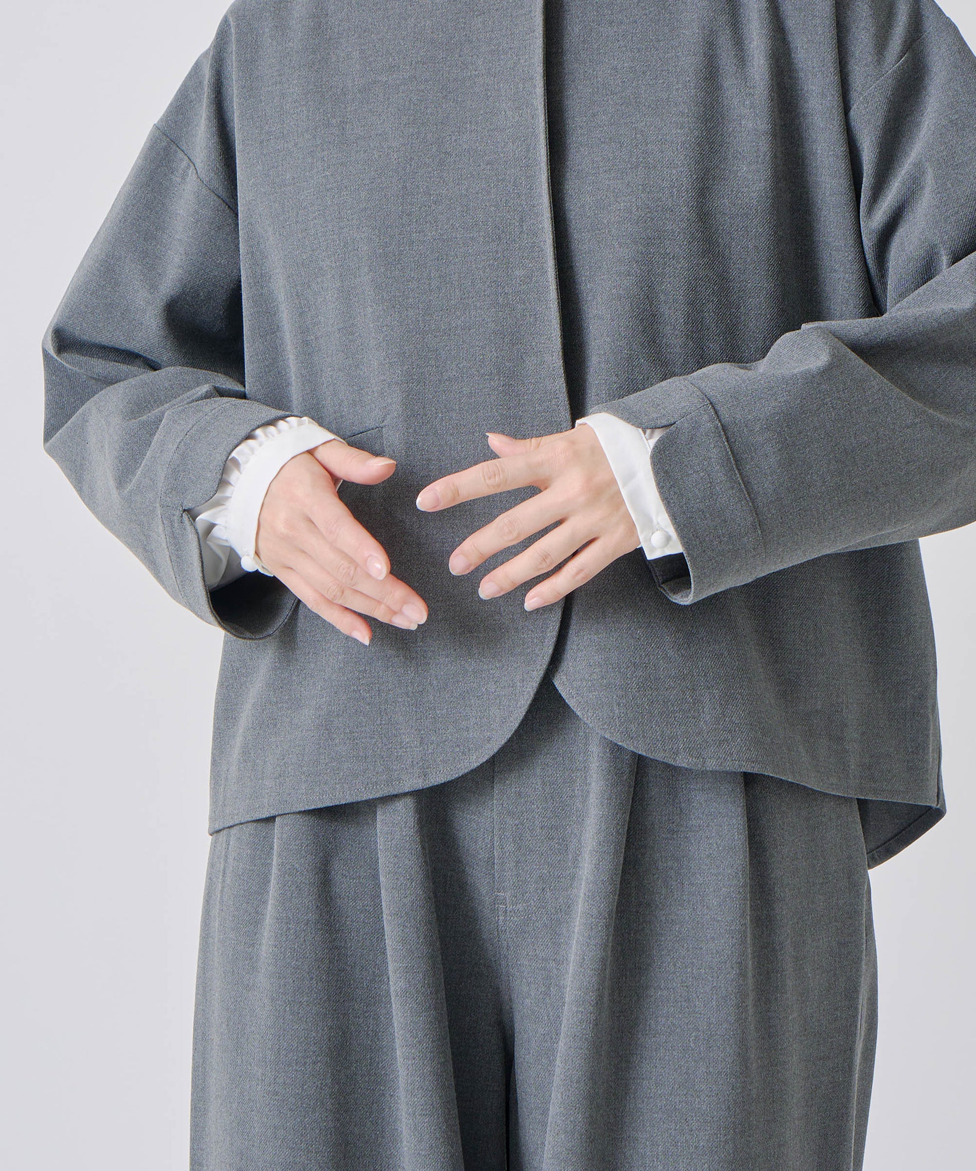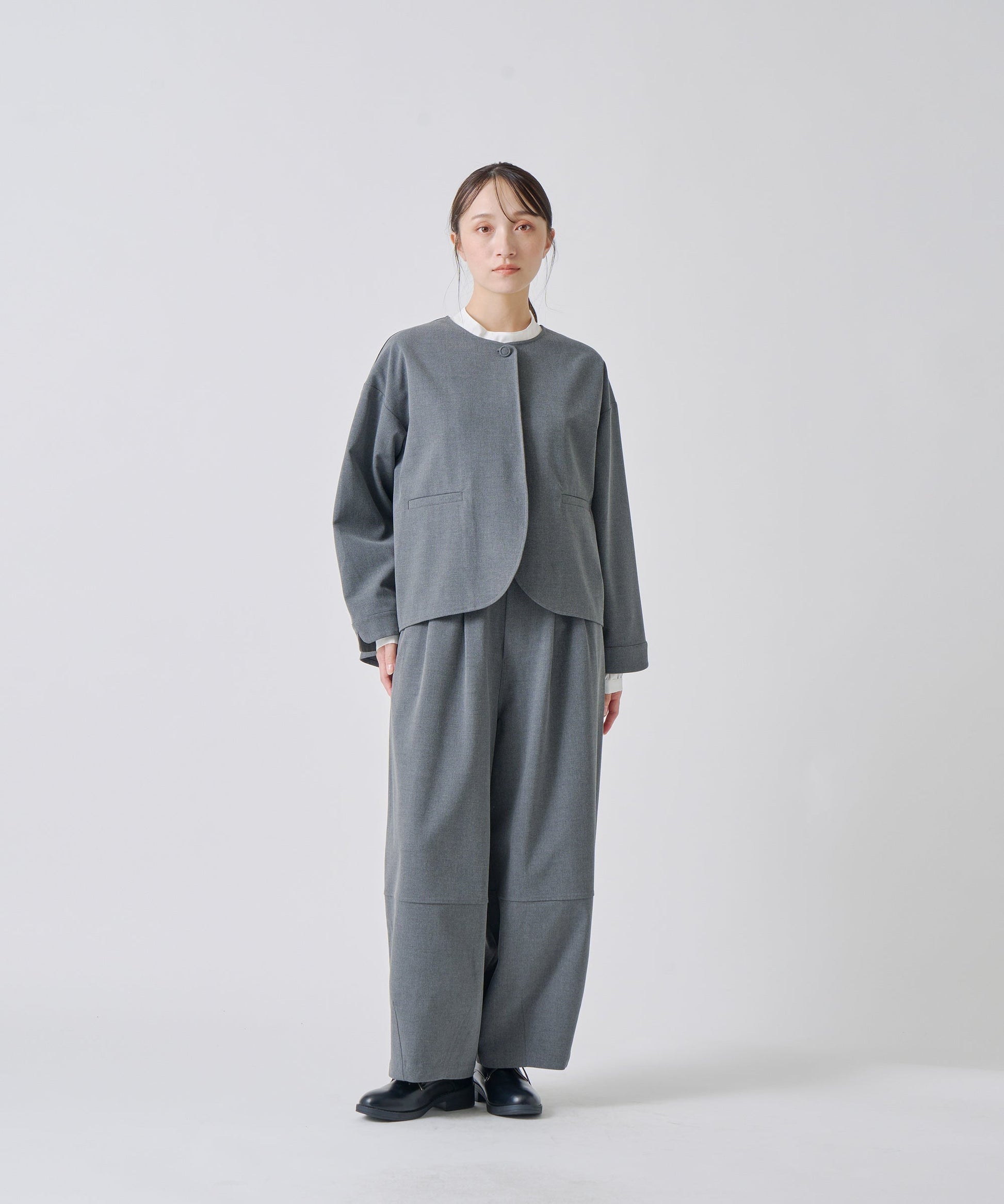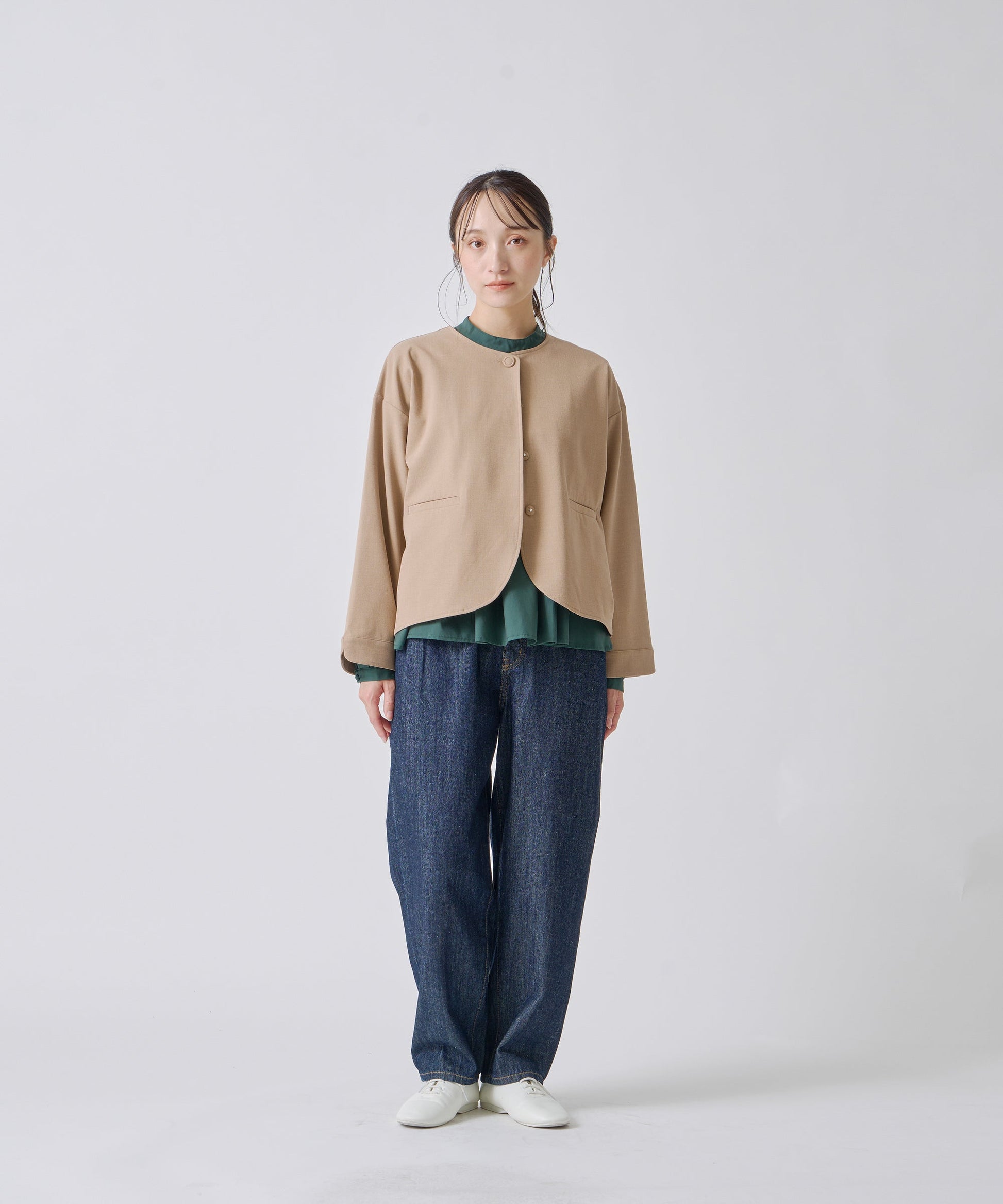 同素材のパンツとセットアップでオケージョンシーンや、オフィスでの羽織り、デニムと合わせてカジュアルダウンするのもおすすめです。