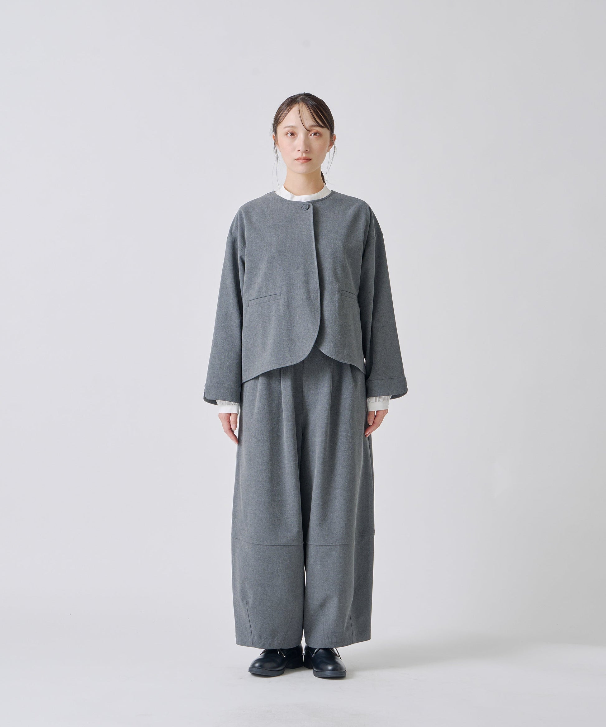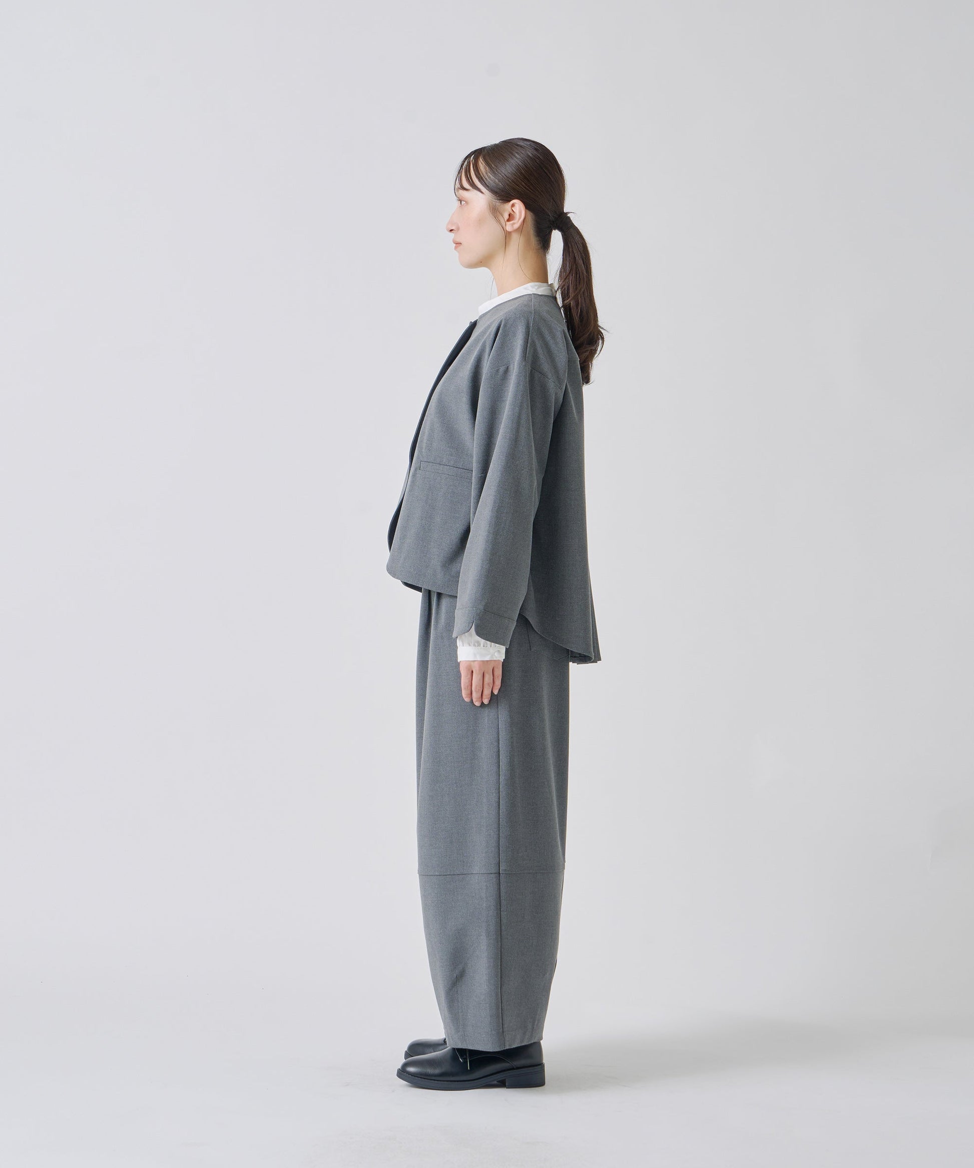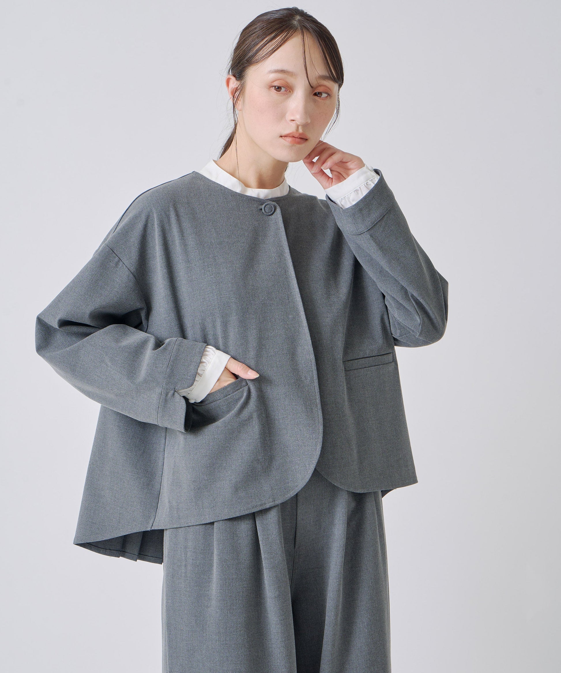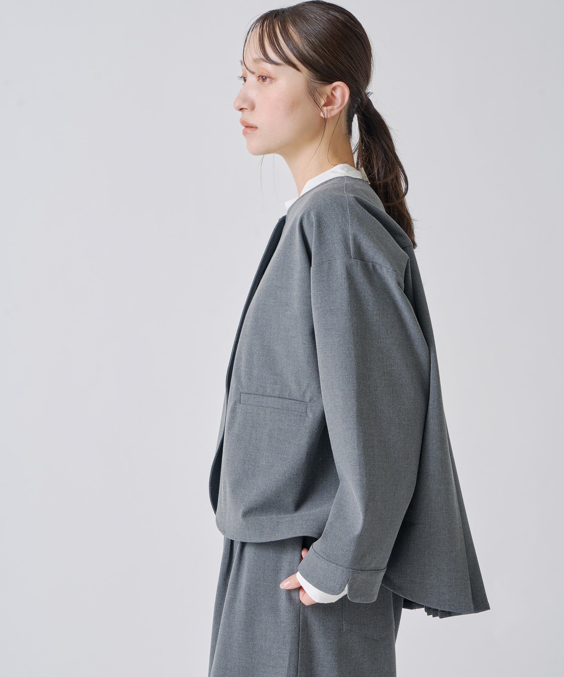 同素材のパンツとセットアップでオケージョンシーンや、オフィスでの羽織り、デニムと合わせてカジュアルダウンするのもおすすめです。