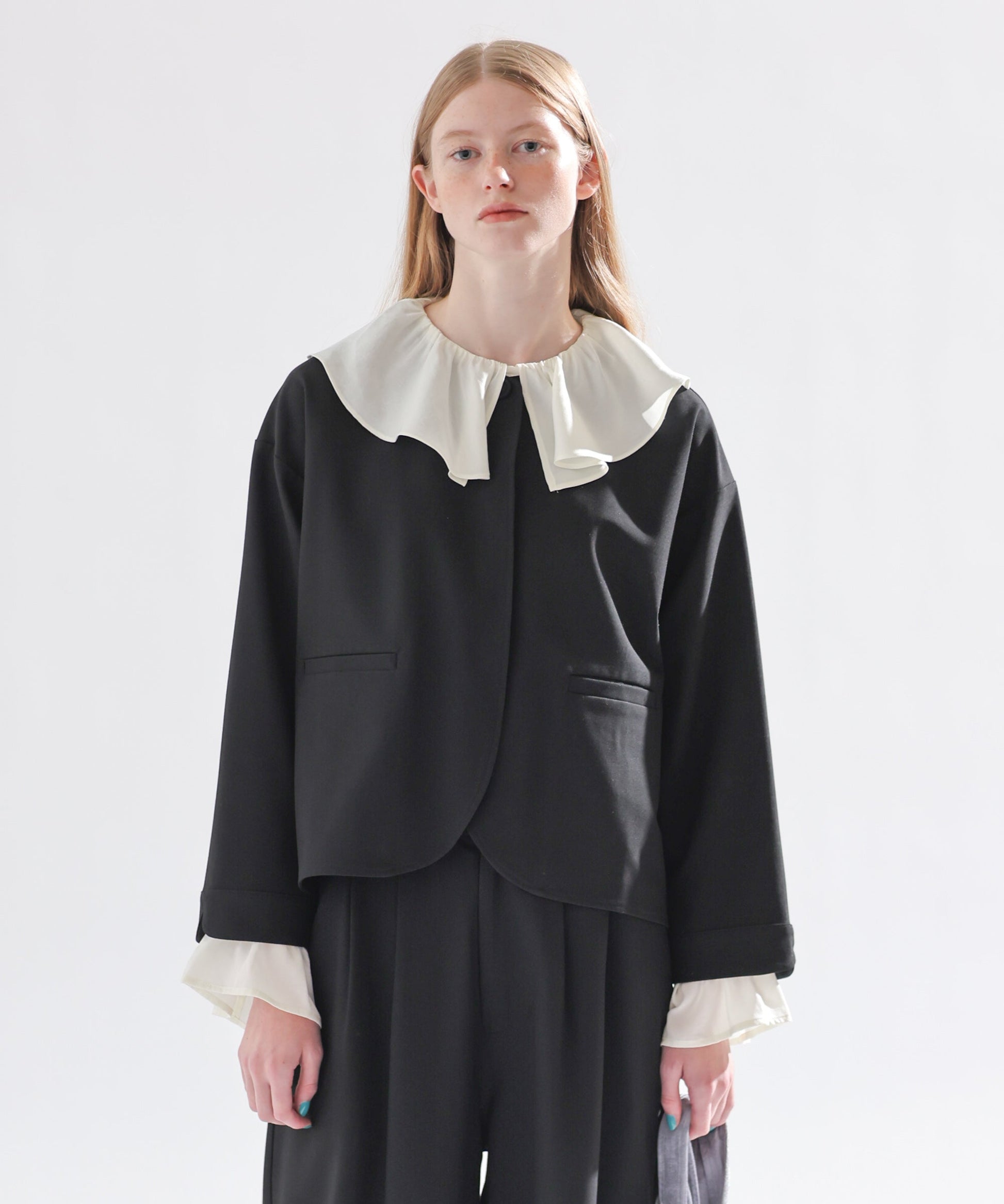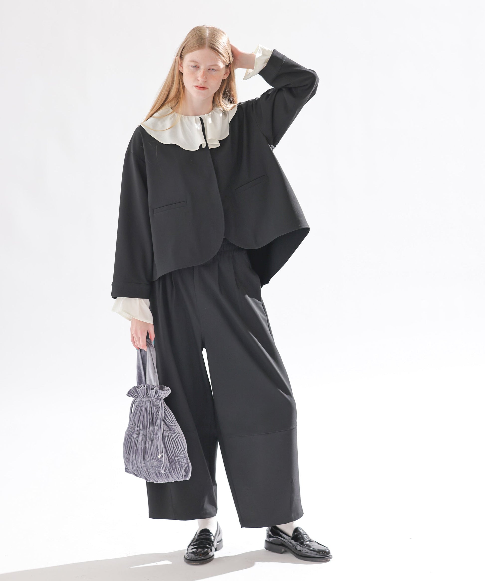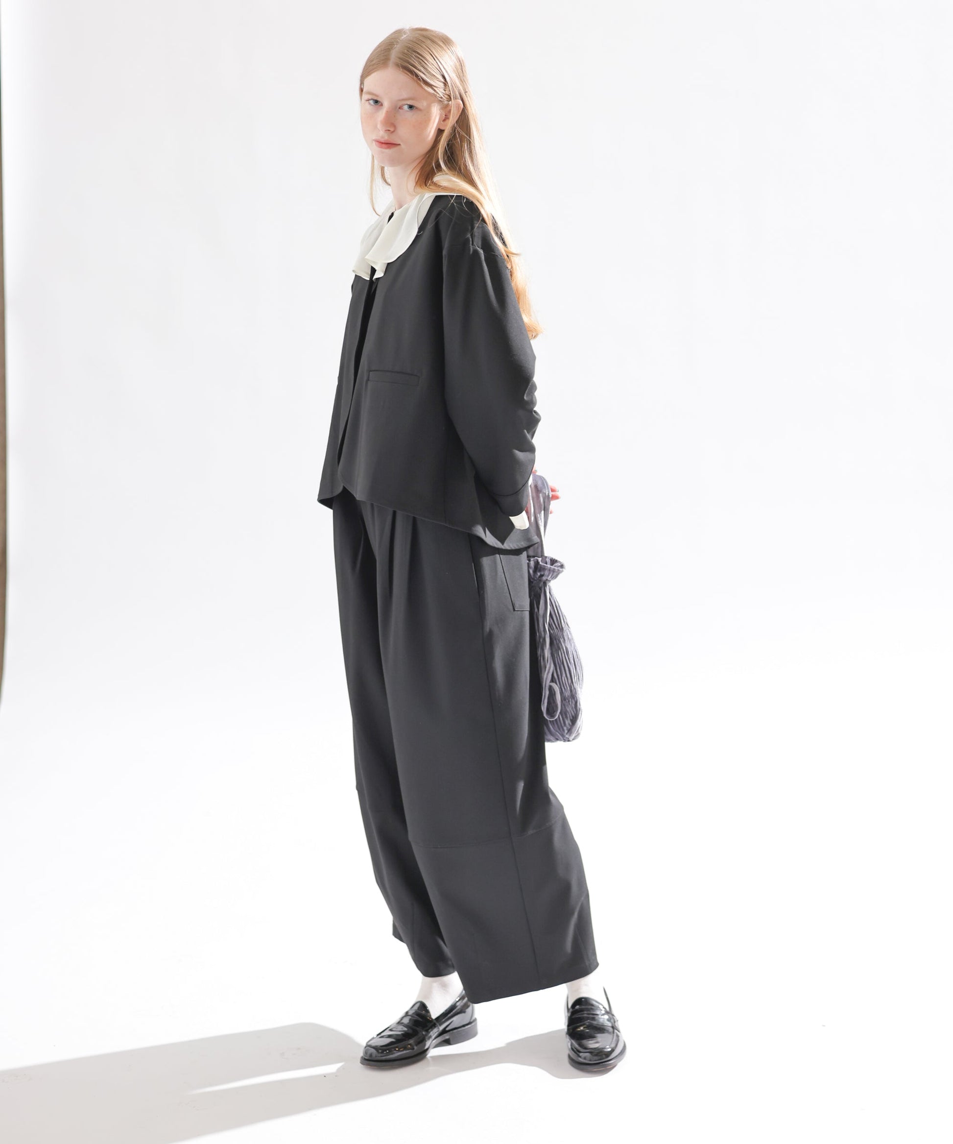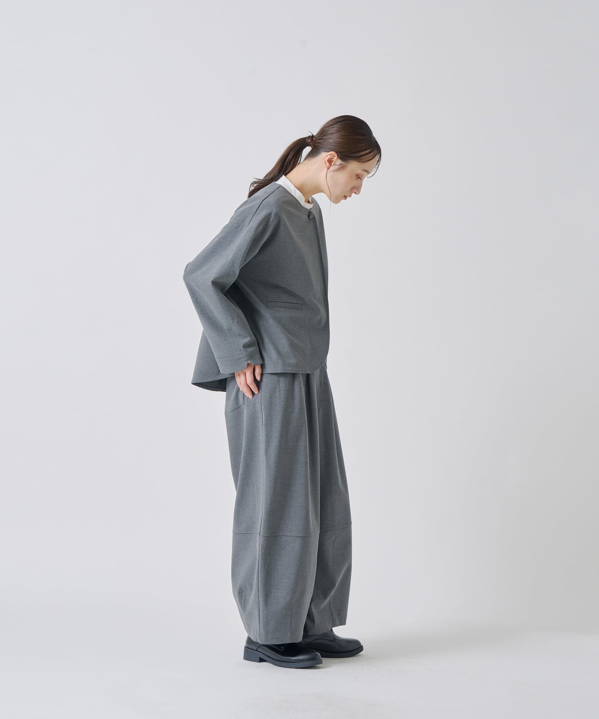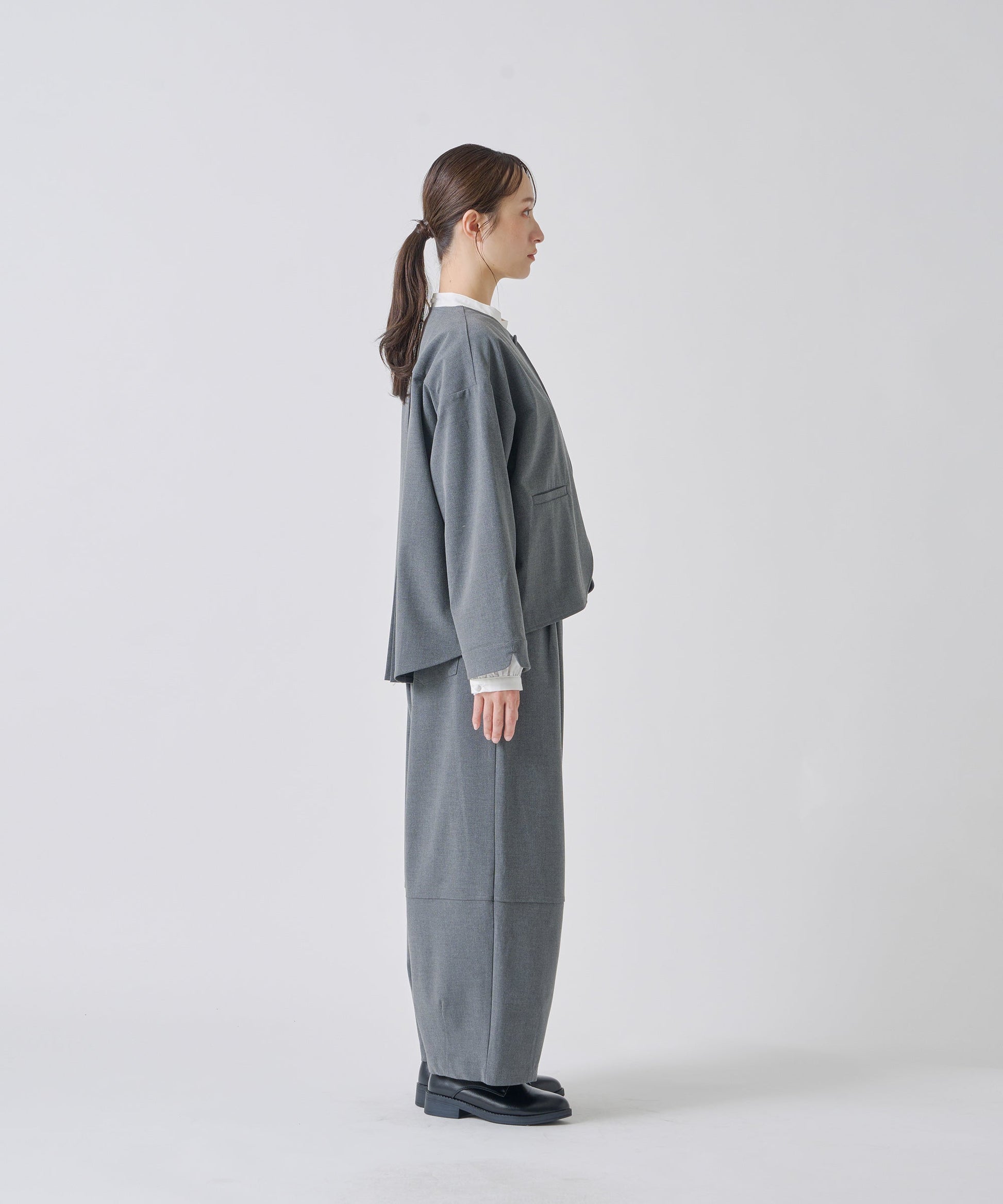 同素材のパンツとセットアップでオケージョンシーンや、オフィスでの羽織り、デニムと合わせてカジュアルダウンするのもおすすめです。
