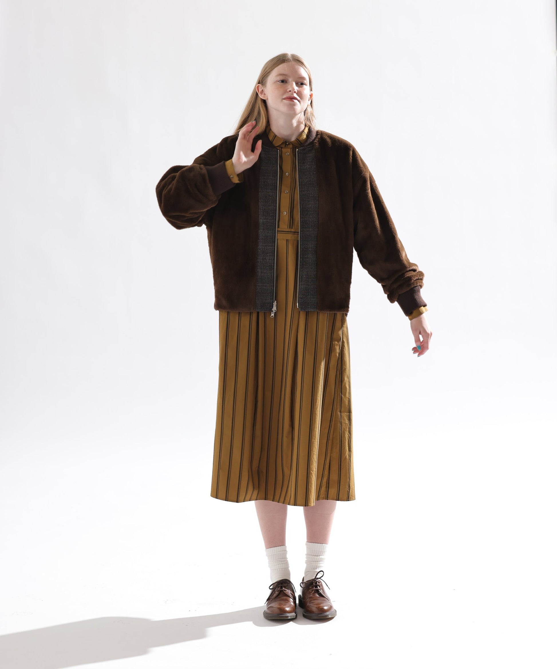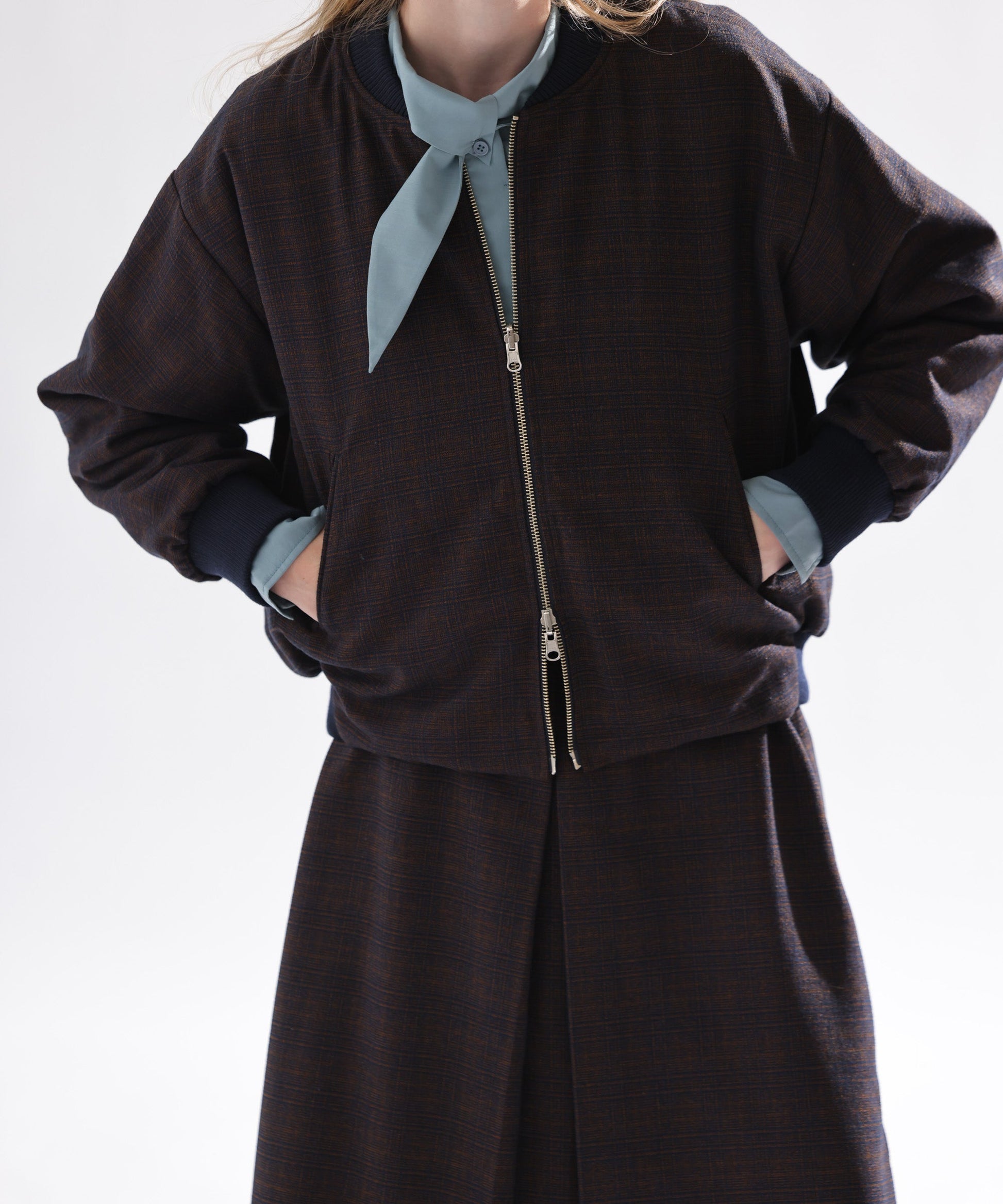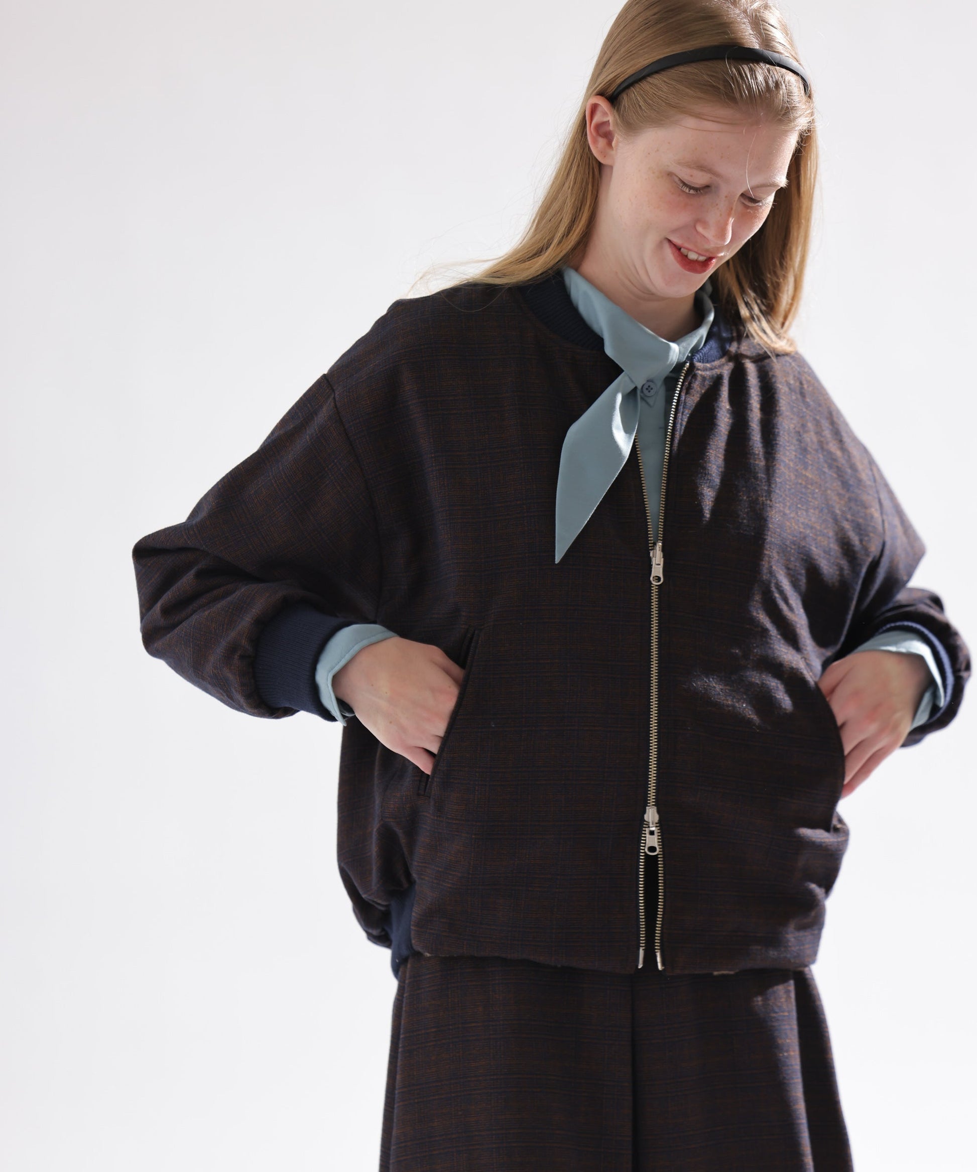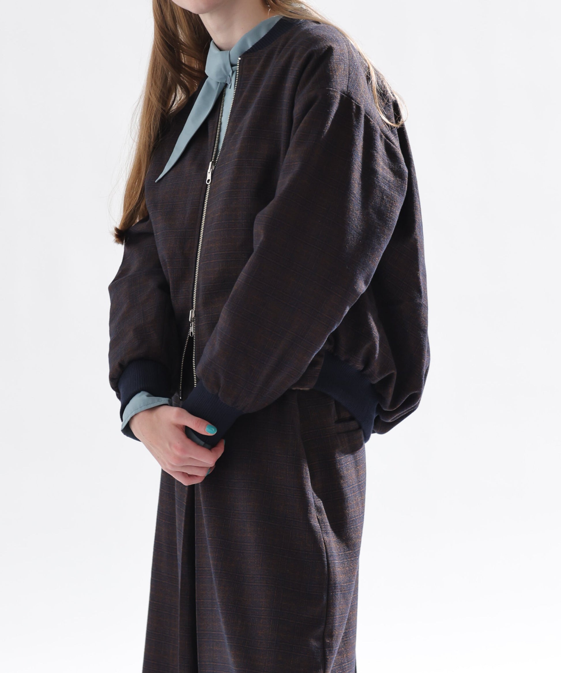MA-1タイプのジャケットで、首元・裾のリブといったMA-1ならではのデザインに、素材感を加え上品な印象に仕上げました。