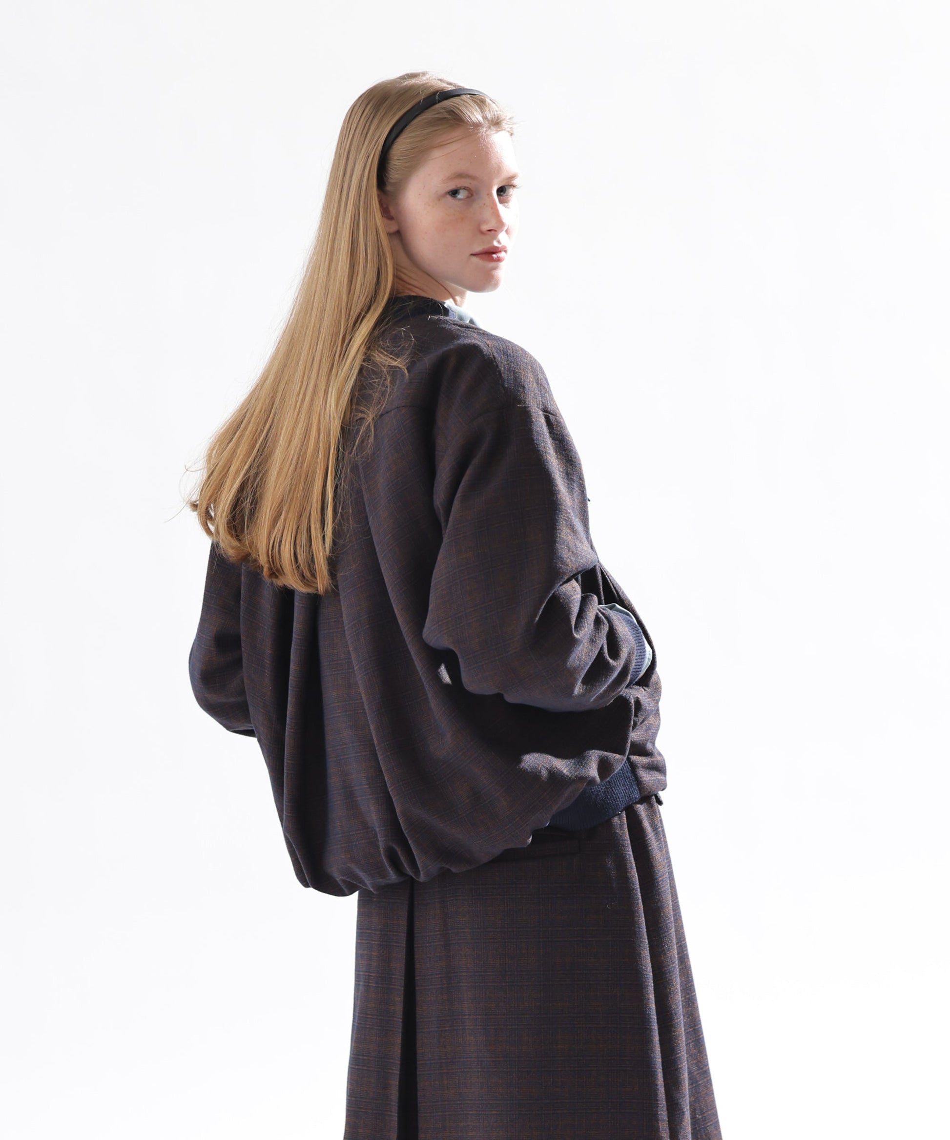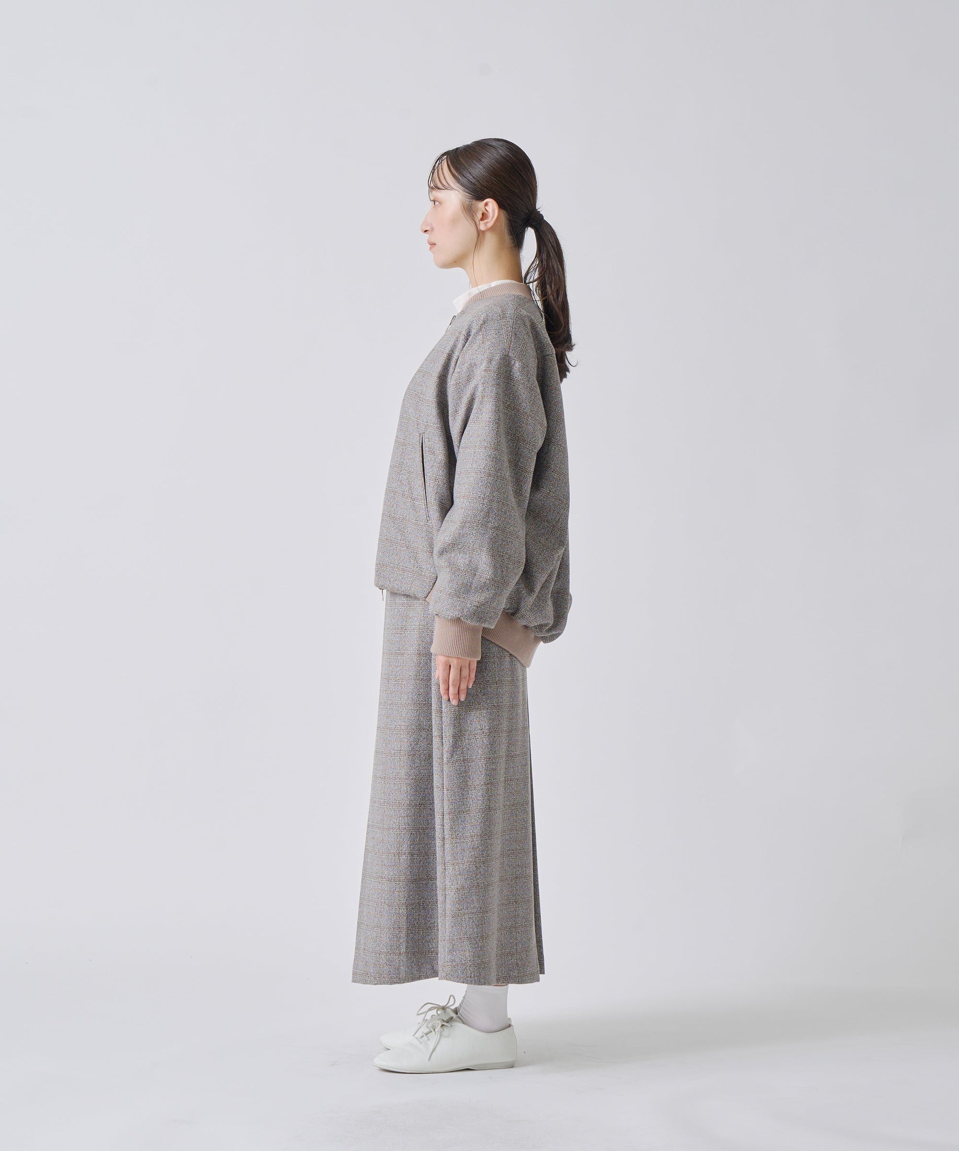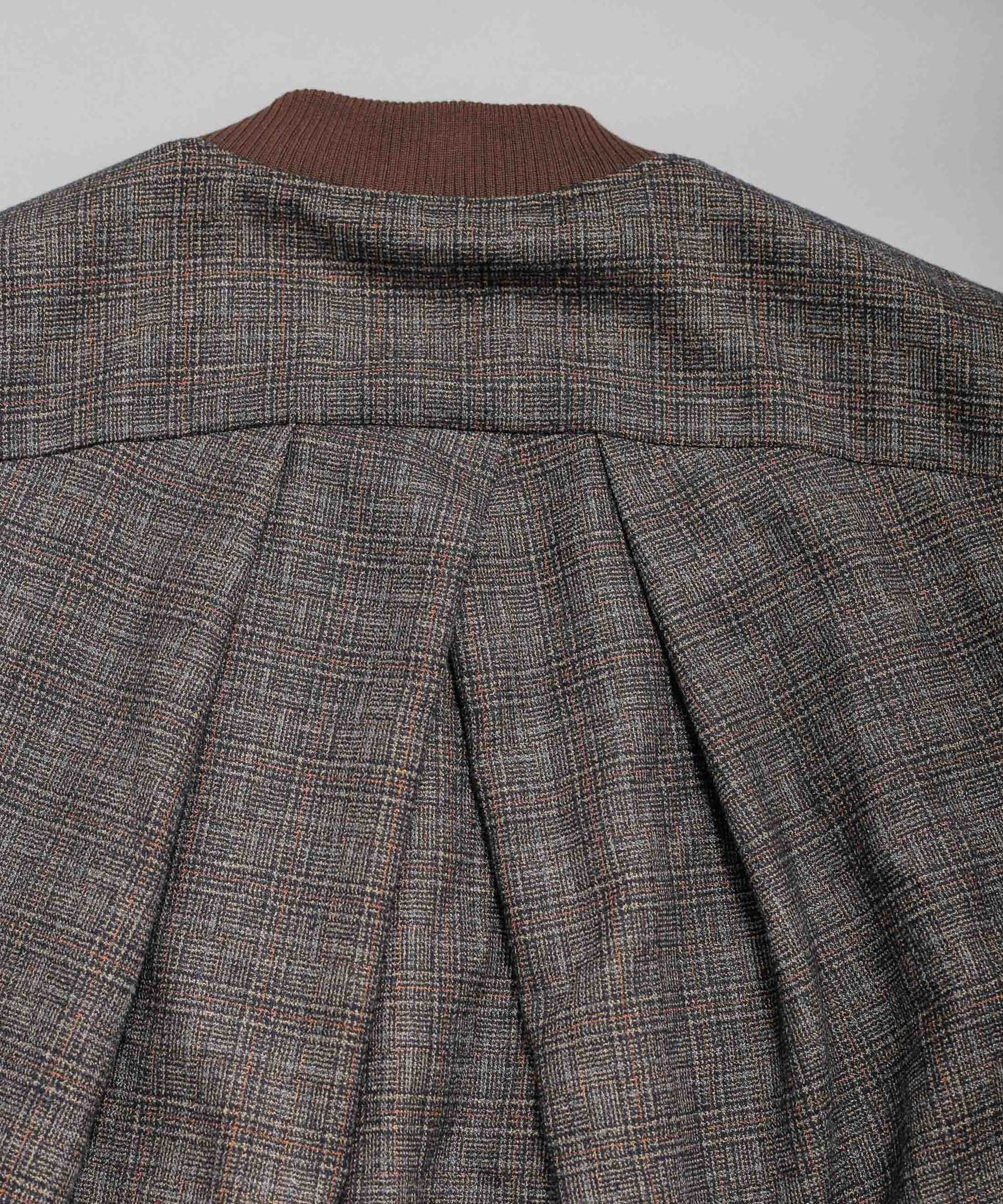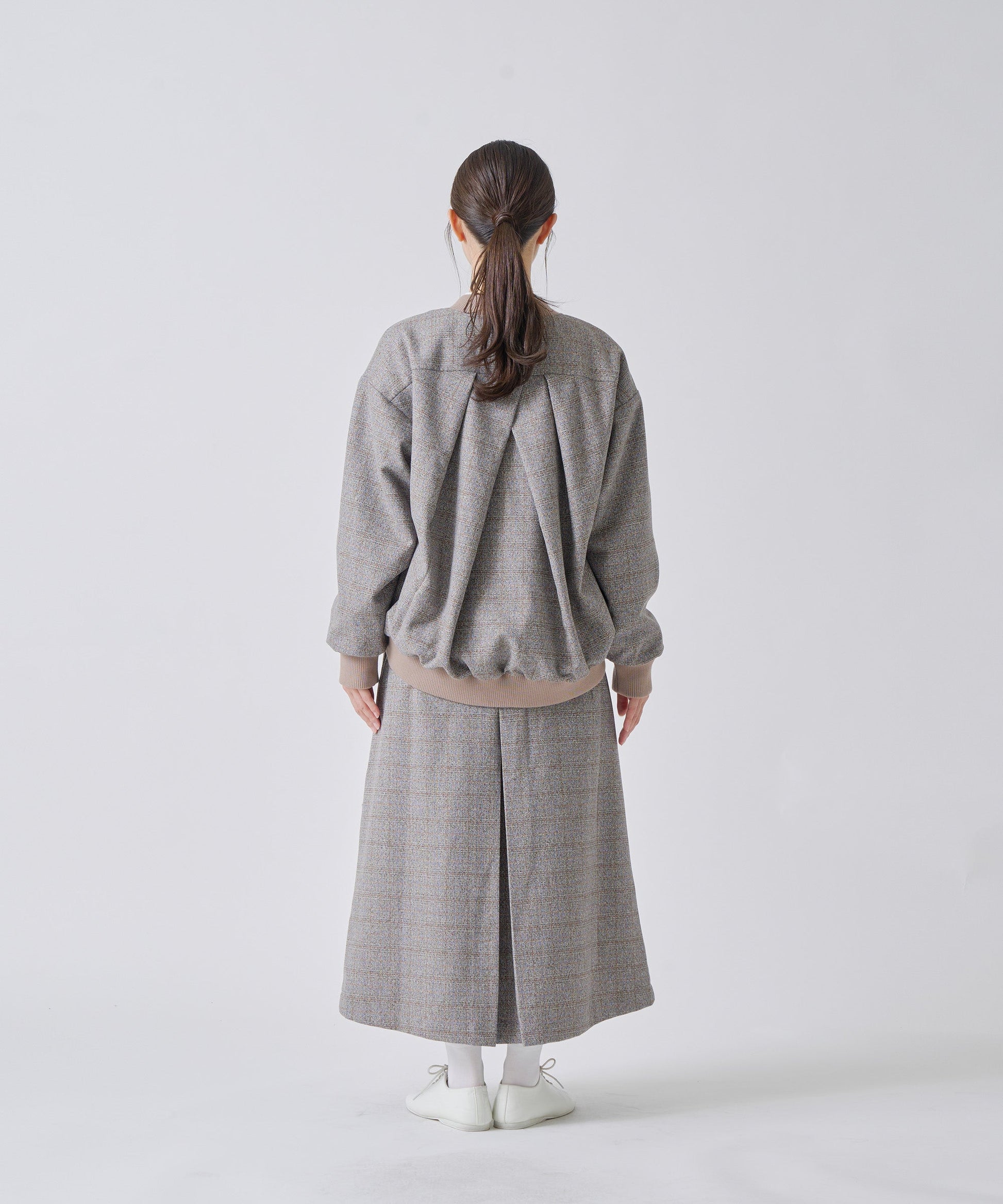 チェック柄面は、バックヨークにタックを入れ、裾はギャザーが寄せることで生地の重なりと、丸みのあるシルエットが完成