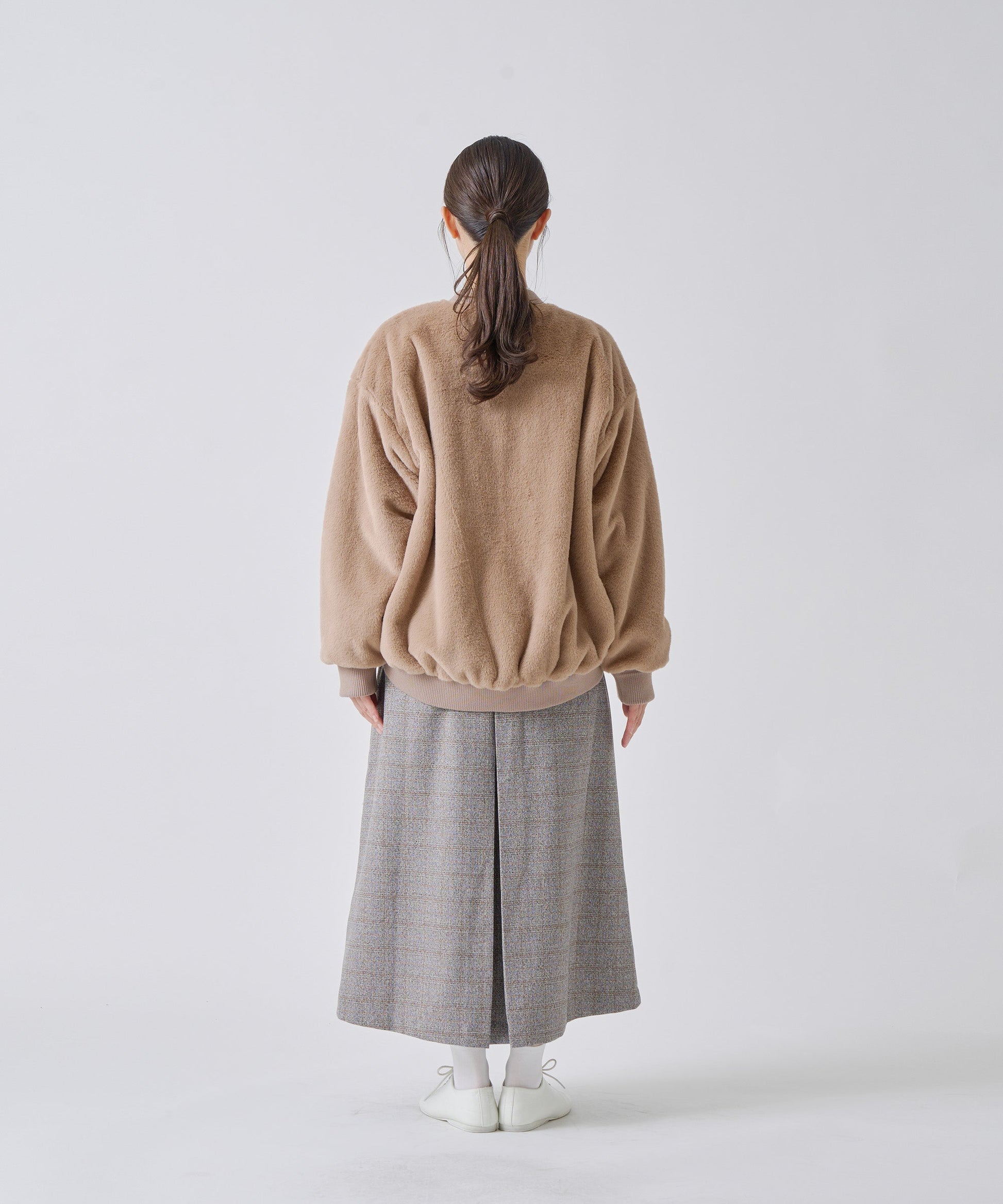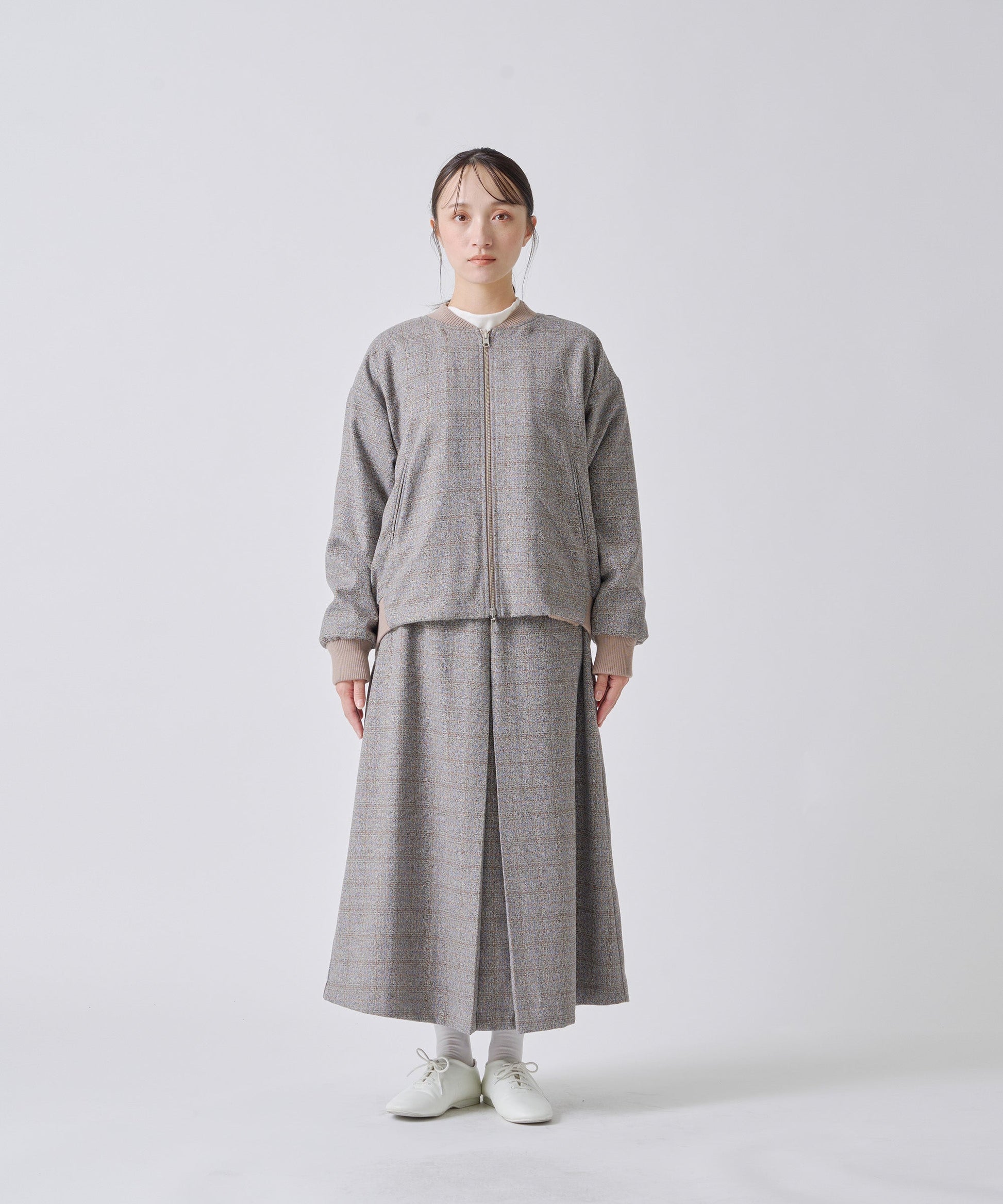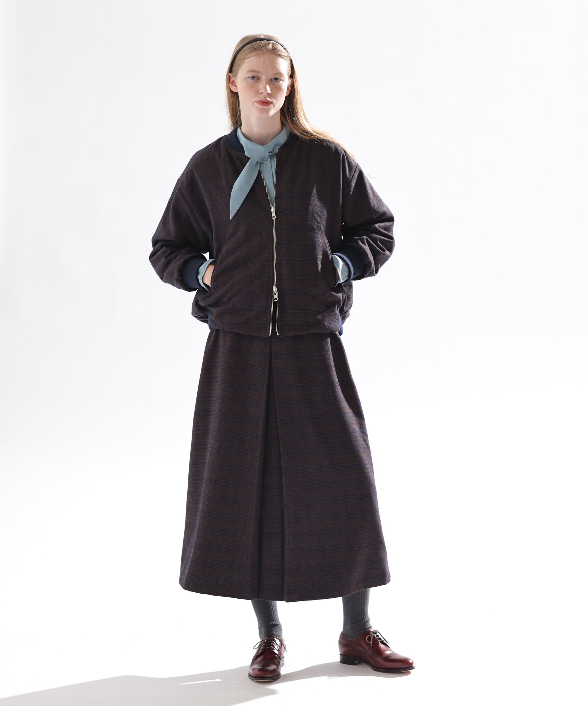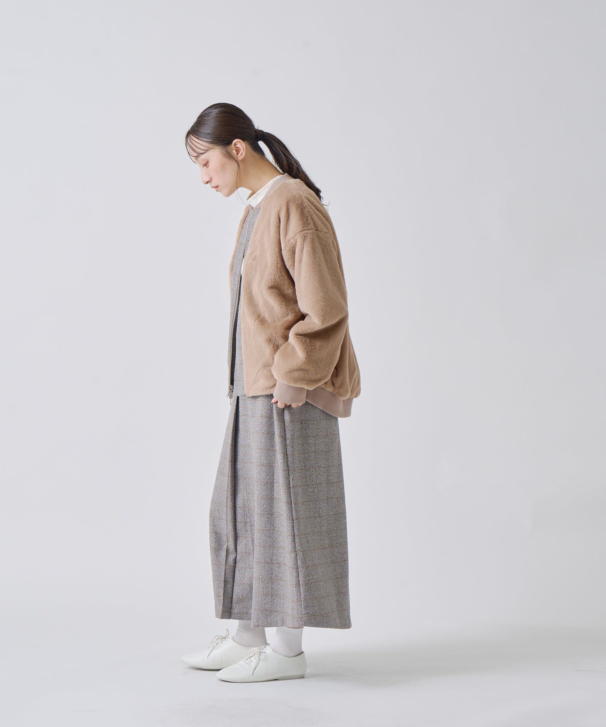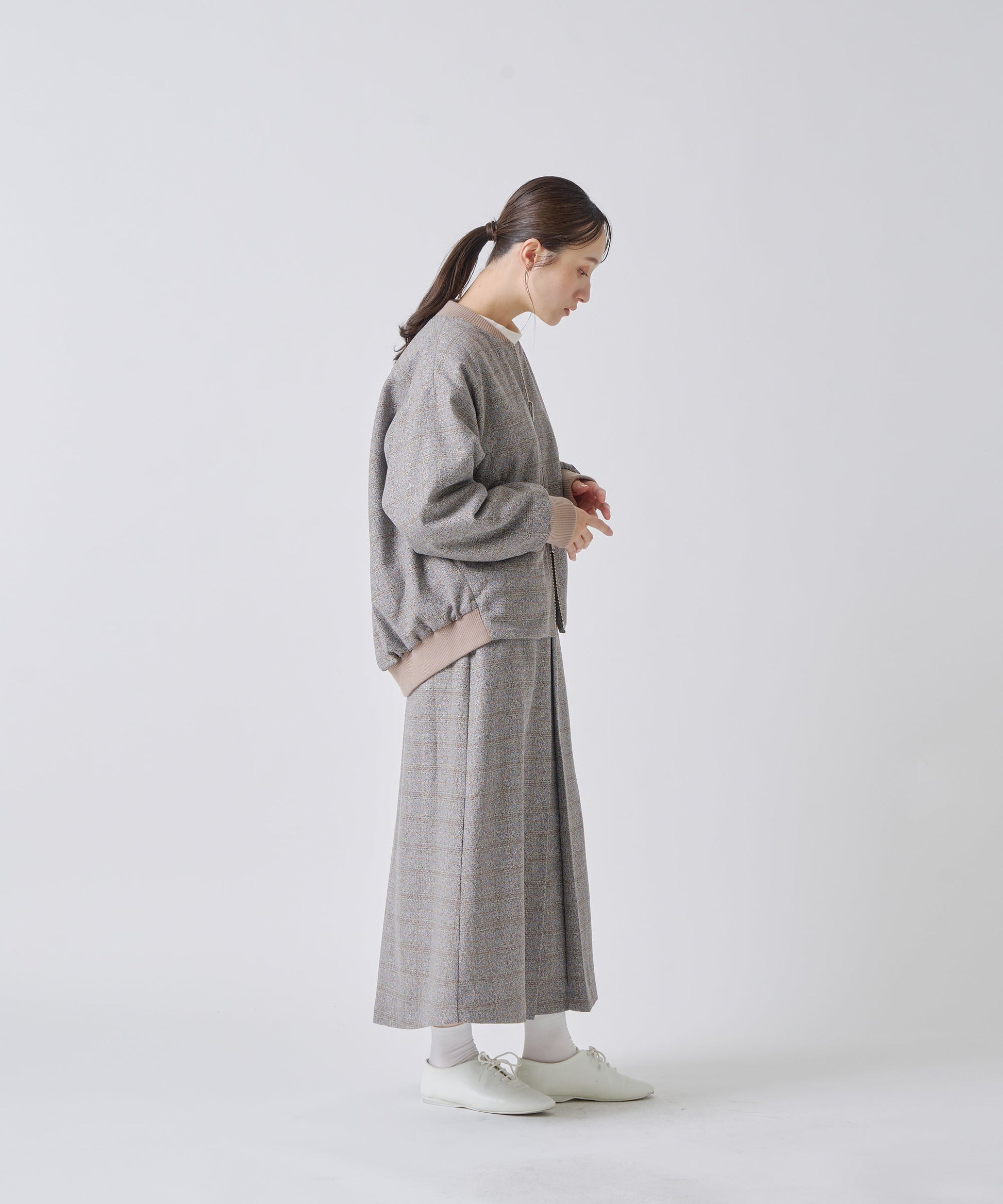 チェック柄面は、バックヨークにタックを入れ、裾はギャザーが寄せることで生地の重なりと、丸みのあるシルエットが完成
