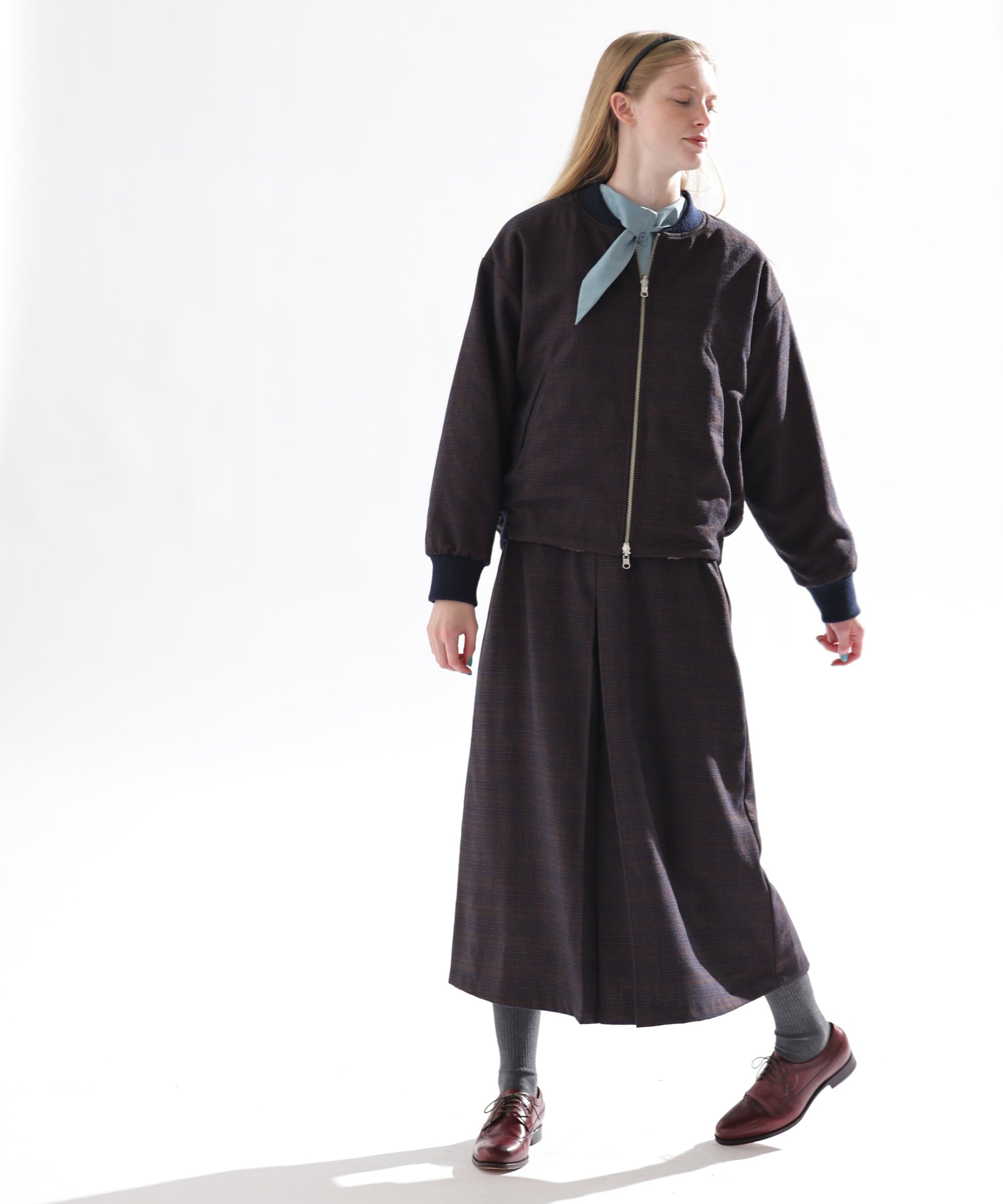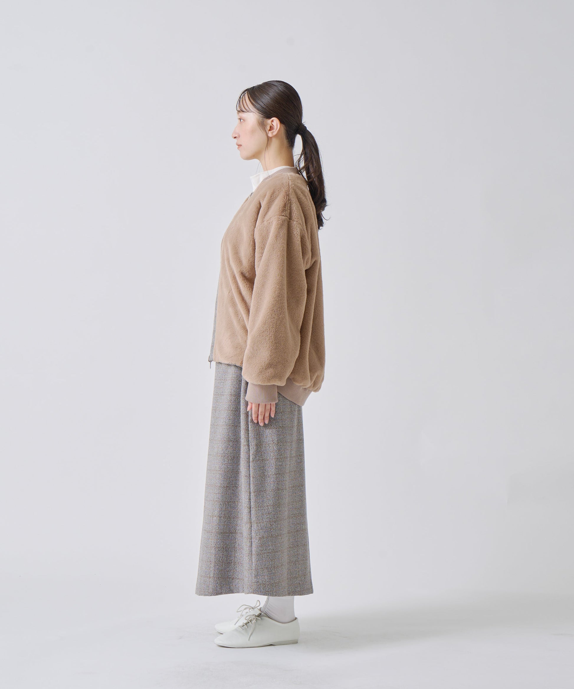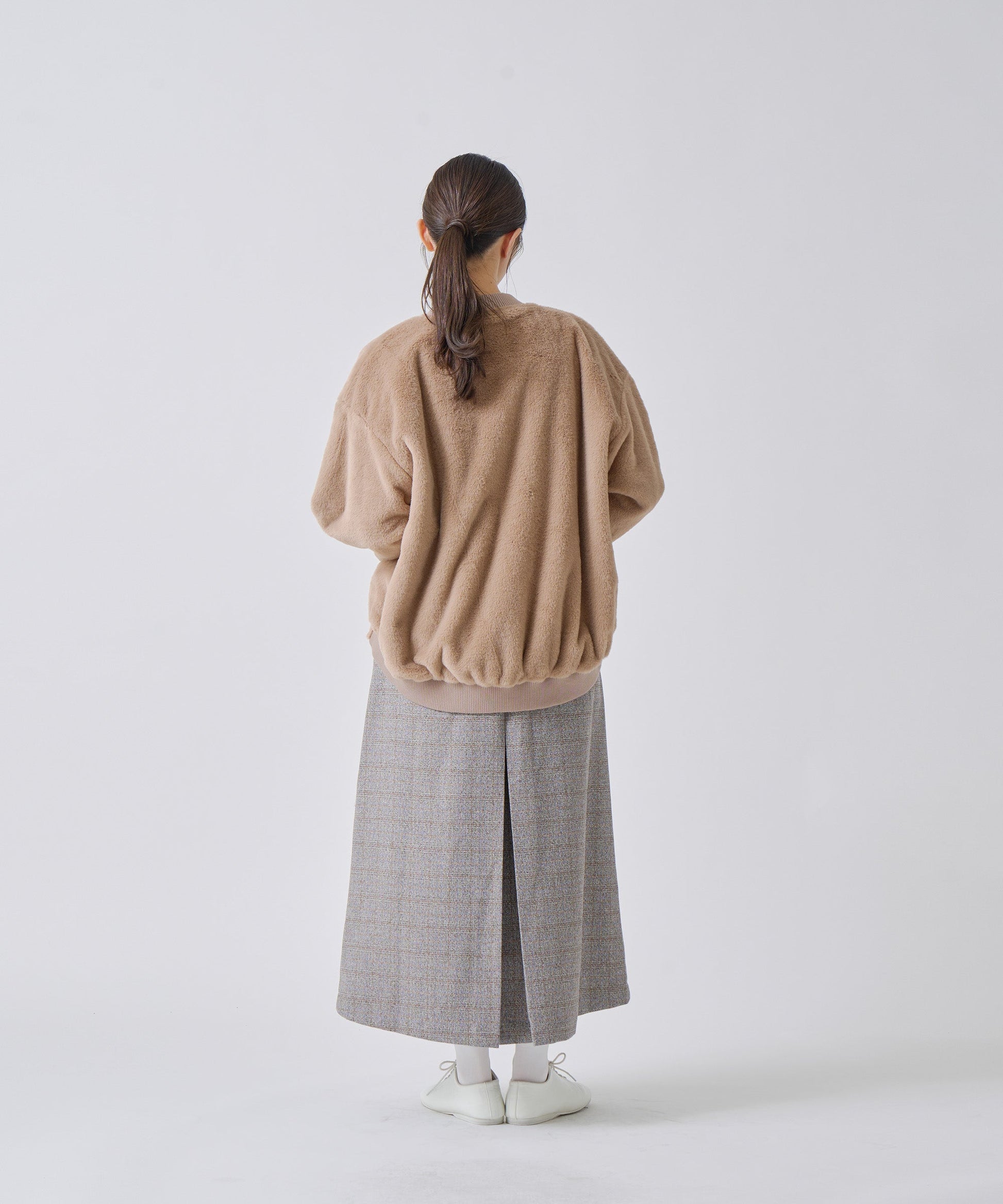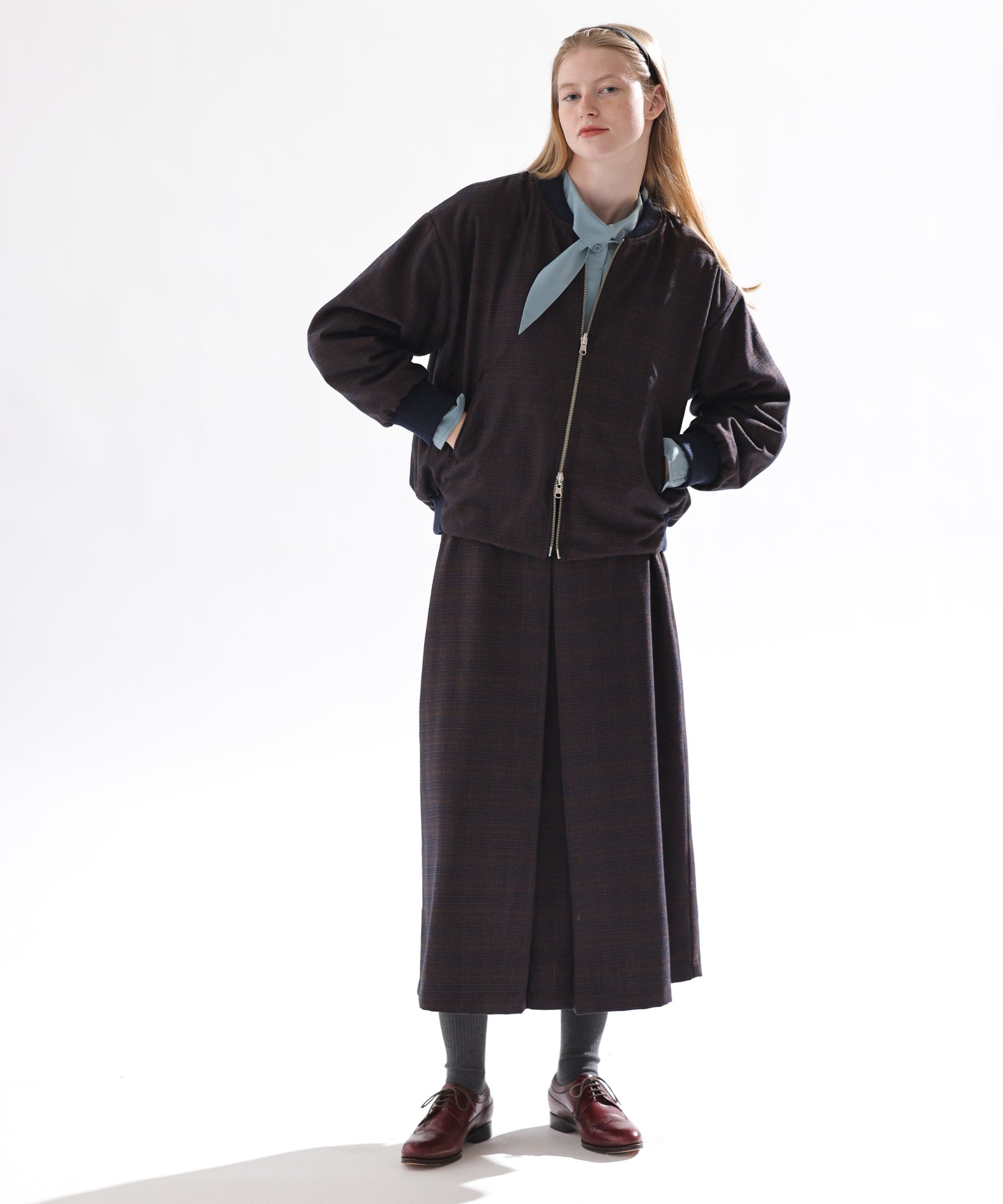 チェック柄面は、バックヨークにタックを入れ、裾はギャザーが寄せることで生地の重なりと、丸みのあるシルエットが完成
