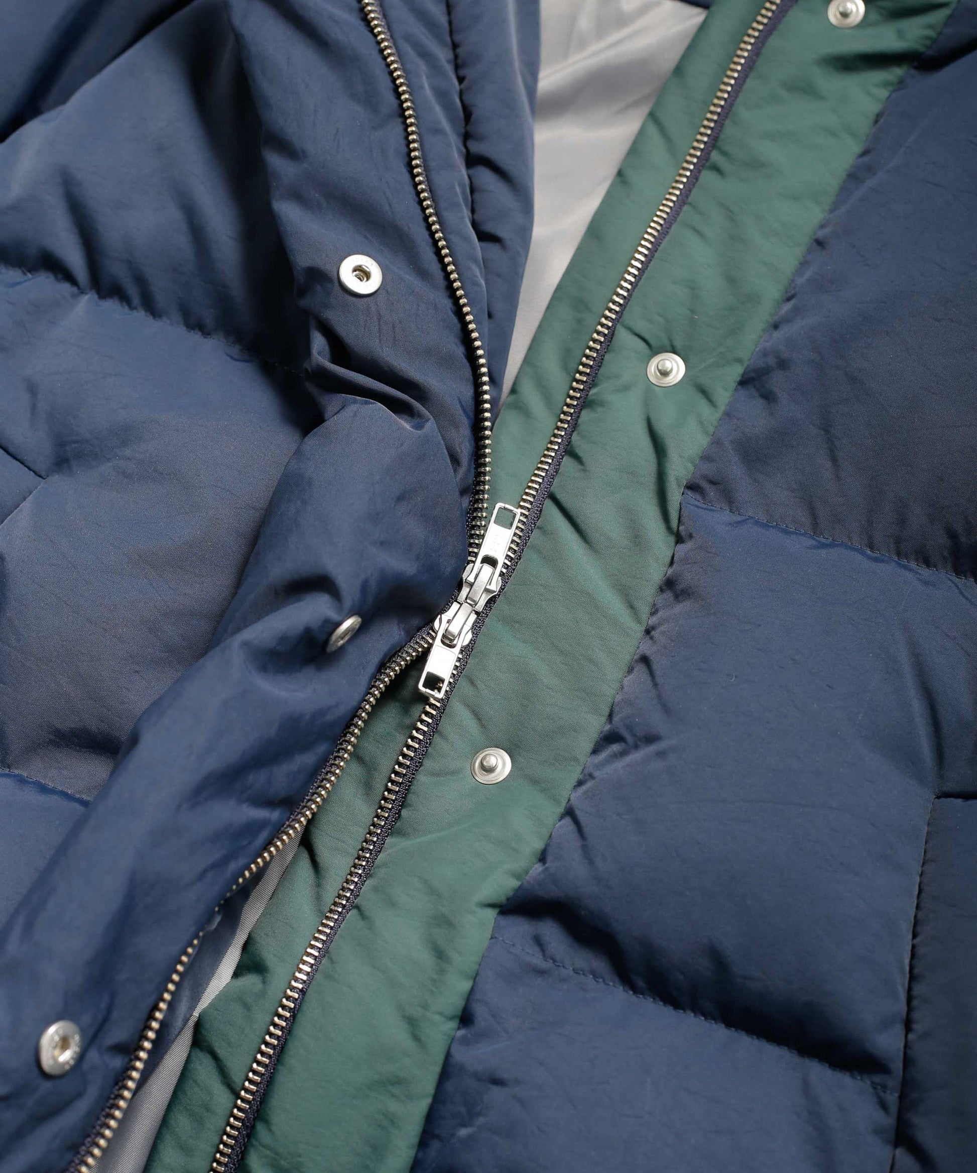 胸元のパーツ下から配色の生地が見えるデザインでZIPを締めての着用でもデザインを感じる1枚。