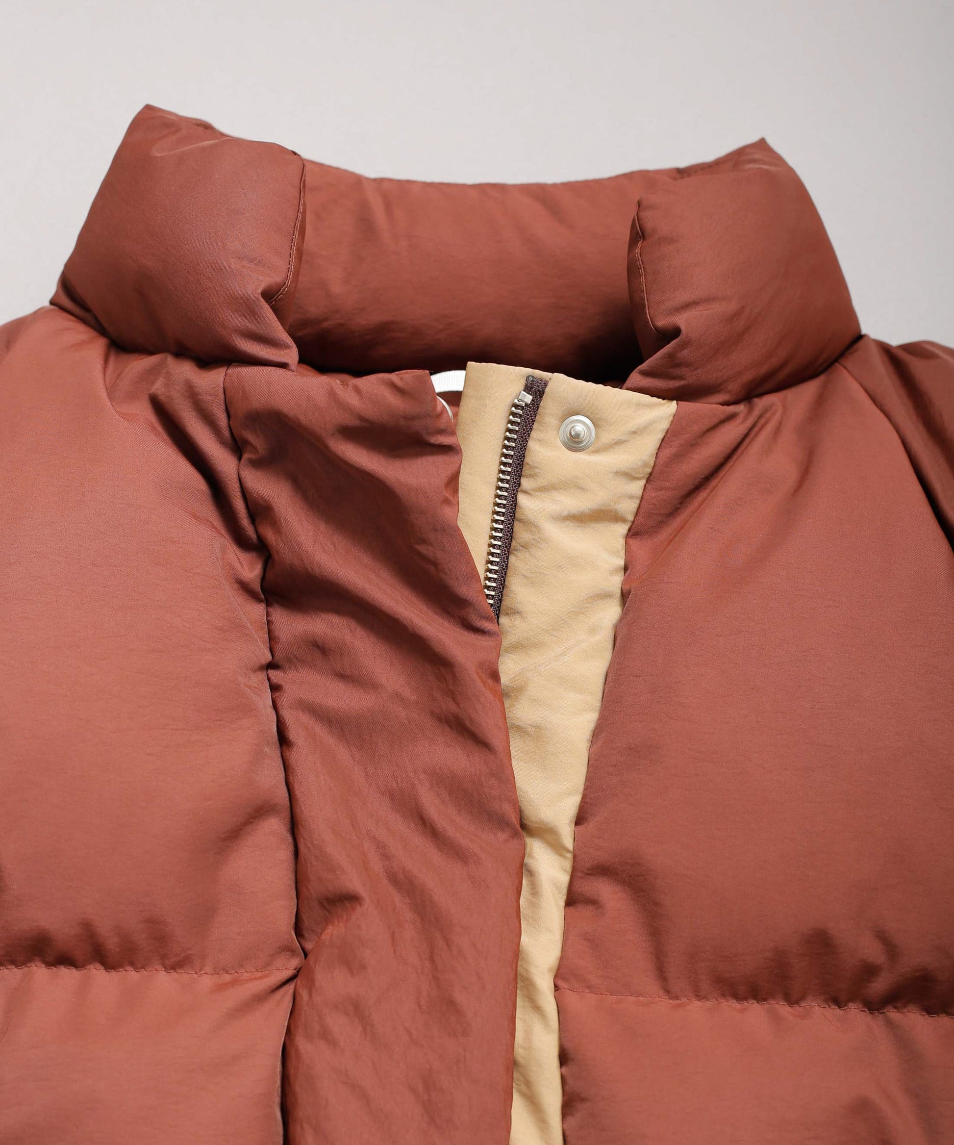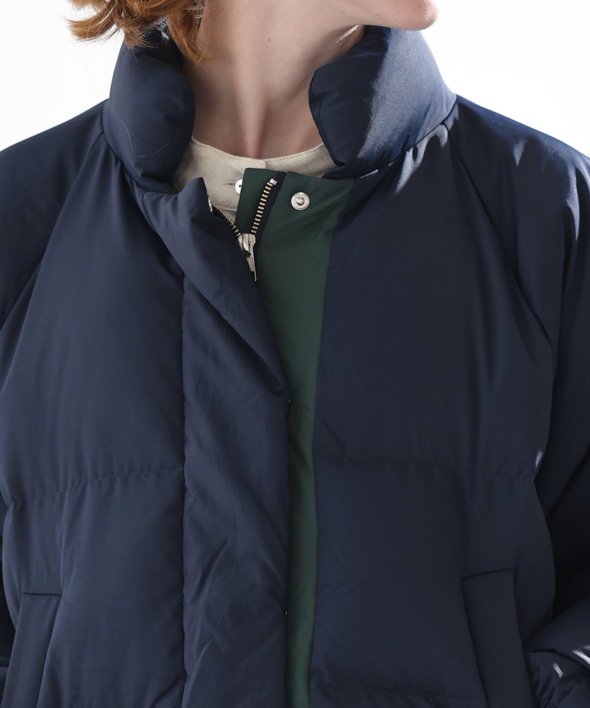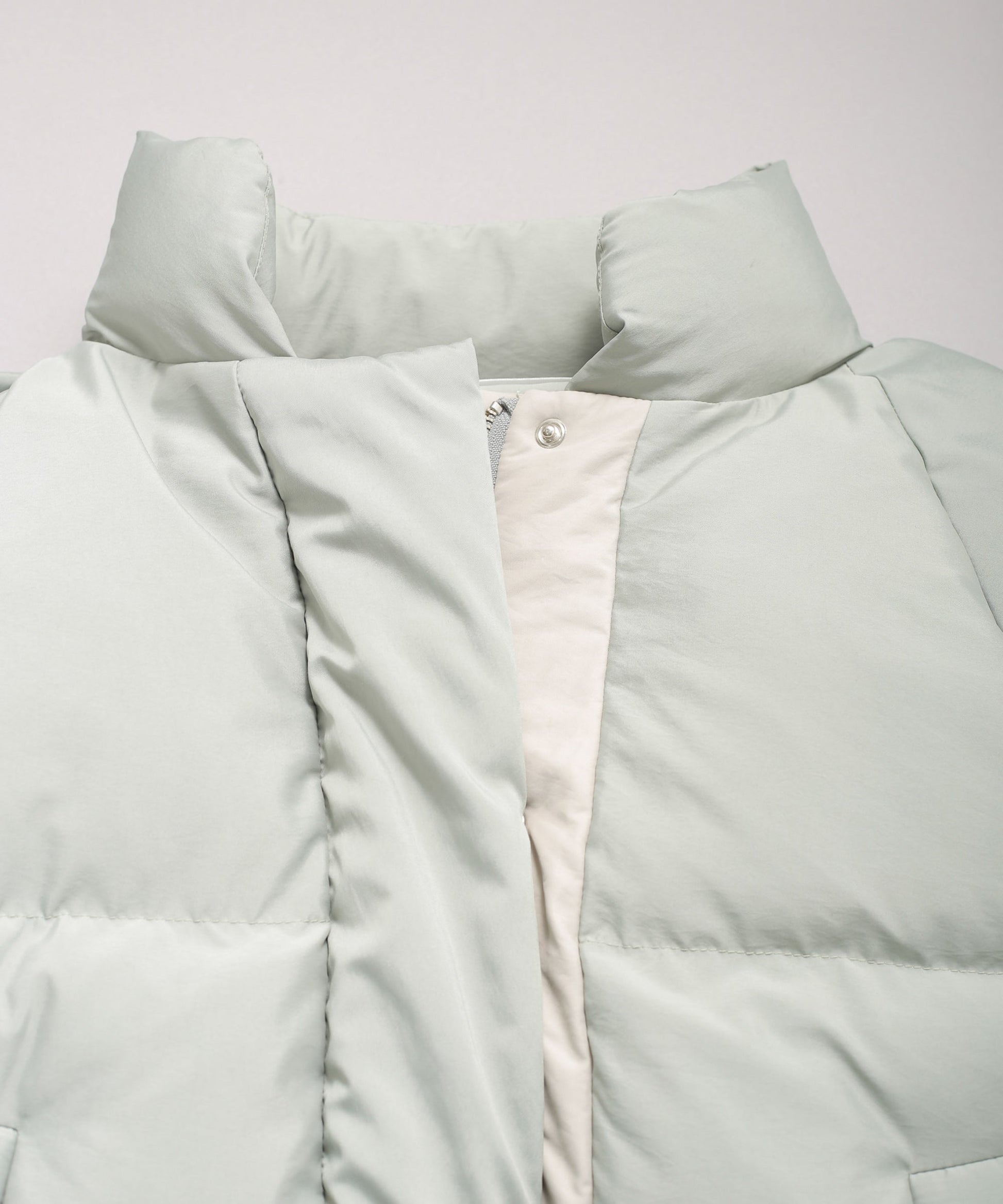 スタンドカラーのFRONTは少し距離を空け、マフラーなど使いやすいようにデザイン。