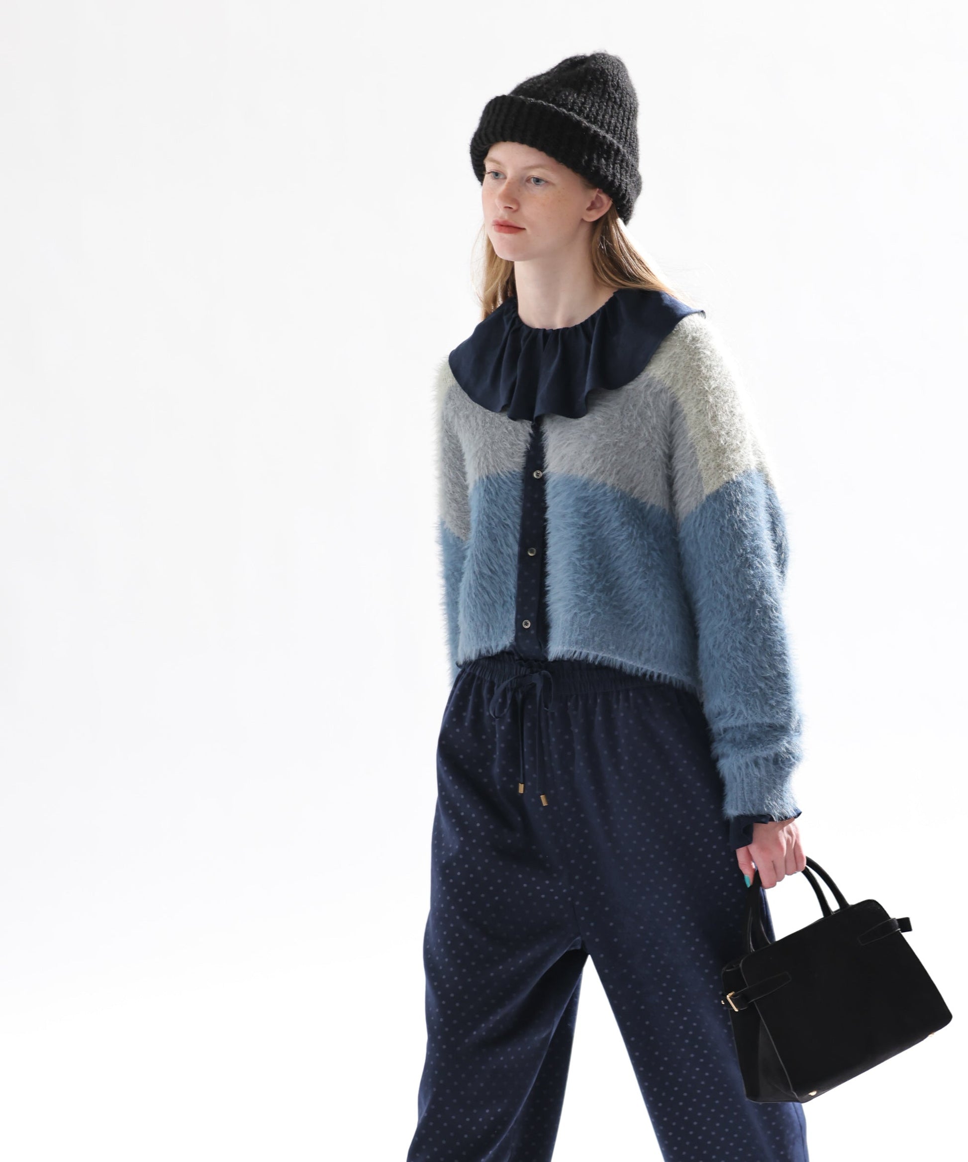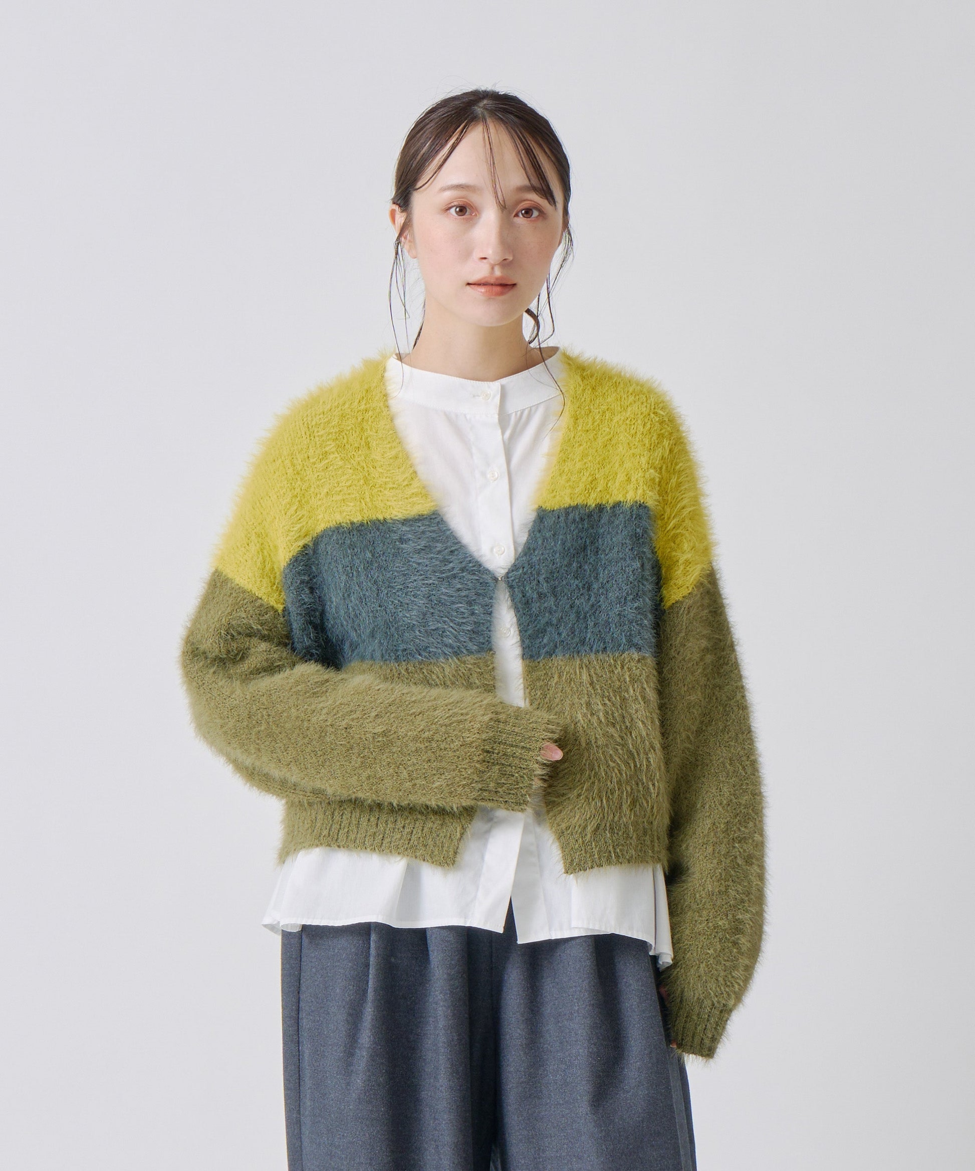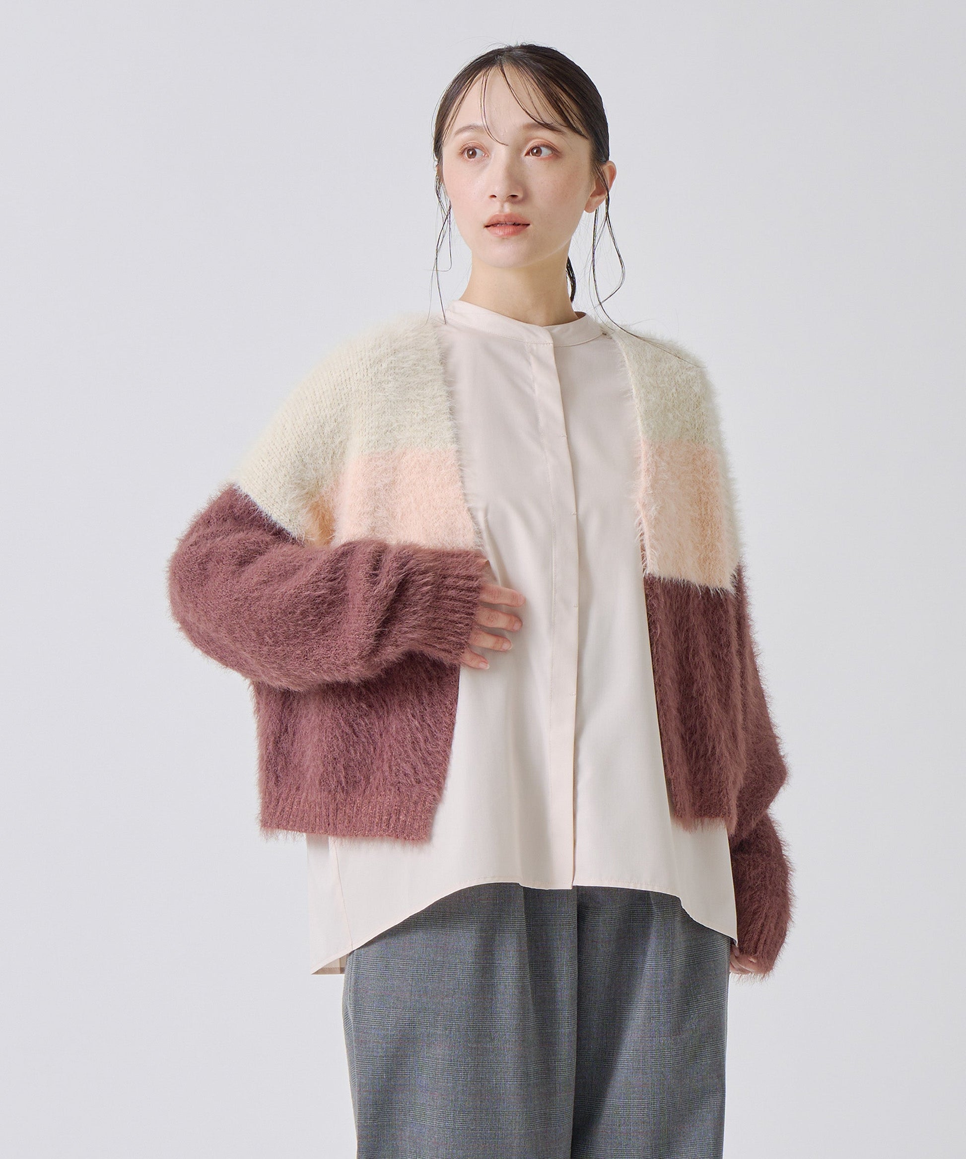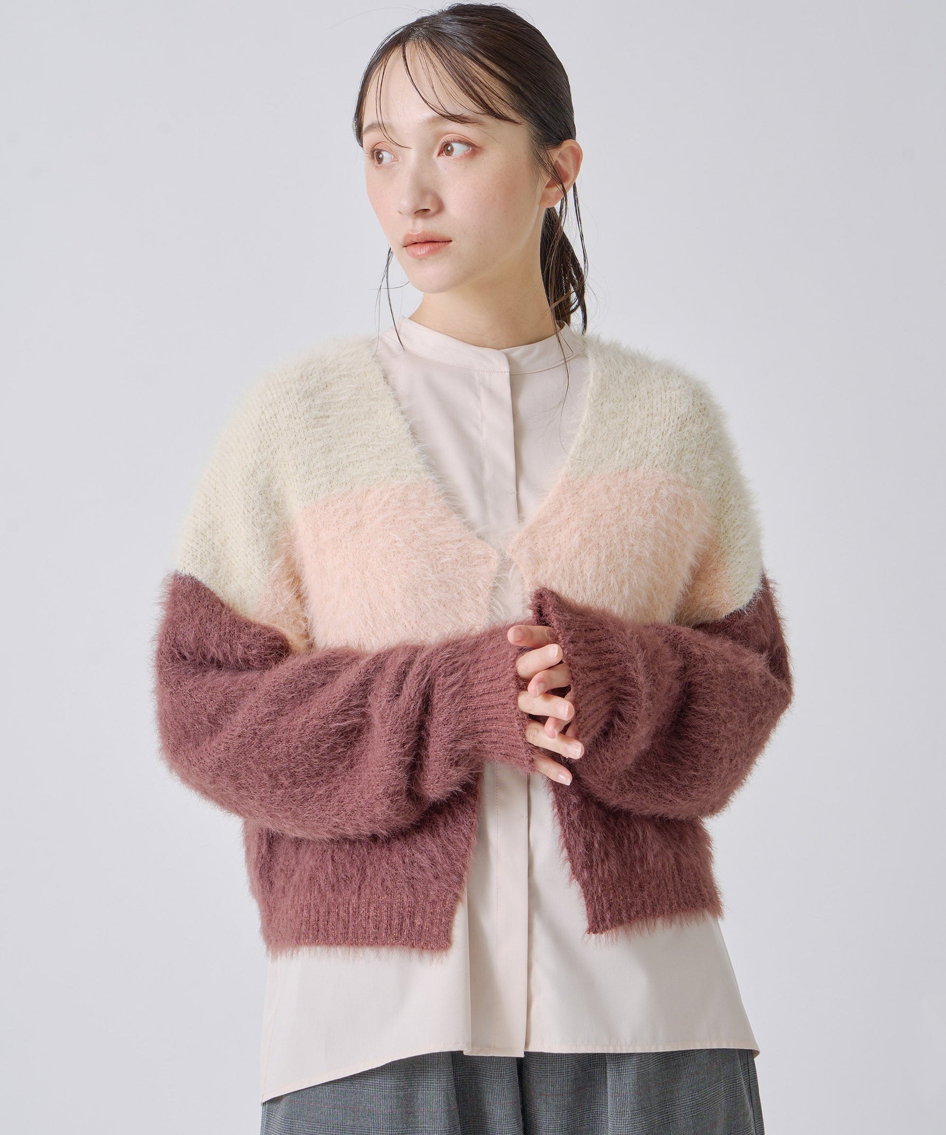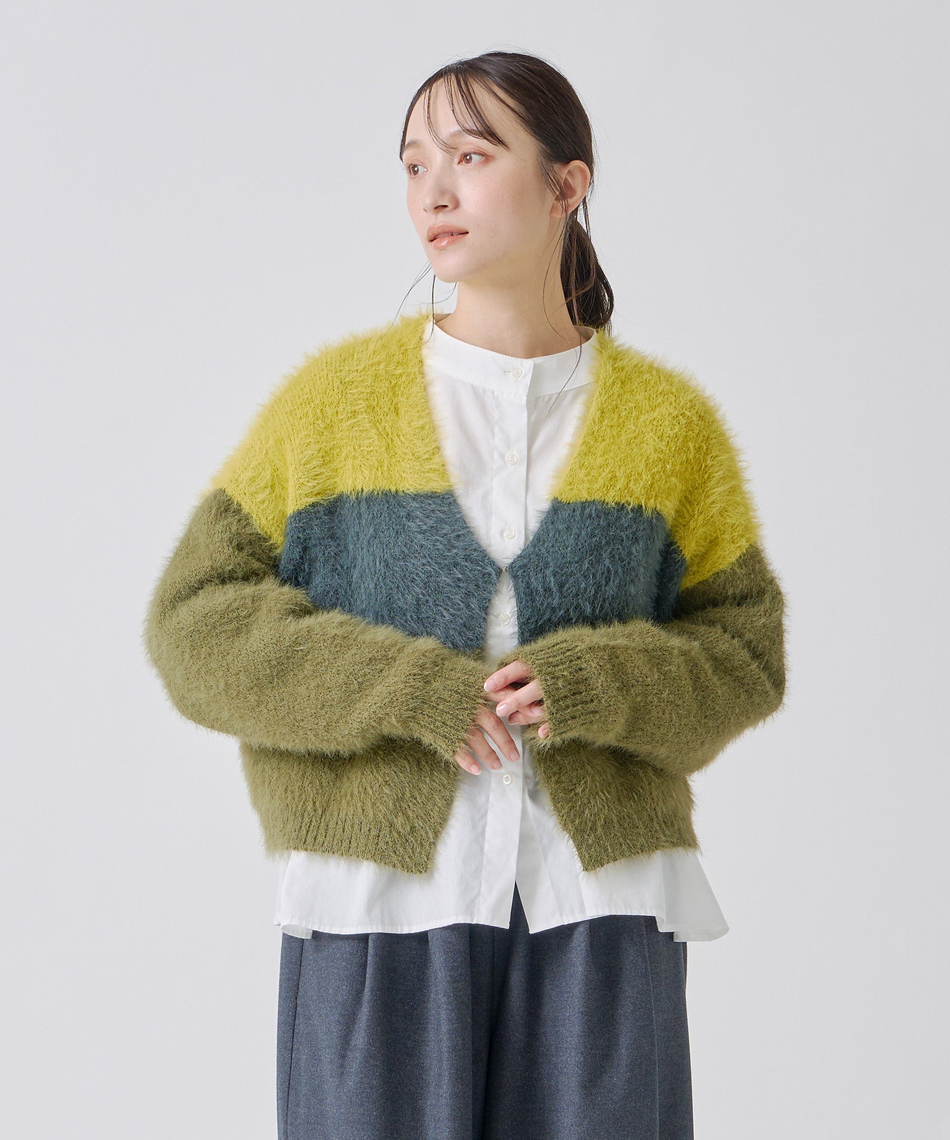 表情豊かなフェザーヤーンが存在感を放つVネックカーディガン。