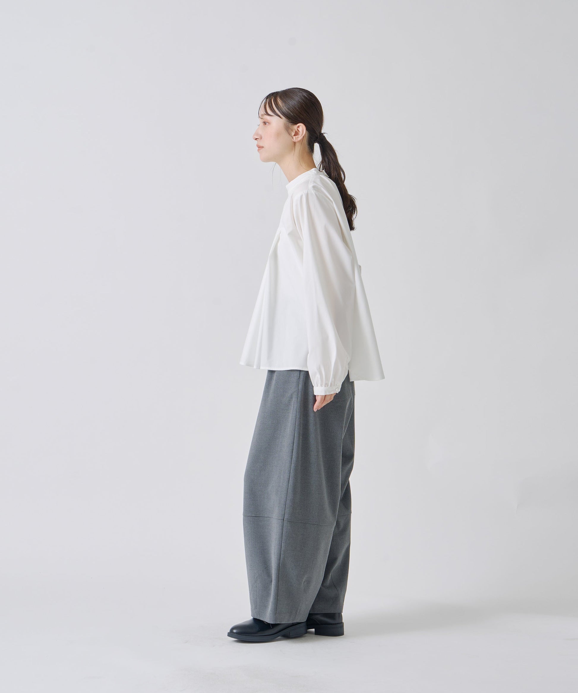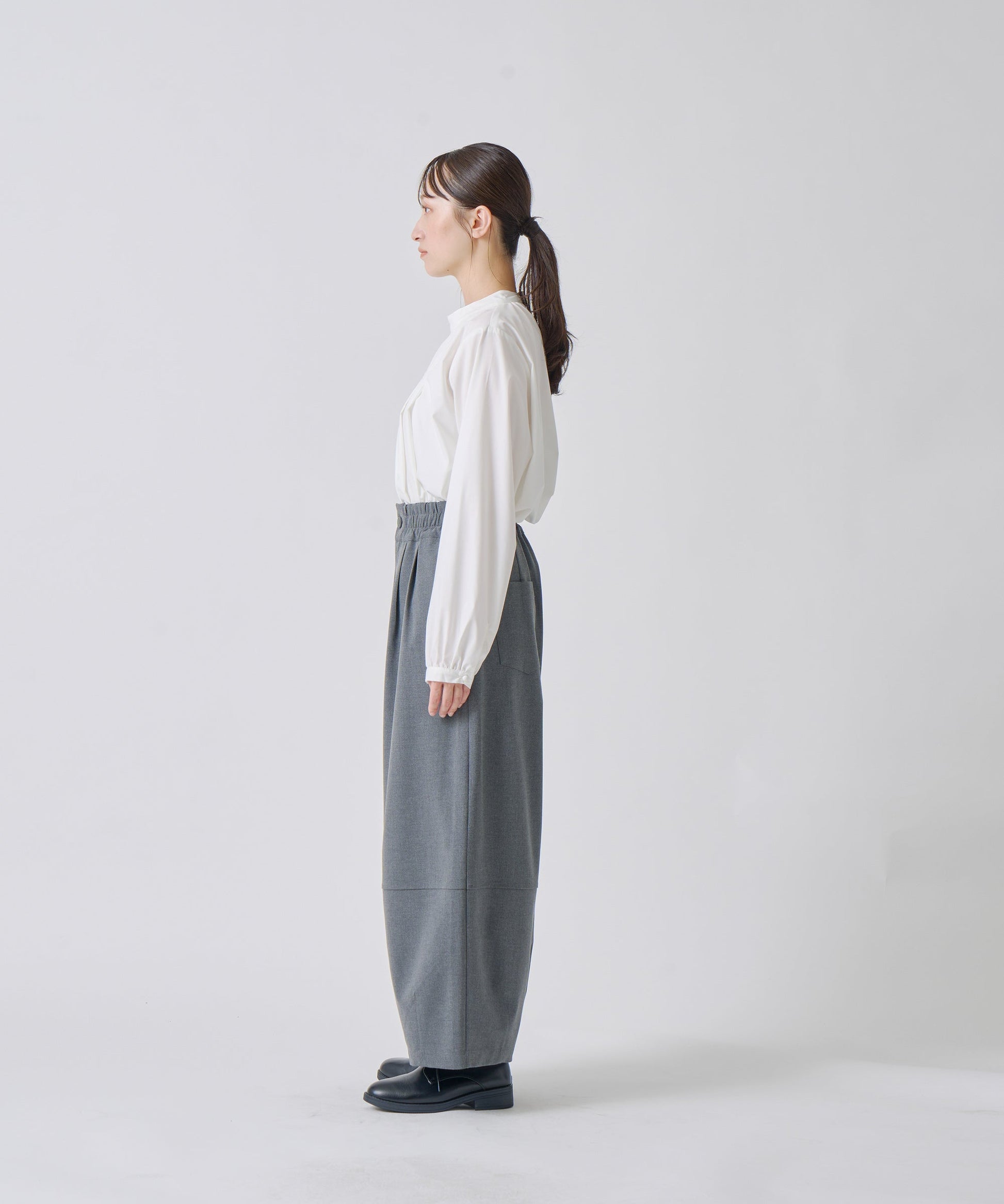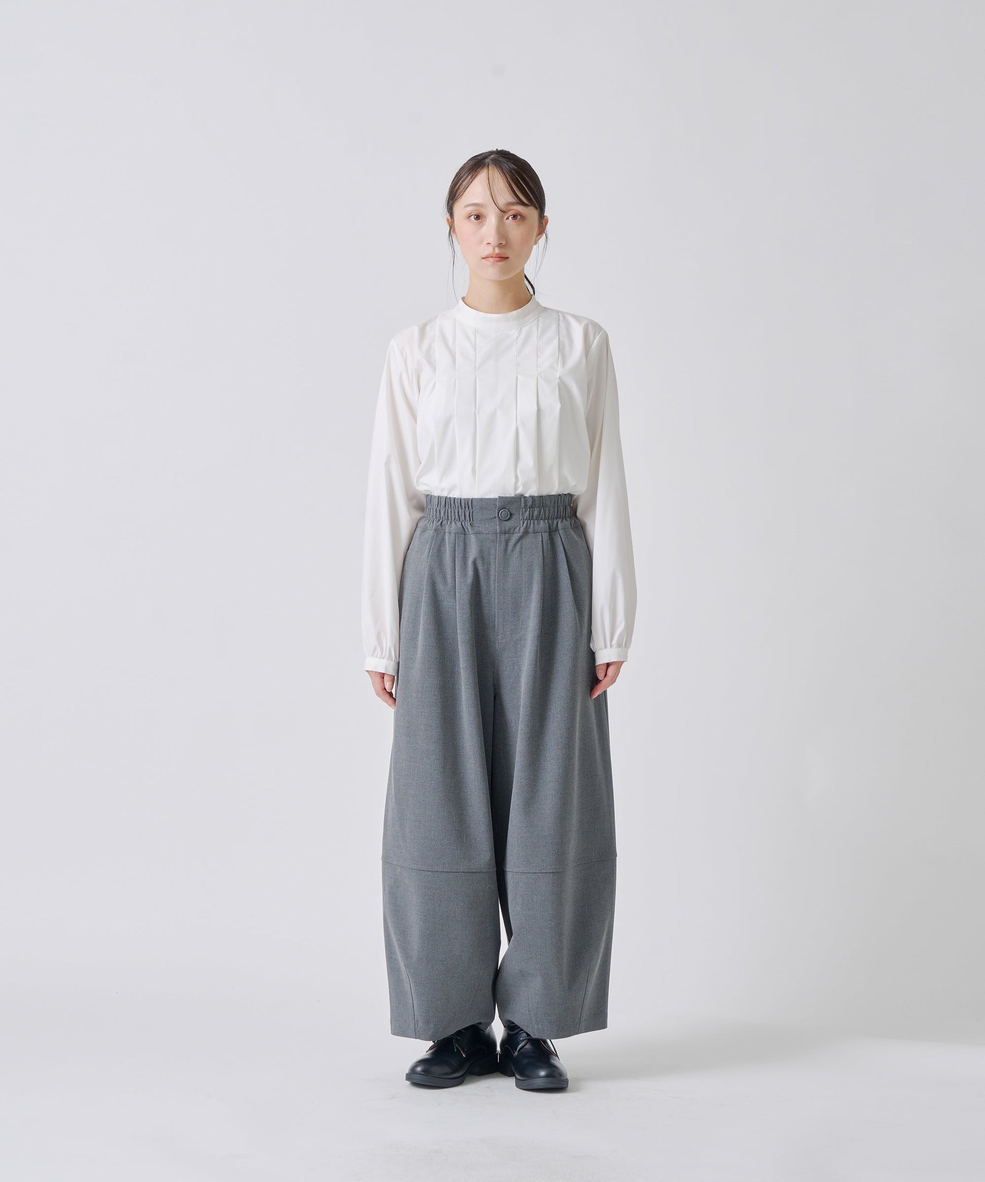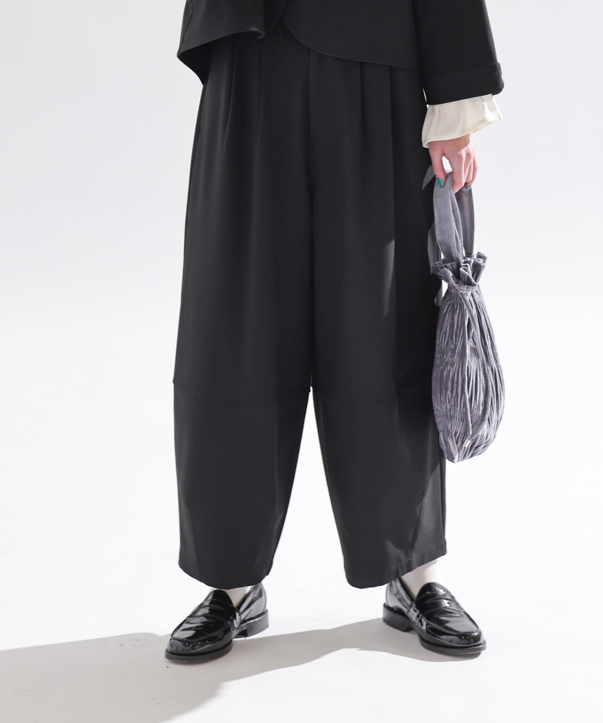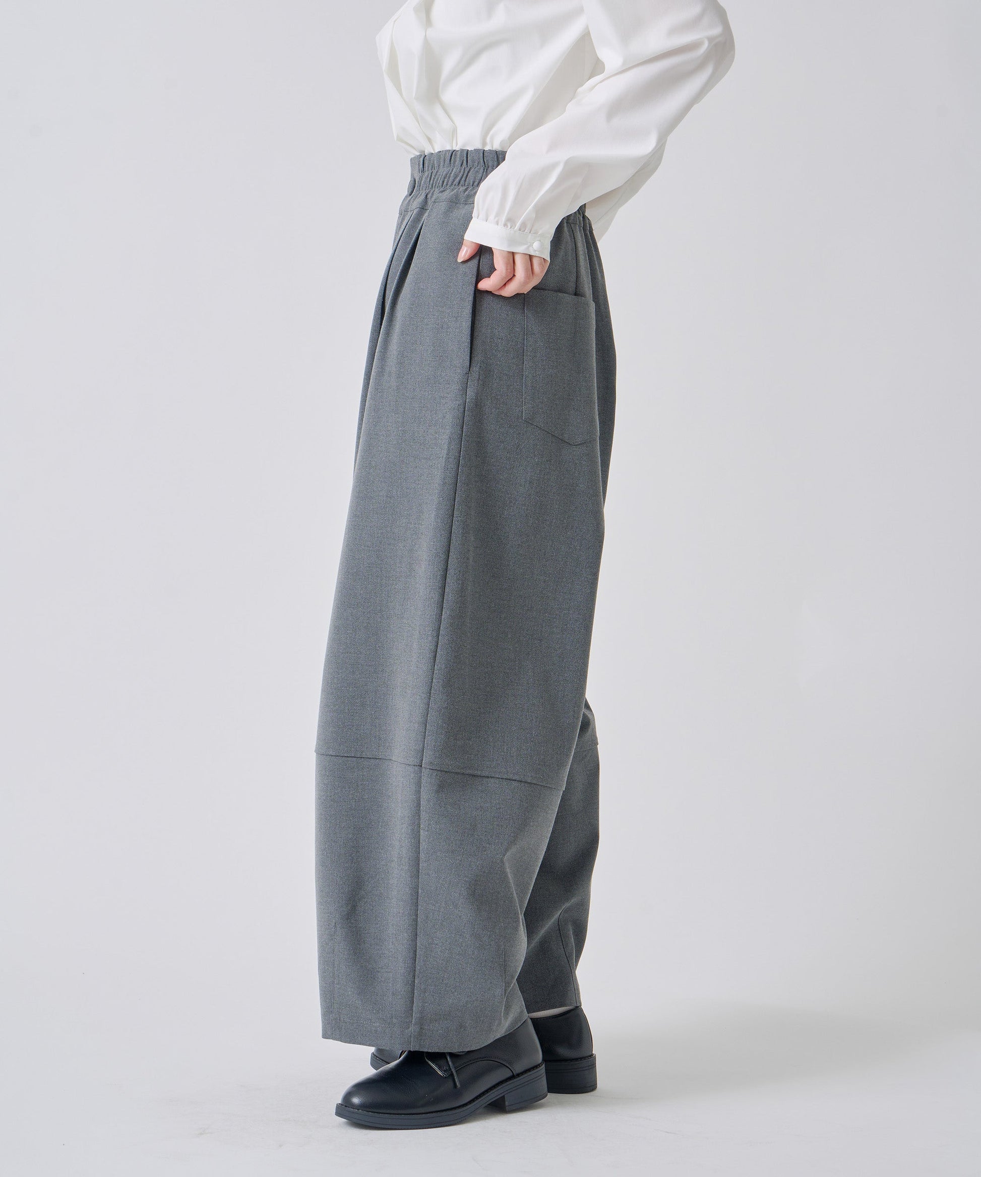 ウエストのタックと、膝下の切り替えデザインがポイントのトラウザー。