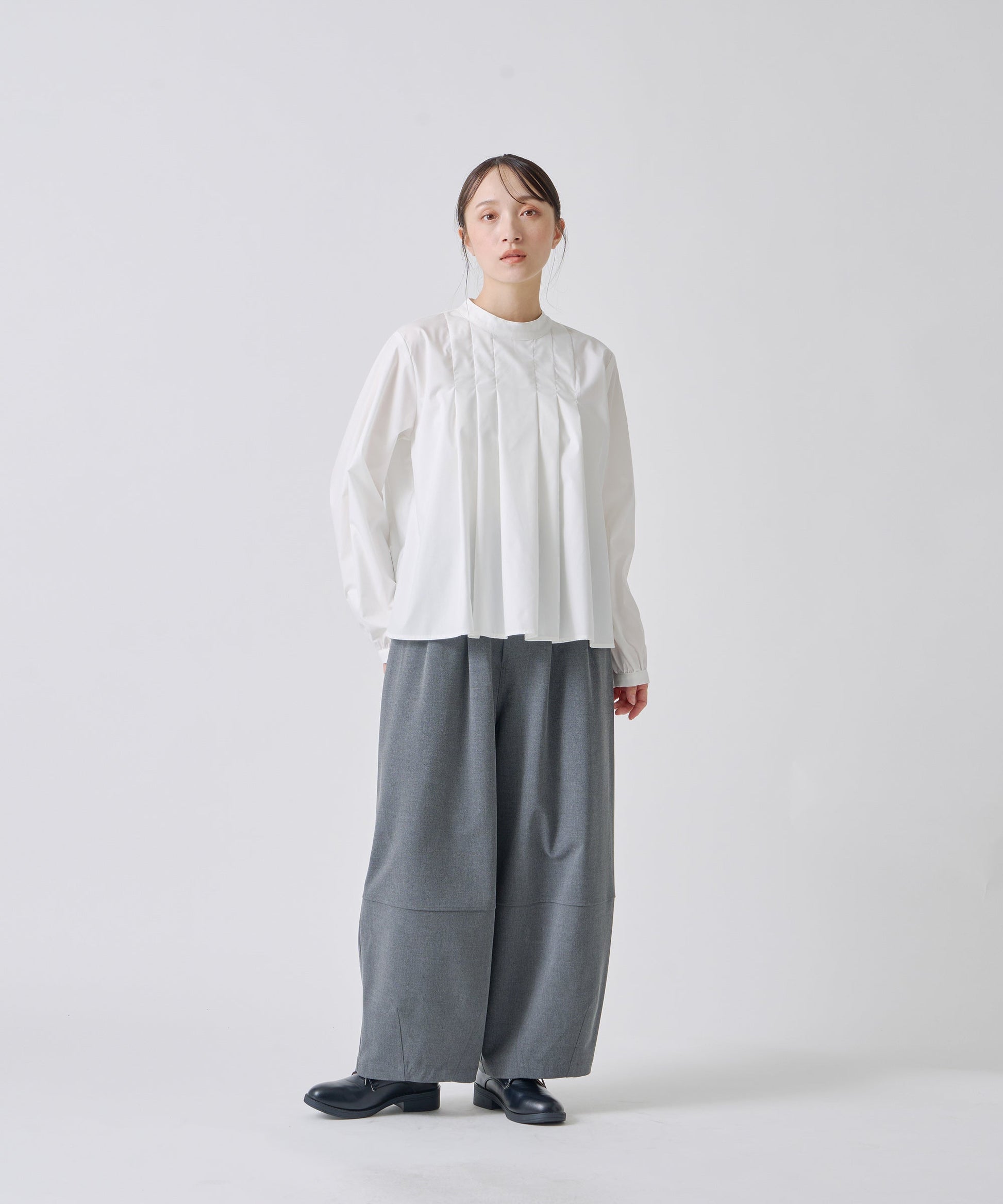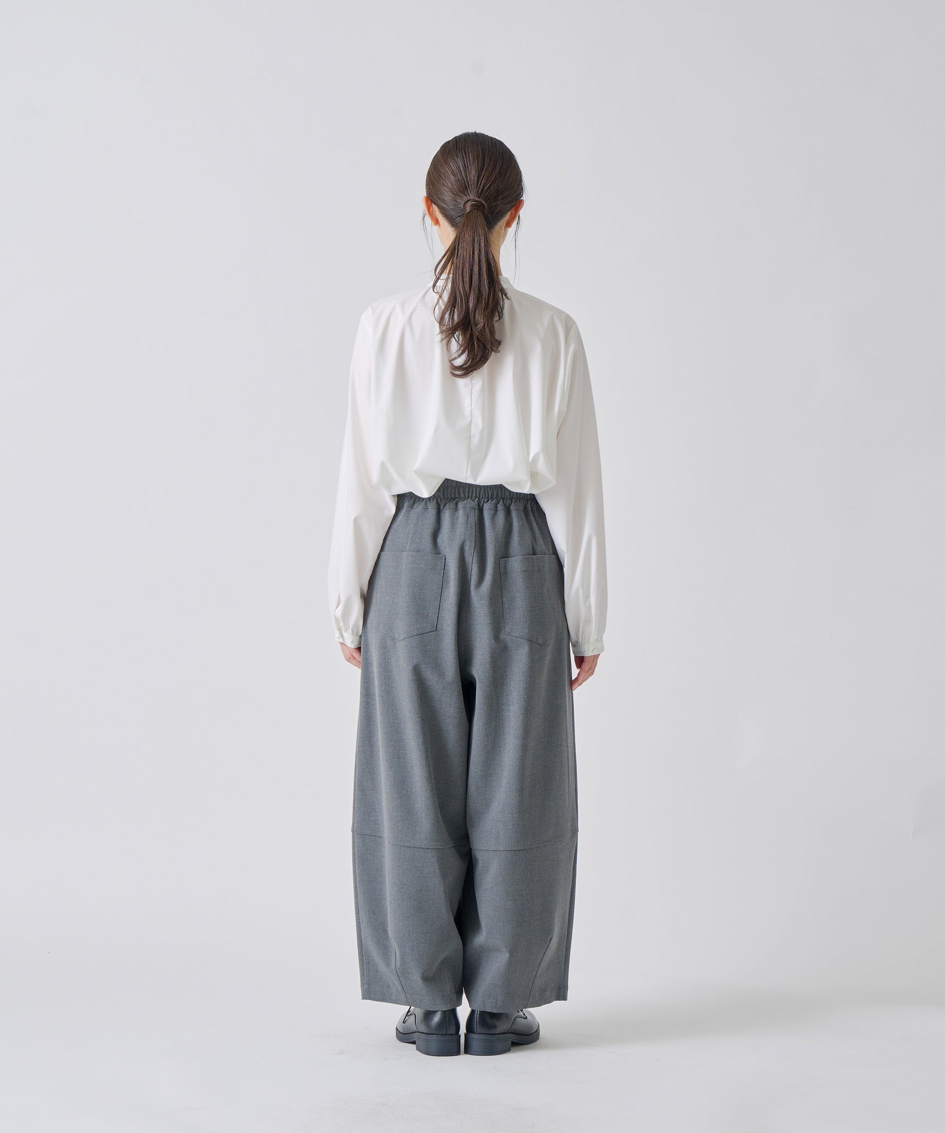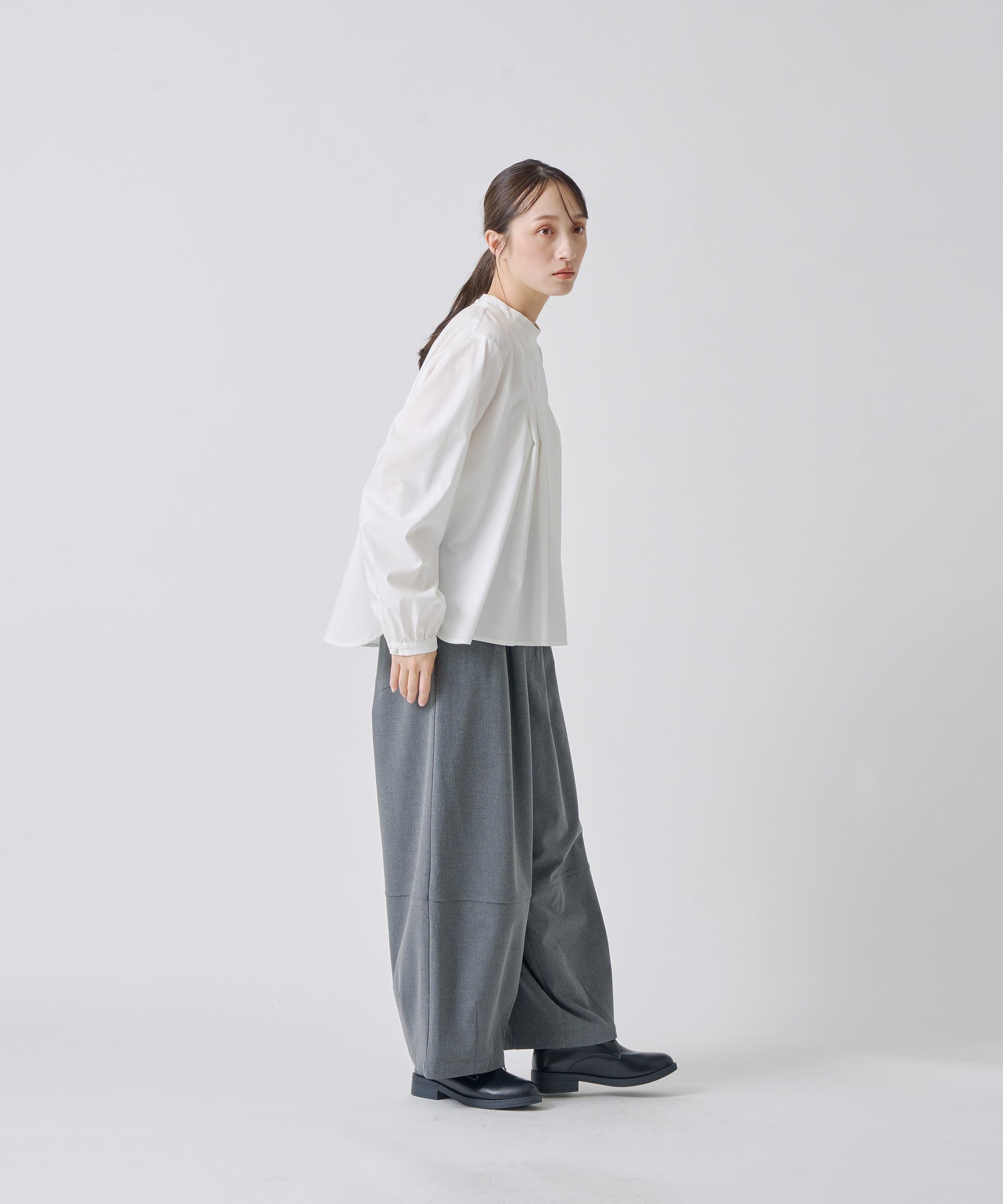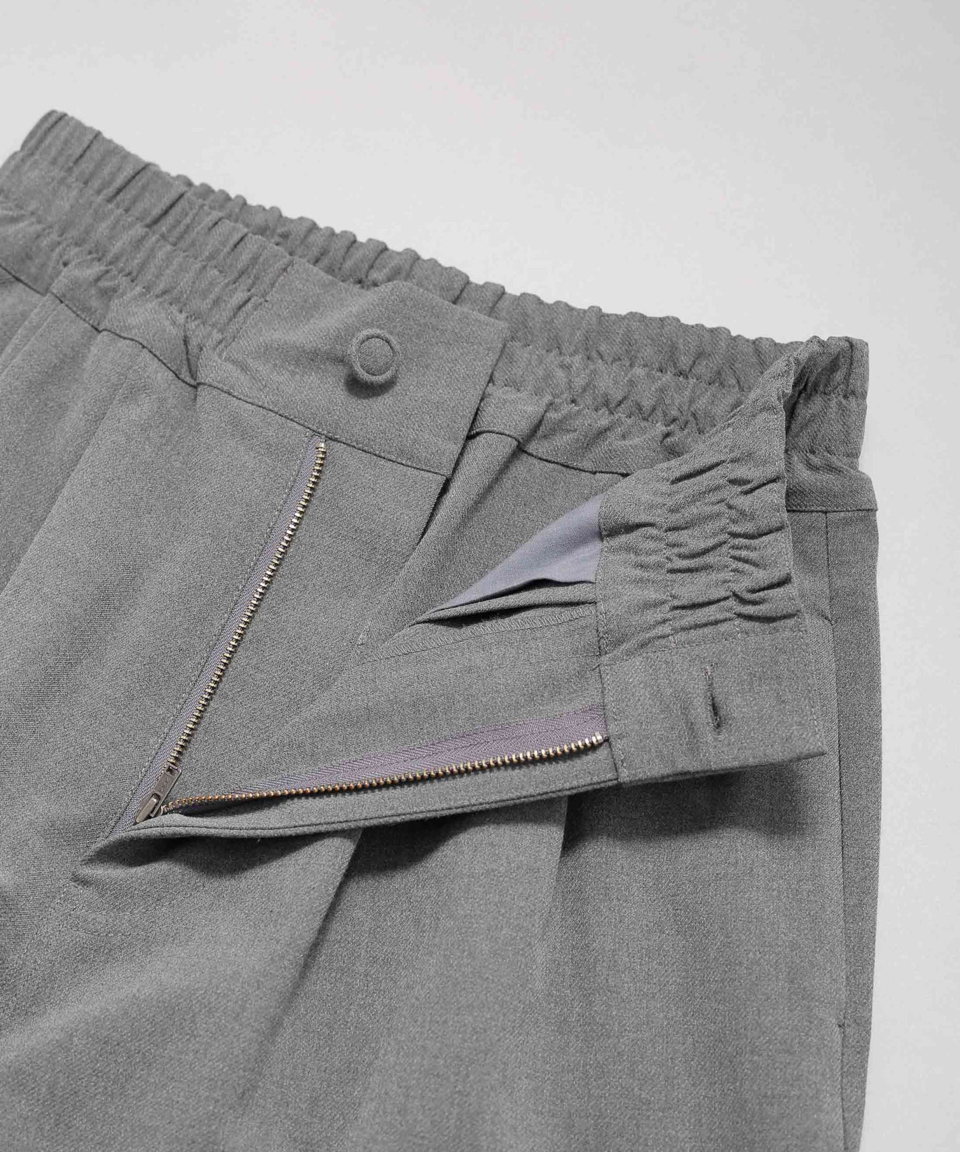 ウエストのタックと、膝下の切り替えデザインがポイントのトラウザー。