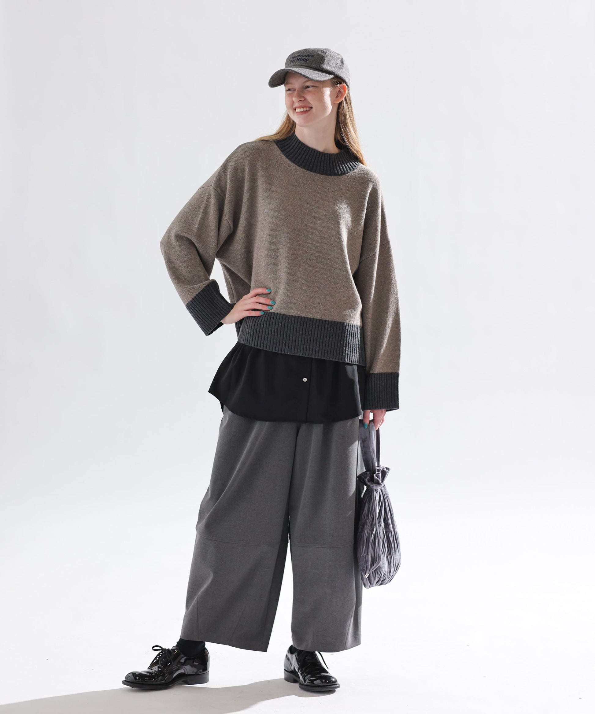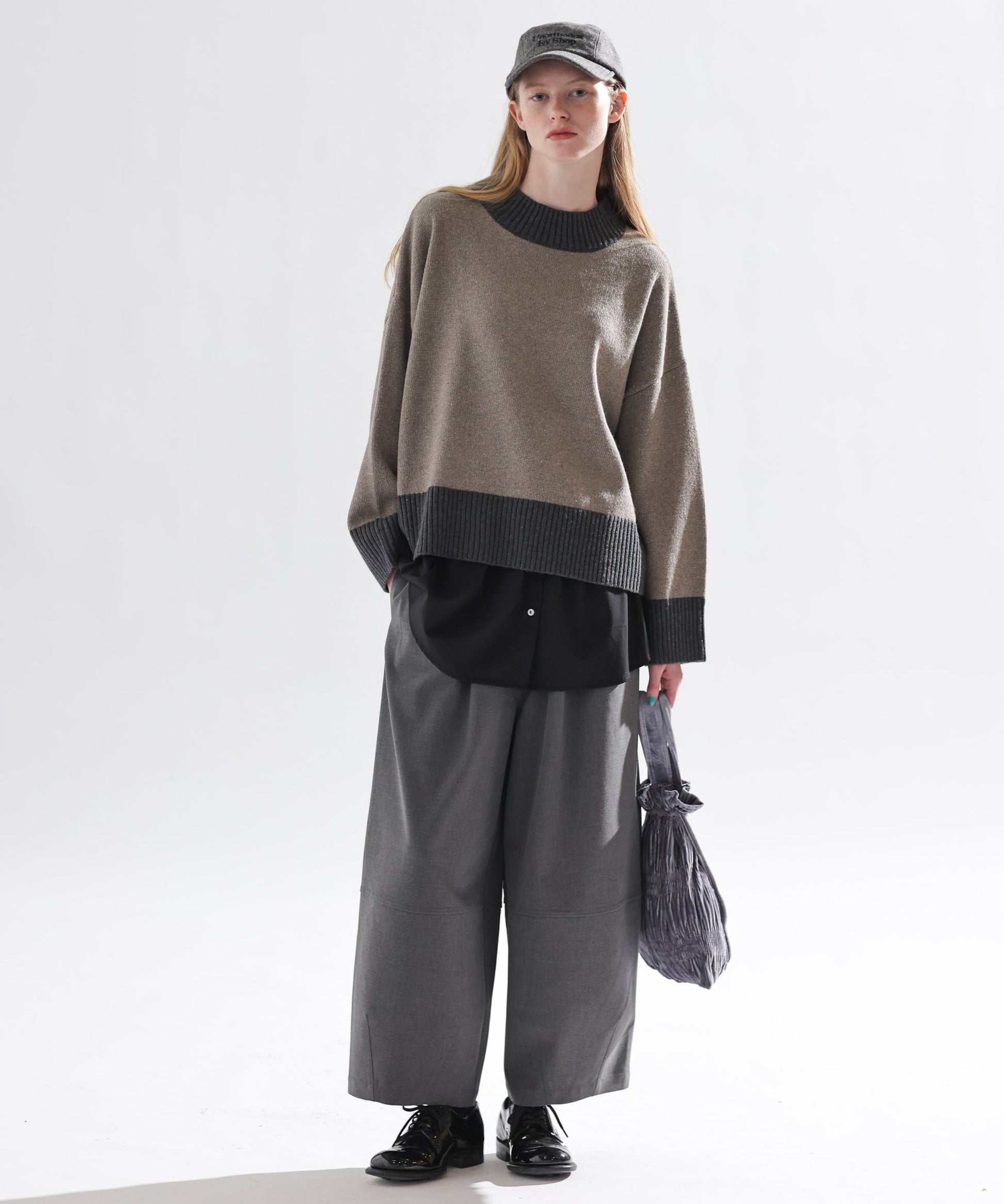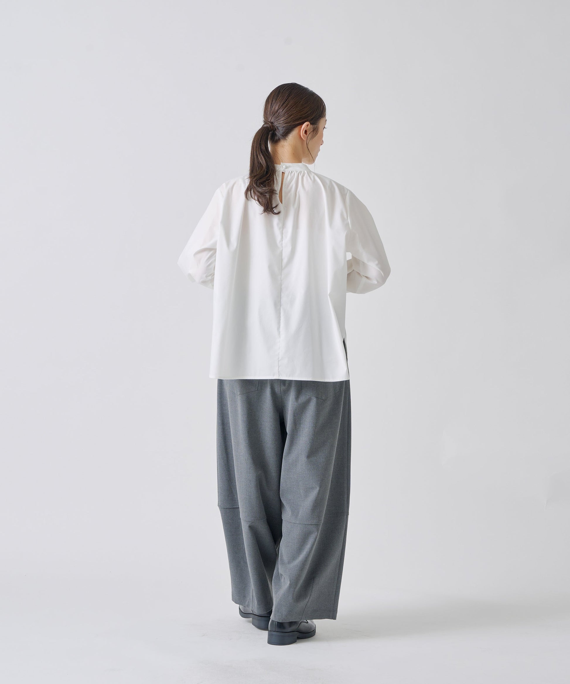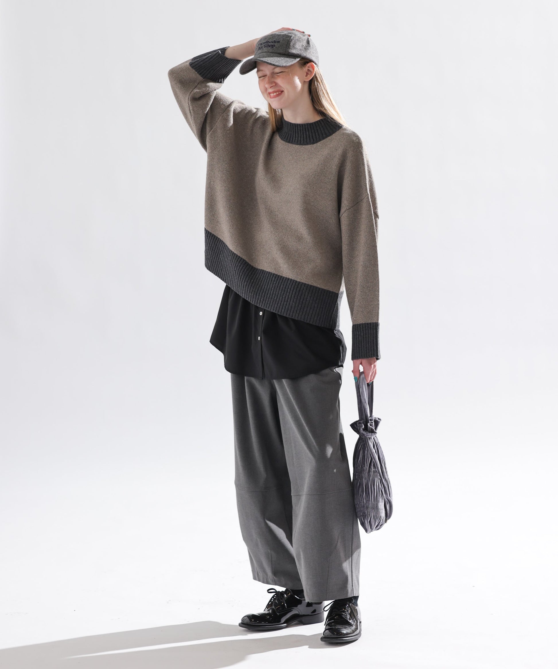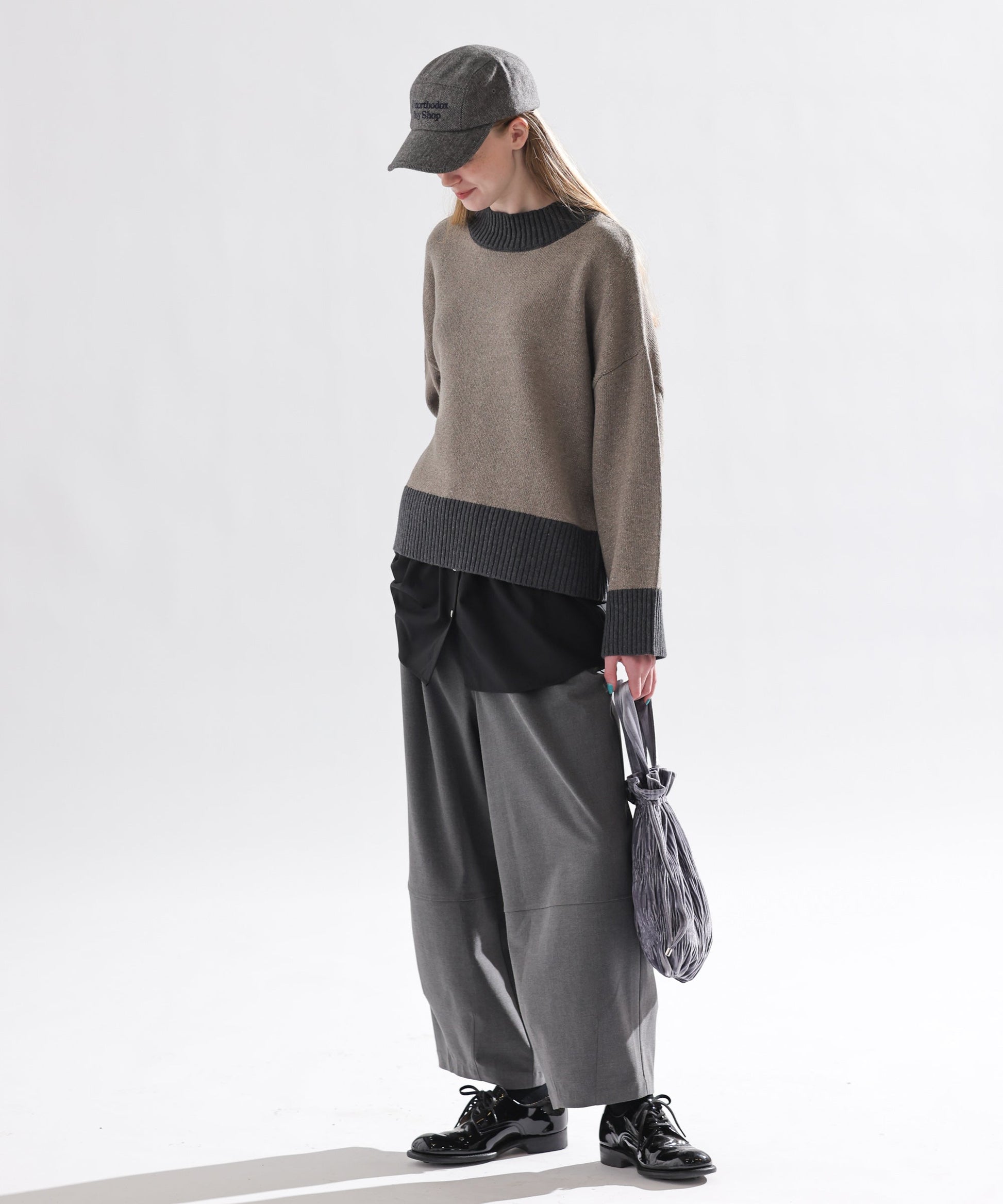 ウエストのタックと、膝下の切り替えデザインがポイントのトラウザー。
