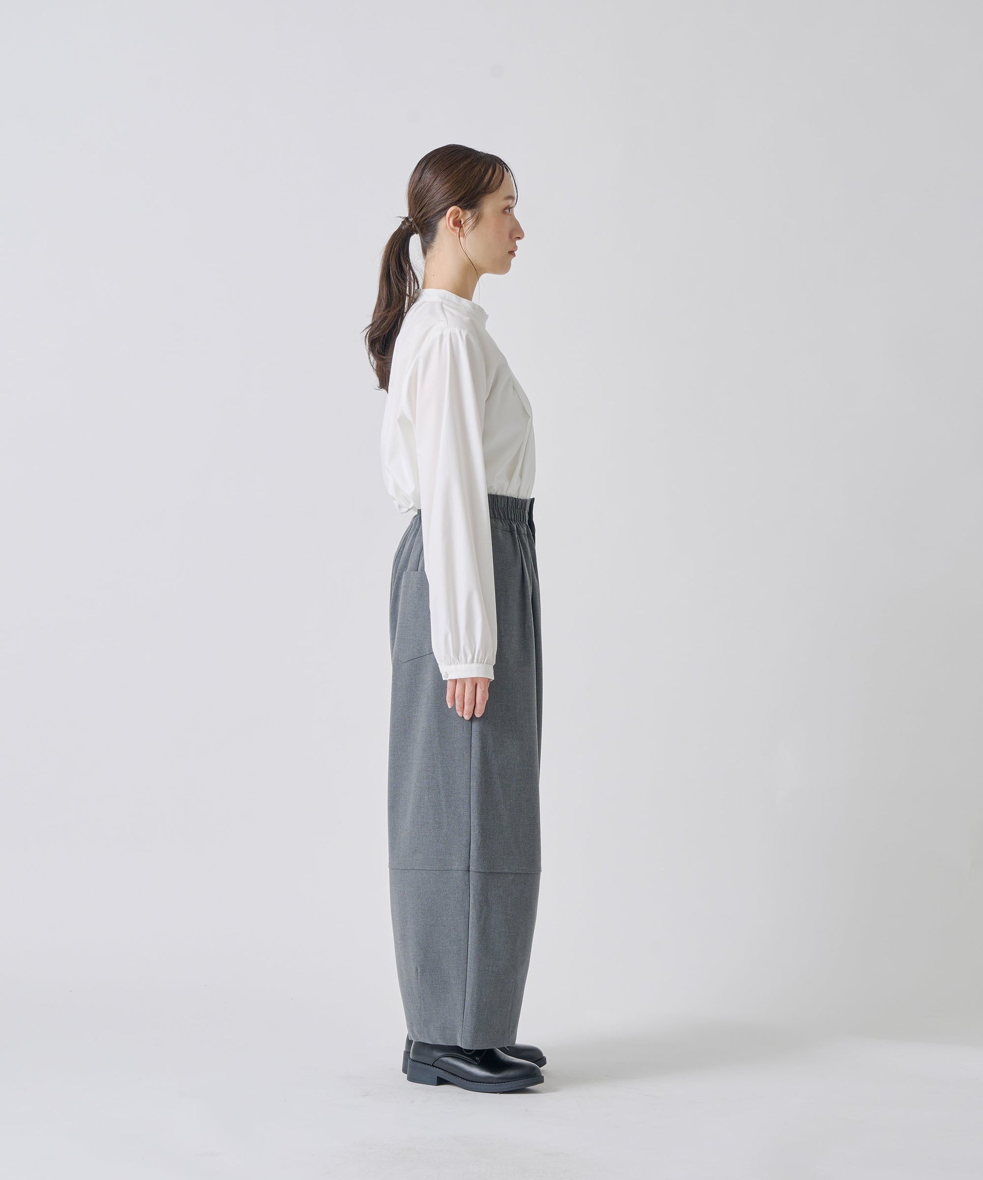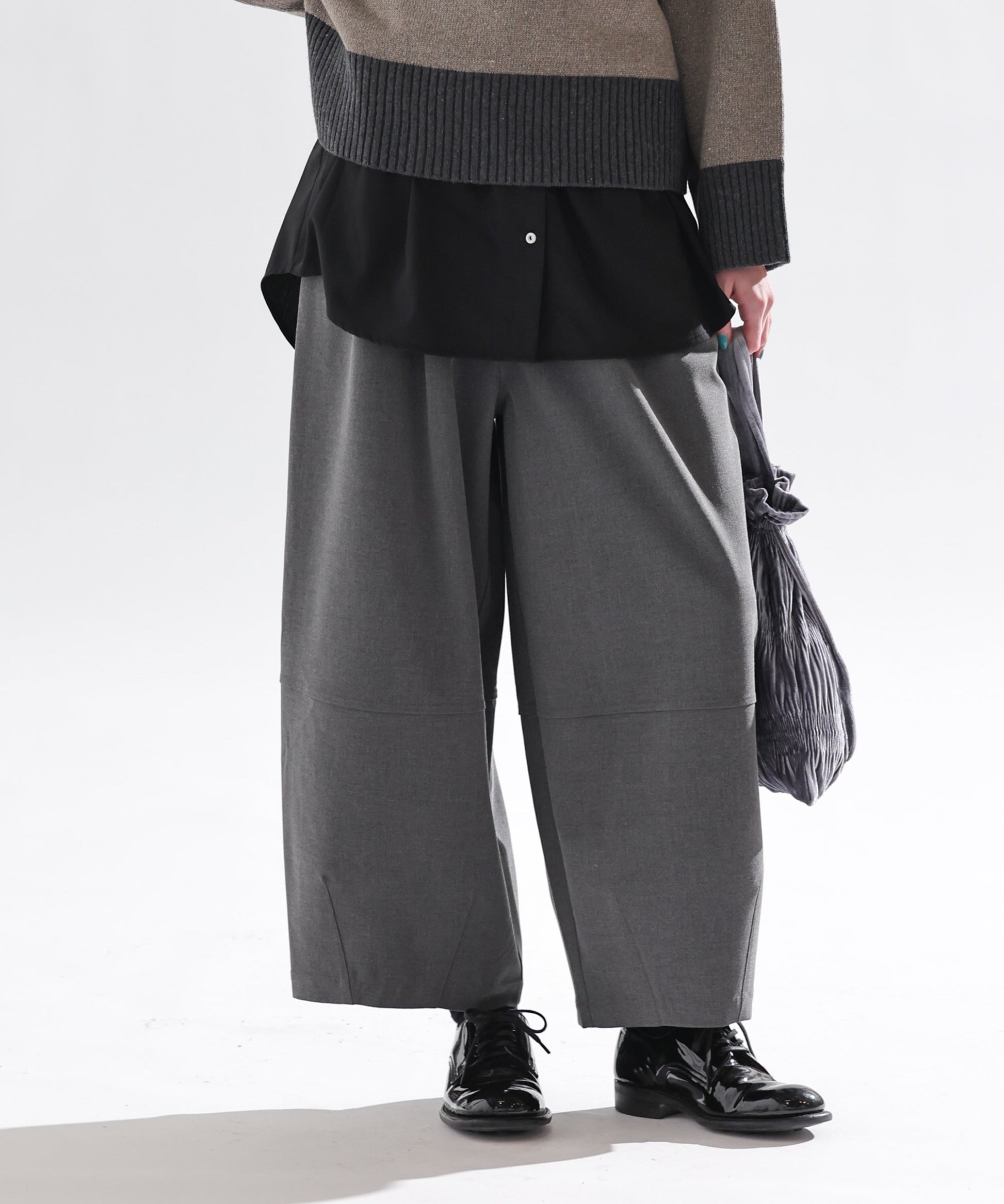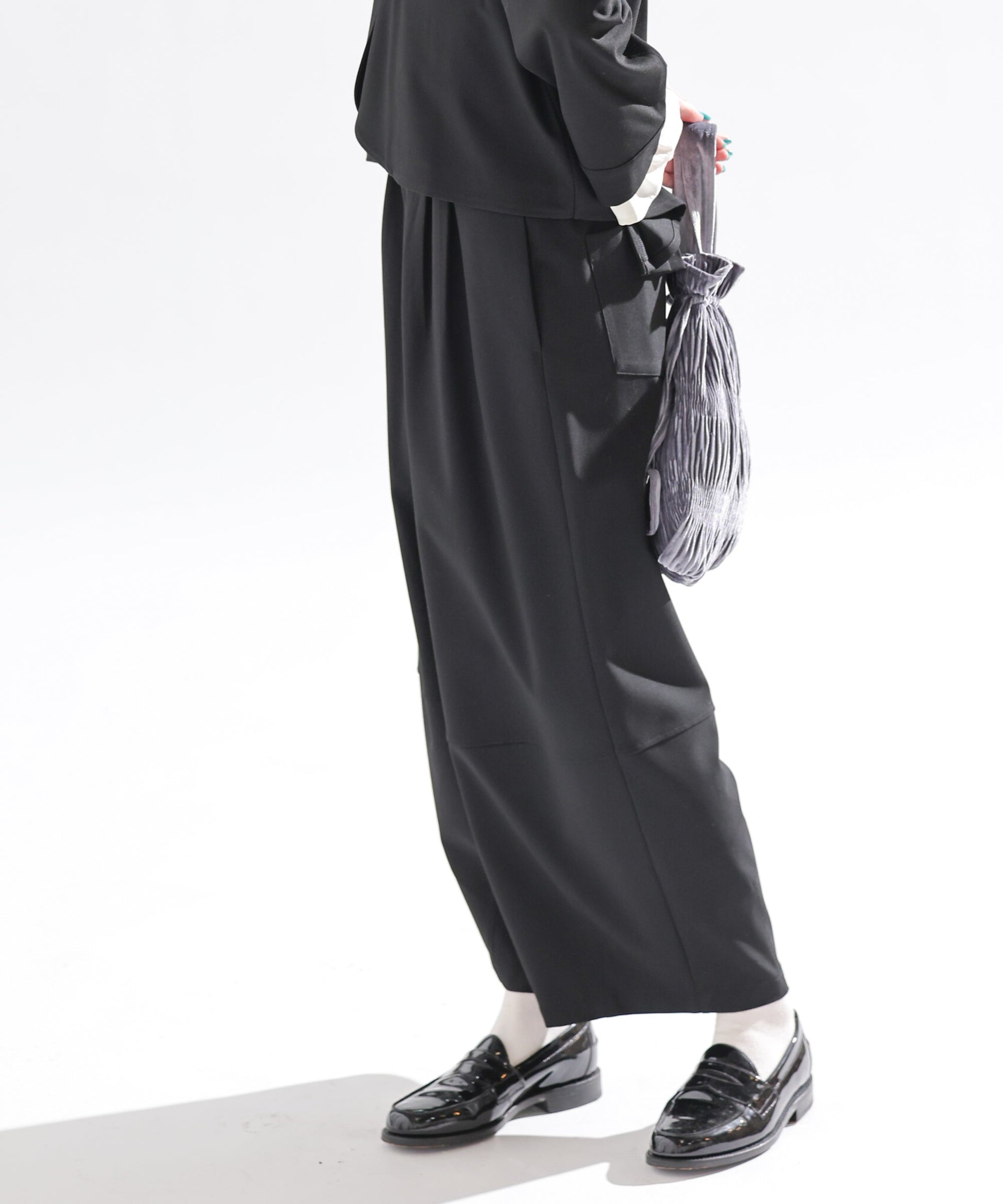広がりすぎないコクーンシルエットで、ヒップや太もも周りにゆとりを持たせサイズ感です。