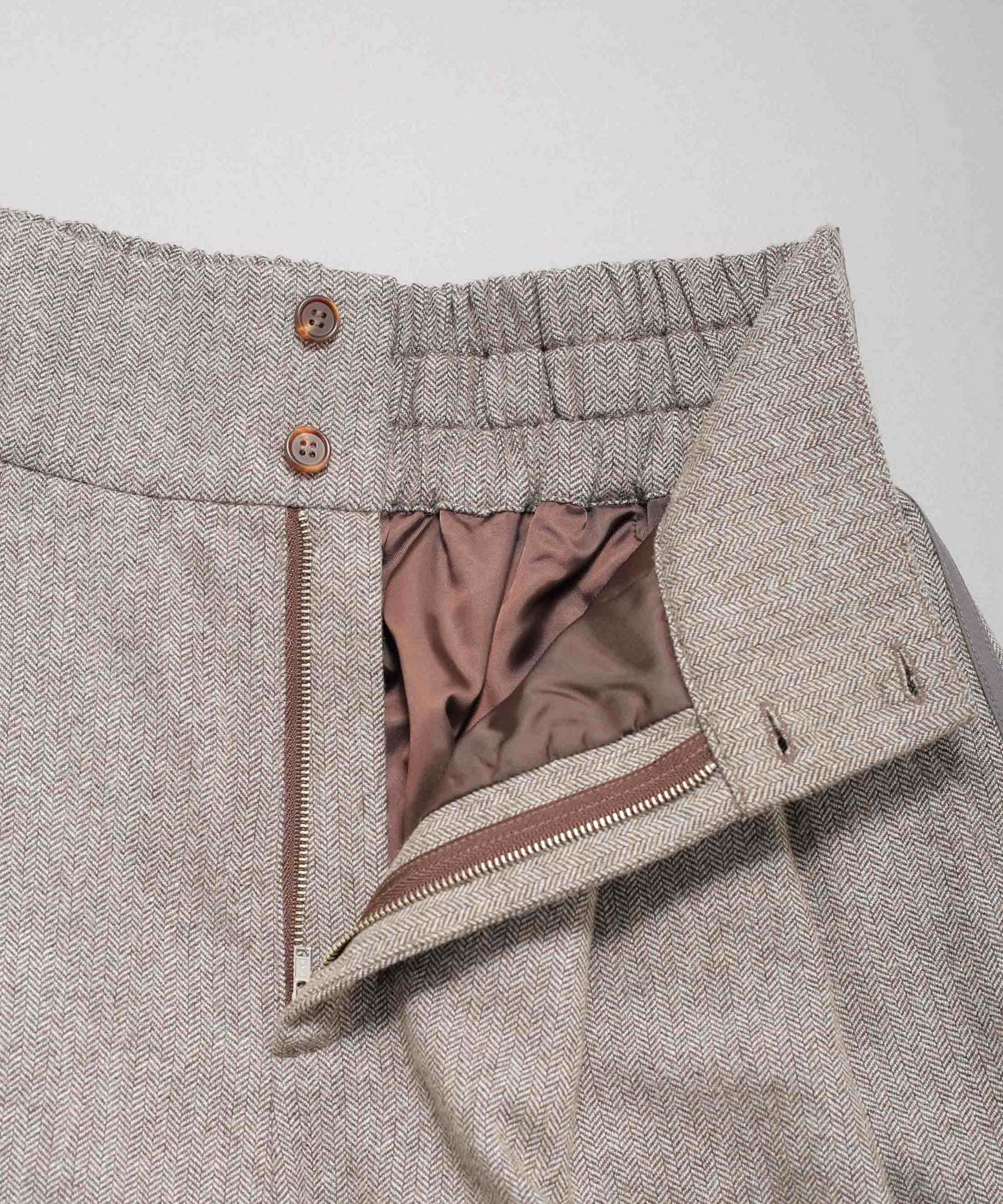 シックなヘリンボーンの織柄がさりげなくも存在感を放つ、