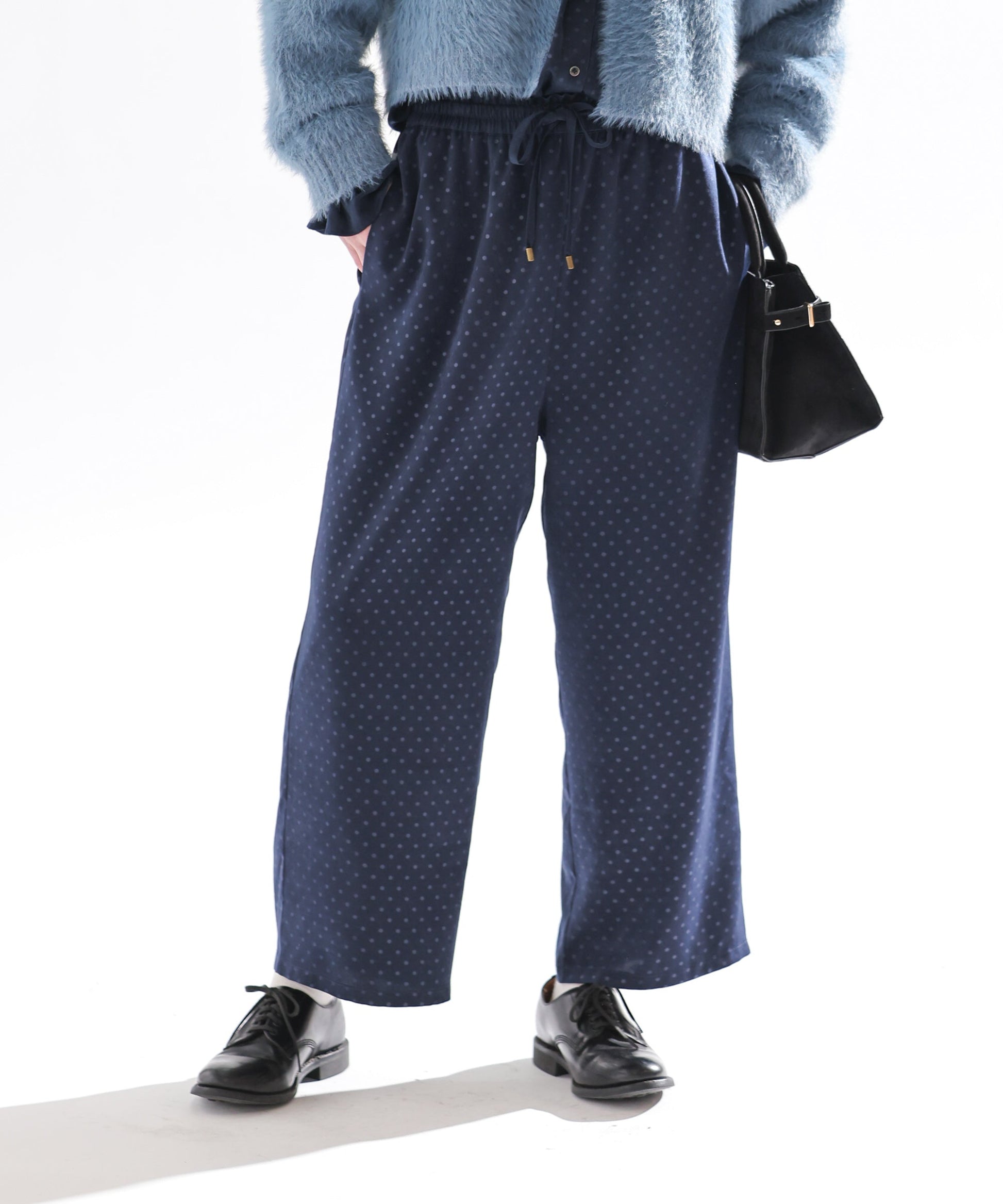 エンボスの立体的なドット柄が特徴的なギャザーパンツです。