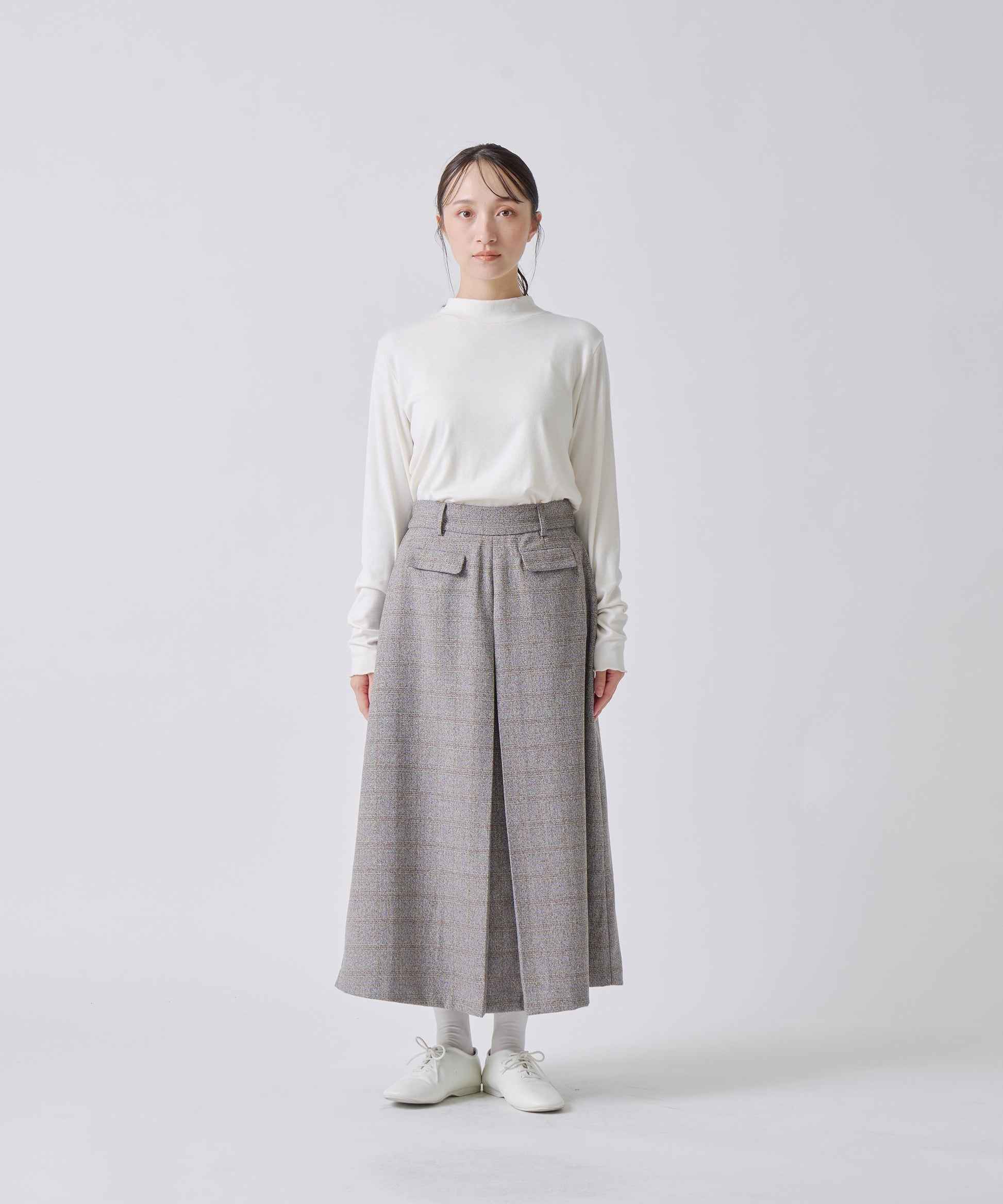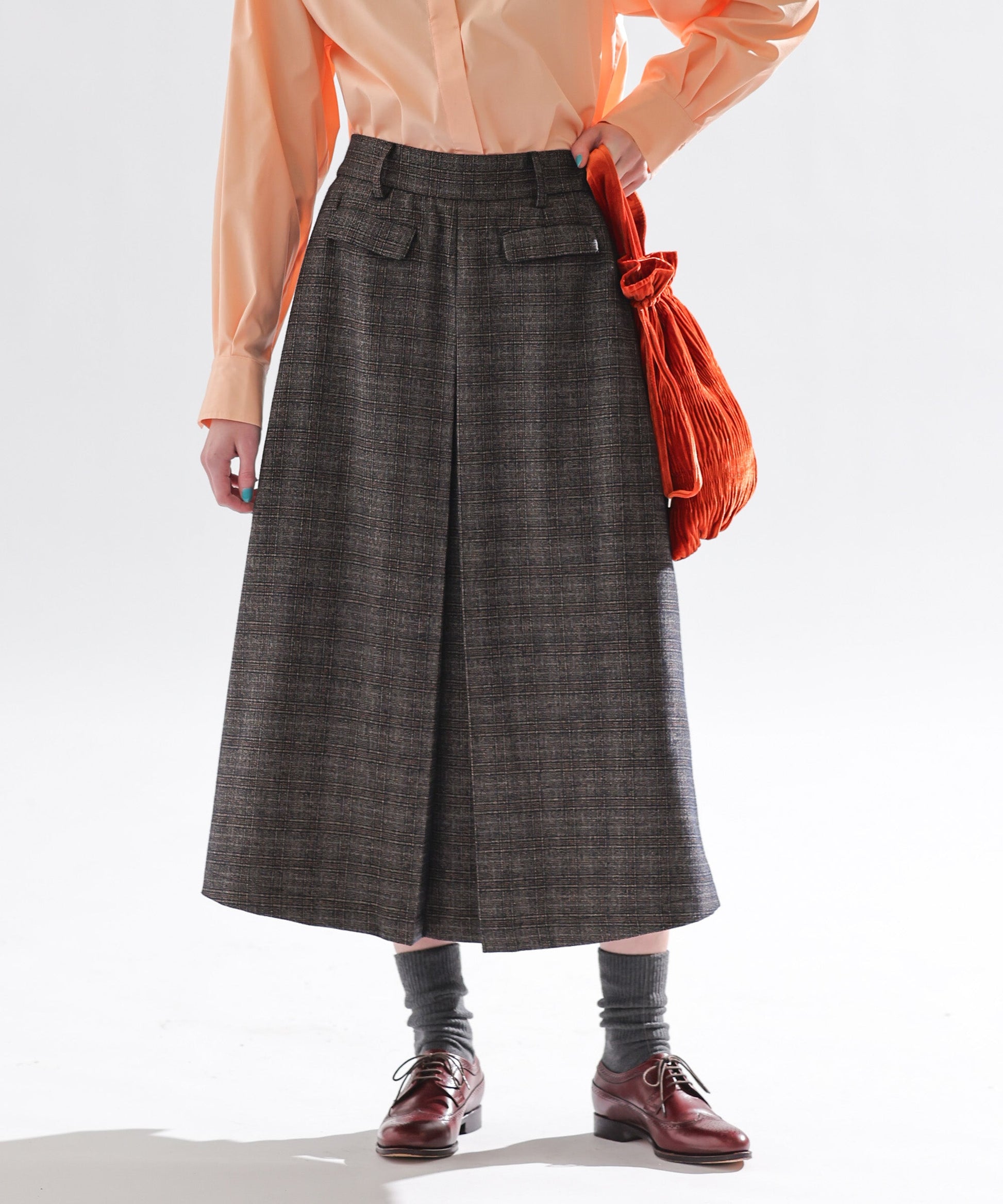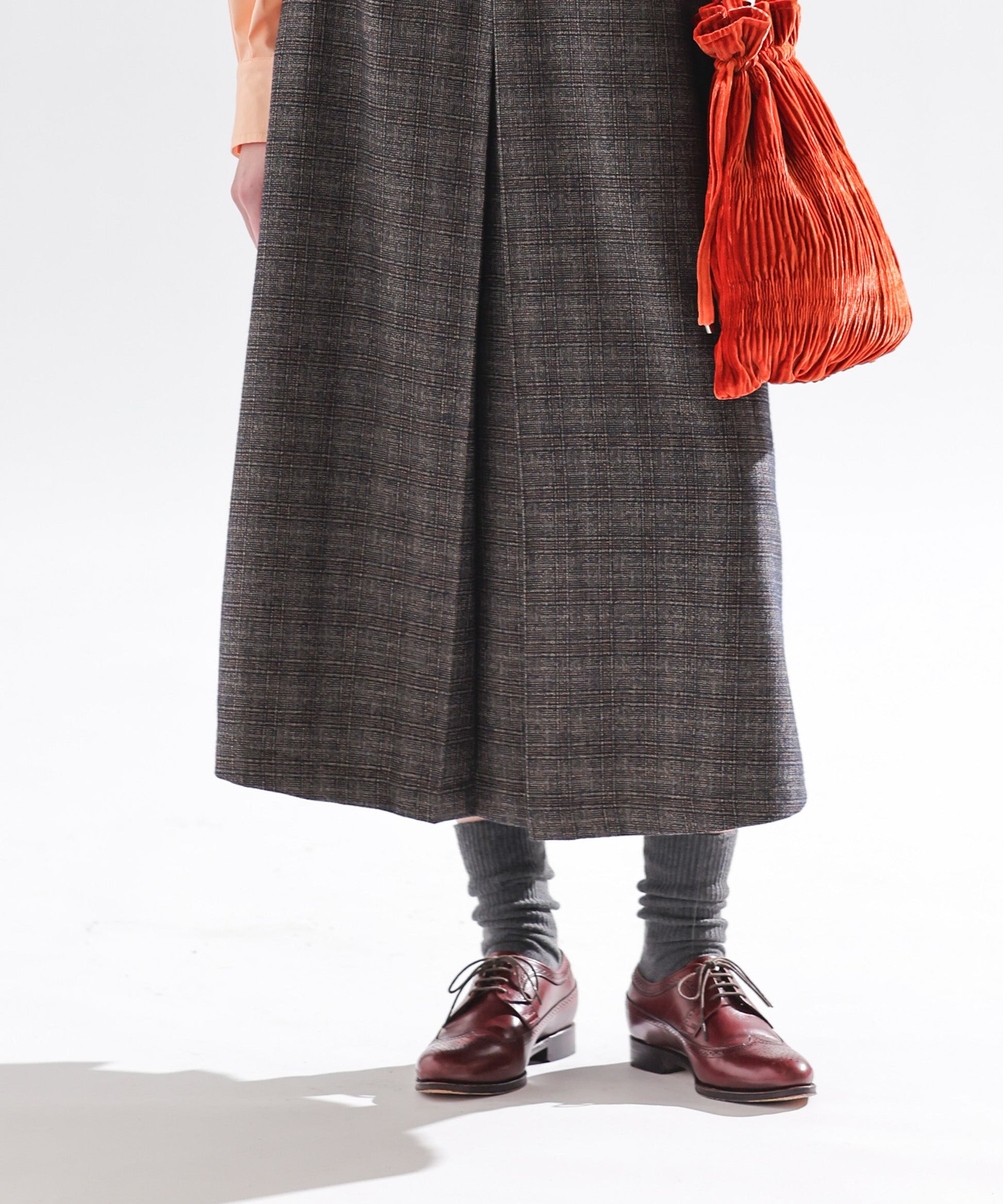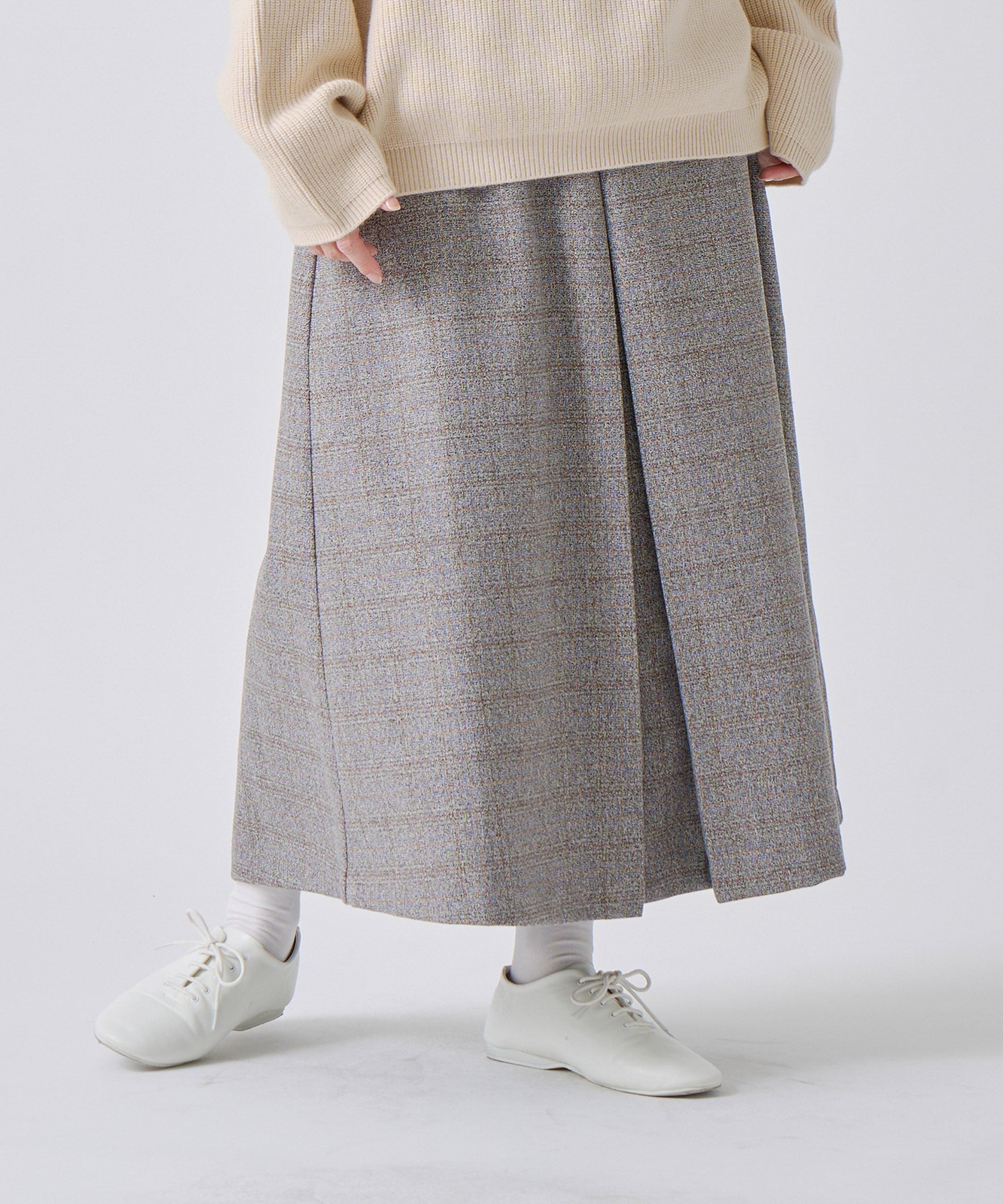 程よい厚みの素材なので、Aラインのシルエットがしっかり出て上品な印象の一枚で、ブラウス合わせや、カジュアルなアイテムも着こなせる万能アイテムです。