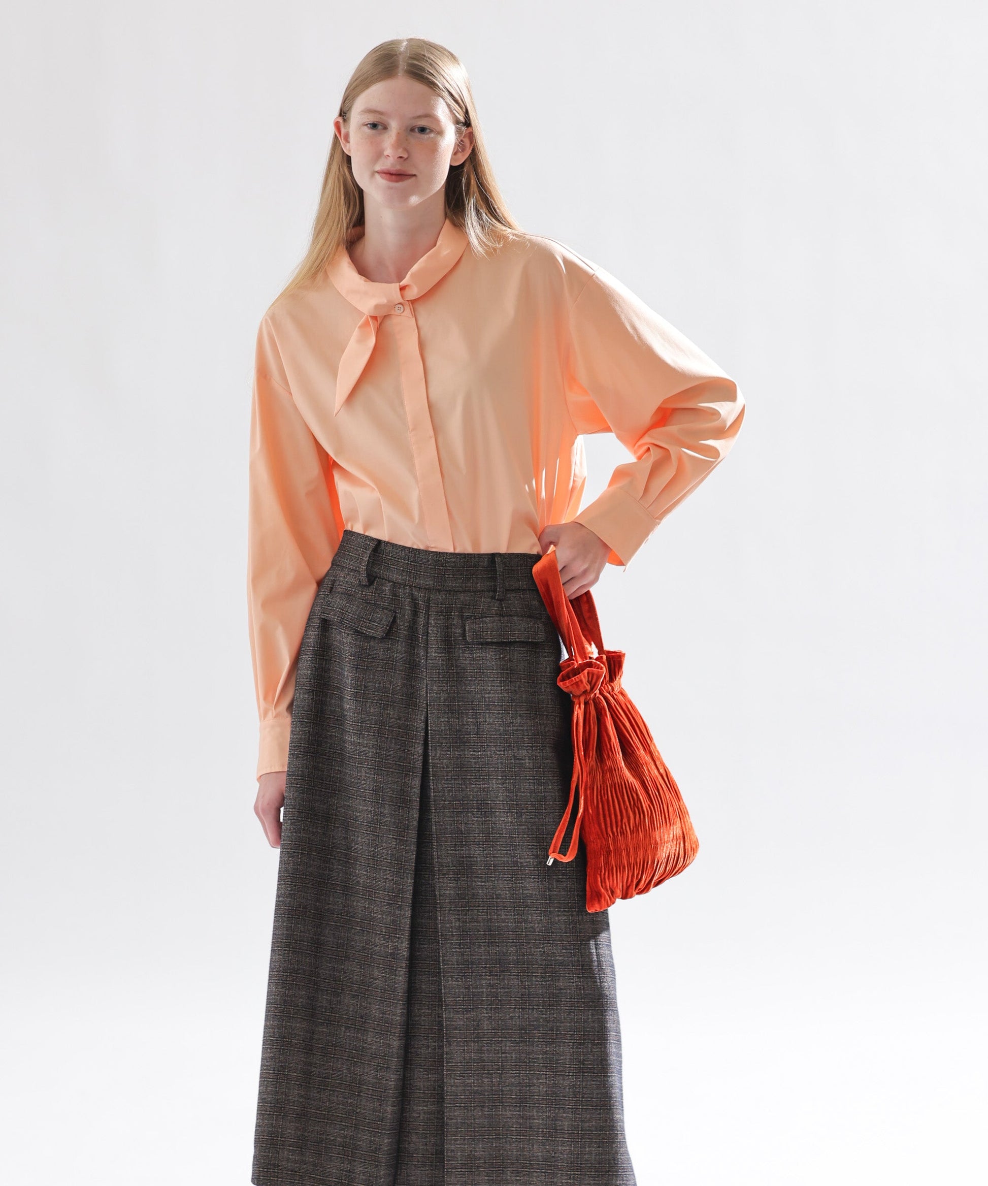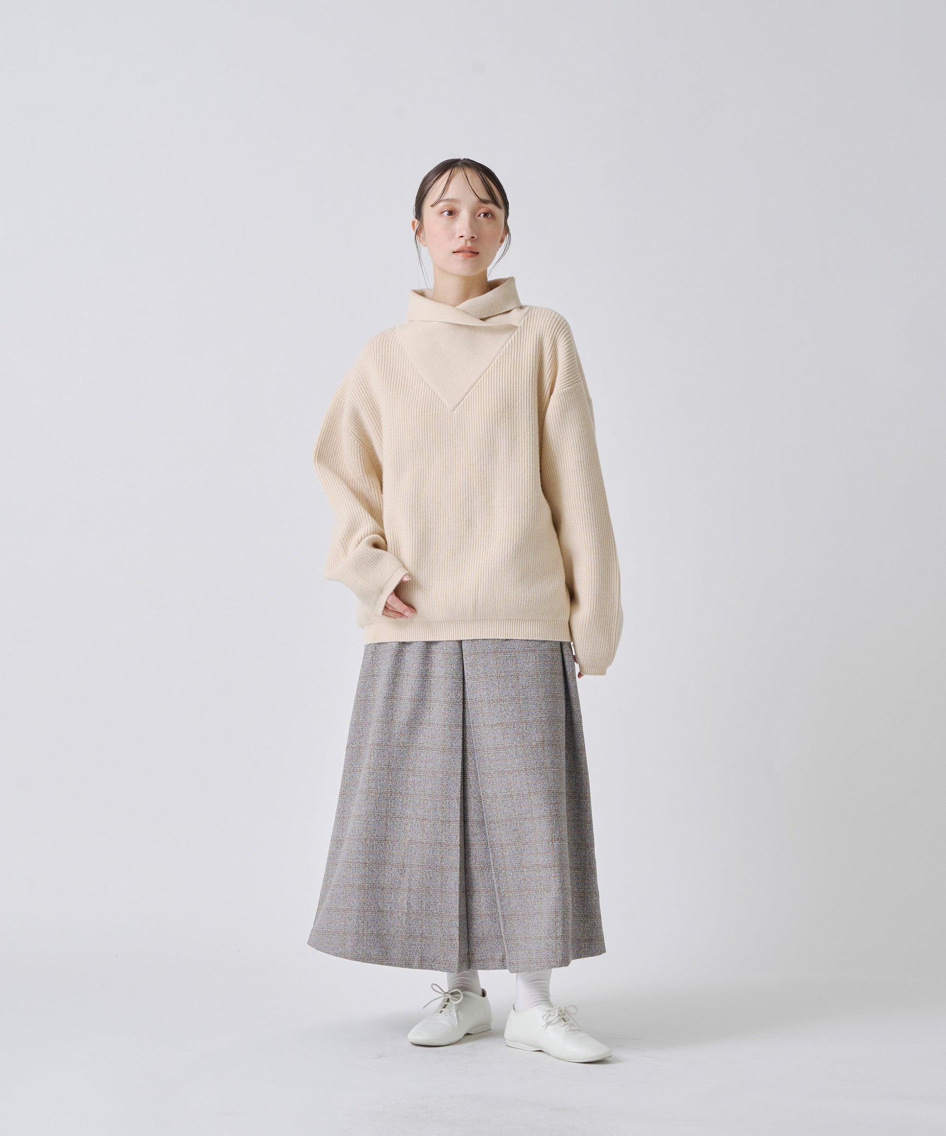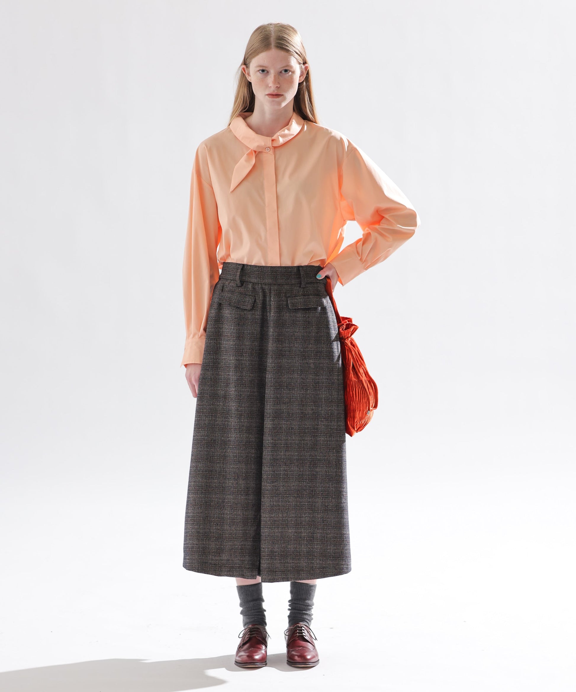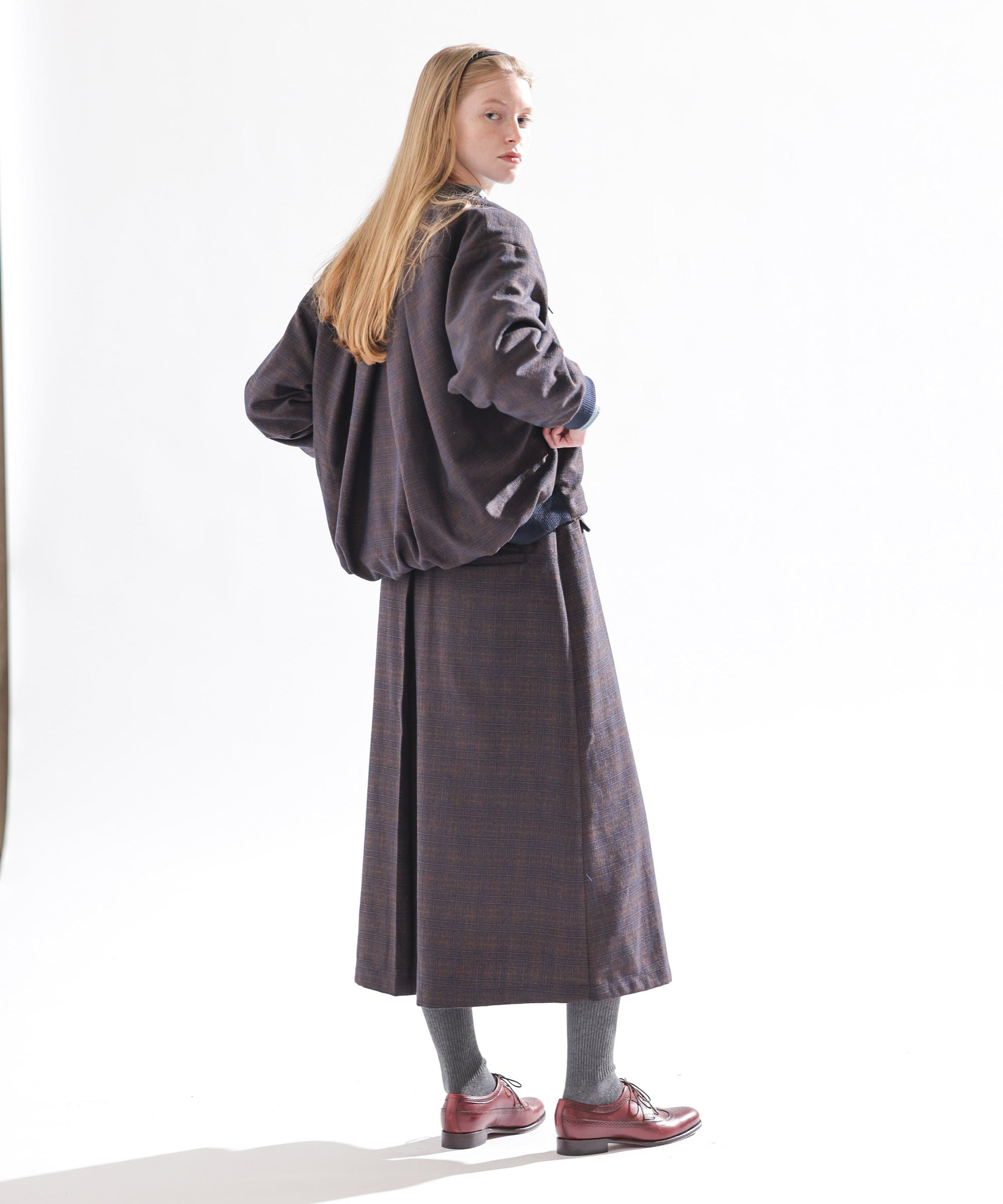 程よい厚みの素材なので、Aラインのシルエットがしっかり出て上品な印象の一枚で、ブラウス合わせや、カジュアルなアイテムも着こなせる万能アイテムです。