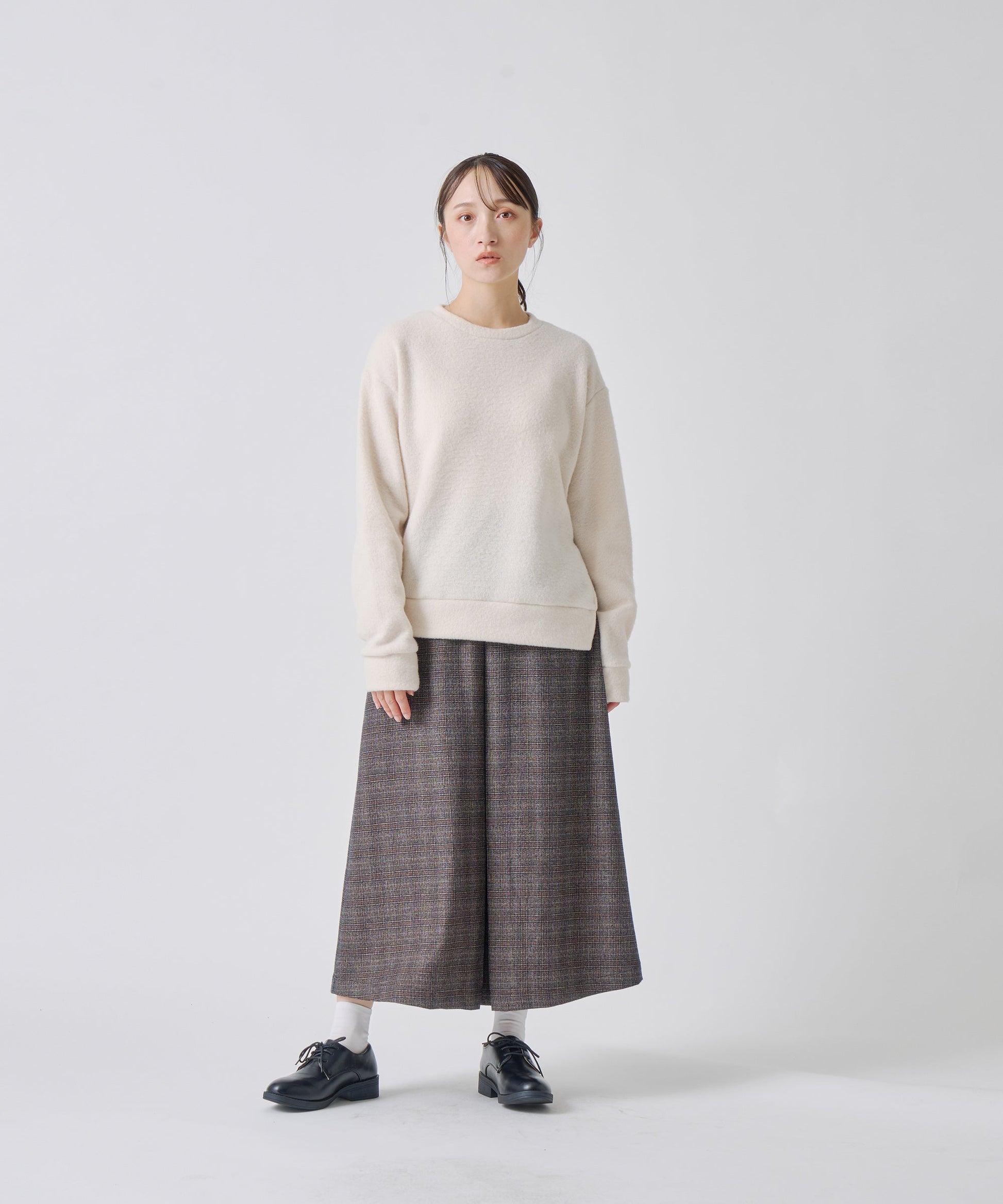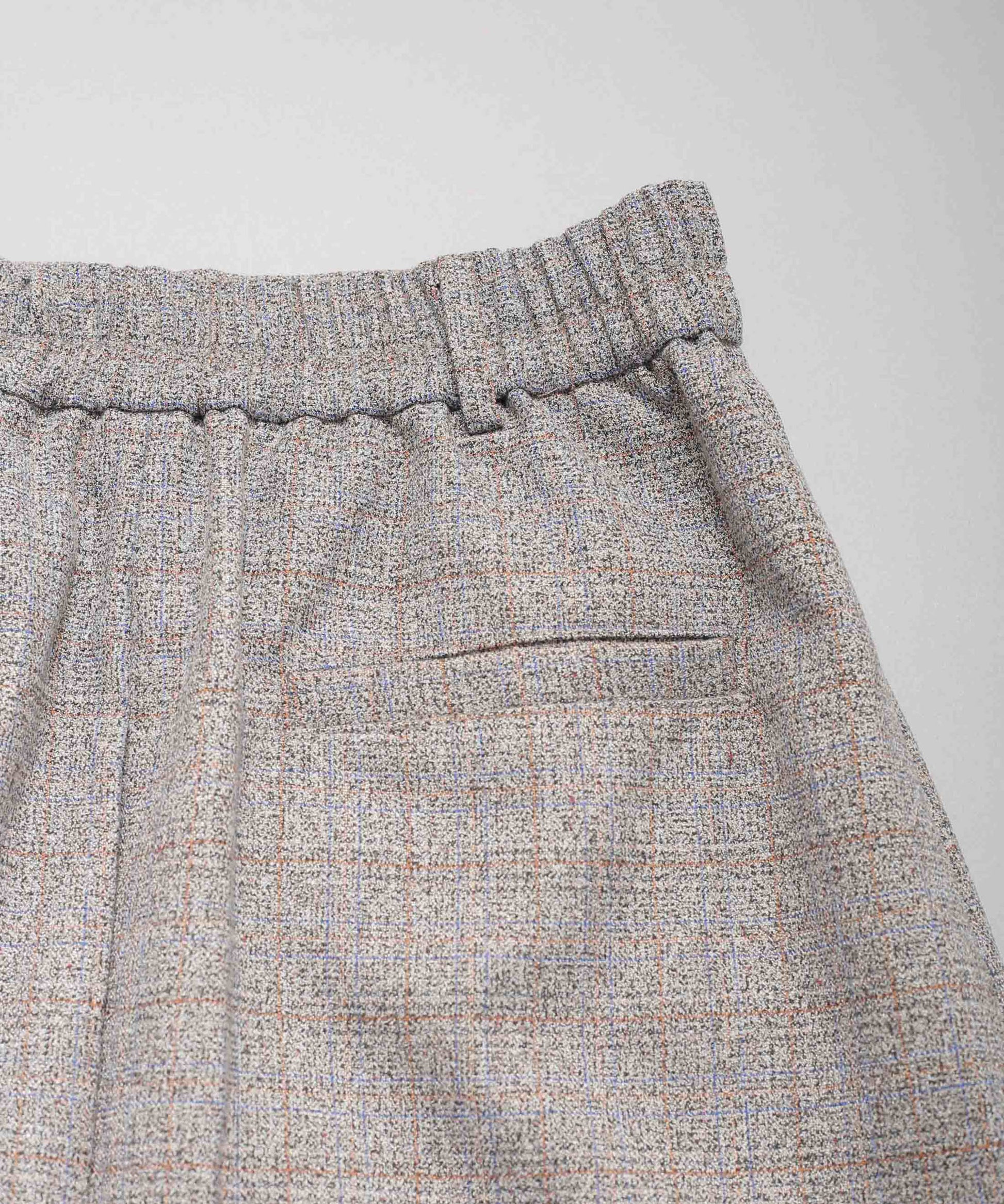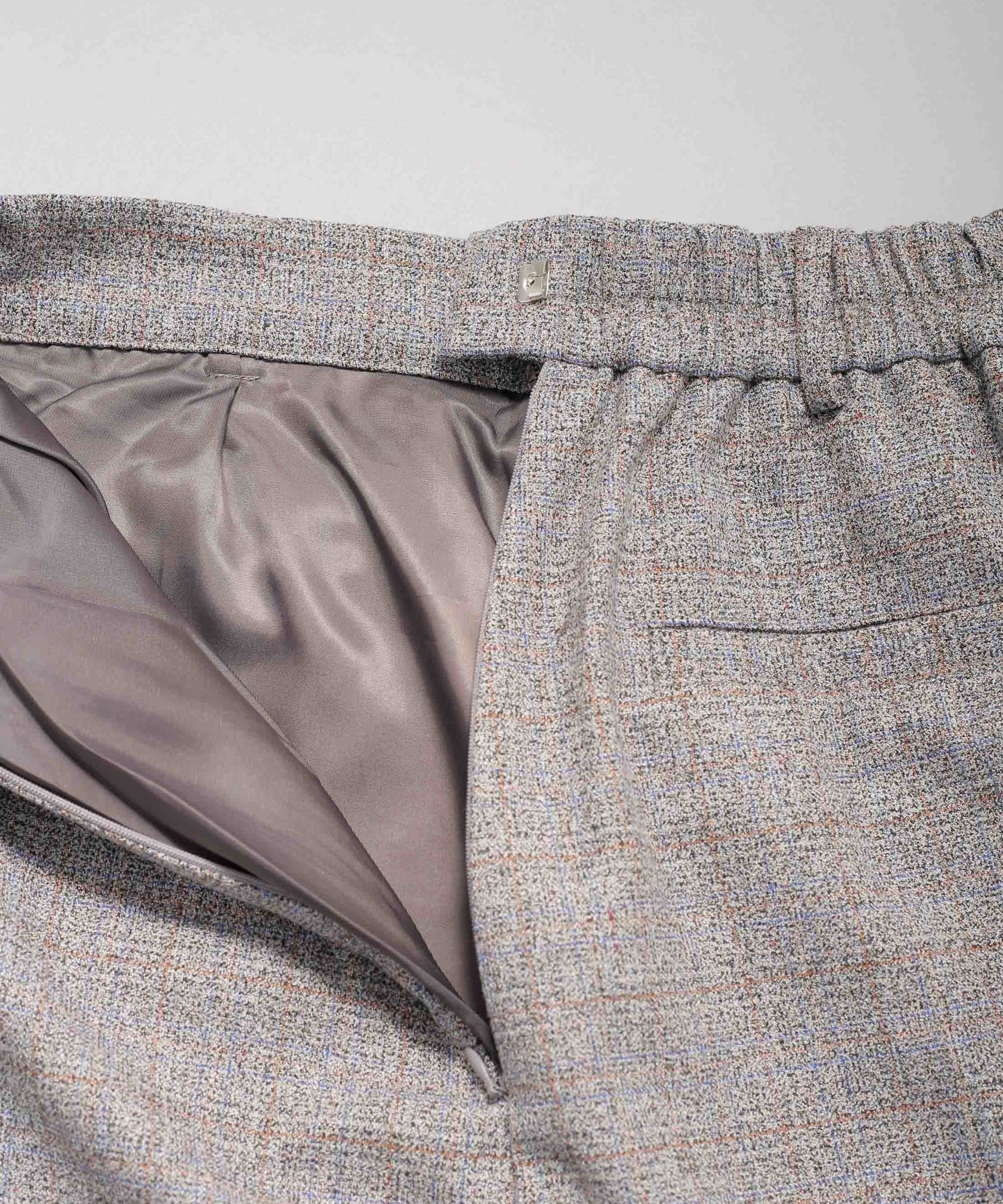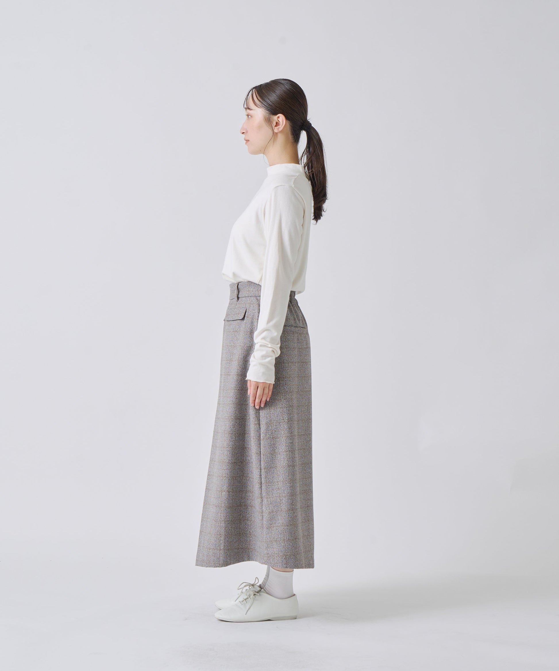フロントはすっきりとしたウエストで、バックはゴム仕様なので、トップスをインしてもすっきりとした着こなしに。