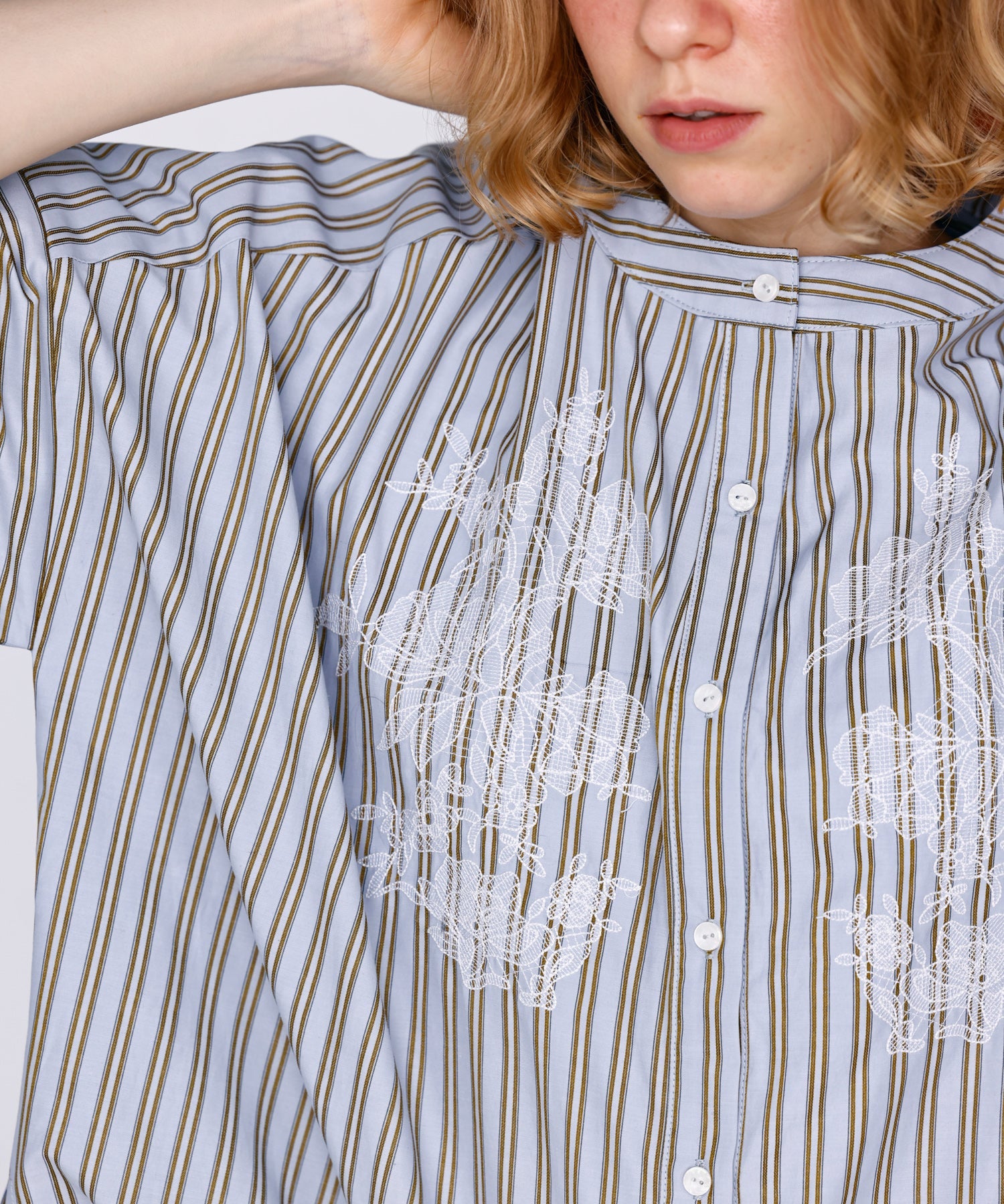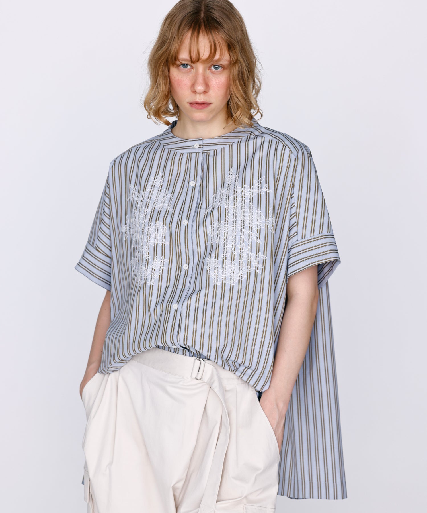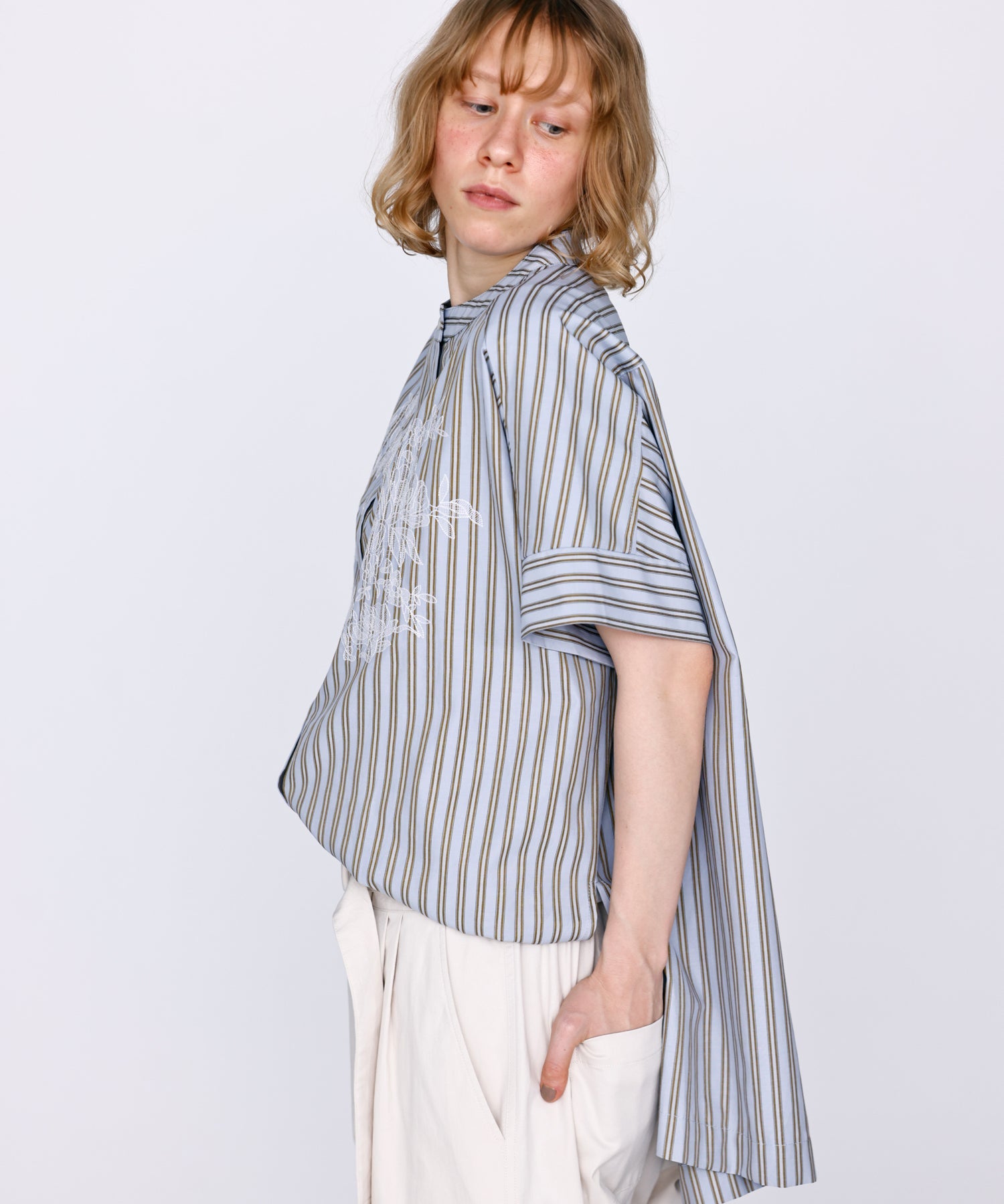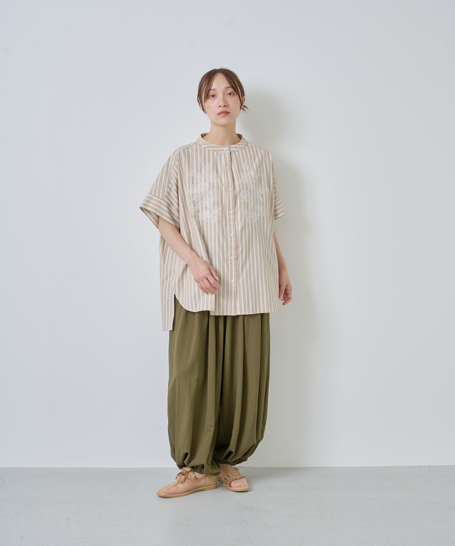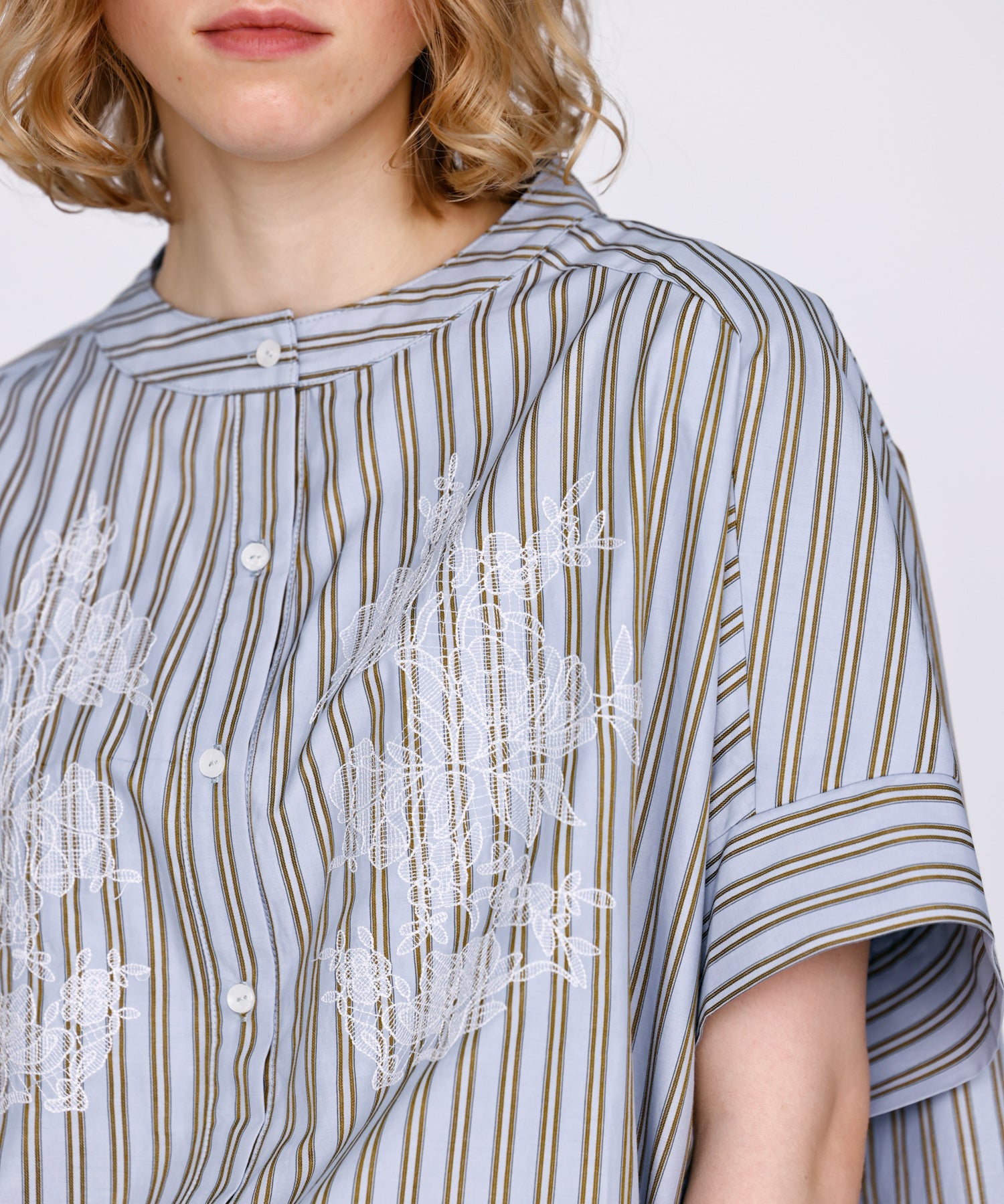繊細な刺繍ディテールが印象的なワイドシルエットのブラウスです。