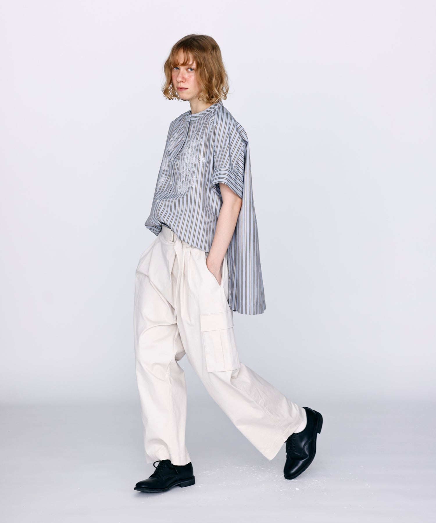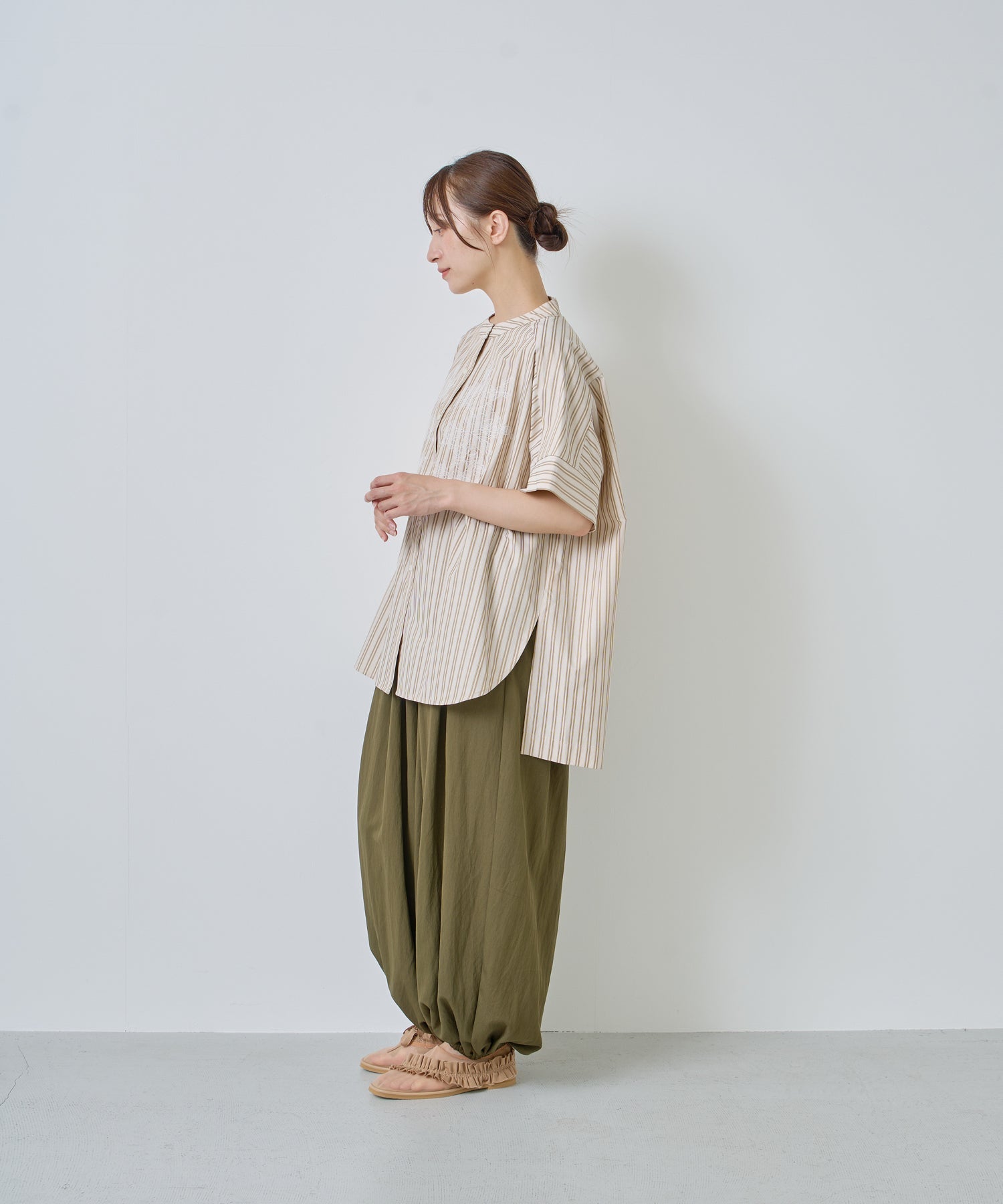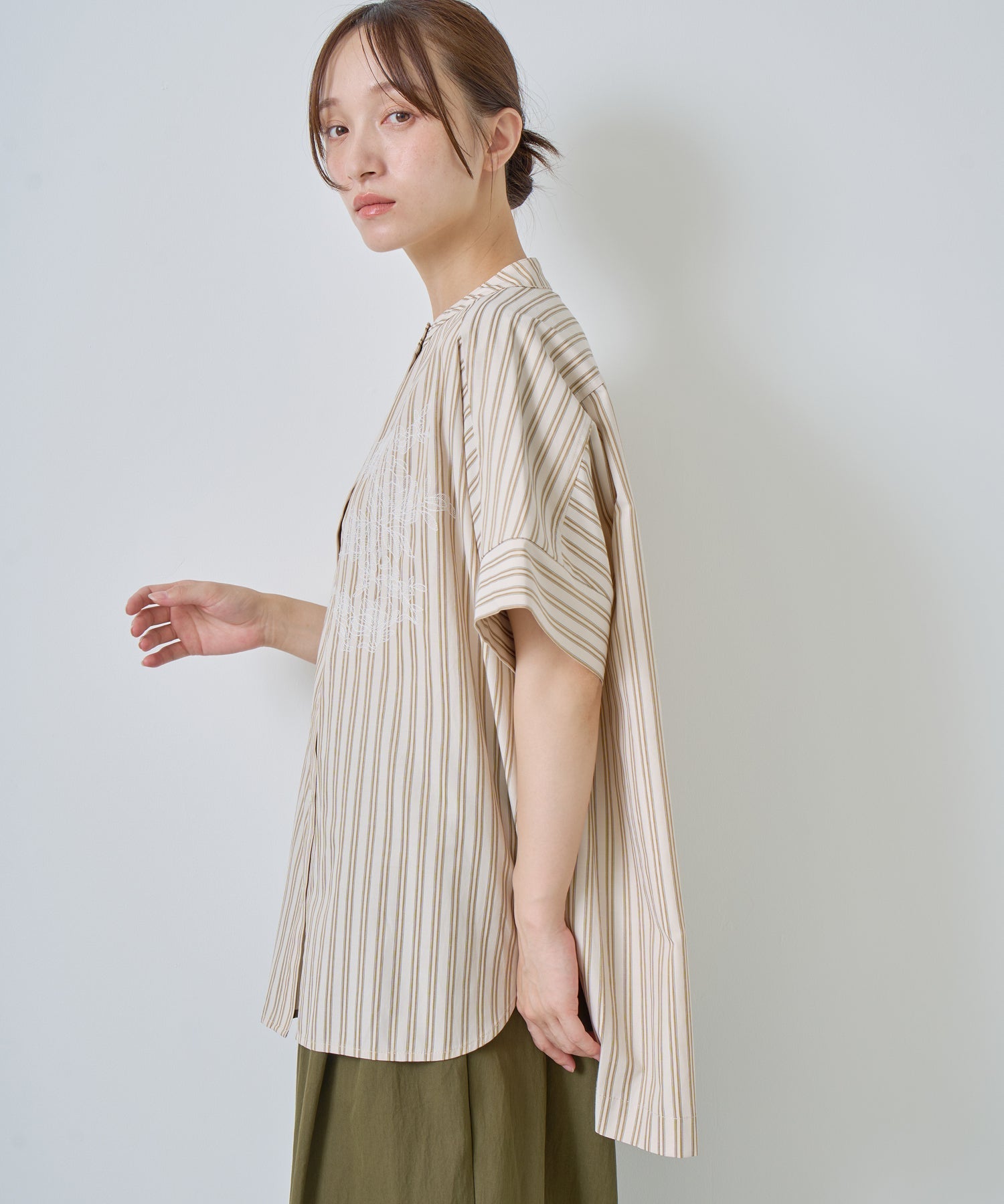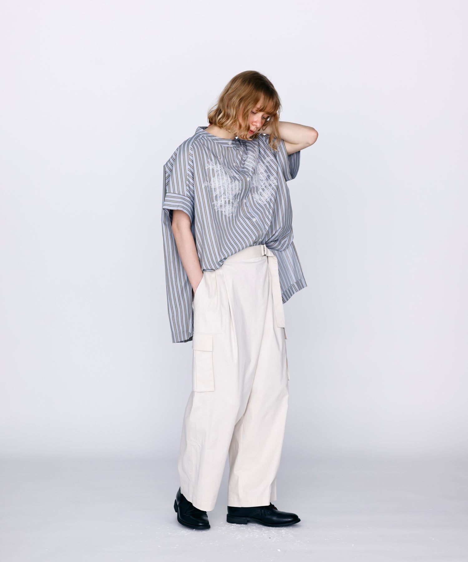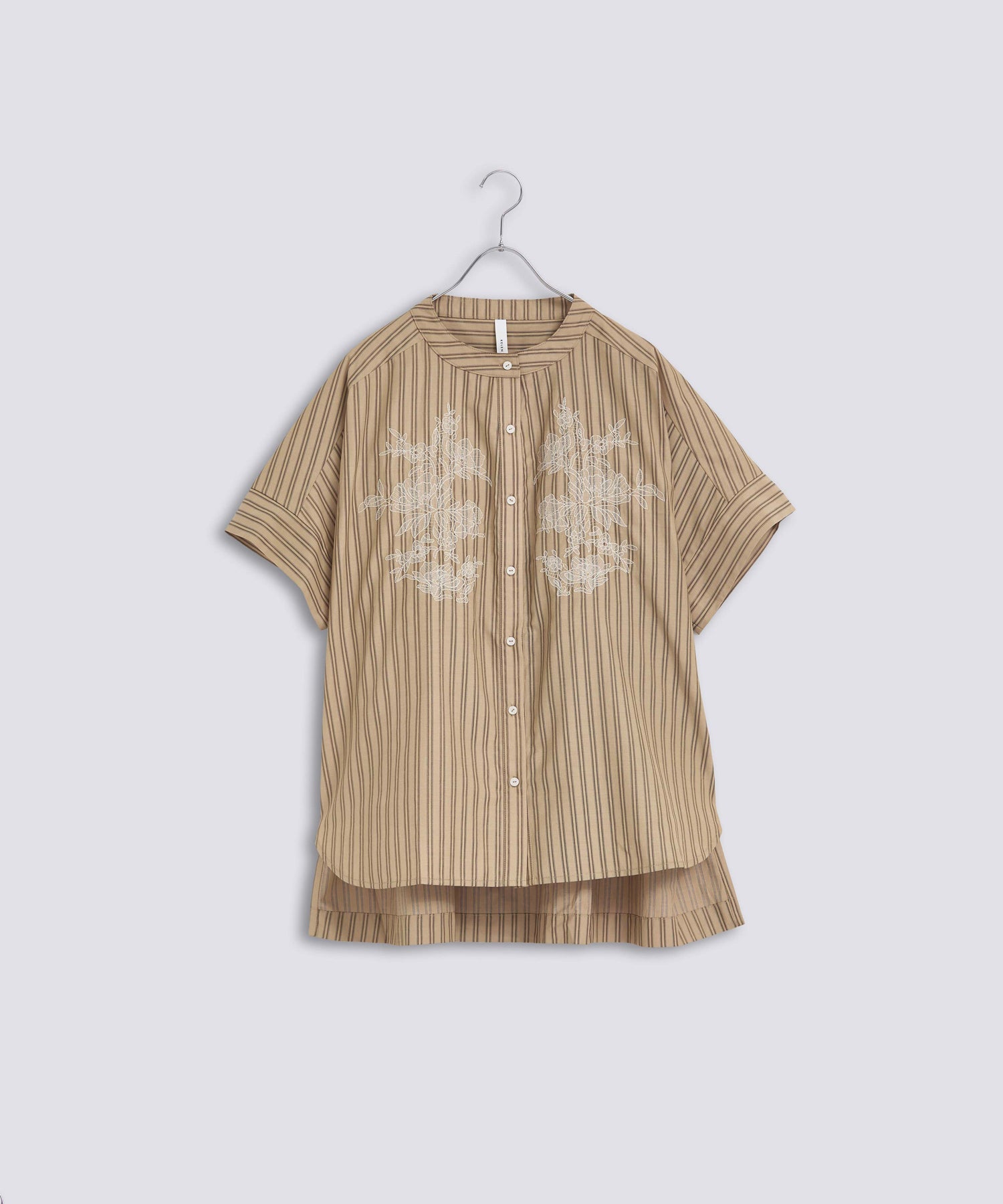 繊細な刺繍ディテールが印象的なワイドシルエットのブラウスです。
