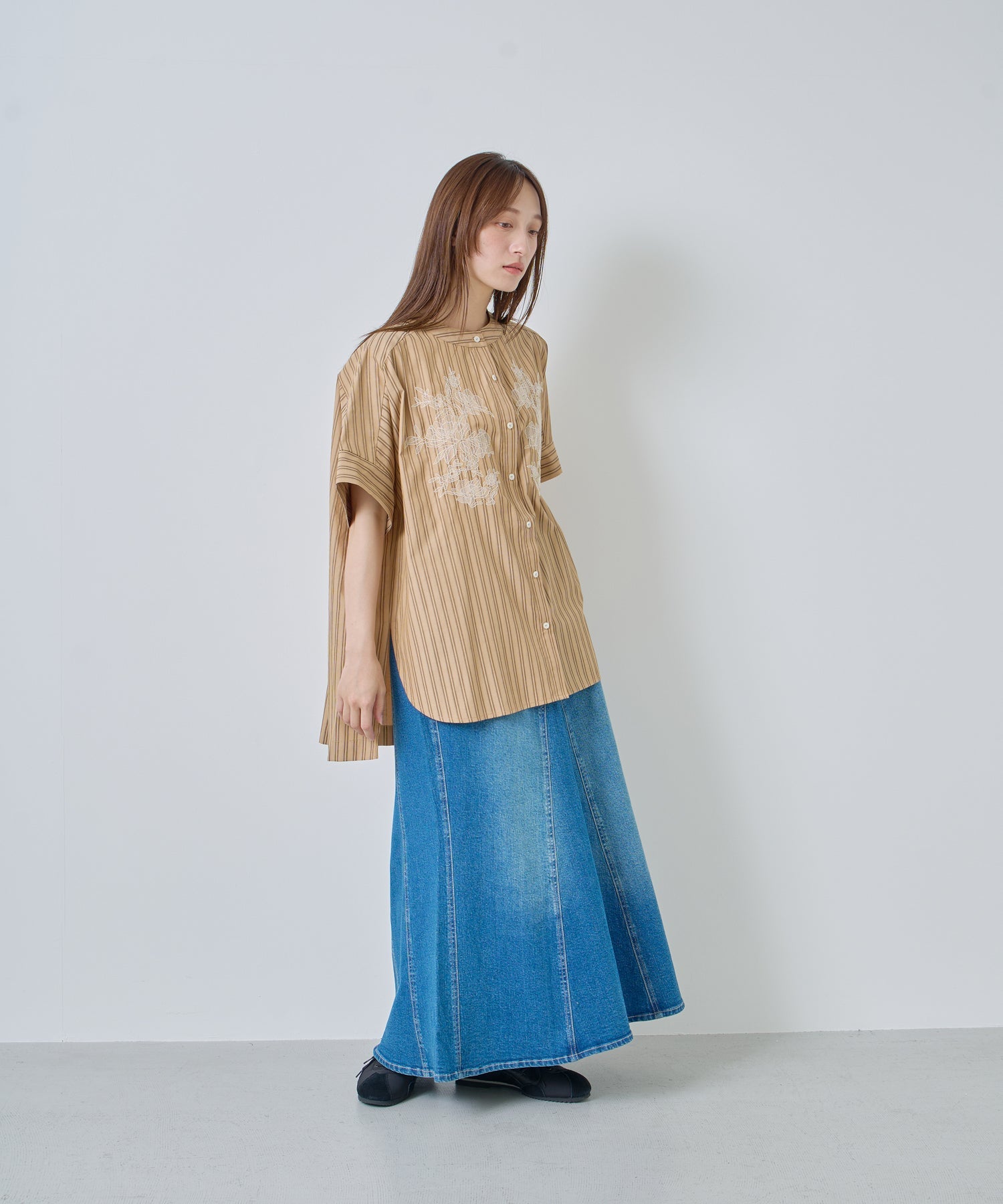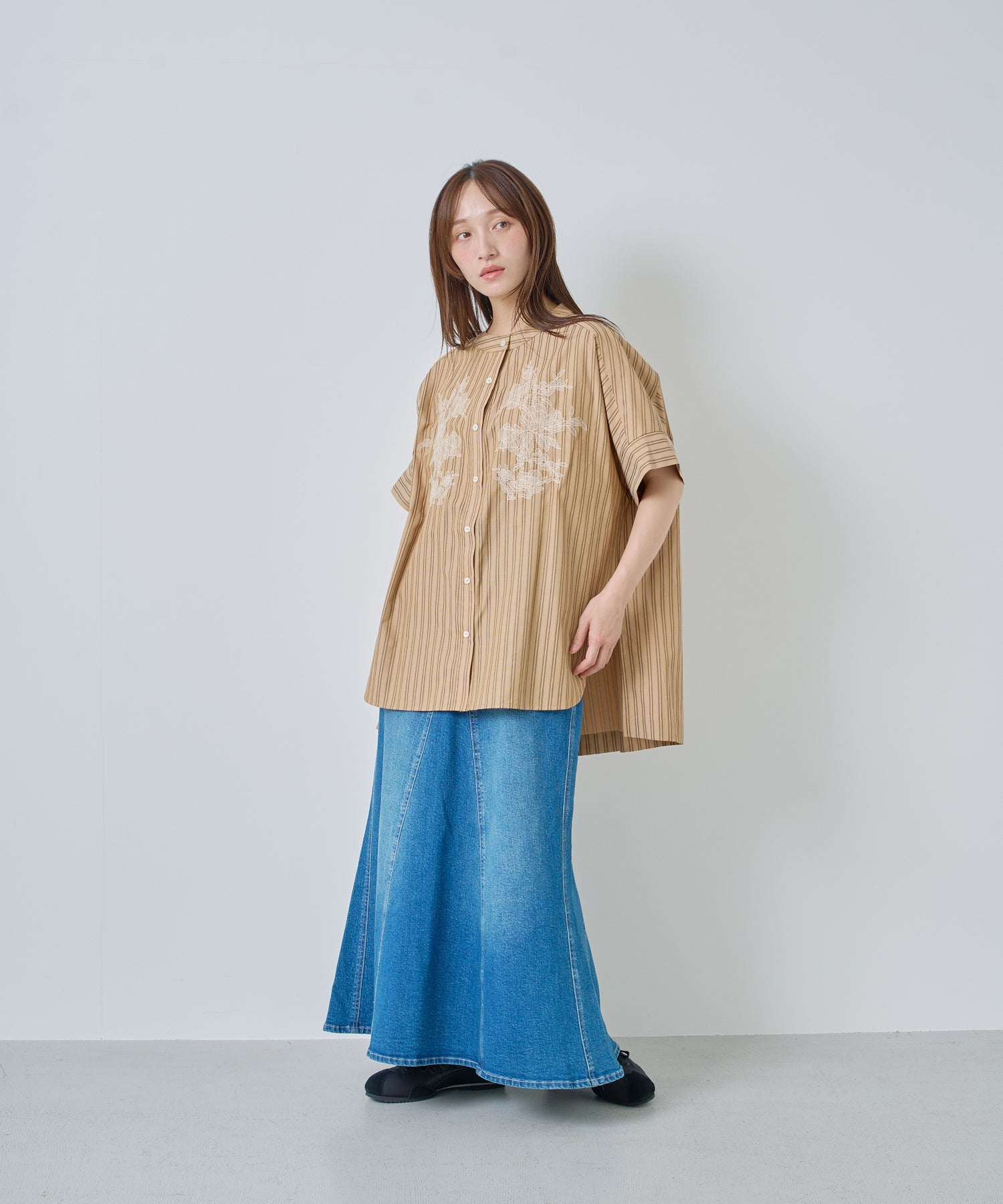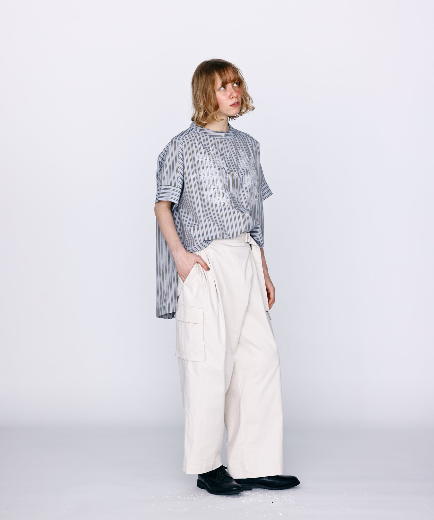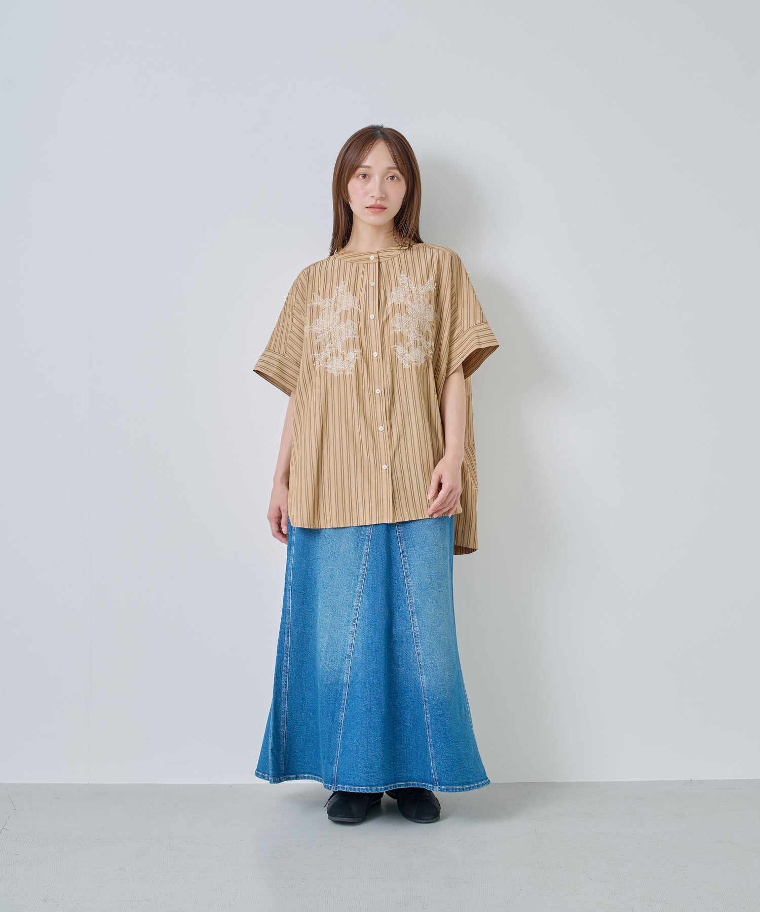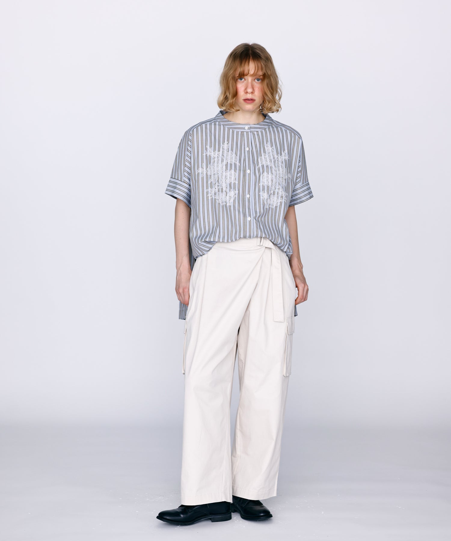 繊細な刺繍ディテールが印象的なワイドシルエットのブラウスです。