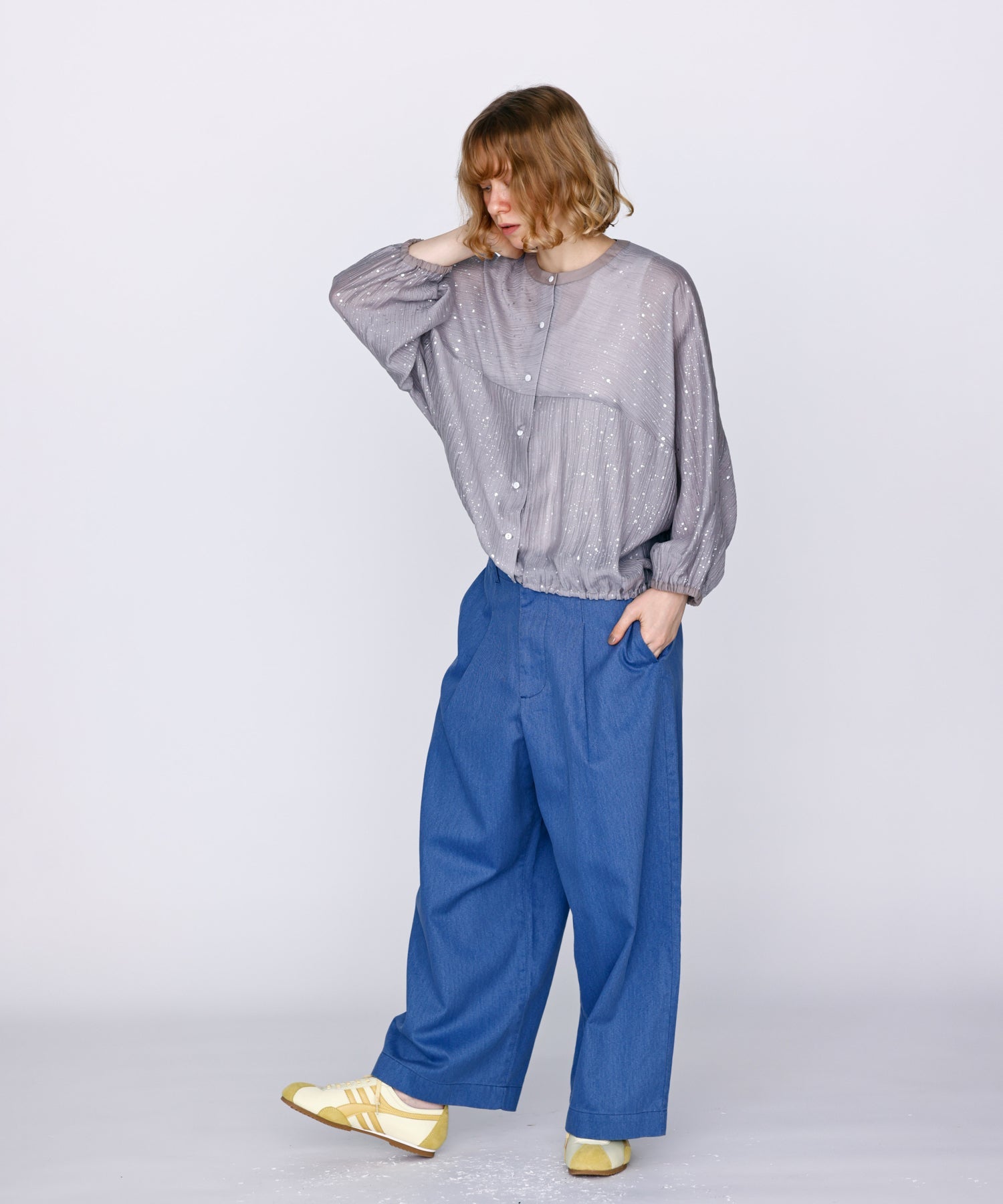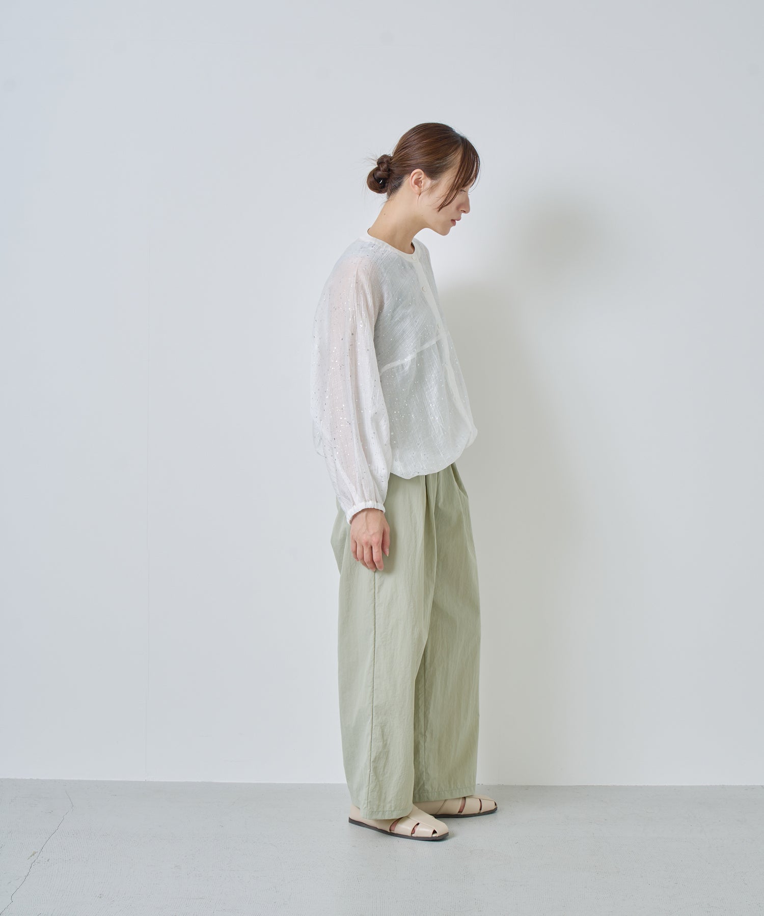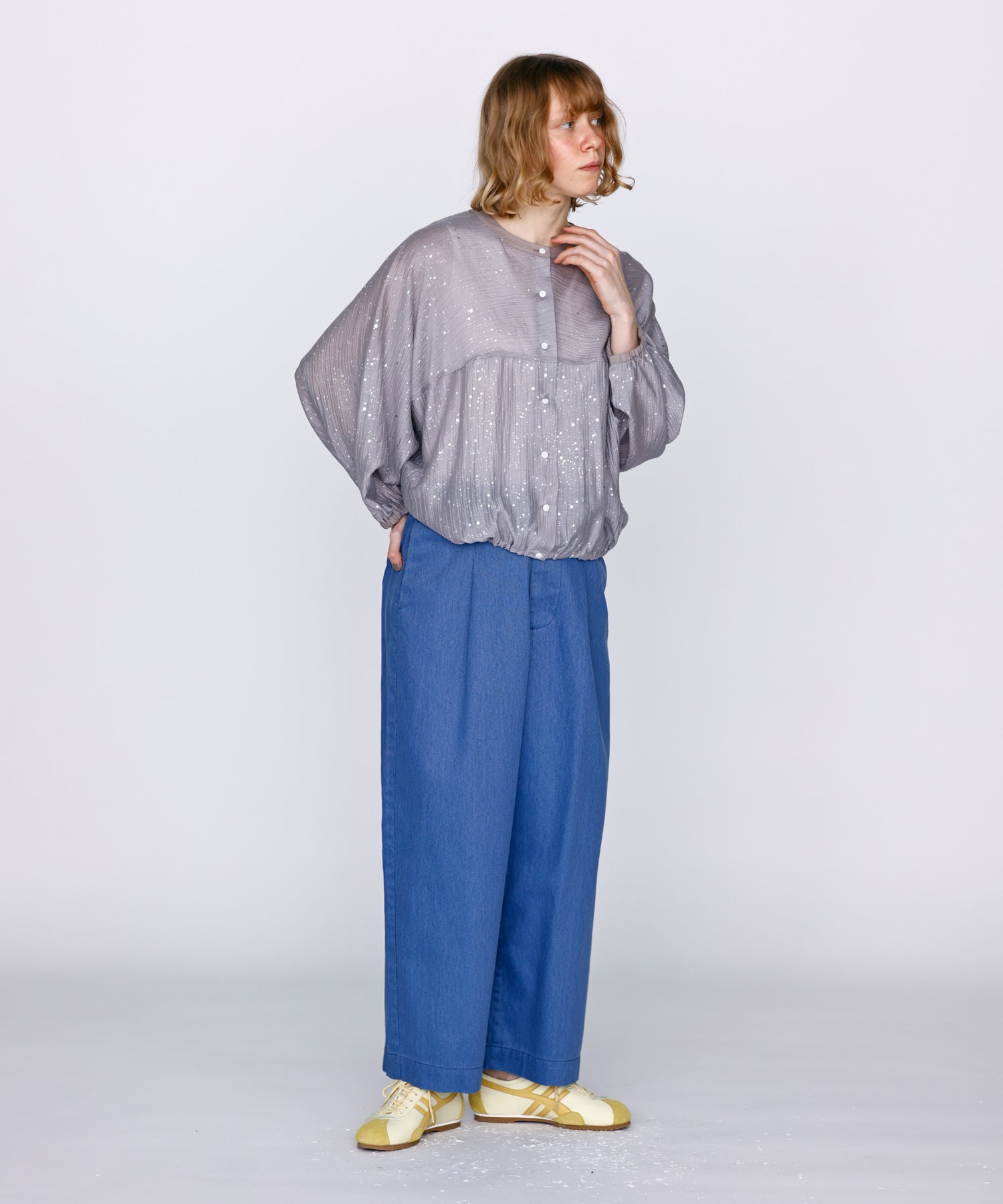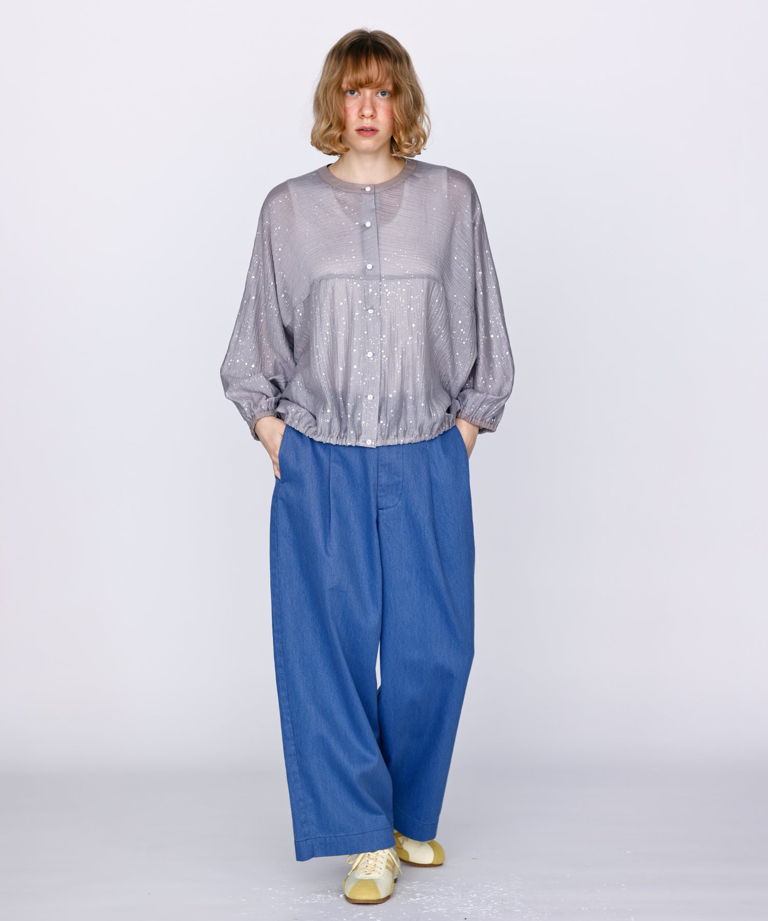 たっぷりと取ったドルマンスリーブはリラックス感があり、袖口と裾にゴムを入れることで、ギャザーで膨らみを持たせたシルエットに。