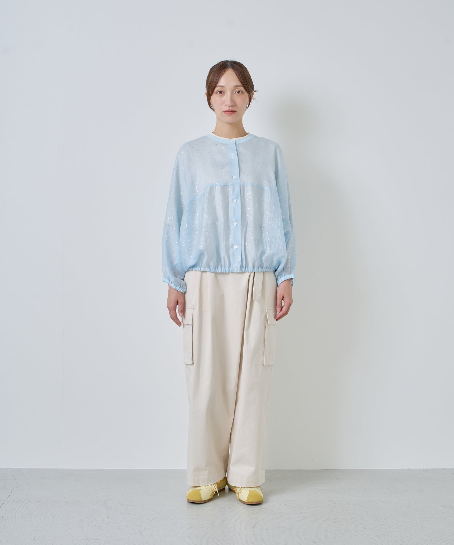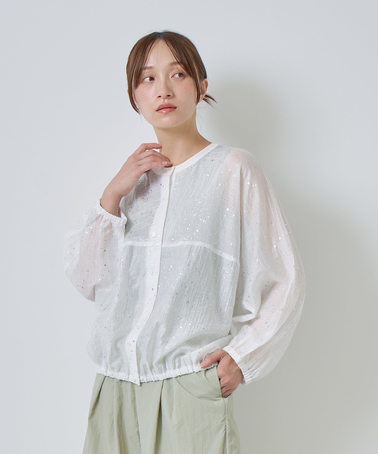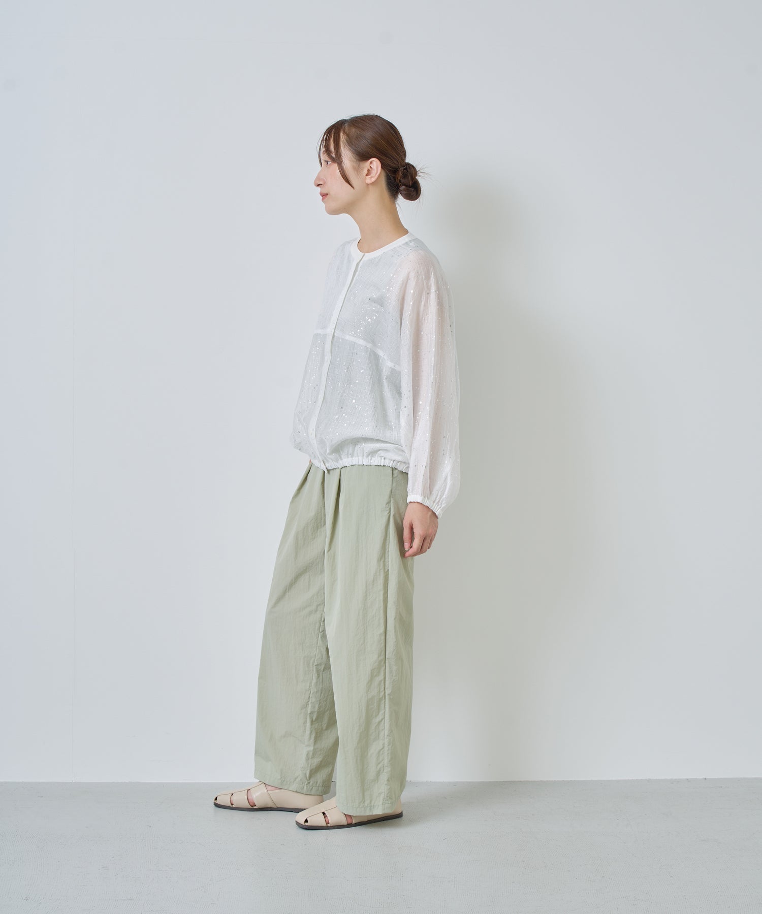 シワになりにくい素材で、程よい透け感が涼しげな1枚。