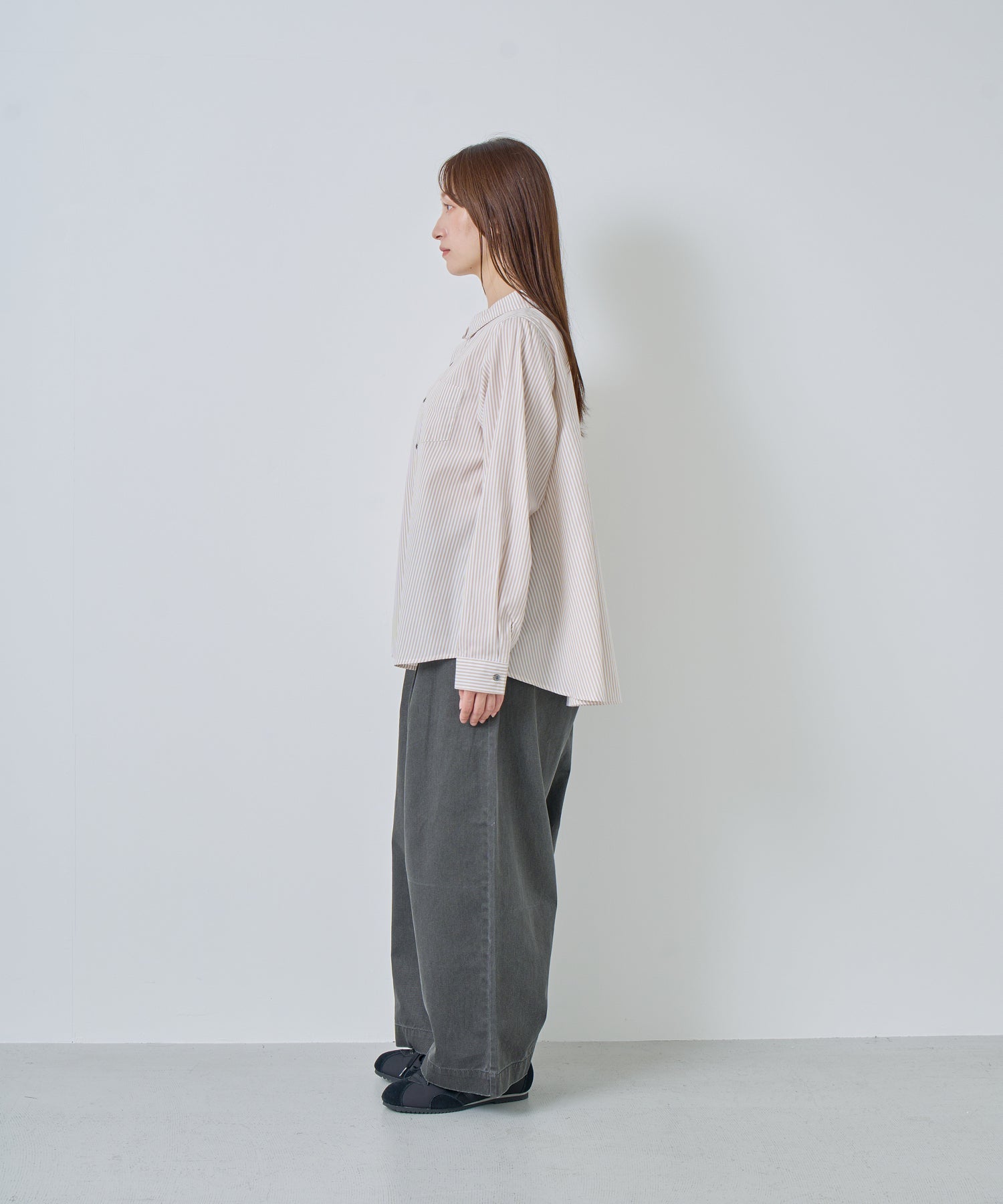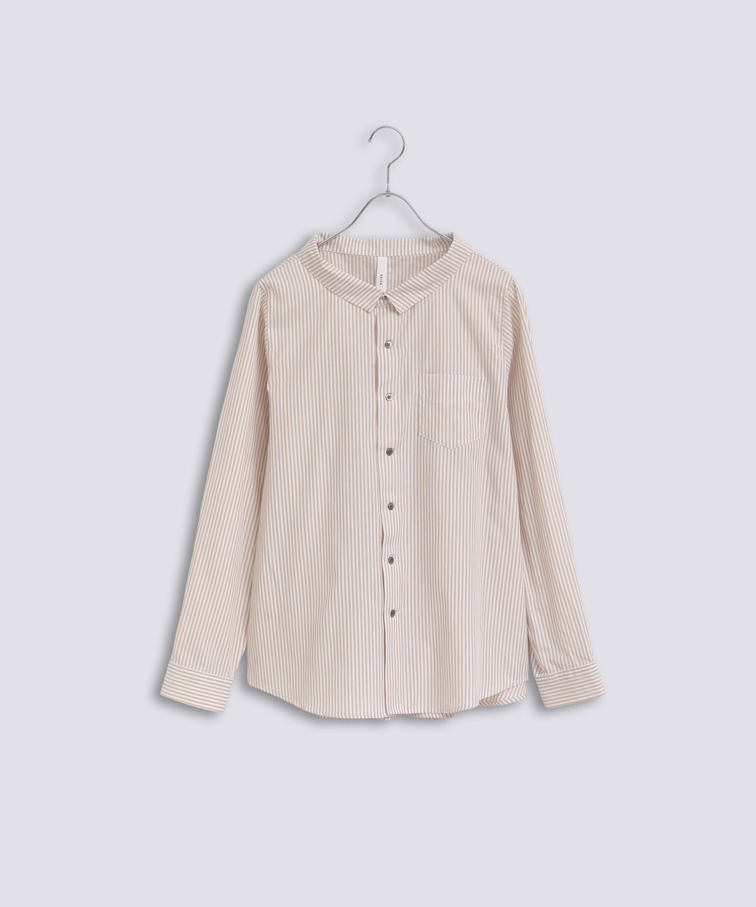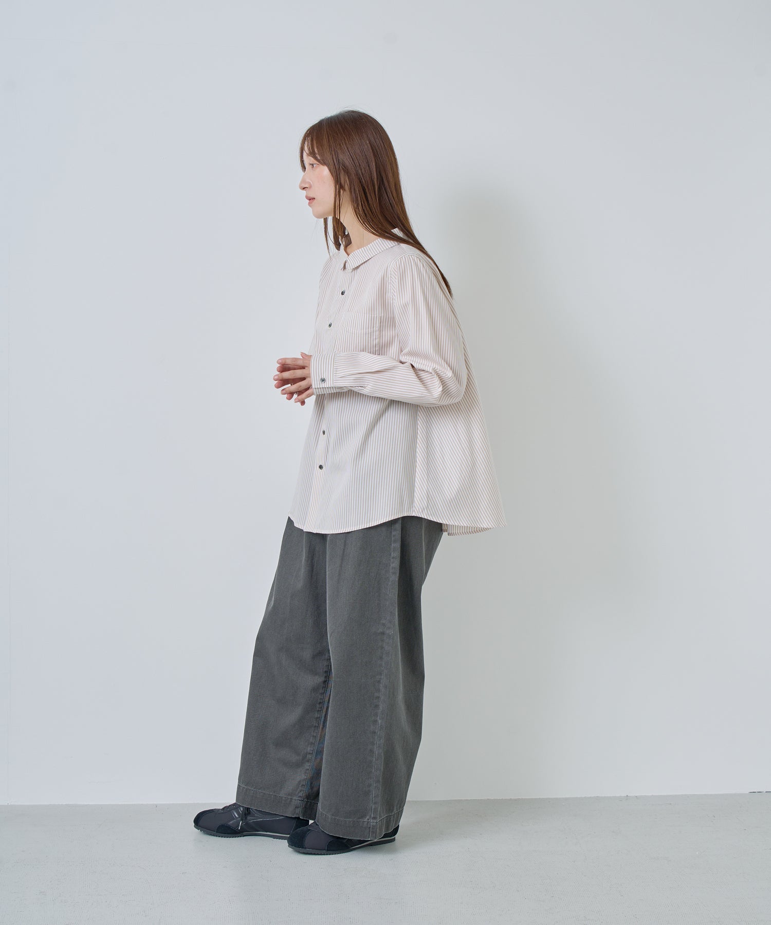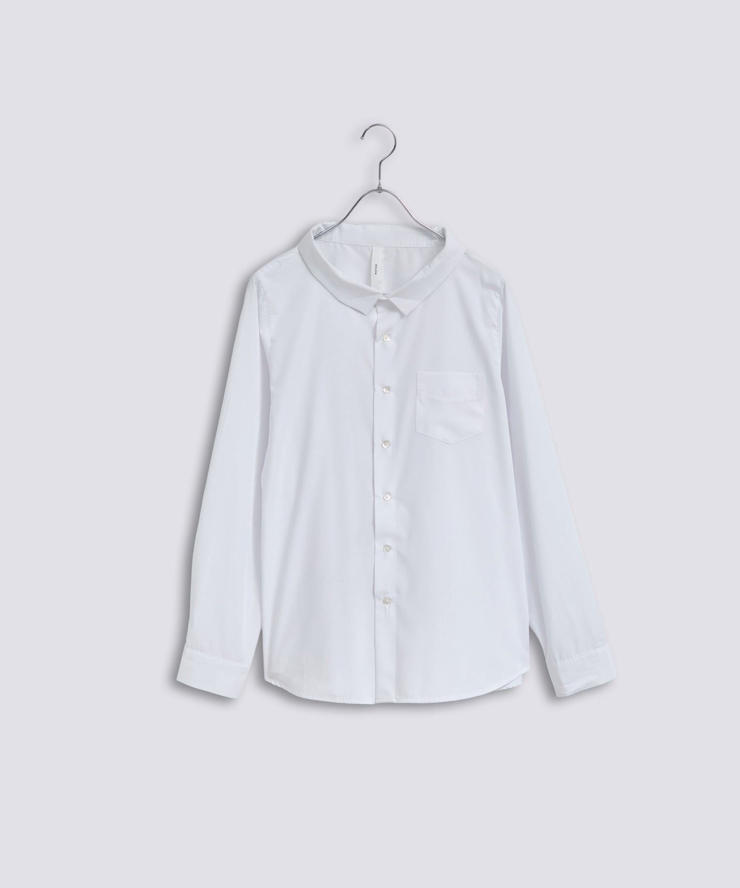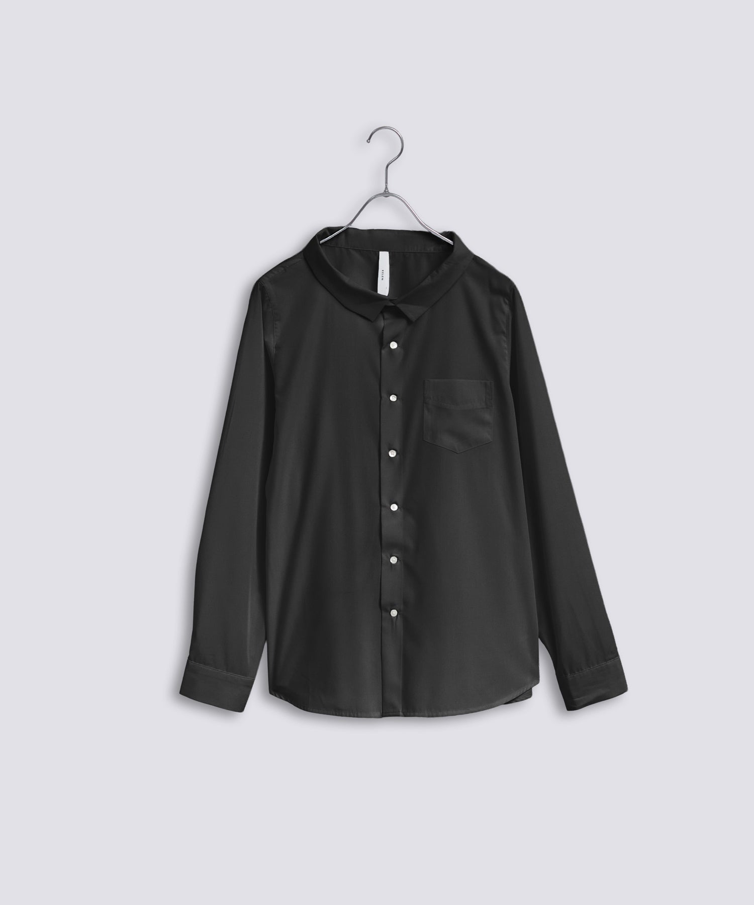 やや広めに設定している襟はパターンで立ち上がるように設定し、シンプルすぎないブラウスのポイントにしています。