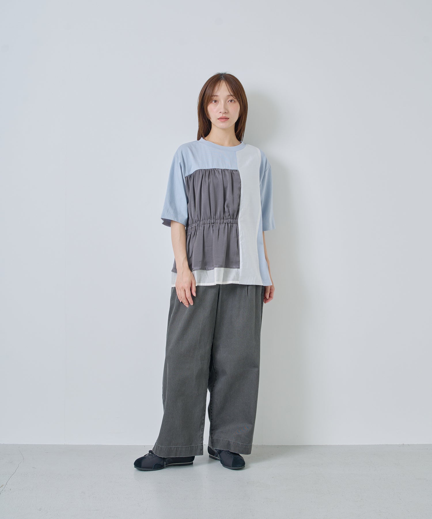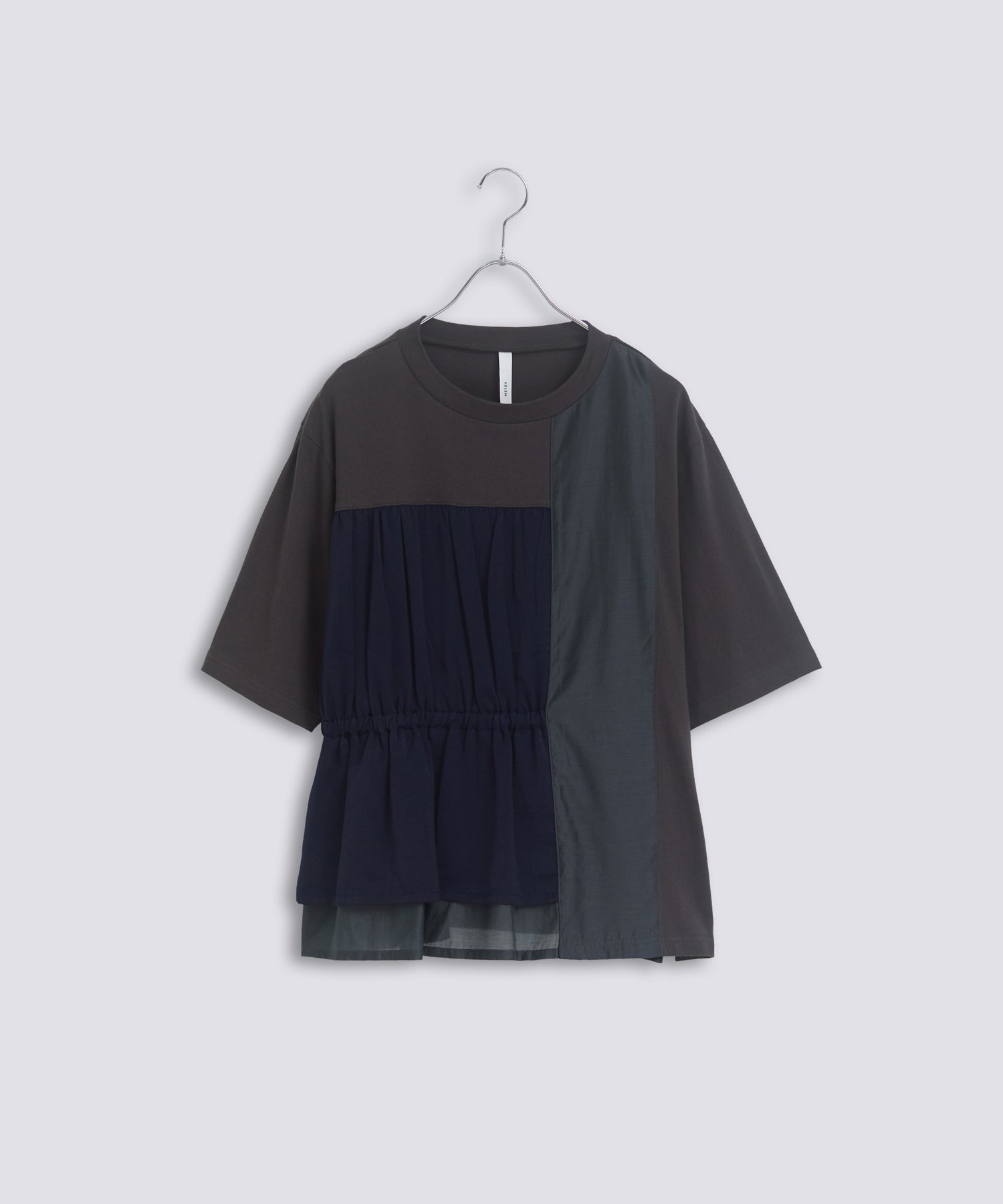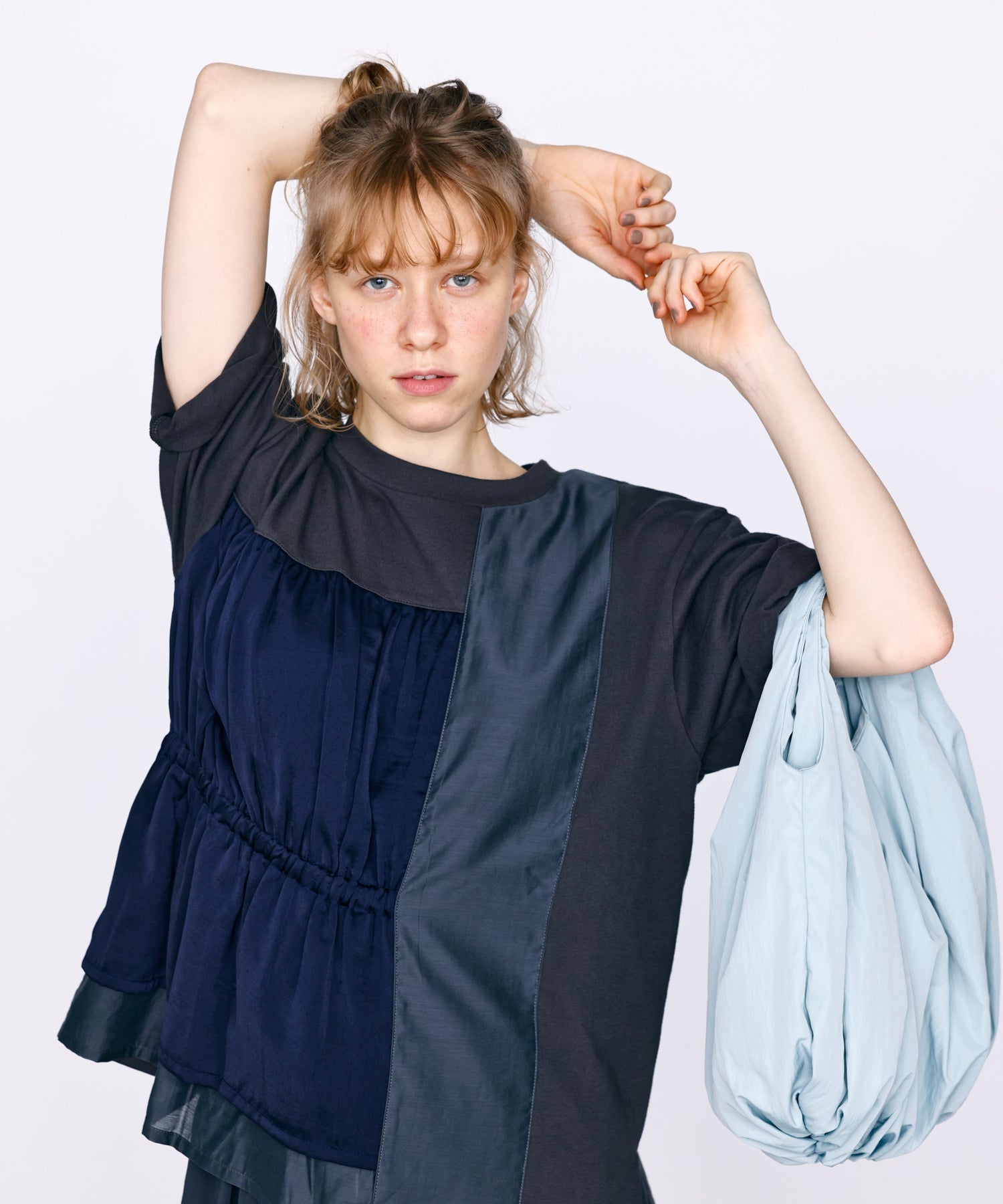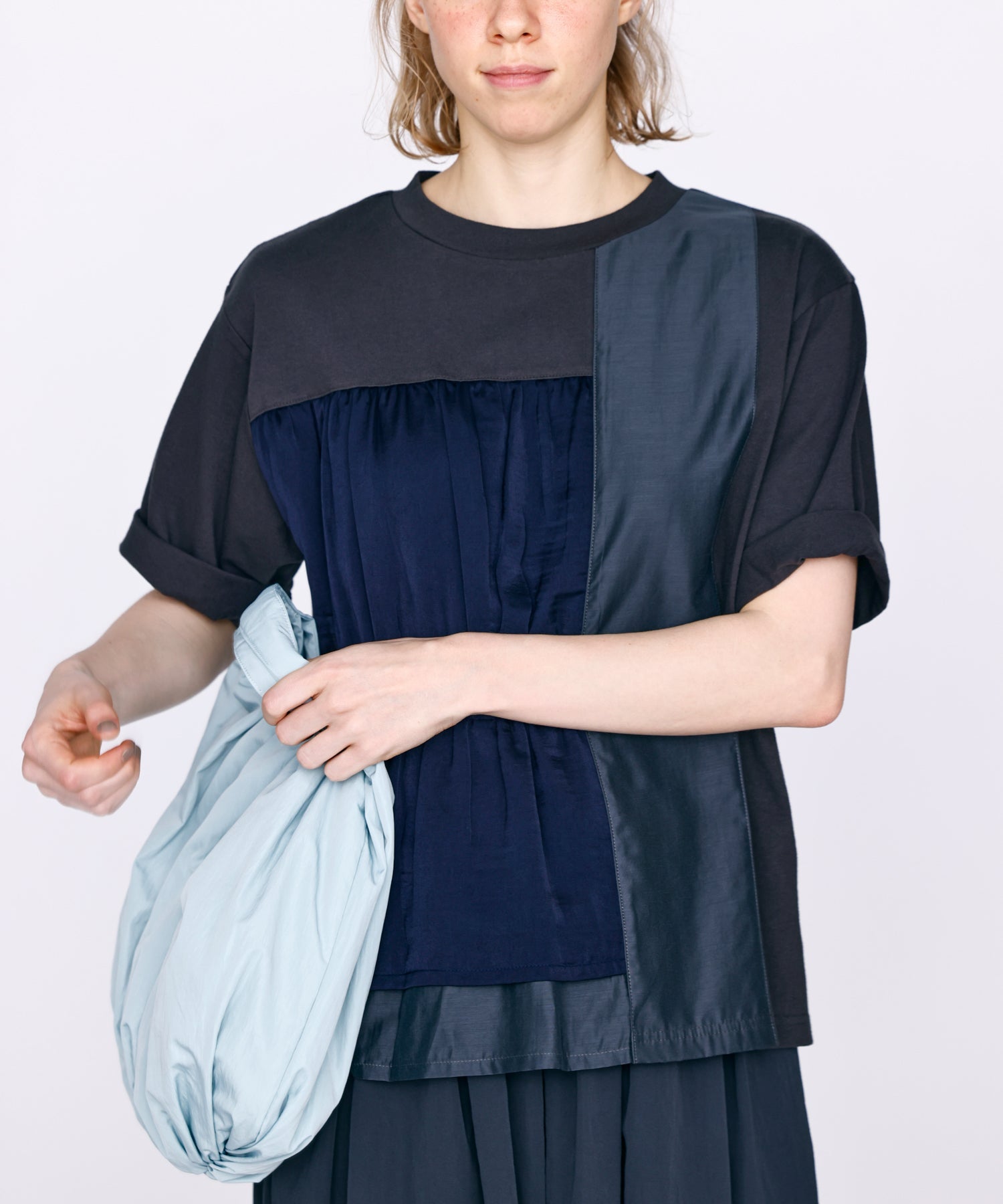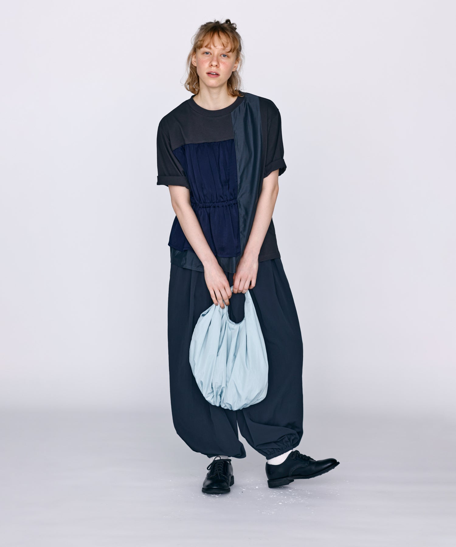 さらにサテン部分はギャザーを施すことでドレープが生まれ、女性らしい印象に。