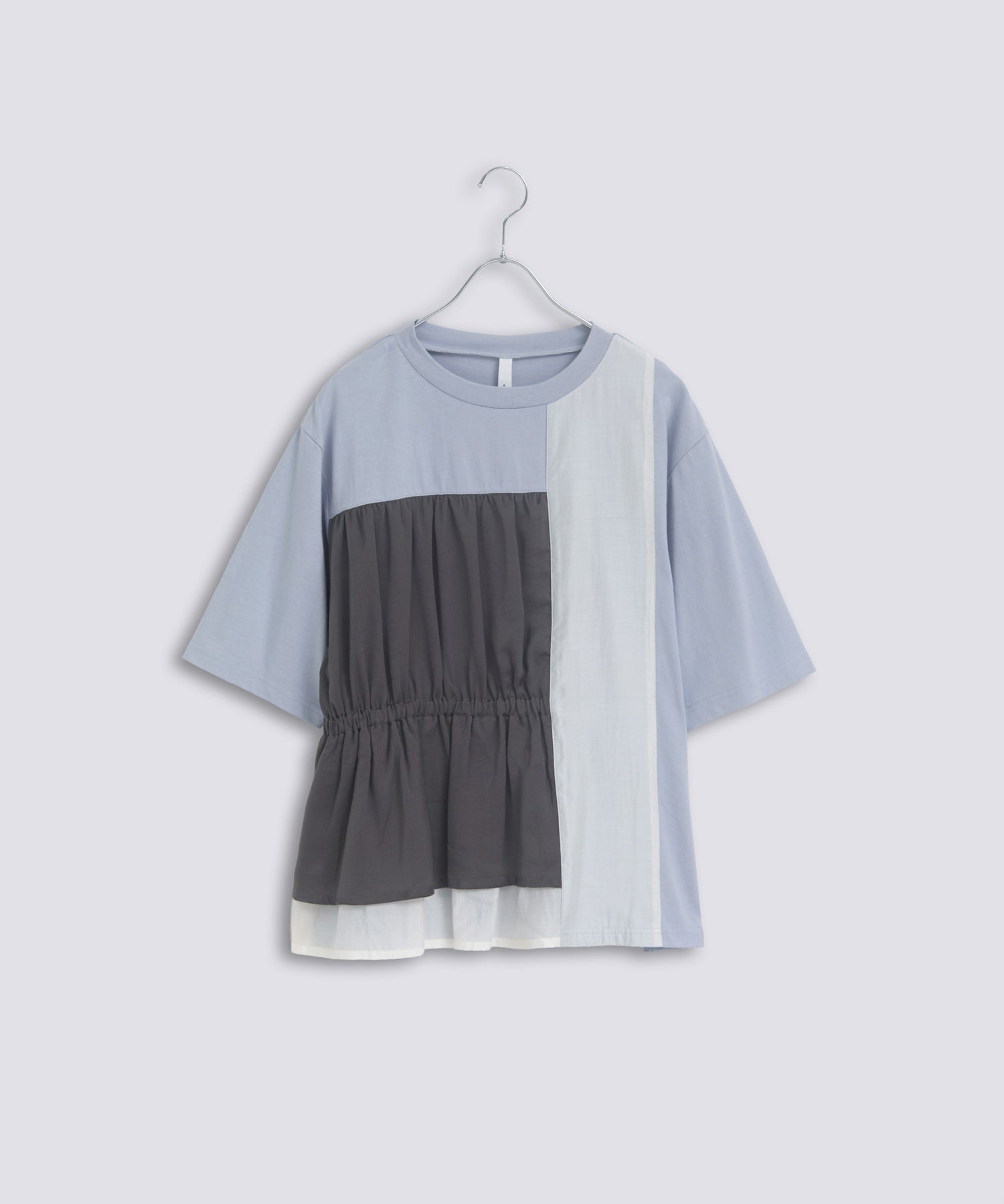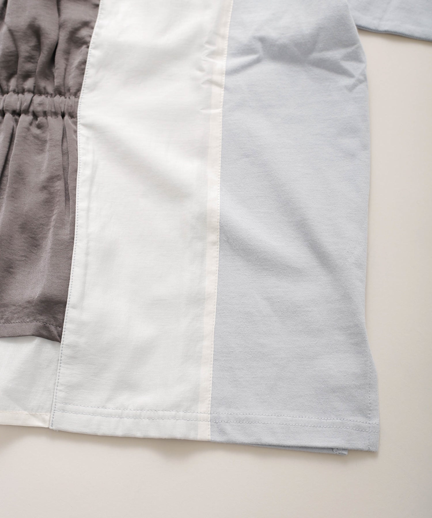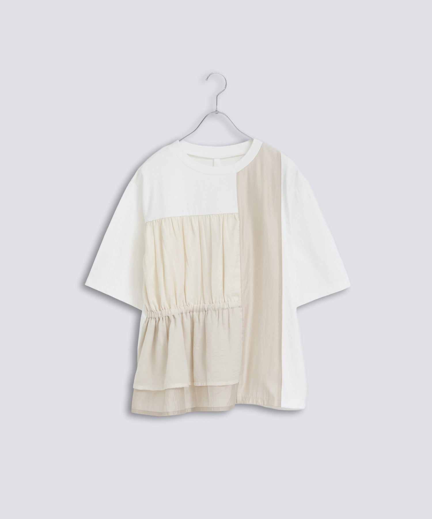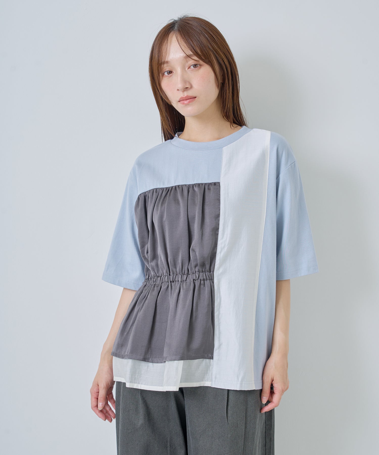 さらにサテン部分はギャザーを施すことでドレープが生まれ、女性らしい印象に。