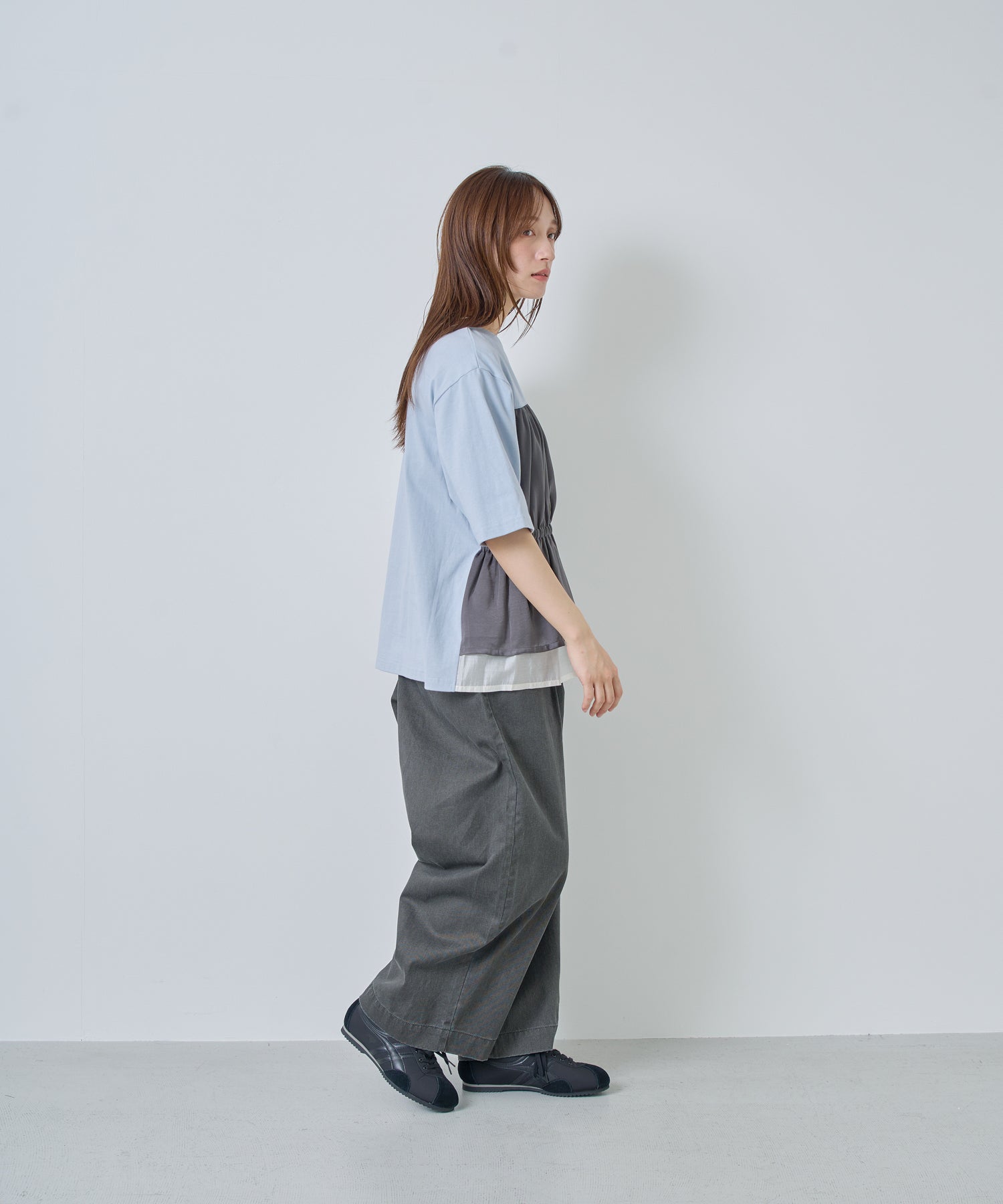 ボディラインも拾わないゆとりのあるサイズ感で、