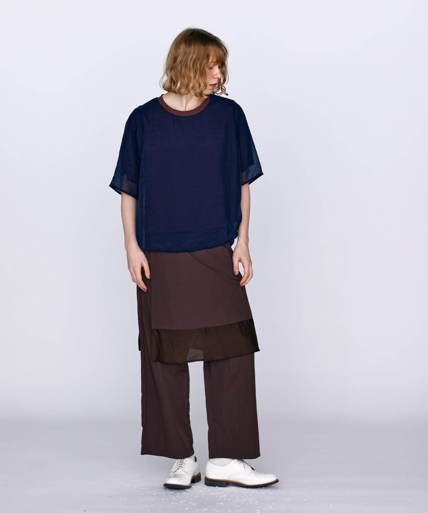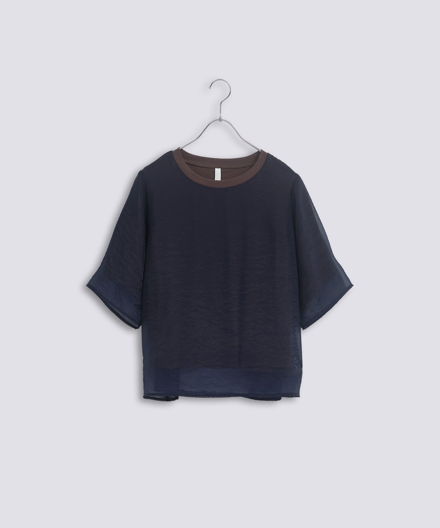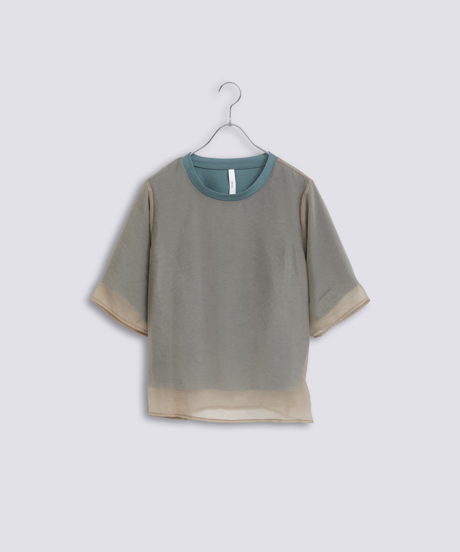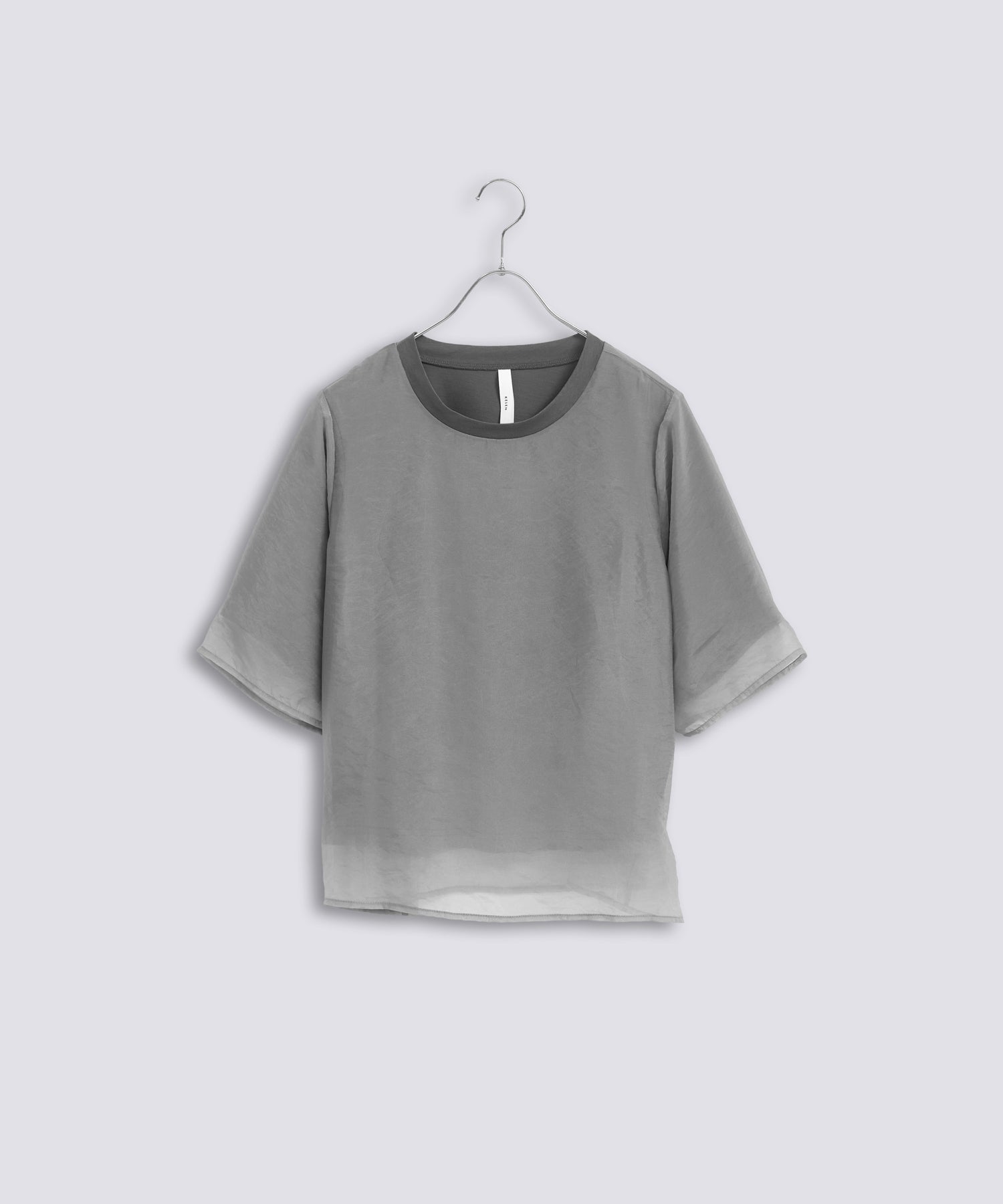 カットソーの上にオーガンジー素材を重ねたレイヤードが印象的なトップスアイテムです。