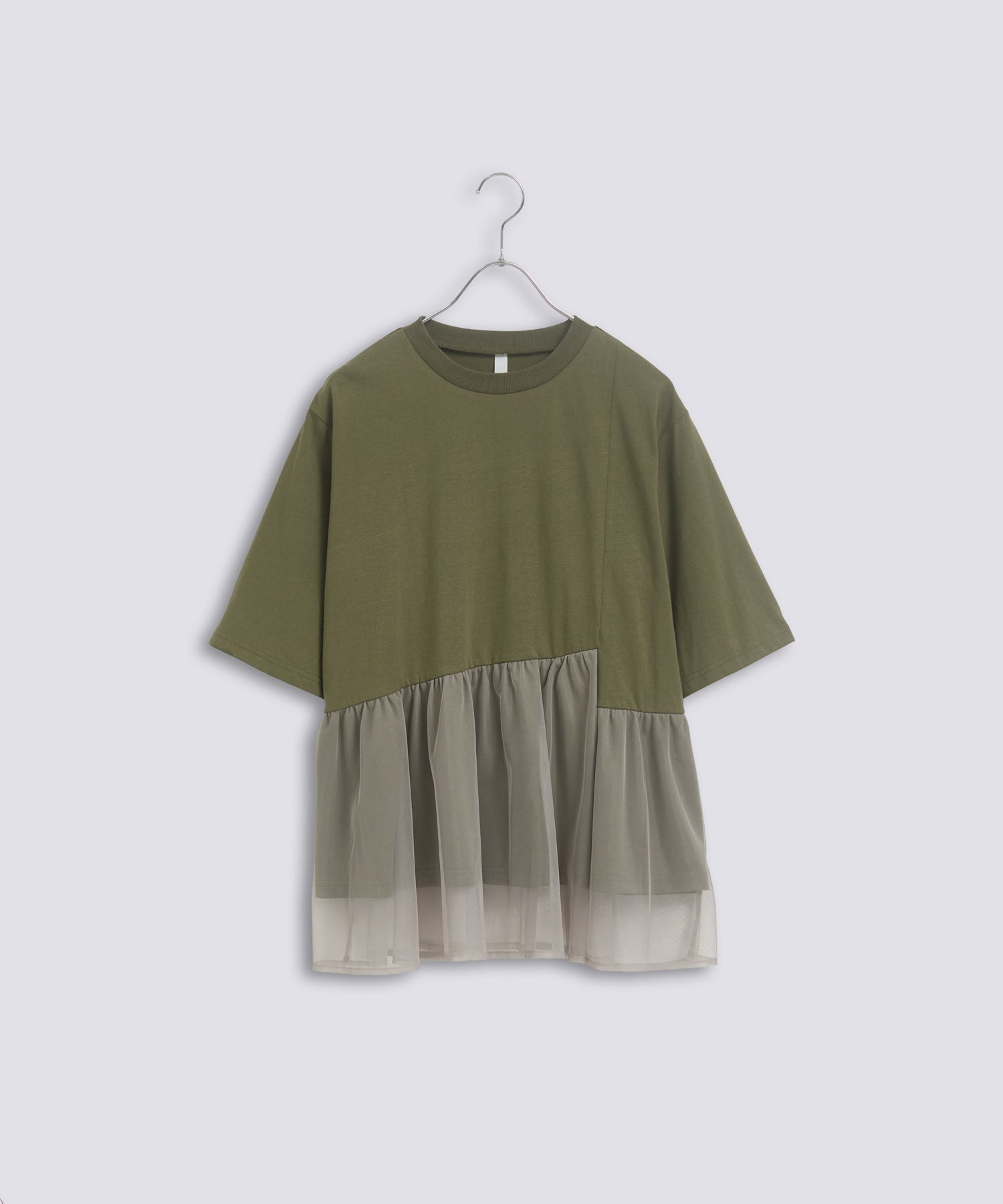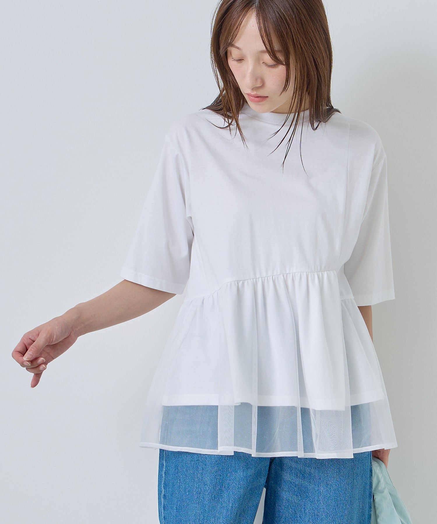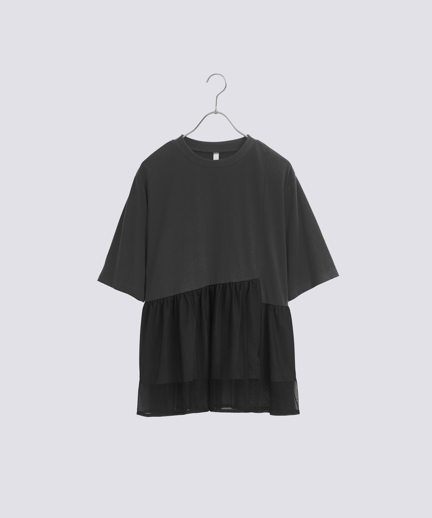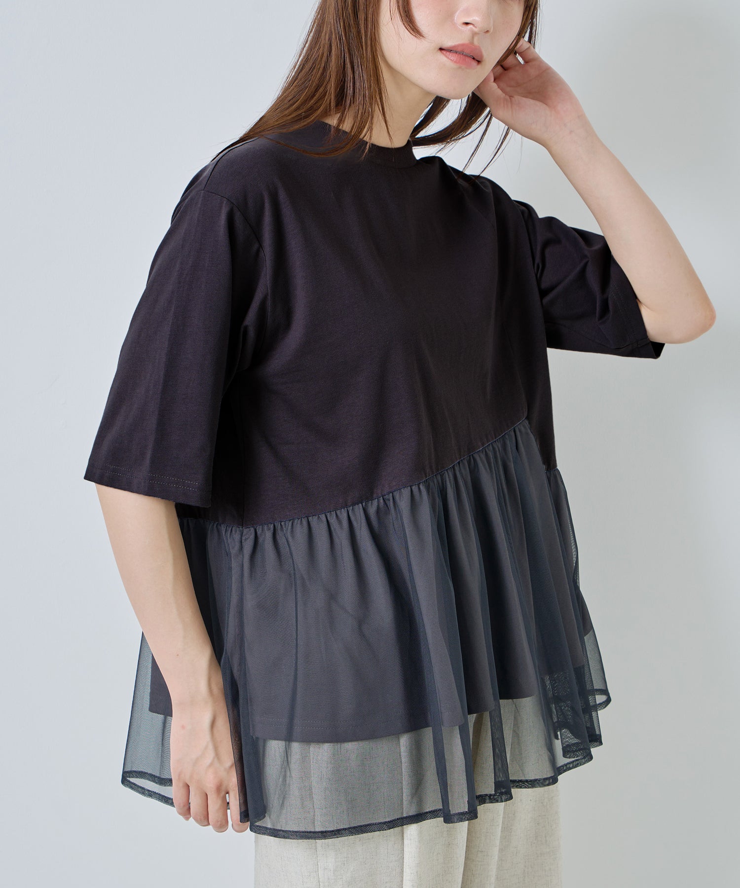 目の細かいチュールメッシュとの異素材コンビデザイン。
