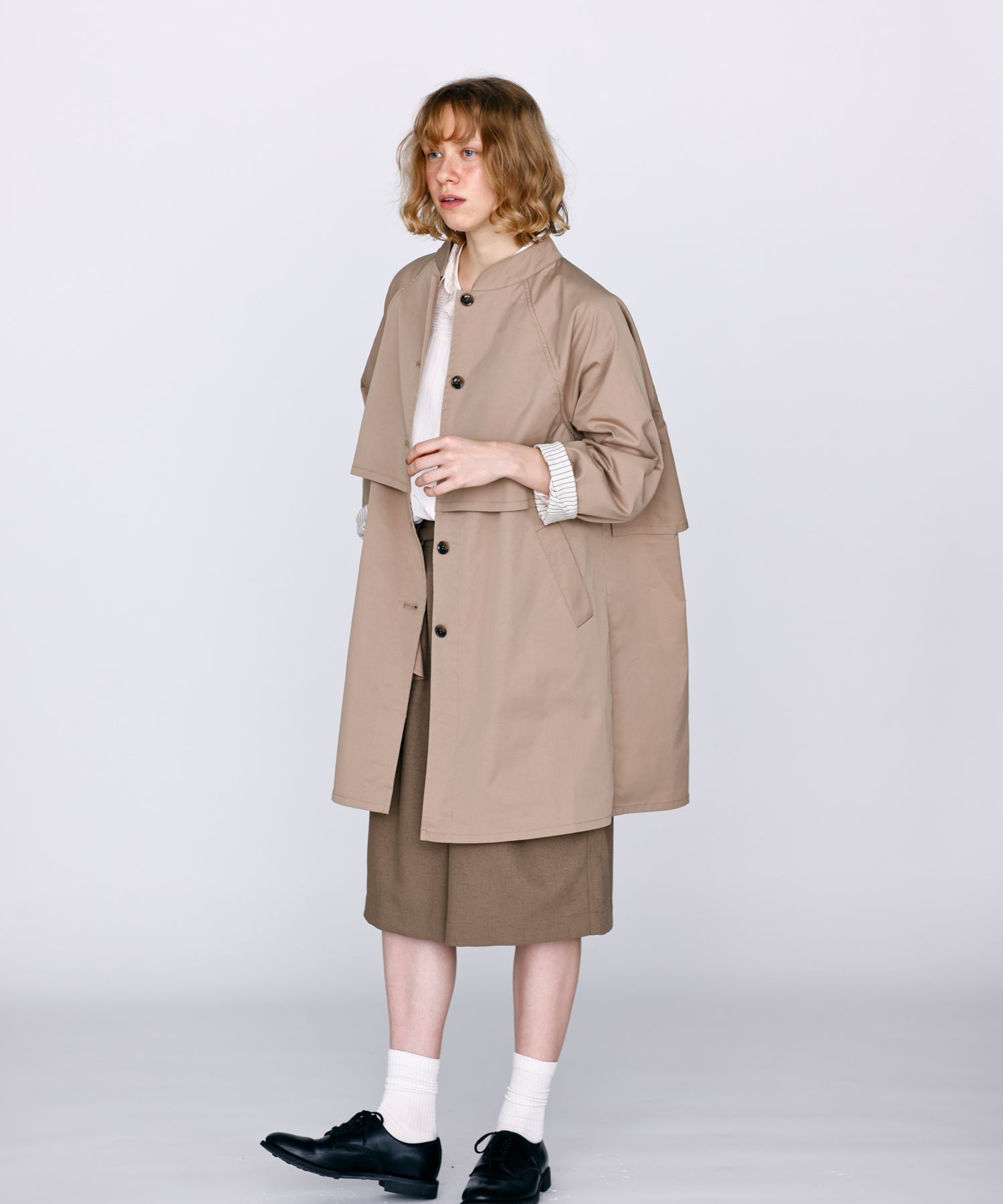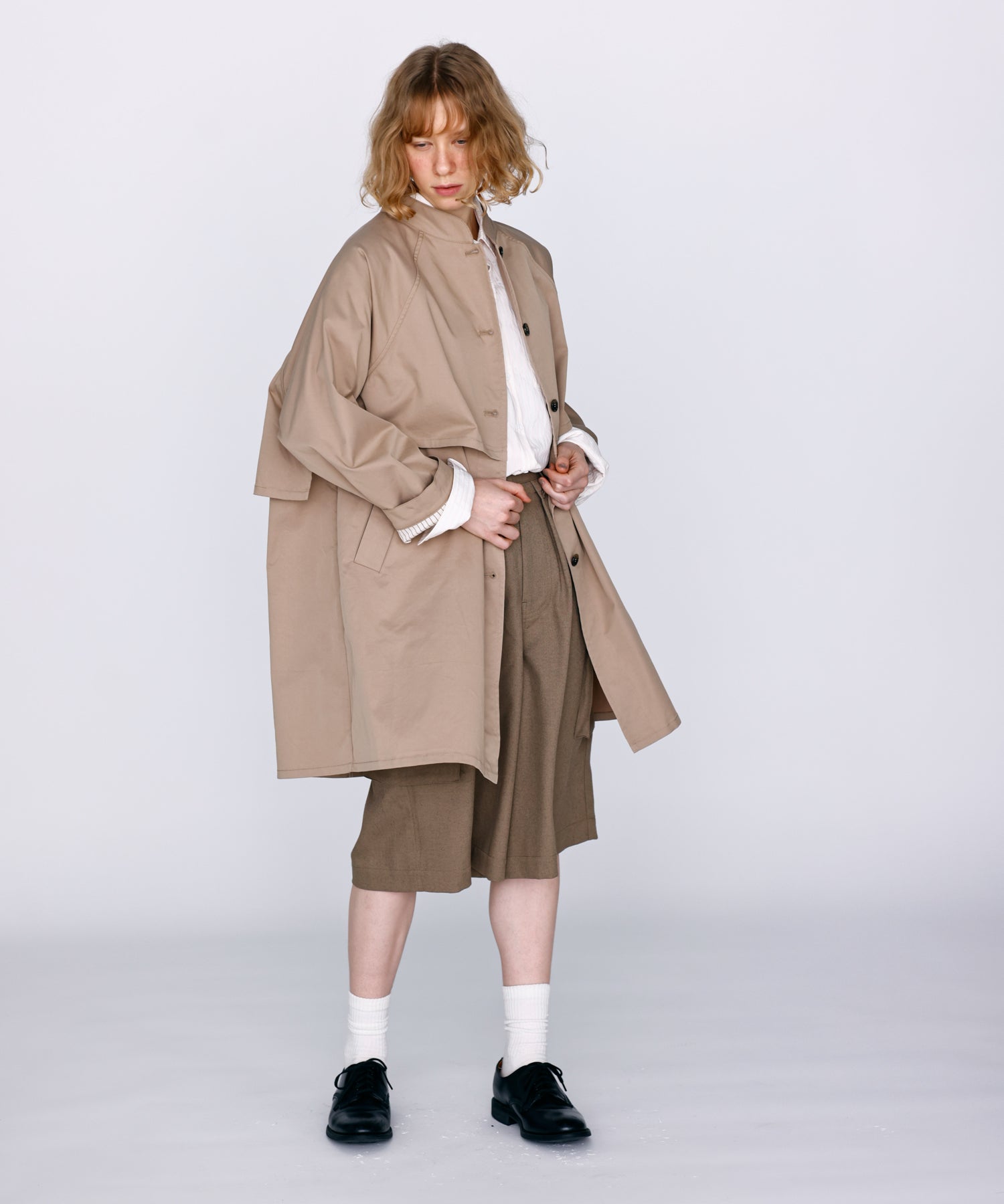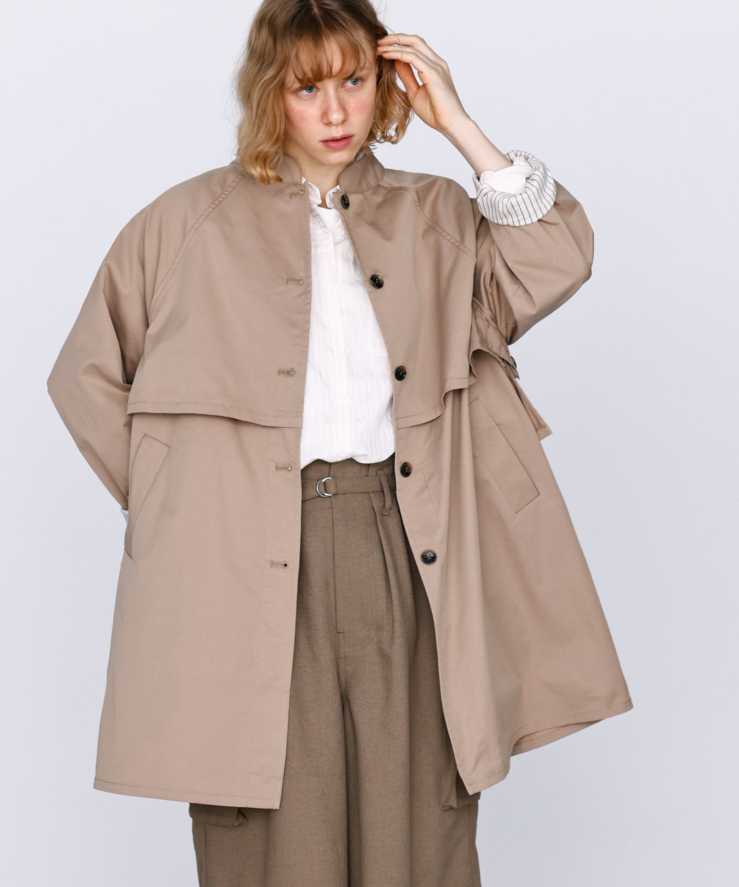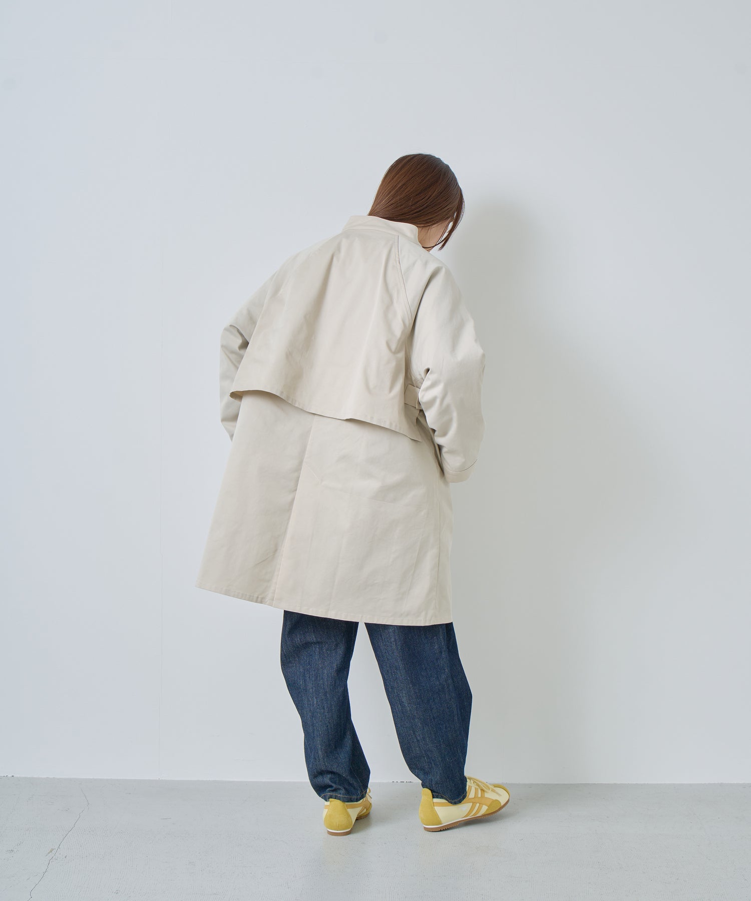 スッキリと立ち衿が特徴のオーバーサイズコート。