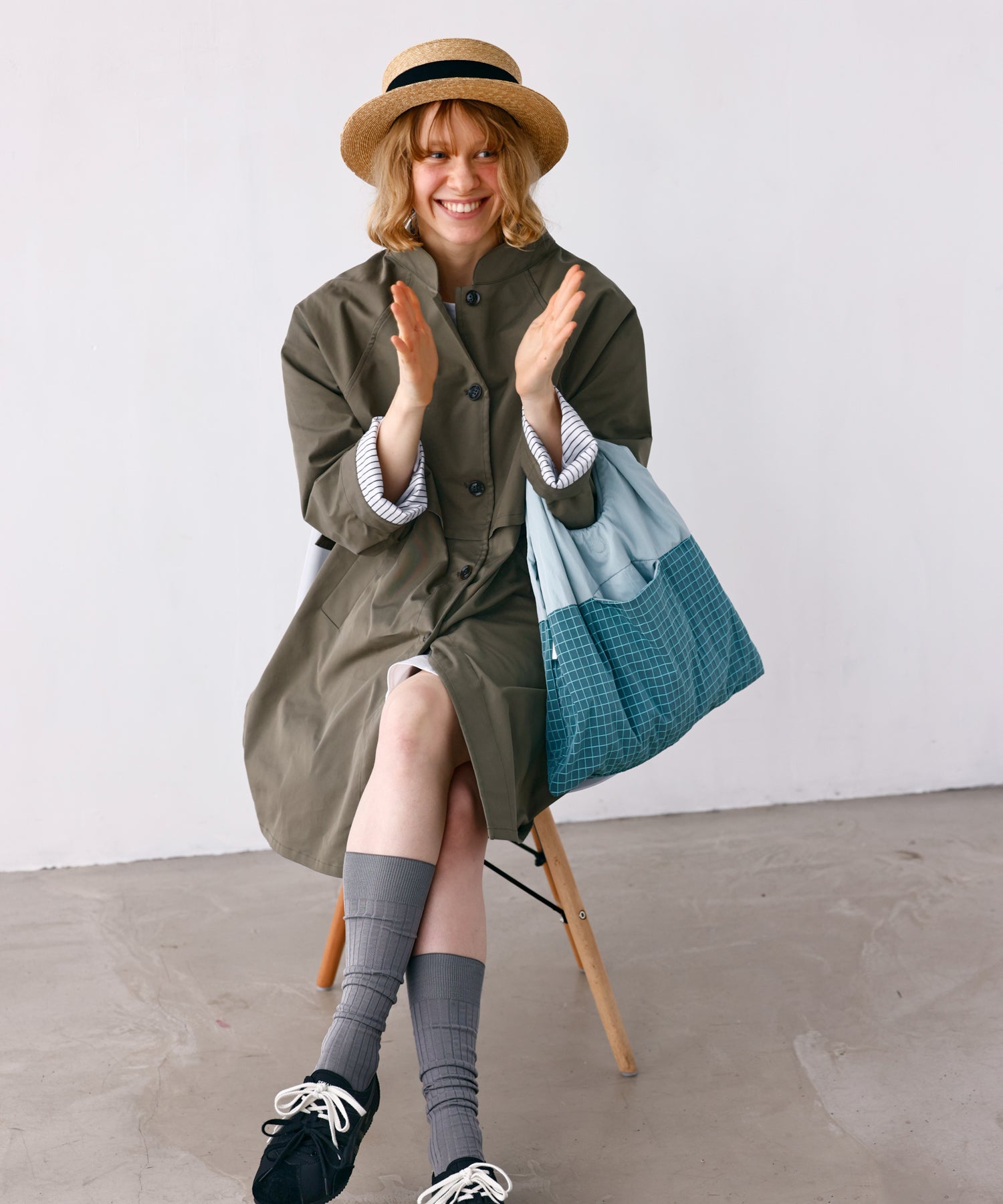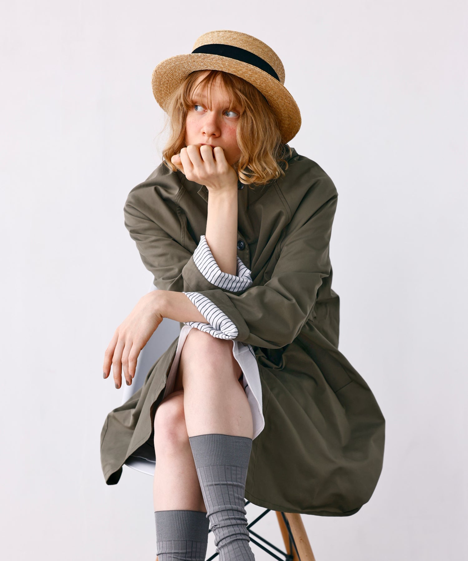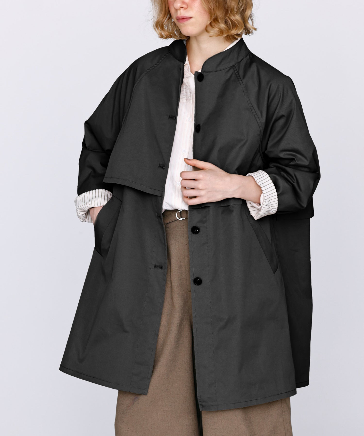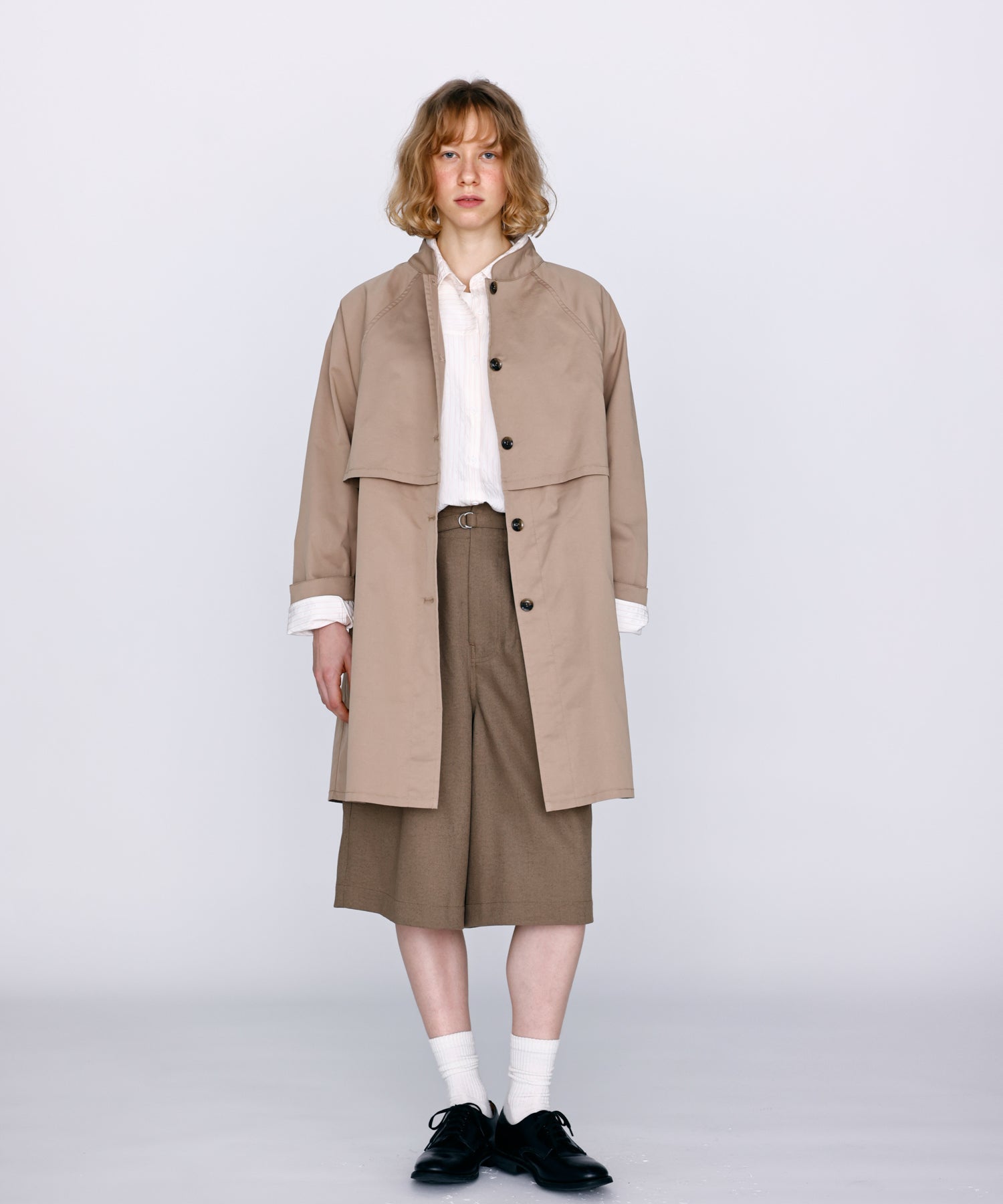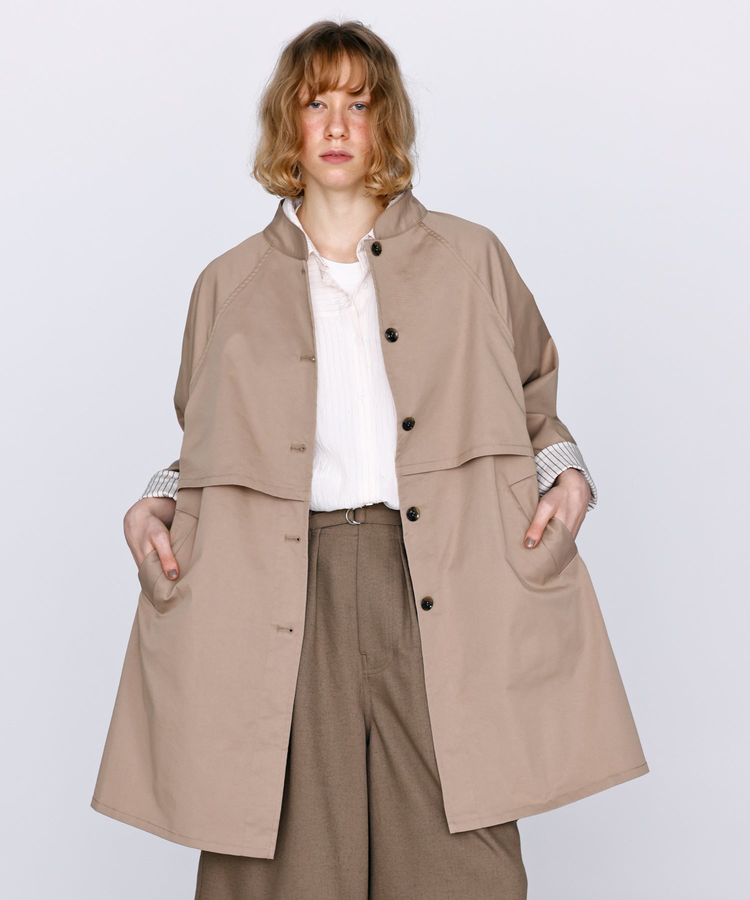 スッキリと立ち衿が特徴のオーバーサイズコート。