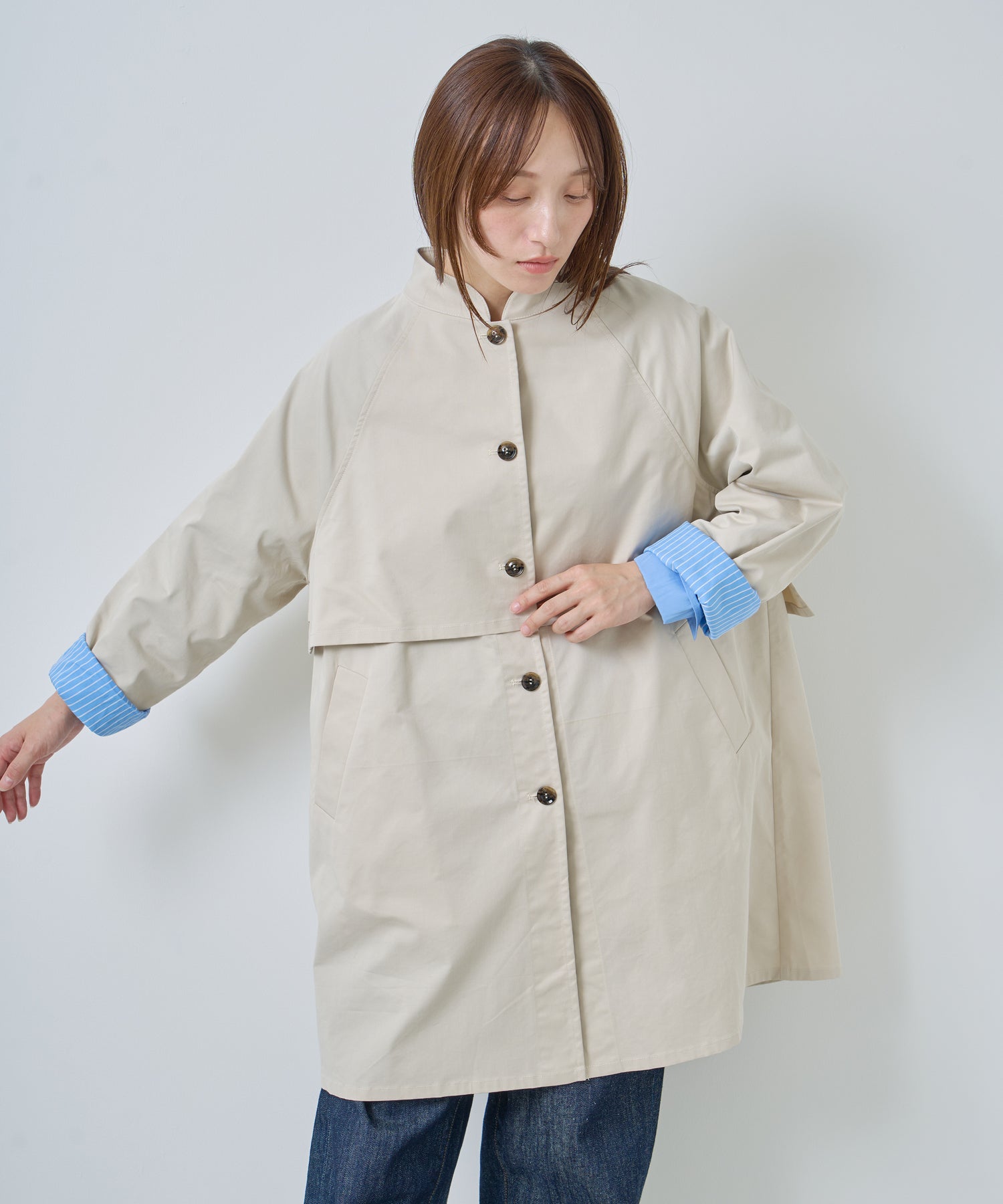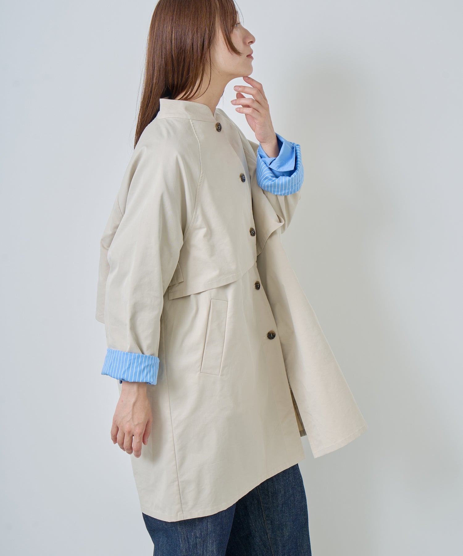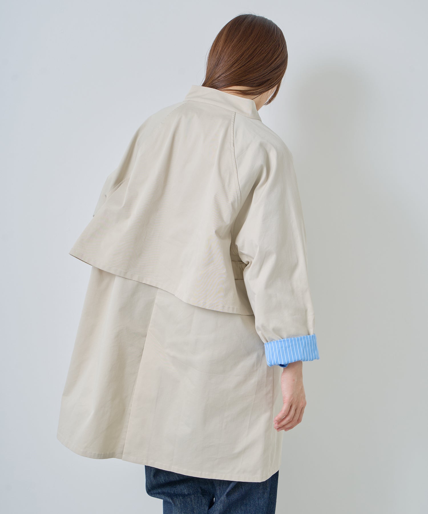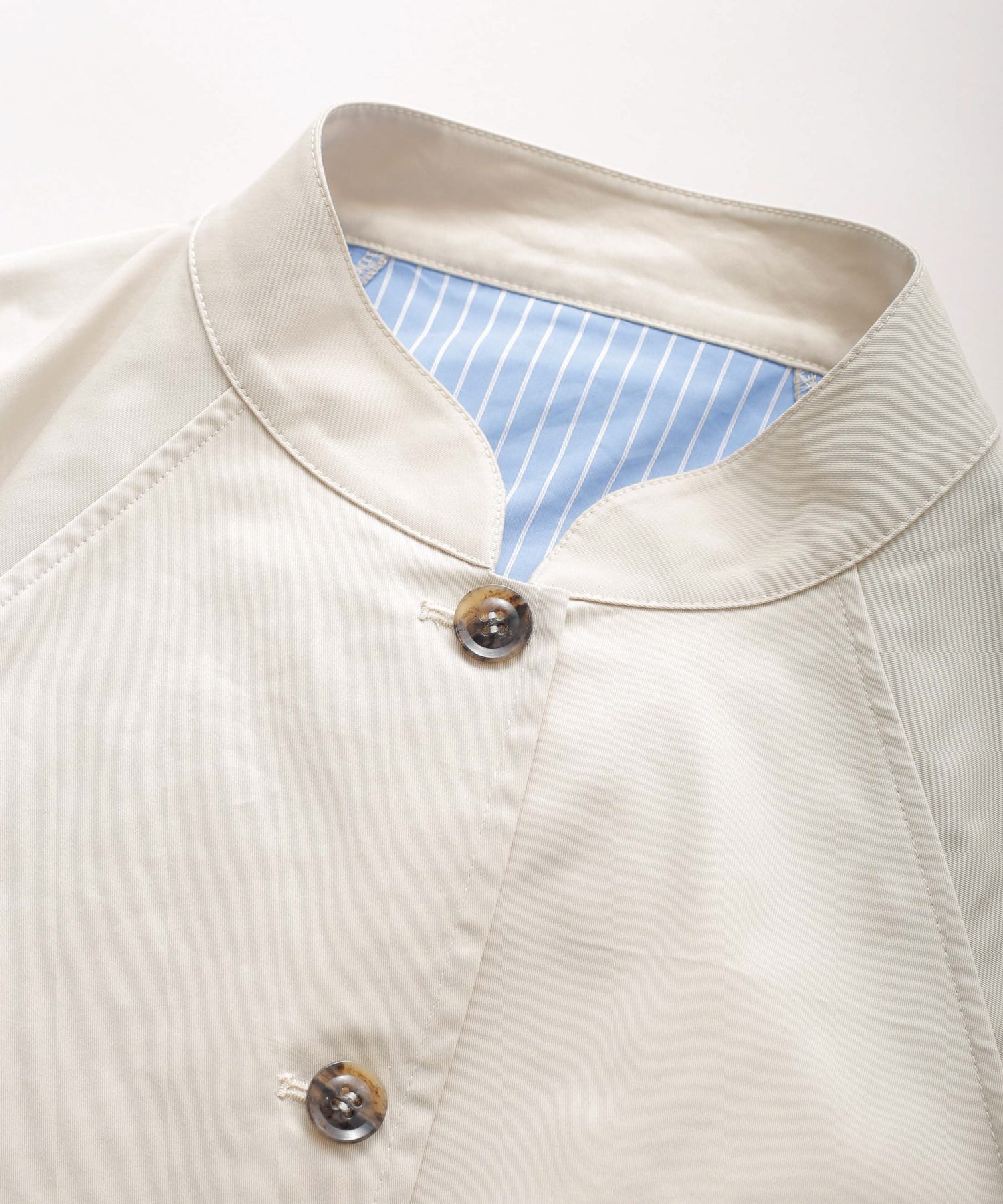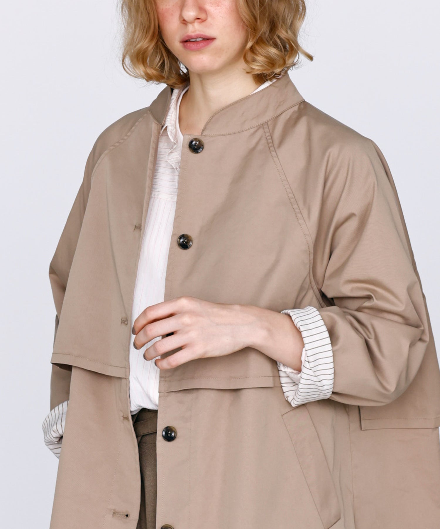 コットンポリエステルのギャバジン素材を使用したミドル丈ジャケット。