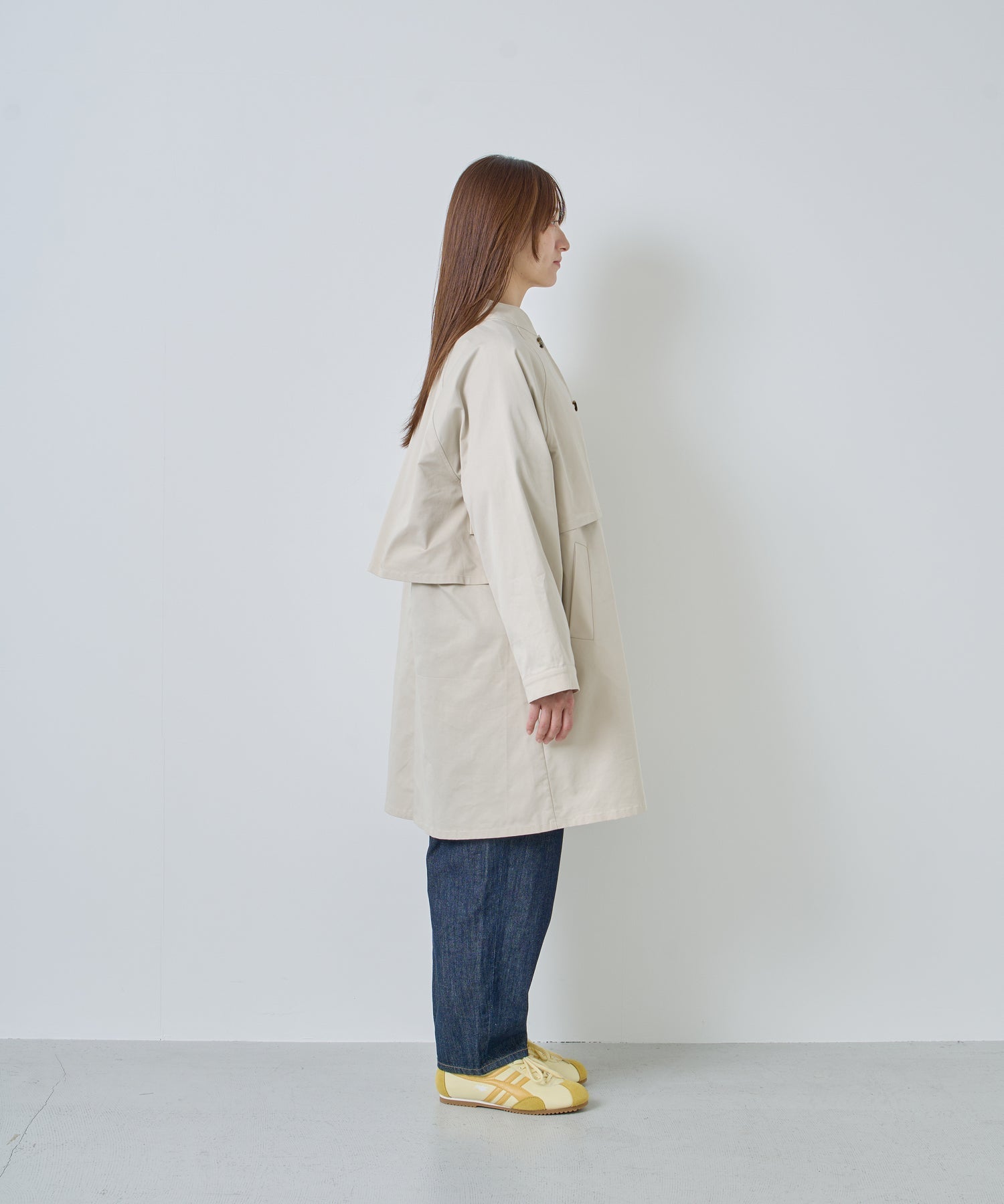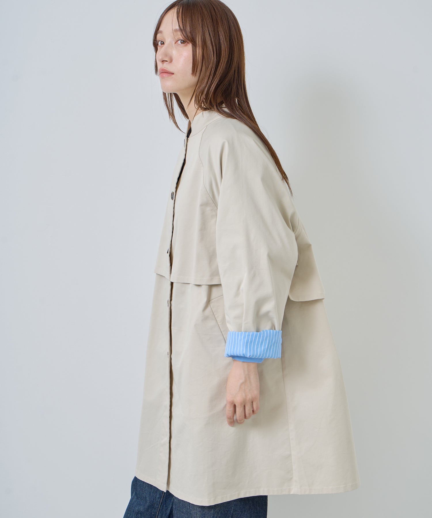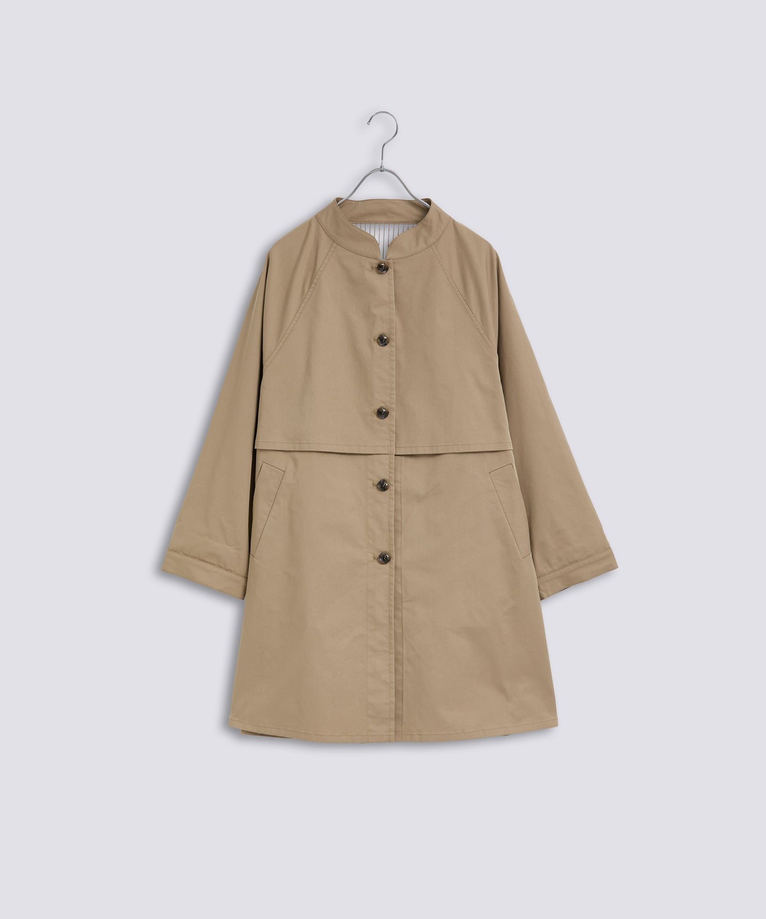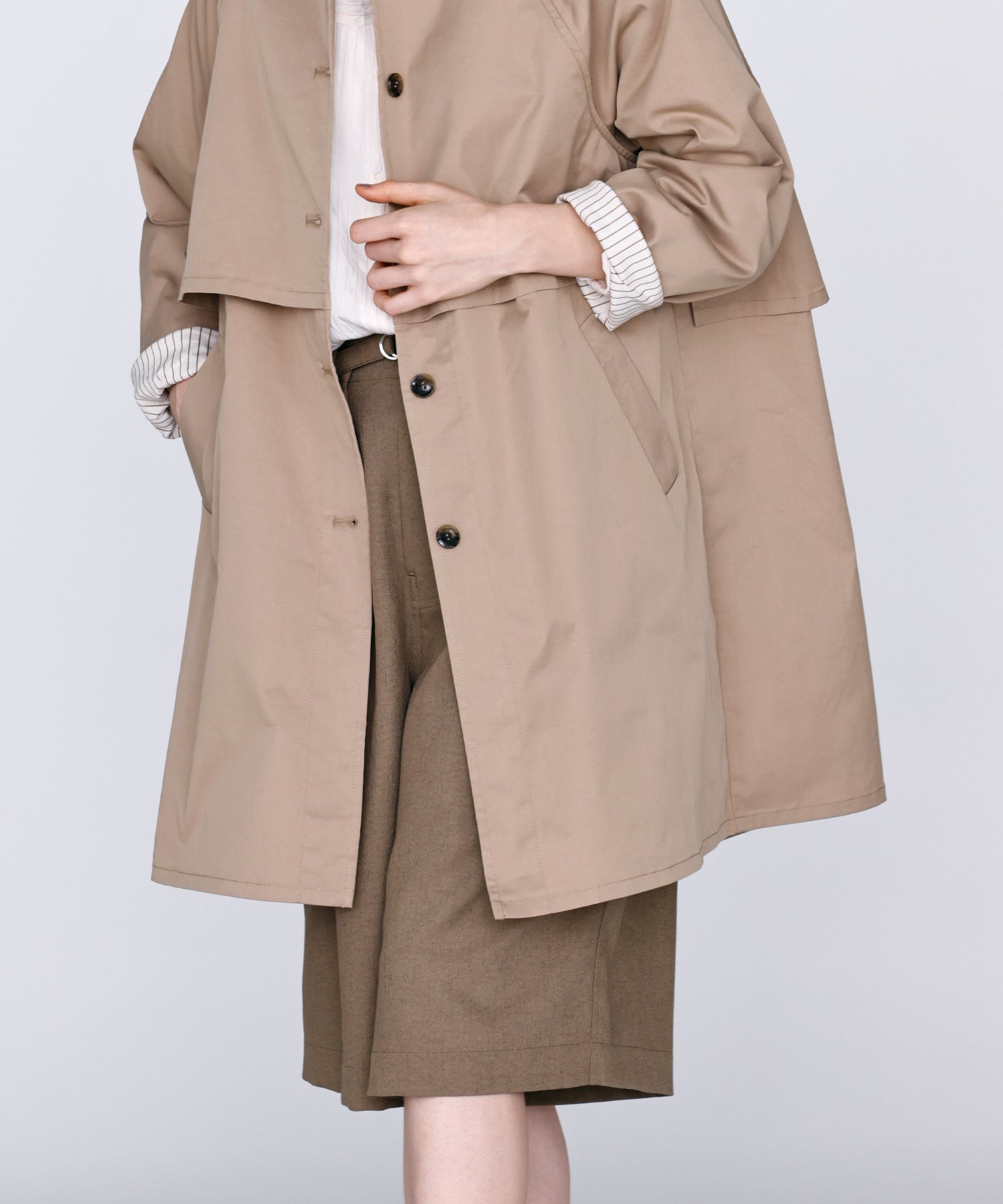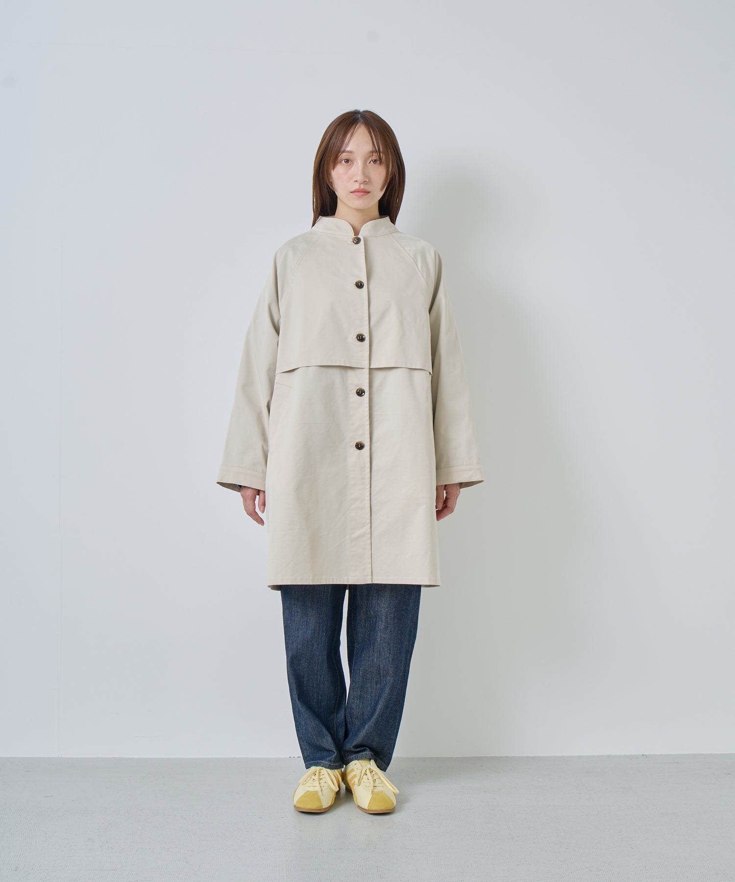 コットンポリエステルのギャバジン素材を使用したミドル丈ジャケット。
