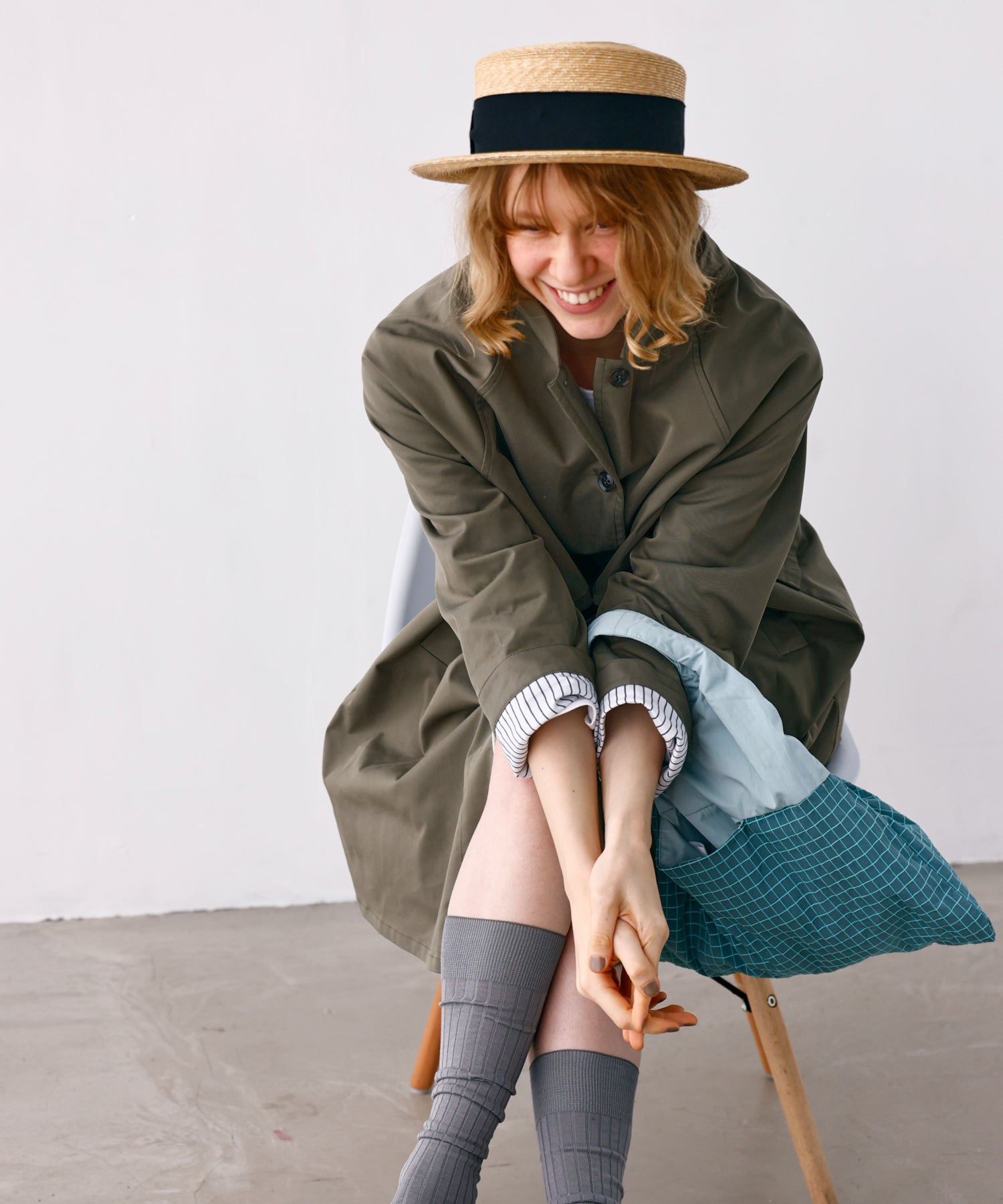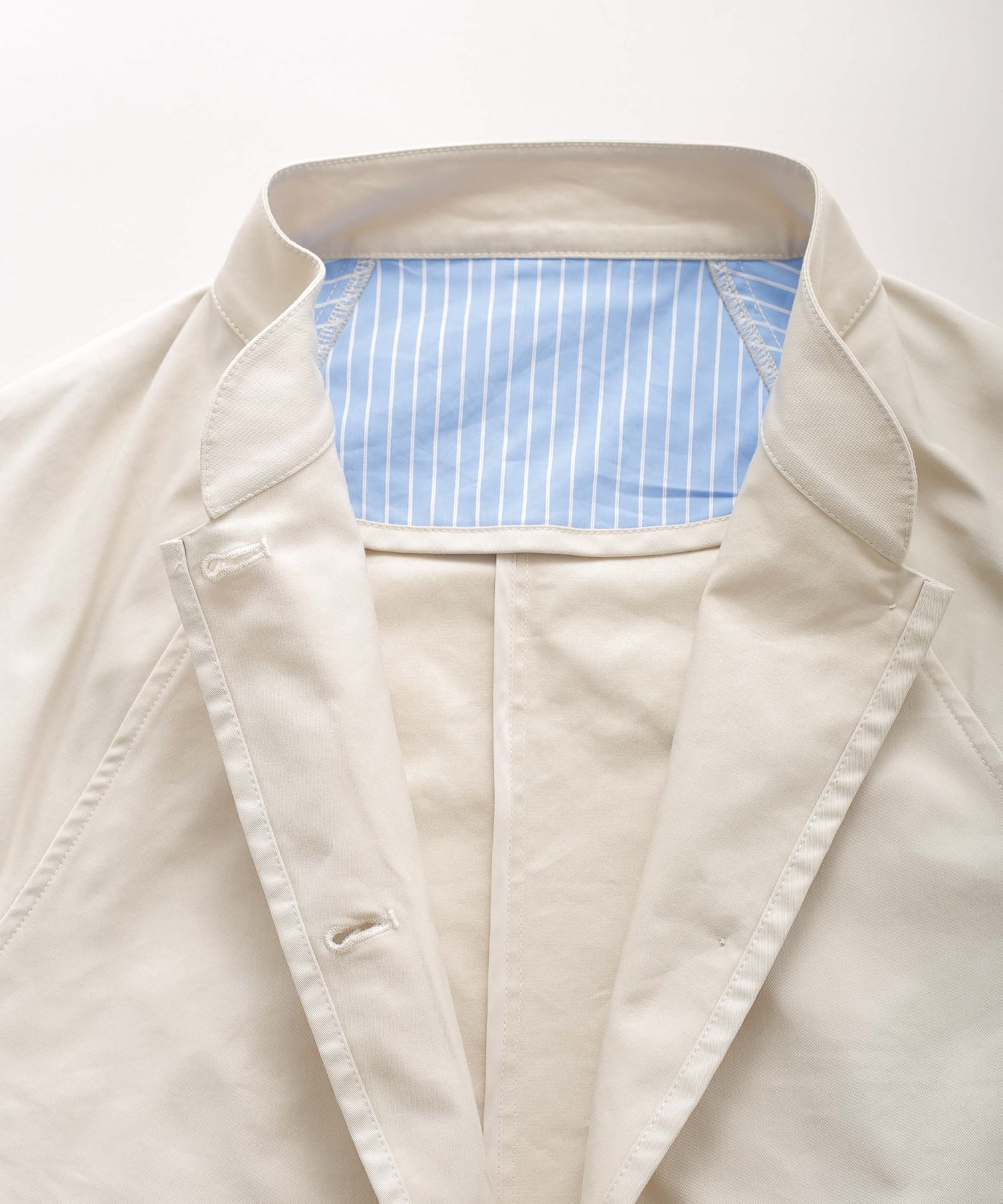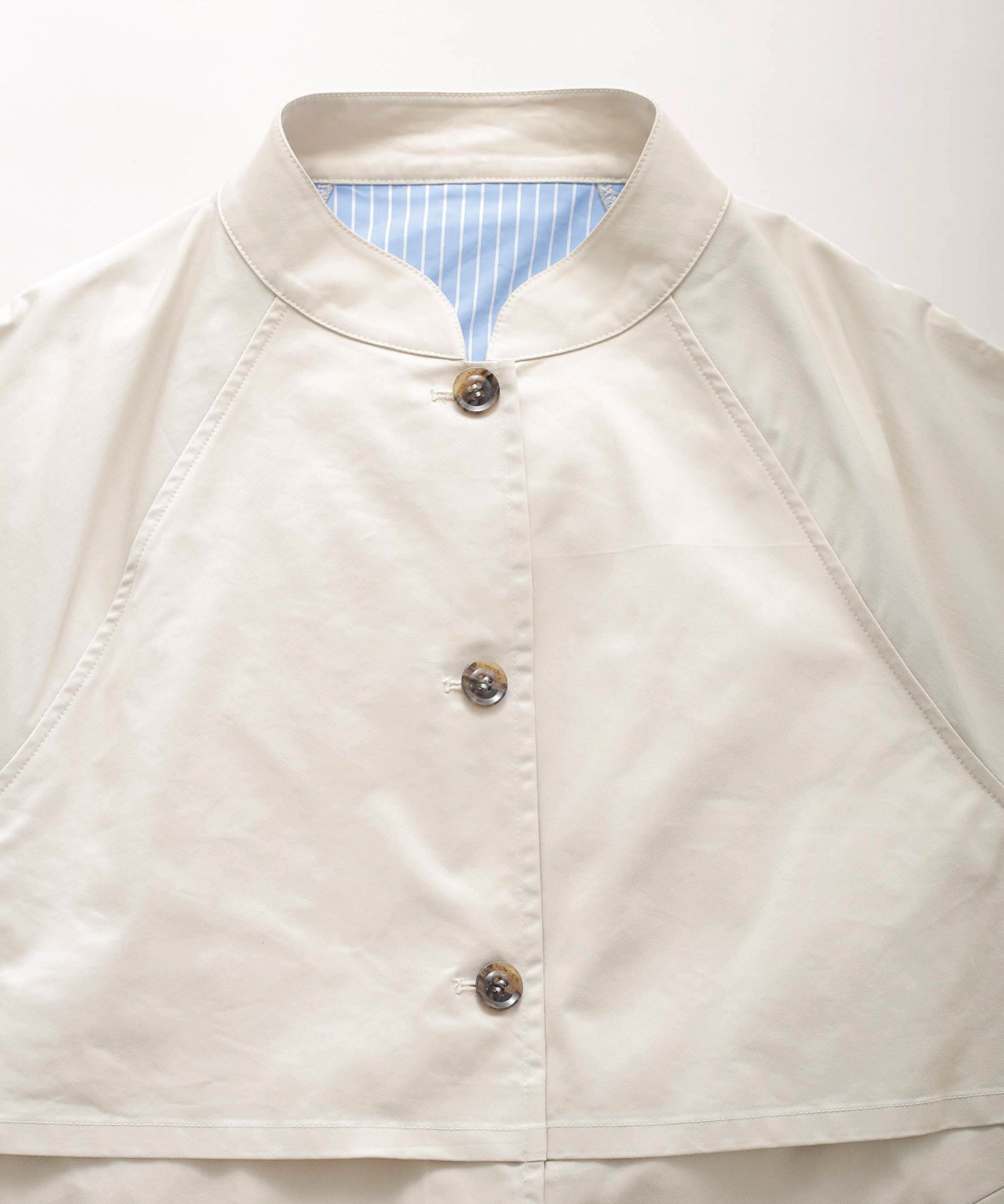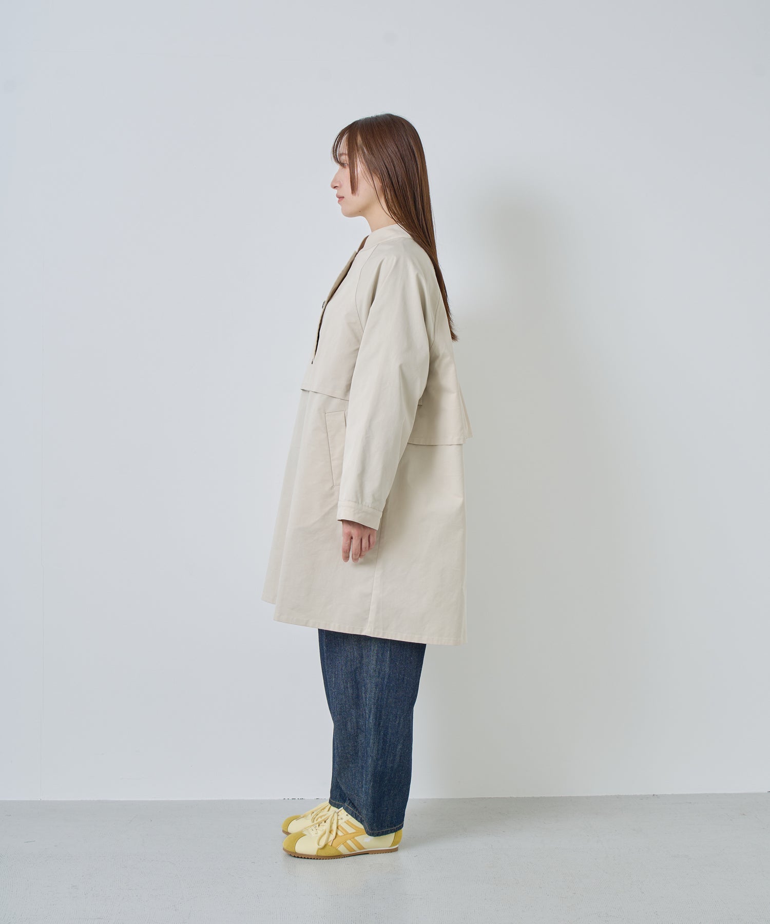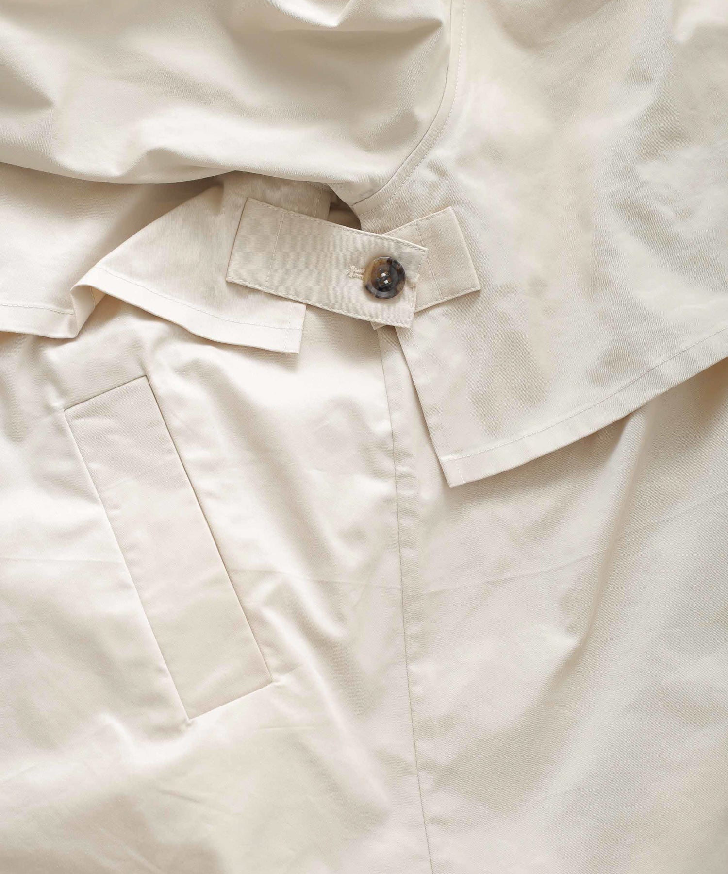 コットンポリエステルのギャバジン素材を使用したミドル丈ジャケット。