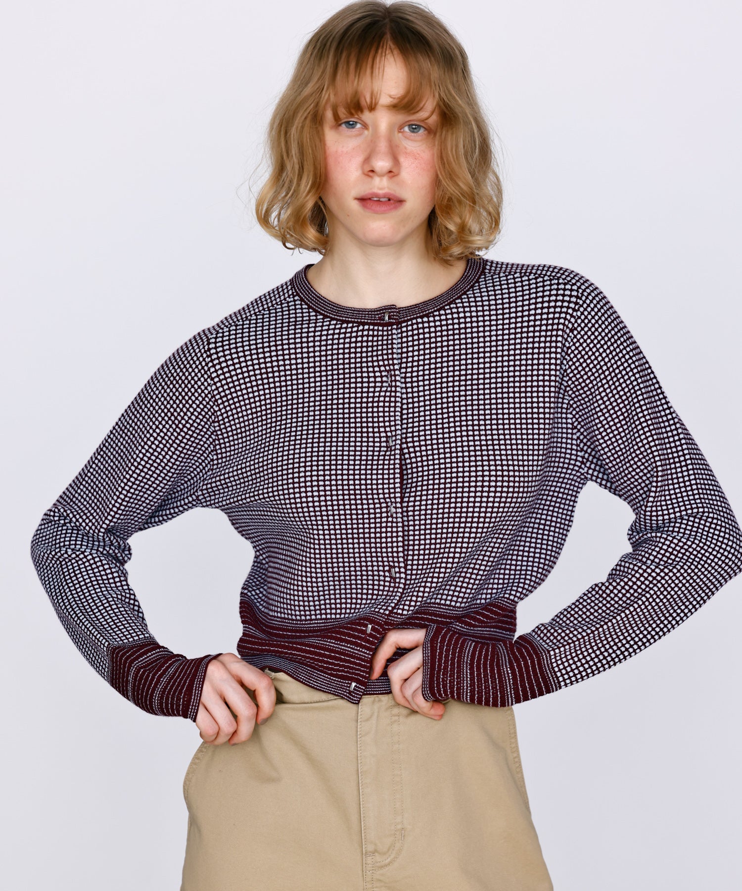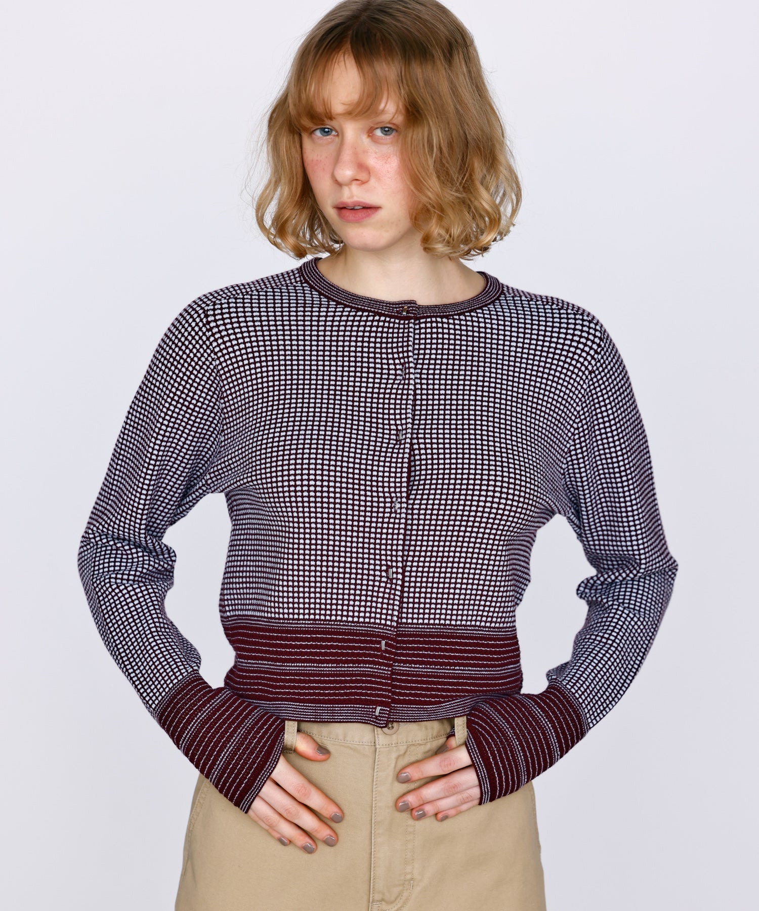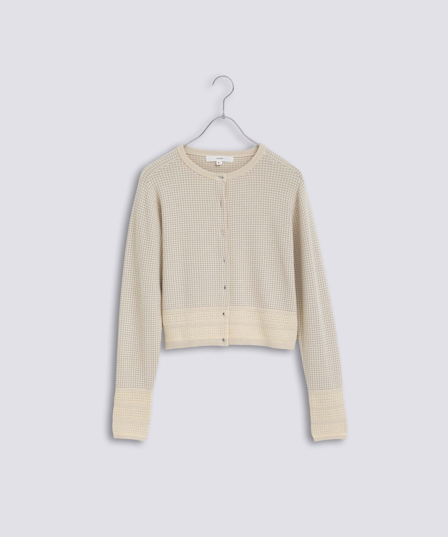 クラシカルな配色とコンパクトな丈感が魅力のショートカーディガン。